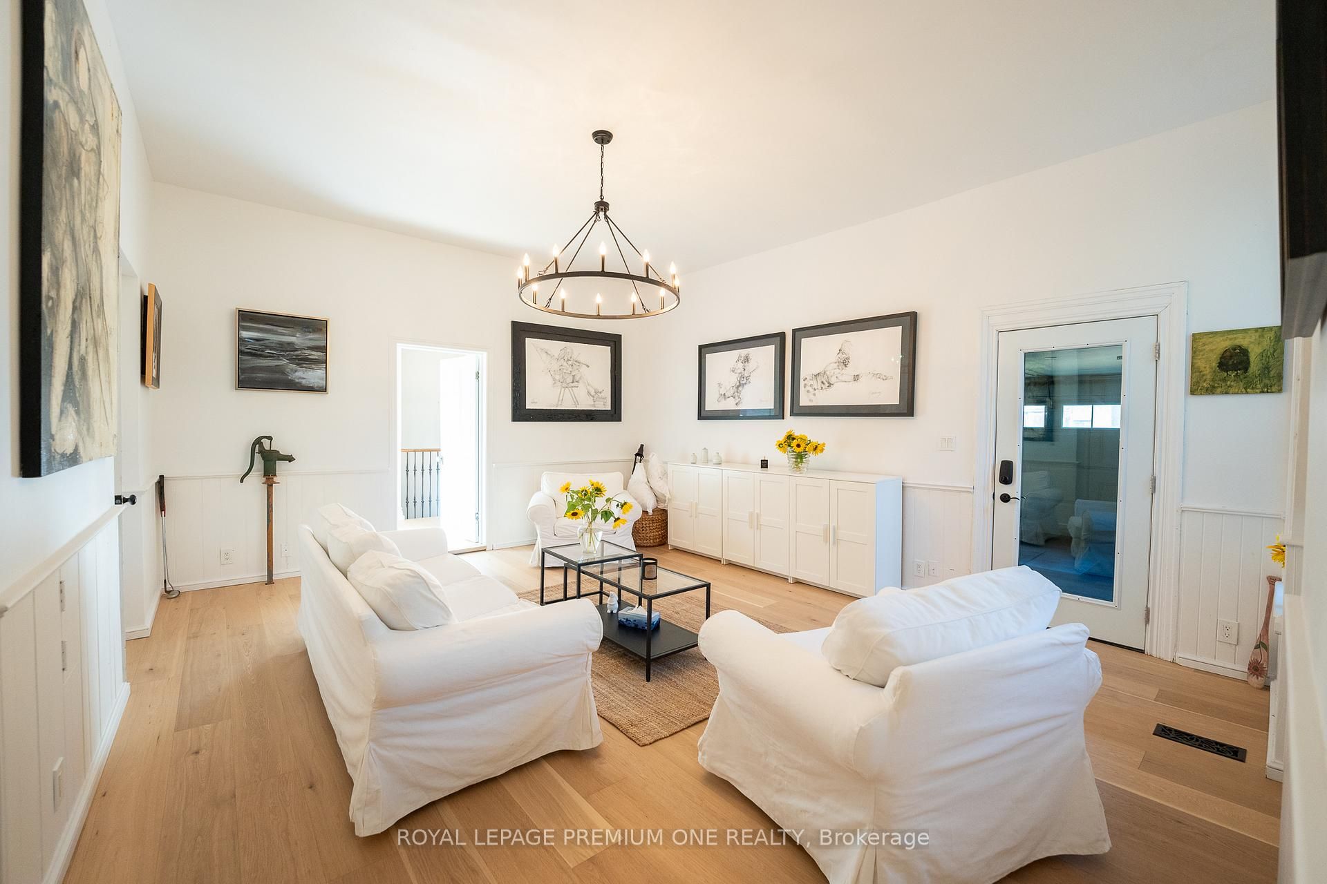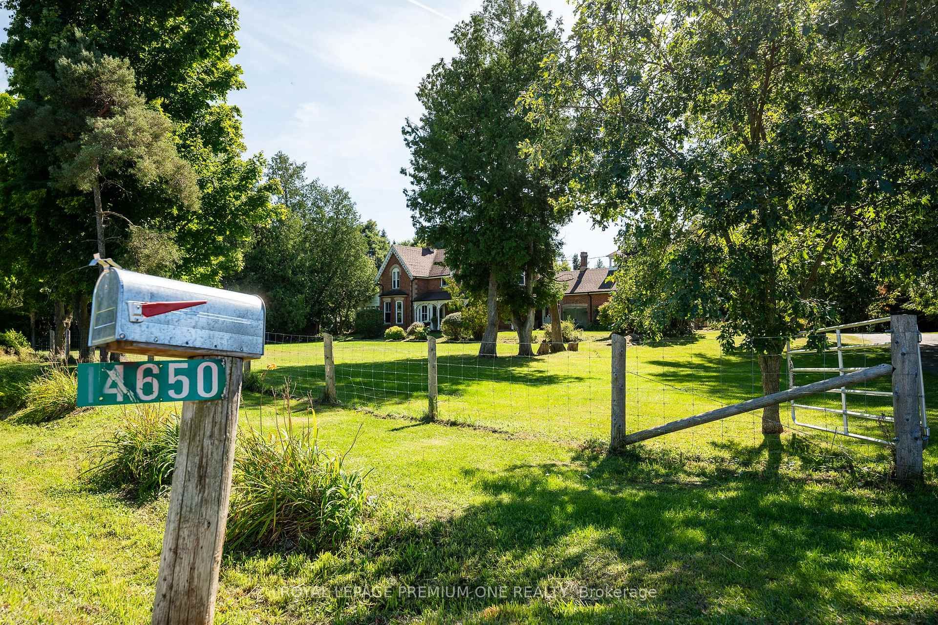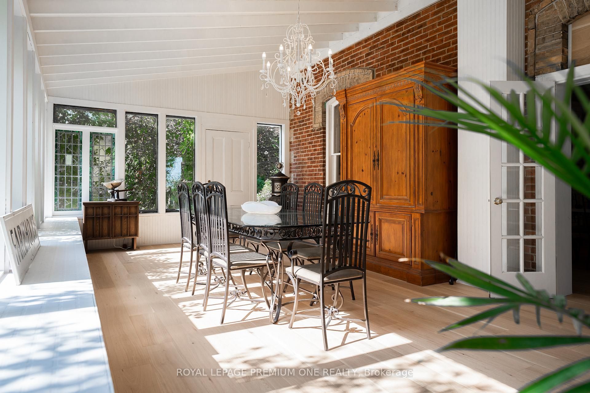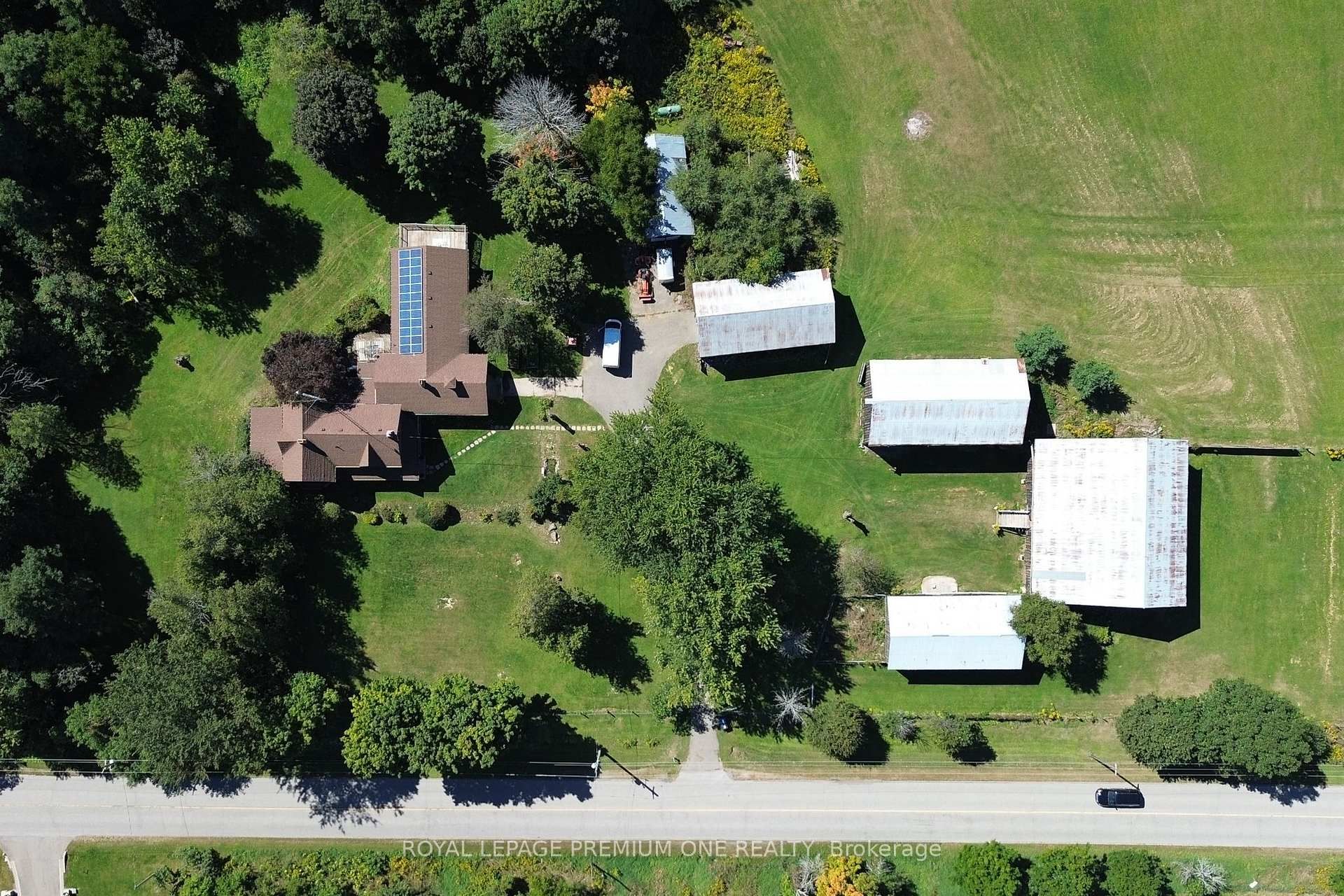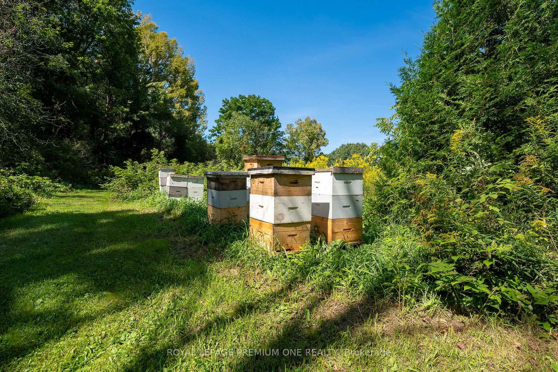 Bursting with charm and storied in history. This 1864 gem and 5 out buildings are with period features and old-world character. The Alexander Smith farmhouse is a good representation of the vernacular style known as "Ontario Gothic". This style is the L-Shaped floor plan, polychromatic brick patterning, buff brick quoins and voussoirs. The residence also has coursed polychromatic end chimneys, a projecting bay window, lancet & paired gable windows. A porch with decorative bargeboards wraps around the NE corner of the house. Attached to the NW corner of the house is the summer kitchen & brick carriage house with the original farm bell on the roof. Located across the farm lane, are the 5 out buildings. The buildings consist of the chicken house, implement shed, and three timber frame barns set in a U-Shape, all with medium pitched gable roofs & board and batten cladding. The farm complex is surrounded by a mix of open fields, natural growth cedar & areas of reforestation. A cedar rail fence lines the property. Make this property your hobby farm or transform it into an income property by way of hosting events like weddings or corporate gatherings. How about turning it into a wellness retreat or a bed & breakfast. Even add additional outbuildings and increase your income capabilities. The opportunities at this farm complex are endless.