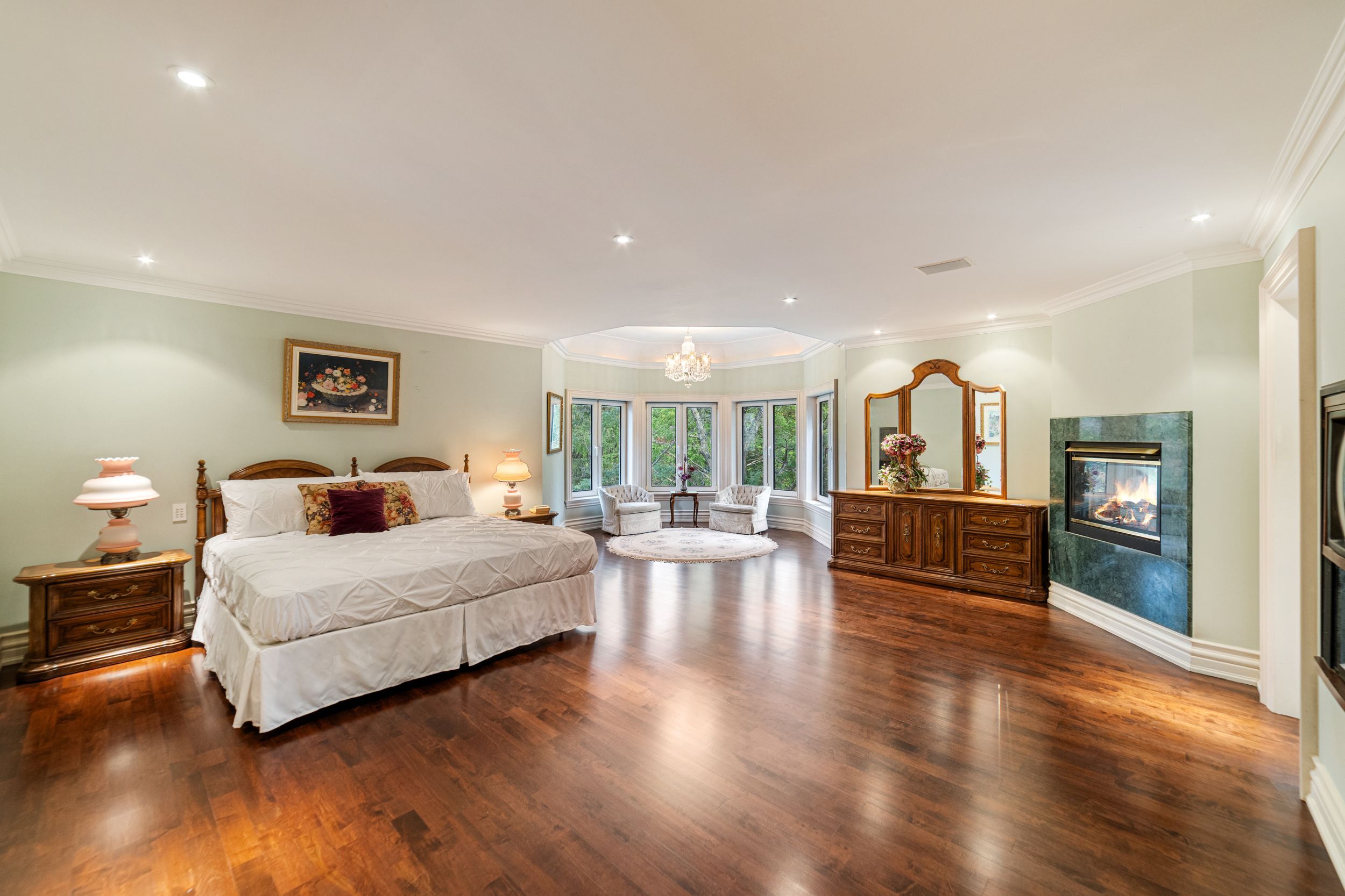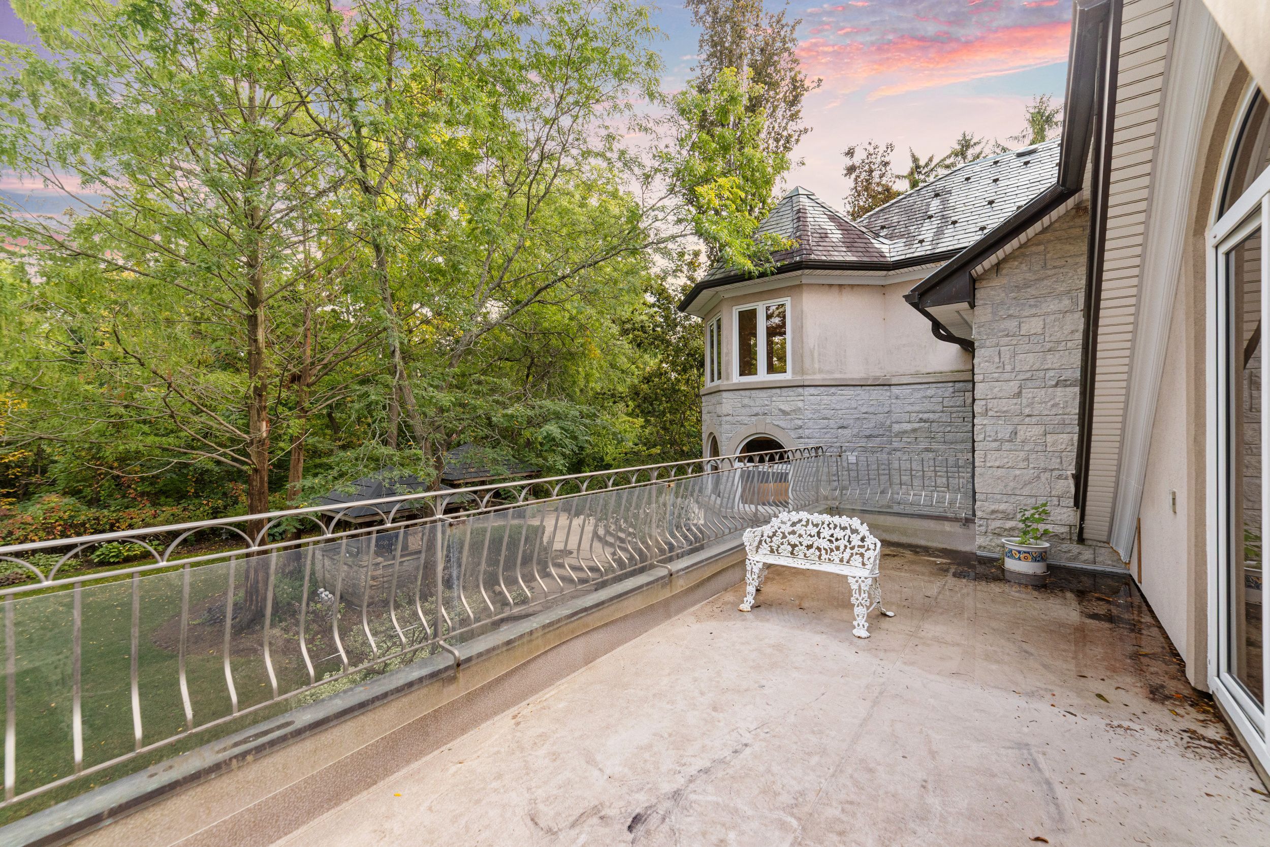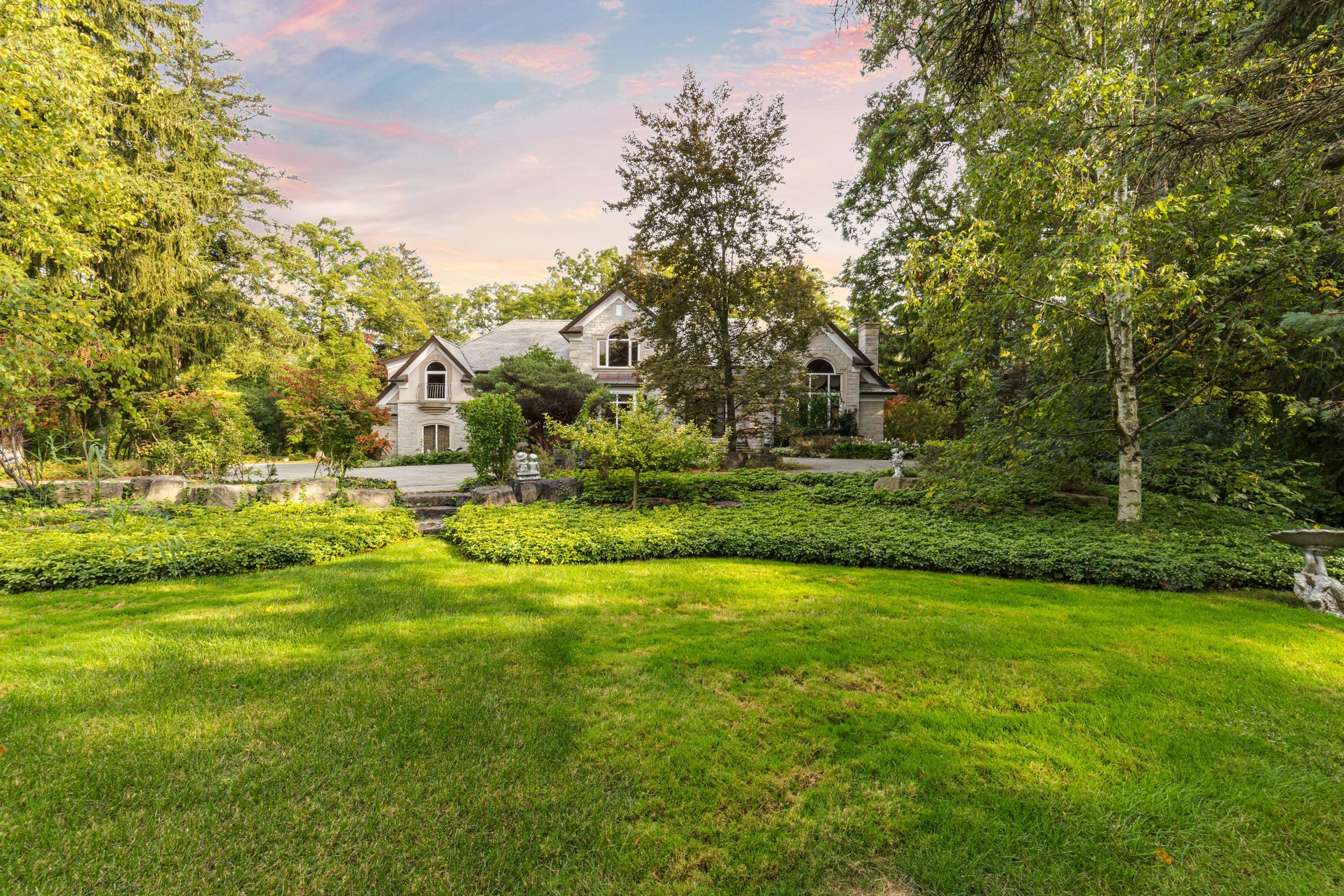 A Rare Executive gated 1.39-acre ravine estate in Morrison sought after community timeless elegance meets modern luxury this residence provides unmatched privacy, lush landscaping, & refined outdoor living. Through the custom 8-foot beveled glass entry doors, the soaring foyer sets the tone with emerald pearl granite floors, a handcrafted Austrian crystal chandelier on motorized lift, & a sweeping French Provincial staircase with wool Victorian Tapestry runner. The main floor boasts elegant formal living & dining rooms with hand-carved marble fireplaces, cathedral ceilings, plaster mouldings, & Palladian windows framing ravine views. A richly appointed library & office feature maple plank flooring, crown moulding, & custom draperies. The family room offers panoramic vistas & a mahogany fireplace, while the chefs Hawthorne kitchen impresses with cherry cabinetry, granite surfaces, premium appliances, & a walkout to the terrace. Upstairs, the luxurious primary suite includes a two-way fireplace, custom lighting, & a walk-in closet with attic access. The spa-inspired ensuite offers heated floors, Jacuzzi air tub, granite shower, & Strass crystal lighting. Three additional bedrooms each enjoy private ensuites, cathedral ceilings, & custom finishes. A versatile great room with terrace access & a full laundry suite complete this level. The lower level is an entertainers dream with a billiards & games room, full walnut bar, gym, media lounge, & spa retreat with sauna & steam shower. Radiant heated floors, & abundant storage enhance the space. Outdoors, the property is equally breathtaking with two stone gazebos joined by a large pergola, extensive walking paths, & a serene koi pond and a Japanese-inspired garden creating a private resort-like escape. With 4+1 bedrooms, 7 bathrooms, elevator access to all levels, multiple terraces, & a gated circular driveway, this estate offers over 10,000 sq. ft. of refined living in one of Oakville's most coveted neighbourhoods.