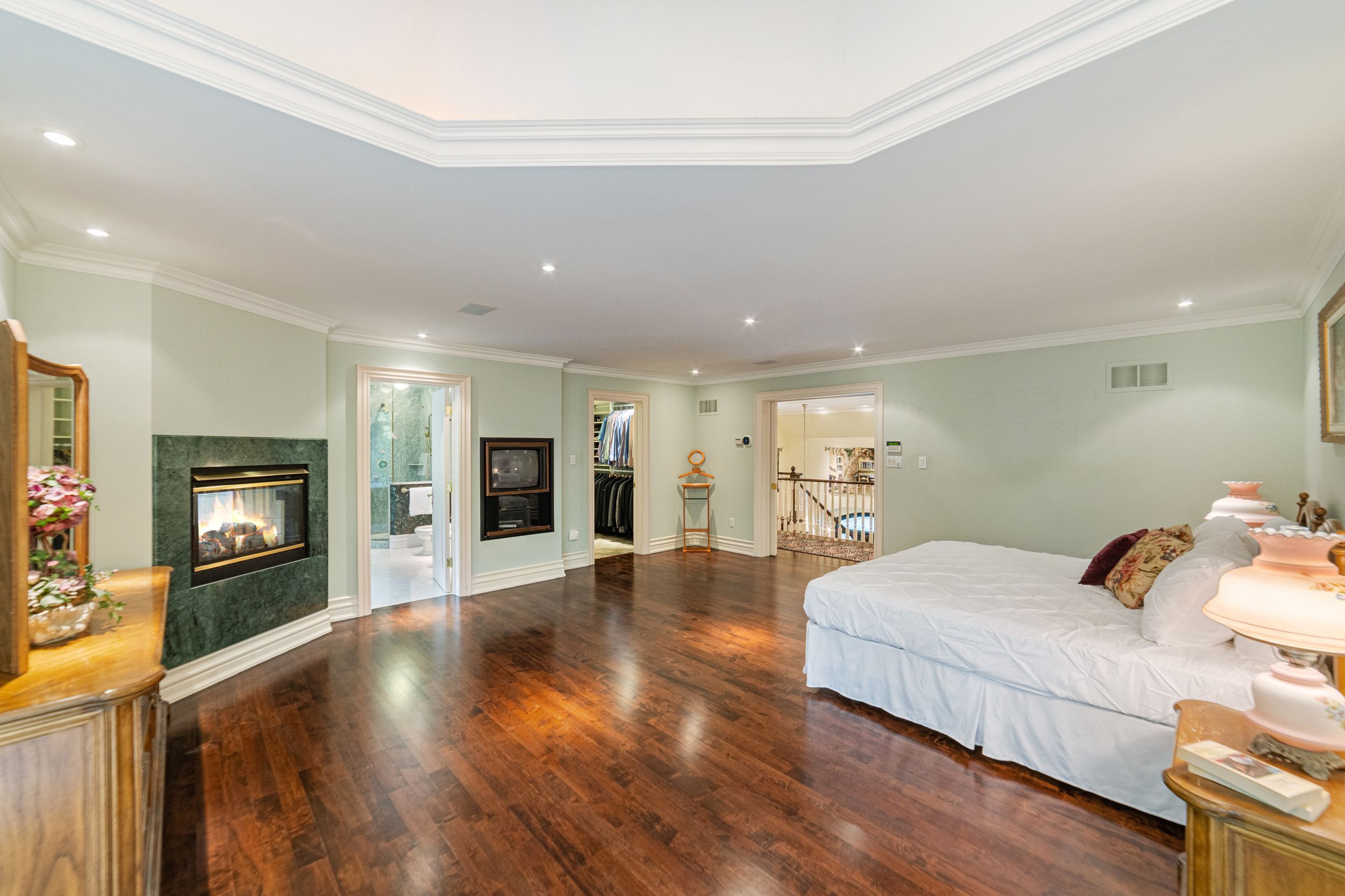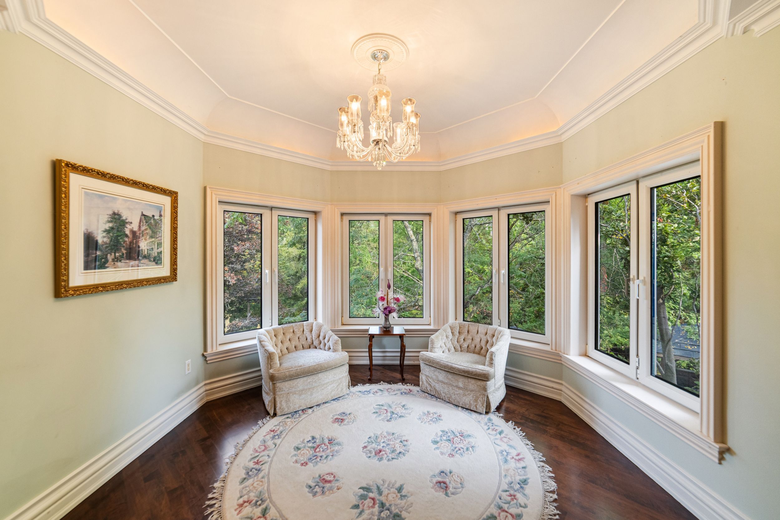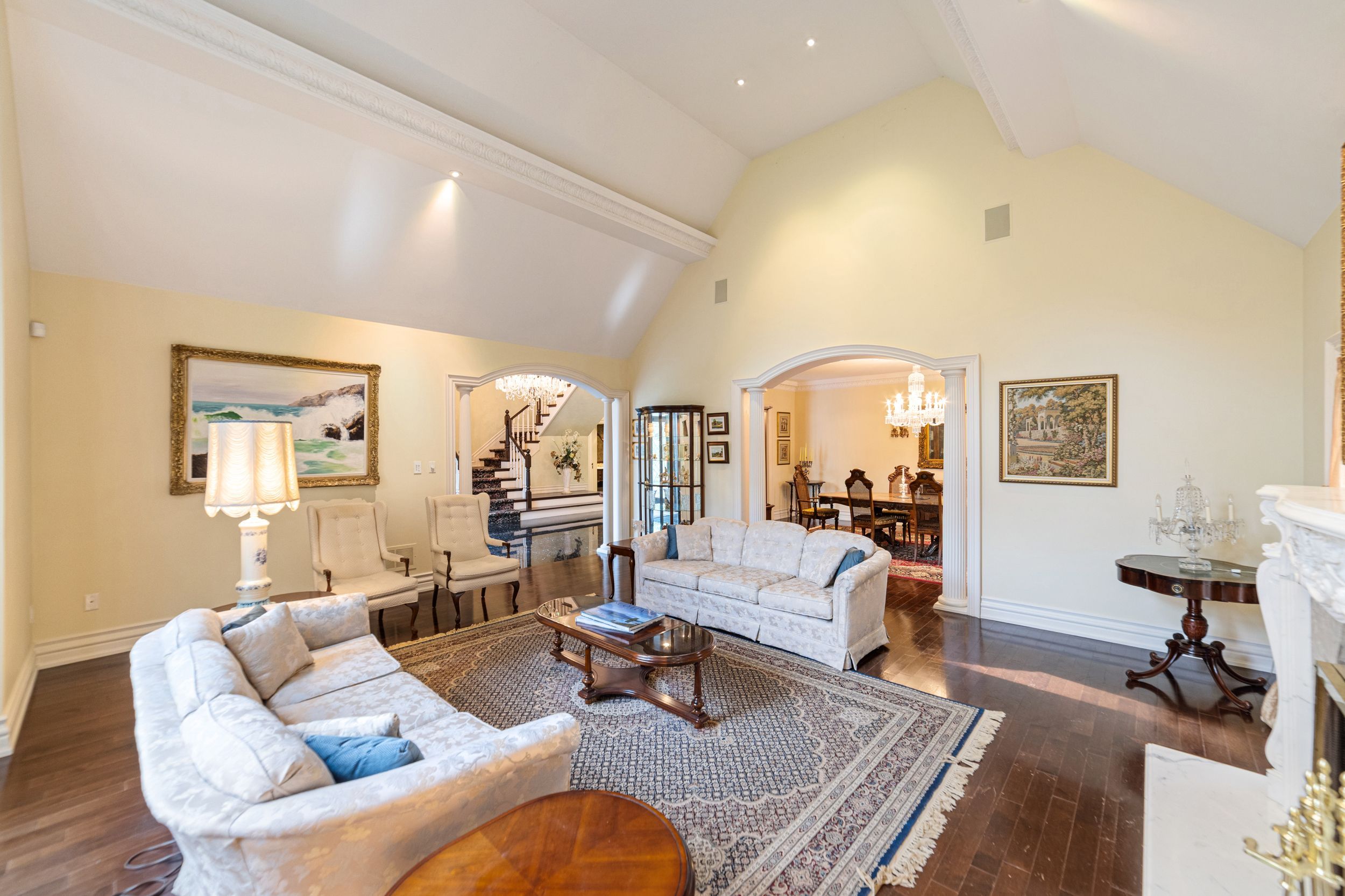 A Rare Executive gated 1.39-acre ravine estate in Morrison sought after community timeless elegance meets modern luxury this residence provides unmatched privacy, lush landscaping, & refined outdoor living. Through the custom 8-foot beveled glass entry doors, the soaring foyer sets the tone with emerald pearl granite floors, a handcrafted Austrian crystal chandelier on motorized lift, & a sweeping French Provincial staircase with wool Victorian Tapestry runner. The main floor boasts elegant formal living & dining rooms with hand-carved marble fireplaces, cathedral ceilings, plaster mouldings, & Palladian windows framing ravine views. A richly appointed library & office feature maple plank flooring, crown moulding, & custom draperies. The family room offers panoramic vistas & a mahogany fireplace, while the chefs Hawthorne kitchen impresses with cherry cabinetry, granite surfaces, premium appliances, & a walkout to the terrace. Upstairs, the luxurious primary suite includes a two-way fireplace, custom lighting, & a walk-in closet with attic access. The spa-inspired ensuite offers heated floors, Jacuzzi air tub, granite shower, & Strass crystal lighting. Three additional bedrooms each enjoy private ensuites, cathedral ceilings, & custom finishes. A versatile great room with terrace access & a full laundry suite complete this level. The lower level is an entertainers dream with a billiards & games room, full walnut bar, gym, media lounge, & spa retreat with sauna & steam shower. Radiant heated floors, & abundant storage enhance the space. Outdoors, the property is equally breathtaking with two stone gazebos joined by a large pergola, extensive walking paths, & a serene koi pond and a Japanese-inspired garden creating a private resort-like escape. With 4+1 bedrooms, 7 bathrooms, elevator access to all levels, multiple terraces, & a gated circular driveway, this estate offers over 10,000 sq. ft. of refined living in one of Oakville's most coveted neighbourhoods.