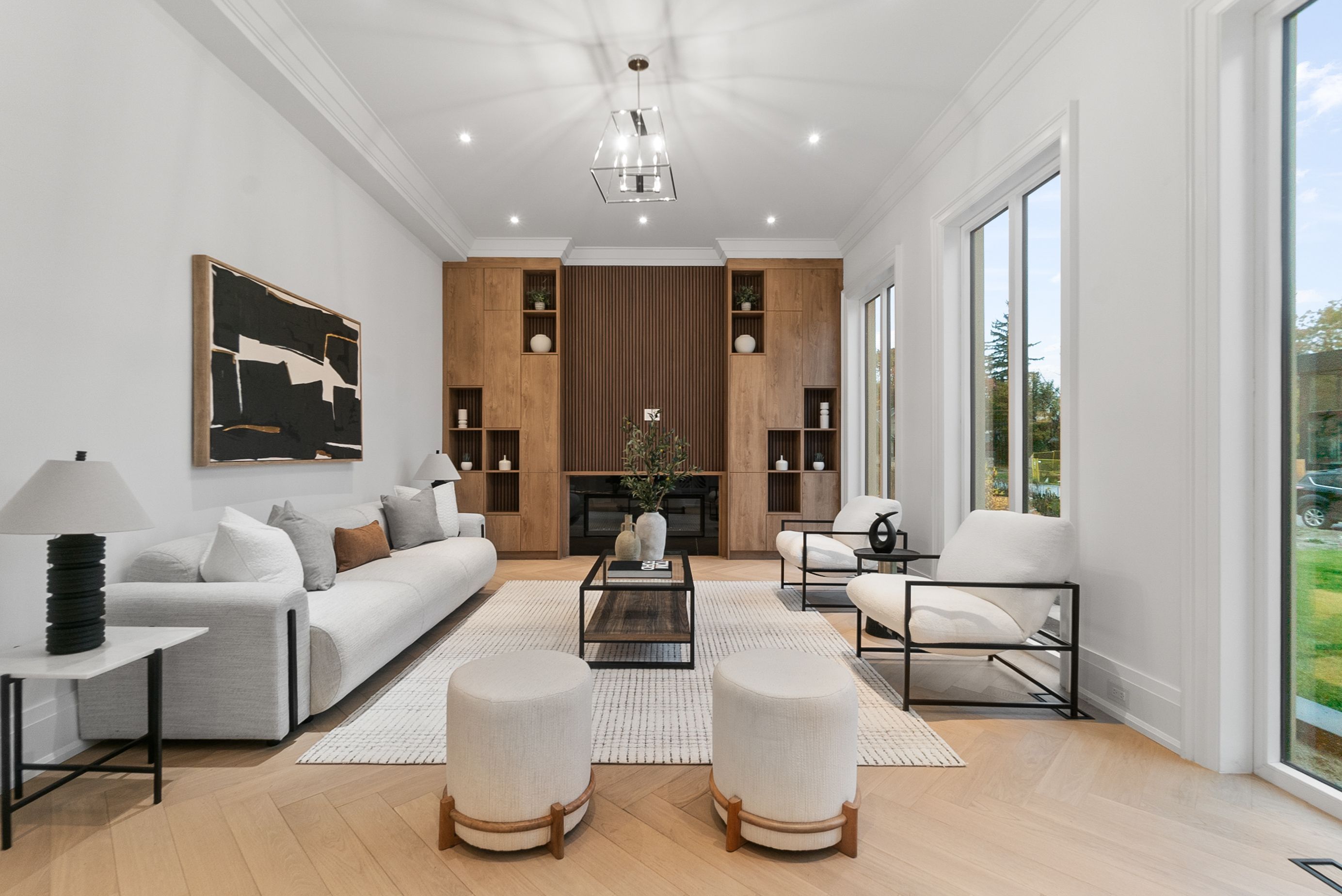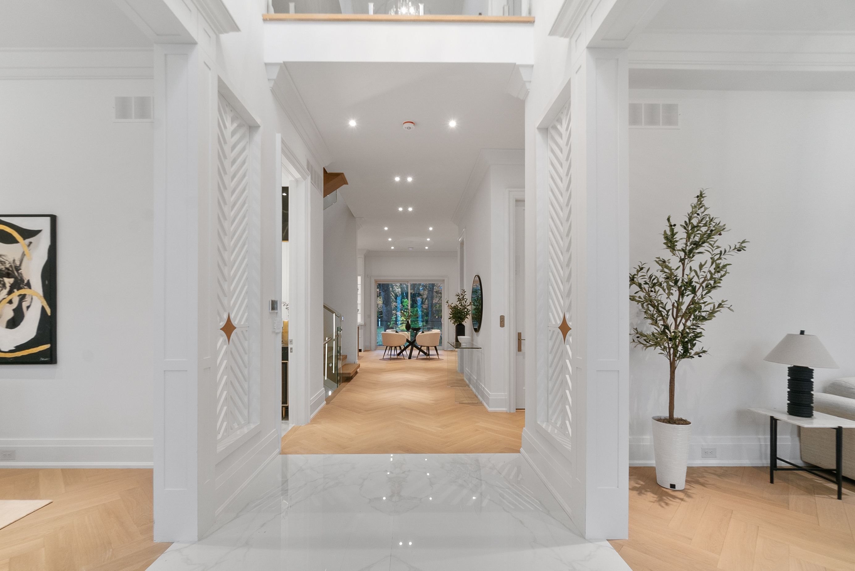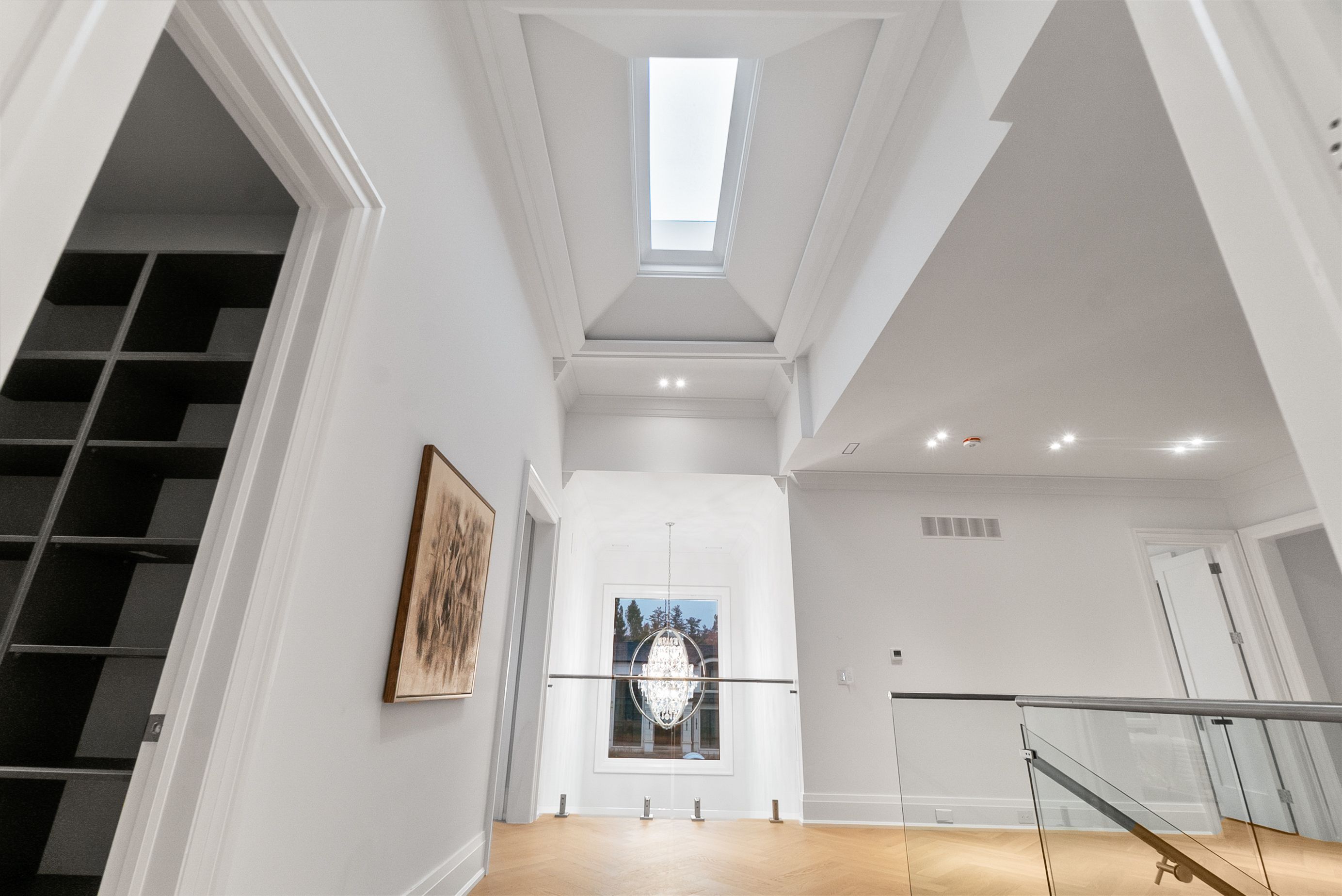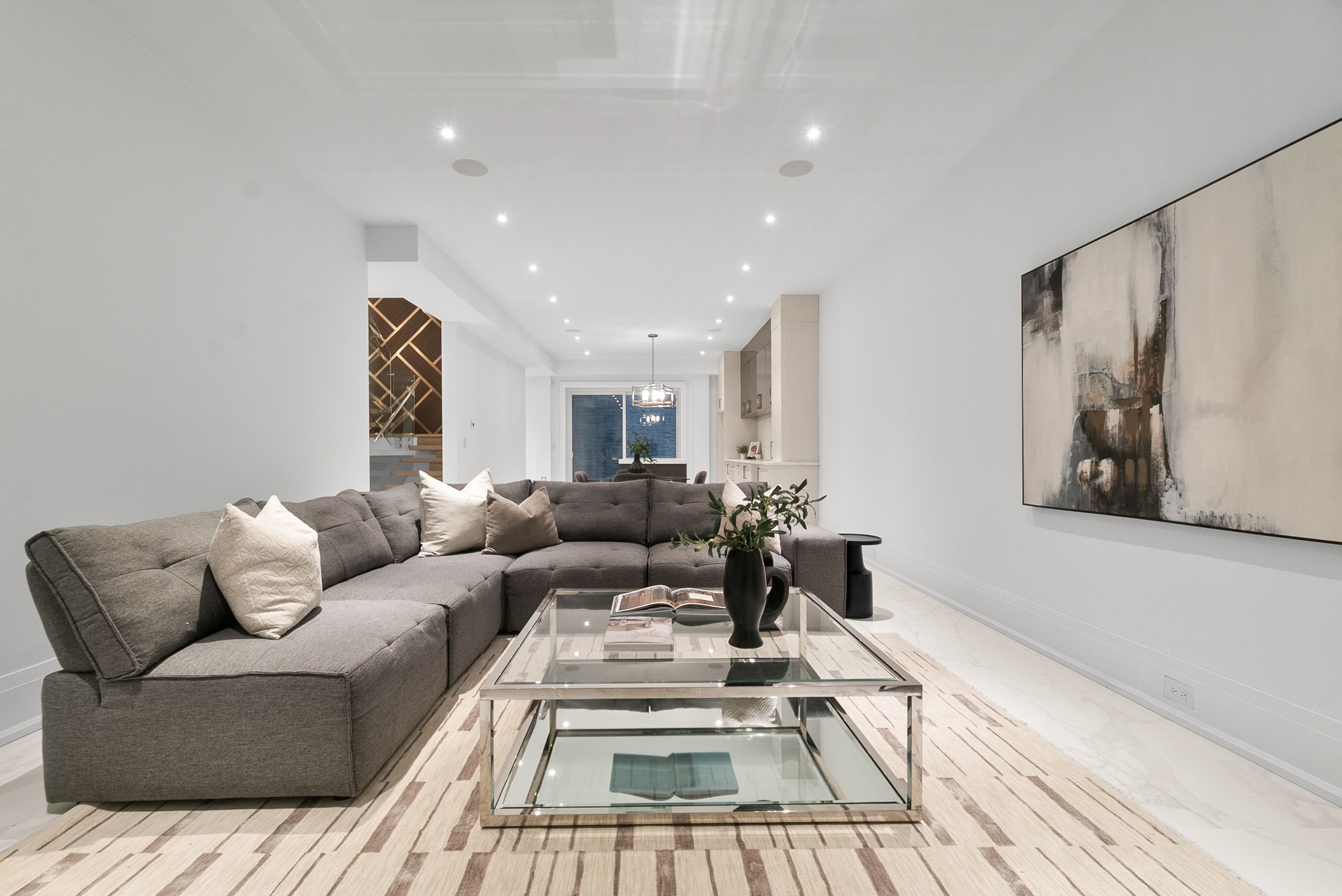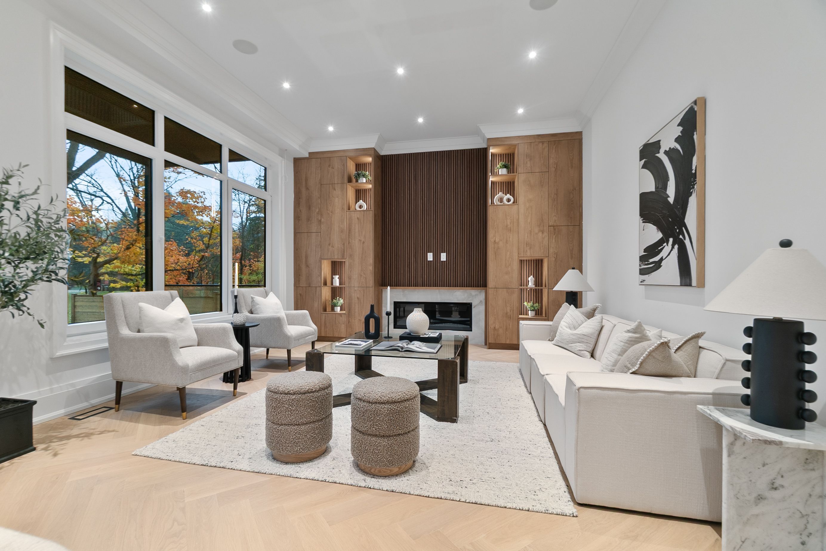 Set within one of Oakville's most distinguished enclaves, 84 Pebbleridge Place is a newly built modern estate that epitomizes architectural artistry and offers over 7,000 SF of refined living space. Poised on a private lot, this residence showcases a brick and limestone exterior, full-height glass walls a curated palette of luxurious finishes for the most discerning buyer. A grand double-height foyer introduces the home w/ polished marble-style porcelain and bespoke detailing. Beyond, herringbone hardwood floors flow through expansive principal rooms to a family room defined by a sleek wood feature wall, gas fireplace, and integrated Control4 automation for effortless entertaining. The designer kitchen is both statement and function, featuring an oversized island, full-height custom cabinetry, and Calacatta-style quartz counters w/ a custom backsplash. It opens directly to a covered deck w/ a gas fireplace, perfect for al fresco dining and evenings. An elevator and striking skylit staircase lead to the upper level, where four bedrooms each feature walk-in closets, tray ceilings, and private ensuites finished to spa-like standards. The primary suite is a serene retreat w/ a boutique-style dressing room and five-piece ensuite boasting a freestanding tub, oversized glass shower, full-height stone surrounds, and heated flooring. The lower level continues the theme of luxury and versatility, offering a heated basement w/ large-format porcelain slab flooring throughout. Designed for both relaxation and entertainment, this level includes a secondary kitchen, dining area, expansive living space, fitness room w/ cushioned flooring, an acoustically designed theatre, and three additional ensuite bedrooms, all enhanced by full-size windows and a separate entrance. Additional highlights incld: a rough-in sauna, built-in speakers, and recessed lighting elevate comfort and ambiance, while upper-level laundry & a tandem garage w/ epoxy flooring complete this modern masterpiece.