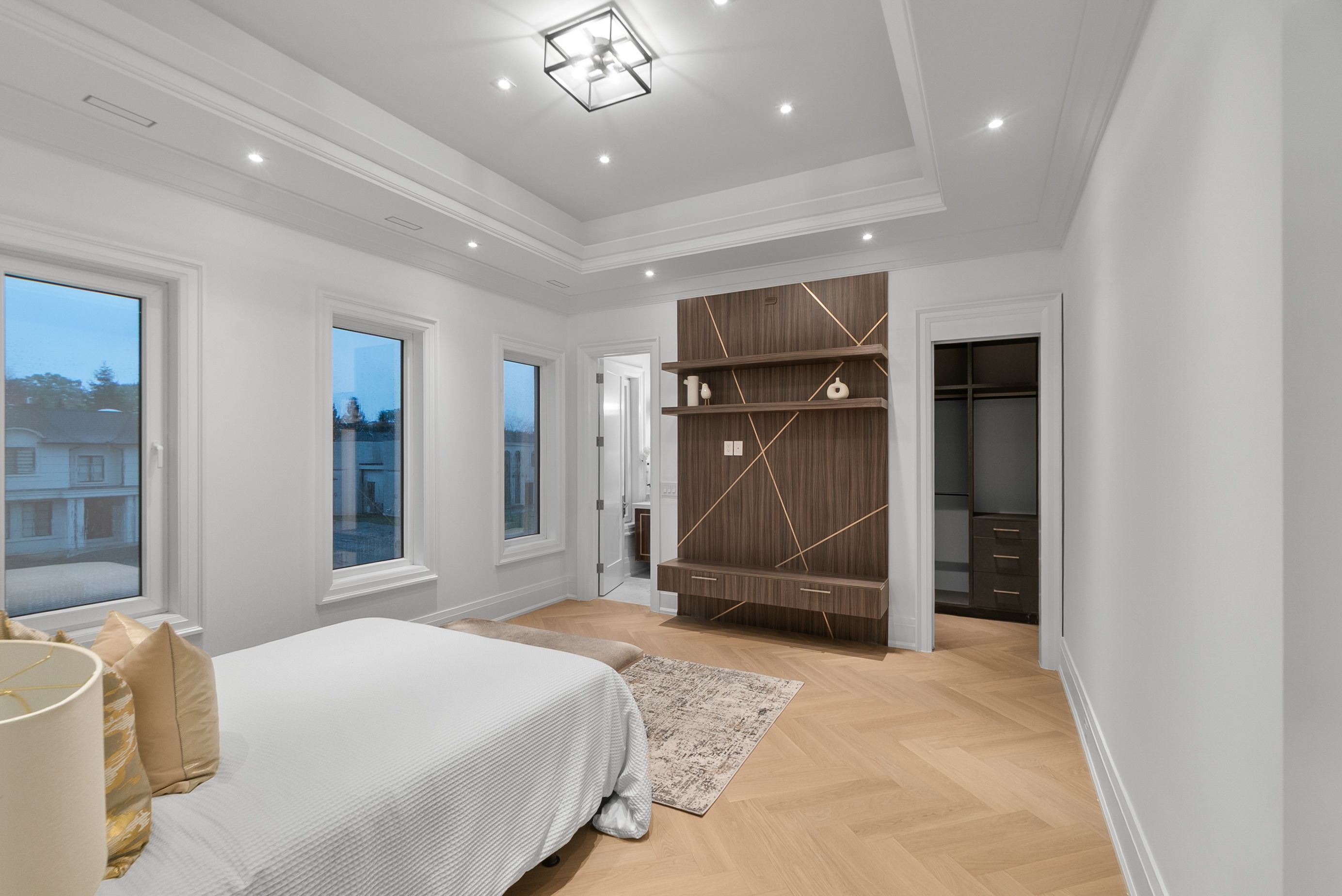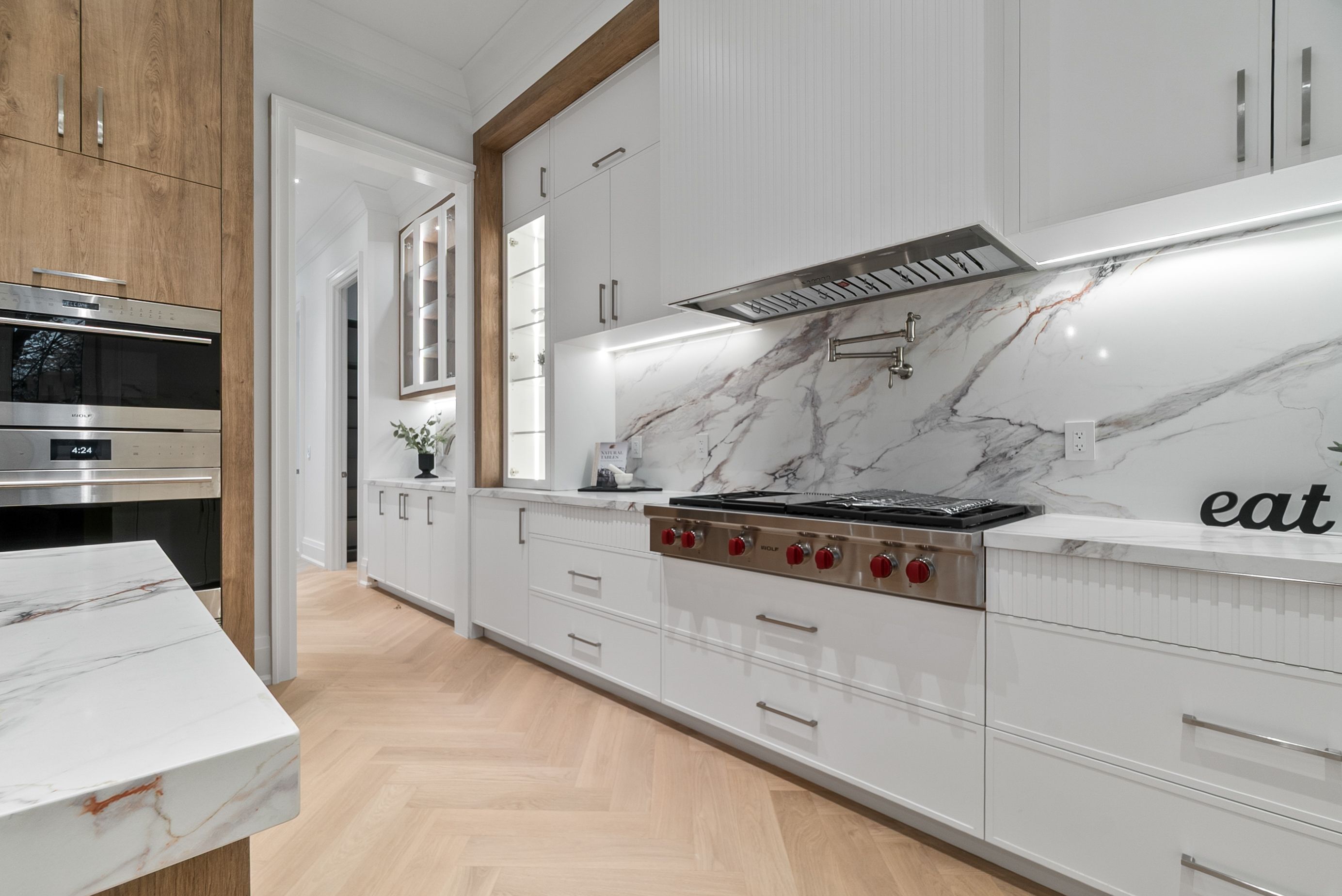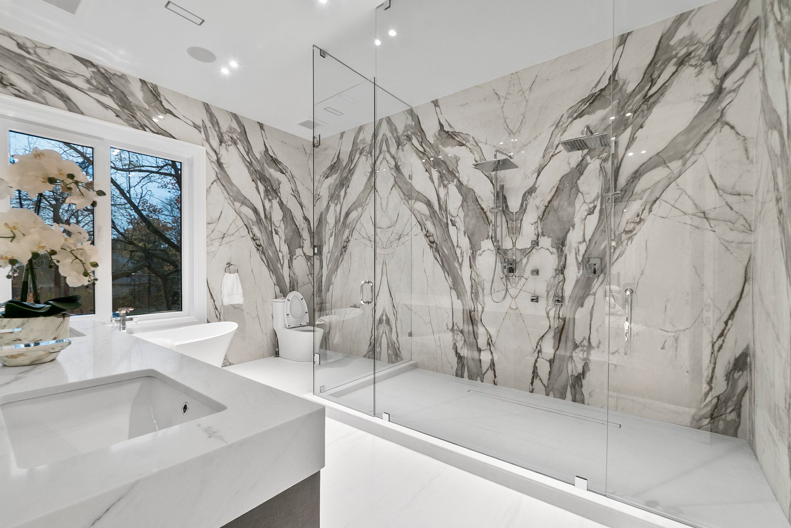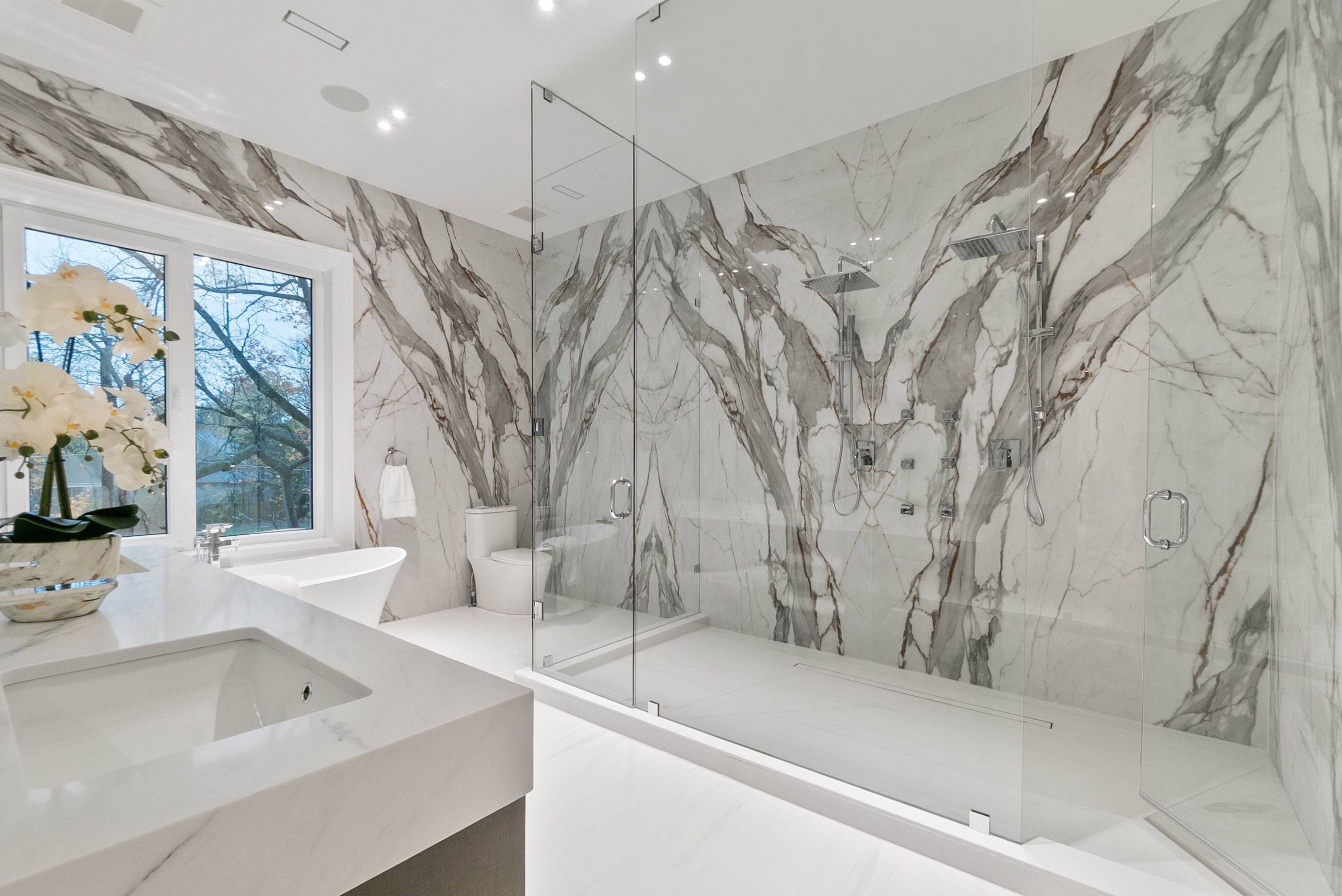 Set within one of Oakville's most distinguished enclaves, 84 Pebbleridge Place is a newly built modern estate that epitomizes architectural artistry and offers over 7,000 SF of refined living space. Poised on a private lot, this residence showcases a brick and limestone exterior, full-height glass walls a curated palette of luxurious finishes for the most discerning buyer. A grand double-height foyer introduces the home w/ polished marble-style porcelain and bespoke detailing. Beyond, herringbone hardwood floors flow through expansive principal rooms to a family room defined by a sleek wood feature wall, gas fireplace, and integrated Control4 automation for effortless entertaining. The designer kitchen is both statement and function, featuring an oversized island, full-height custom cabinetry, and Calacatta-style quartz counters w/ a custom backsplash. It opens directly to a covered deck w/ a gas fireplace, perfect for al fresco dining and evenings. An elevator and striking skylit staircase lead to the upper level, where four bedrooms each feature walk-in closets, tray ceilings, and private ensuites finished to spa-like standards. The primary suite is a serene retreat w/ a boutique-style dressing room and five-piece ensuite boasting a freestanding tub, oversized glass shower, full-height stone surrounds, and heated flooring. The lower level continues the theme of luxury and versatility, offering a heated basement w/ large-format porcelain slab flooring throughout. Designed for both relaxation and entertainment, this level includes a secondary kitchen, dining area, expansive living space, fitness room w/ cushioned flooring, an acoustically designed theatre, and three additional ensuite bedrooms, all enhanced by full-size windows and a separate entrance. Additional highlights incld: a rough-in sauna, built-in speakers, and recessed lighting elevate comfort and ambiance, while upper-level laundry & a tandem garage w/ epoxy flooring complete this modern masterpiece.