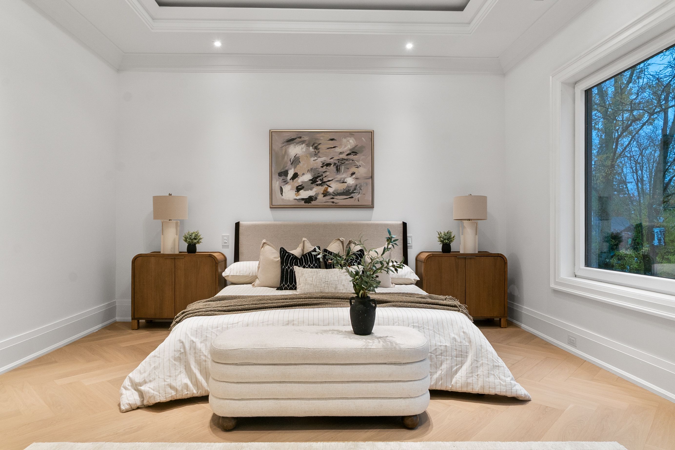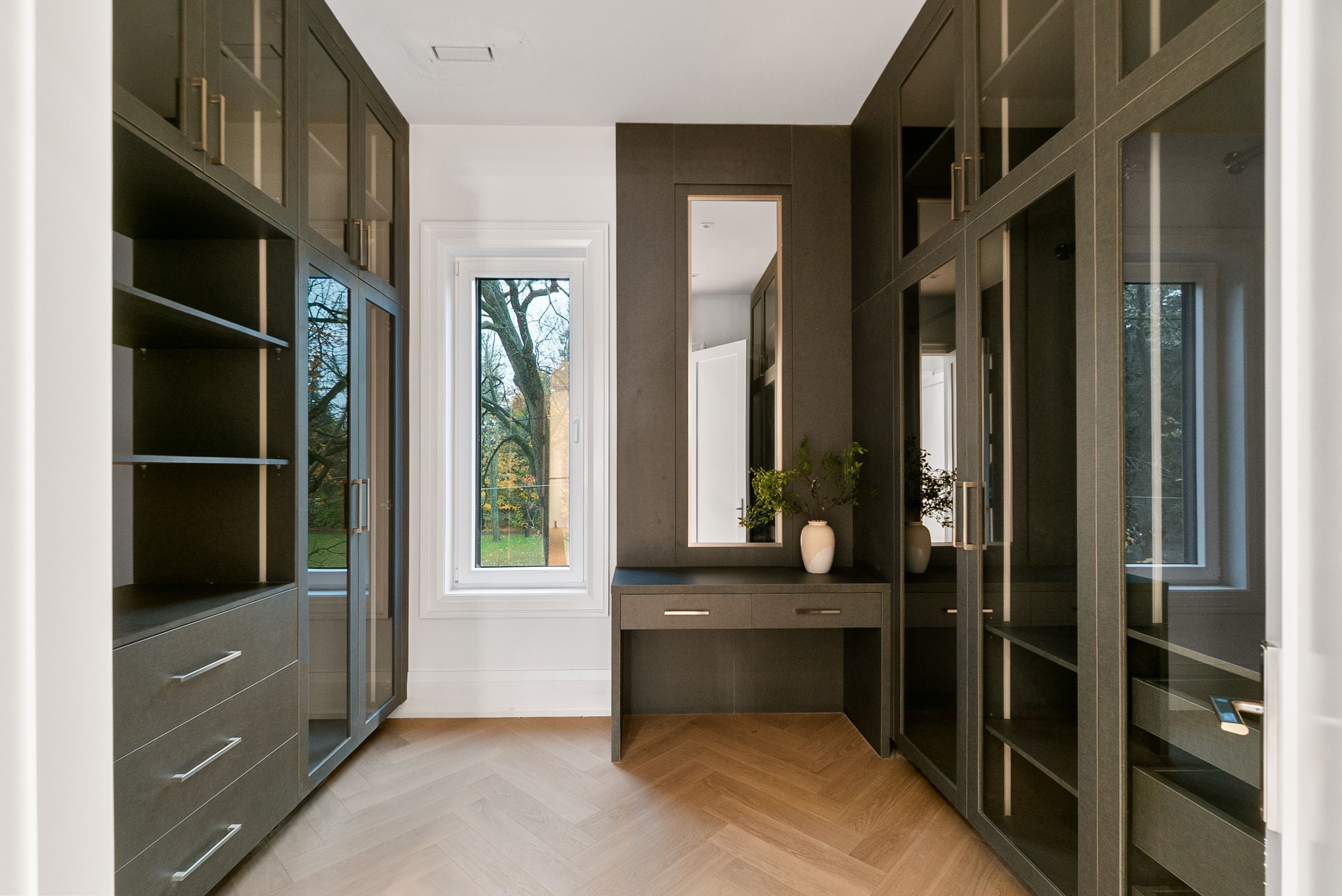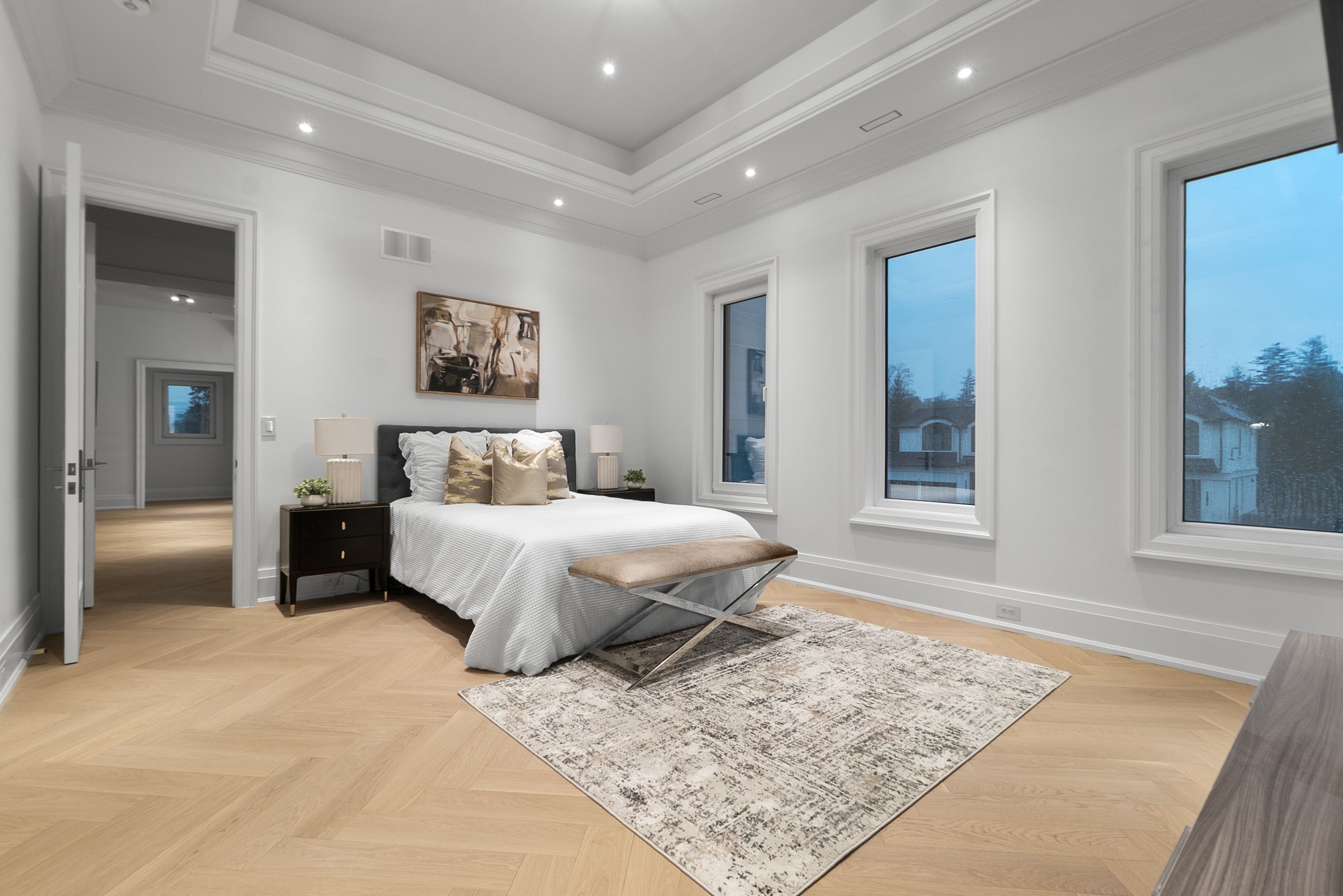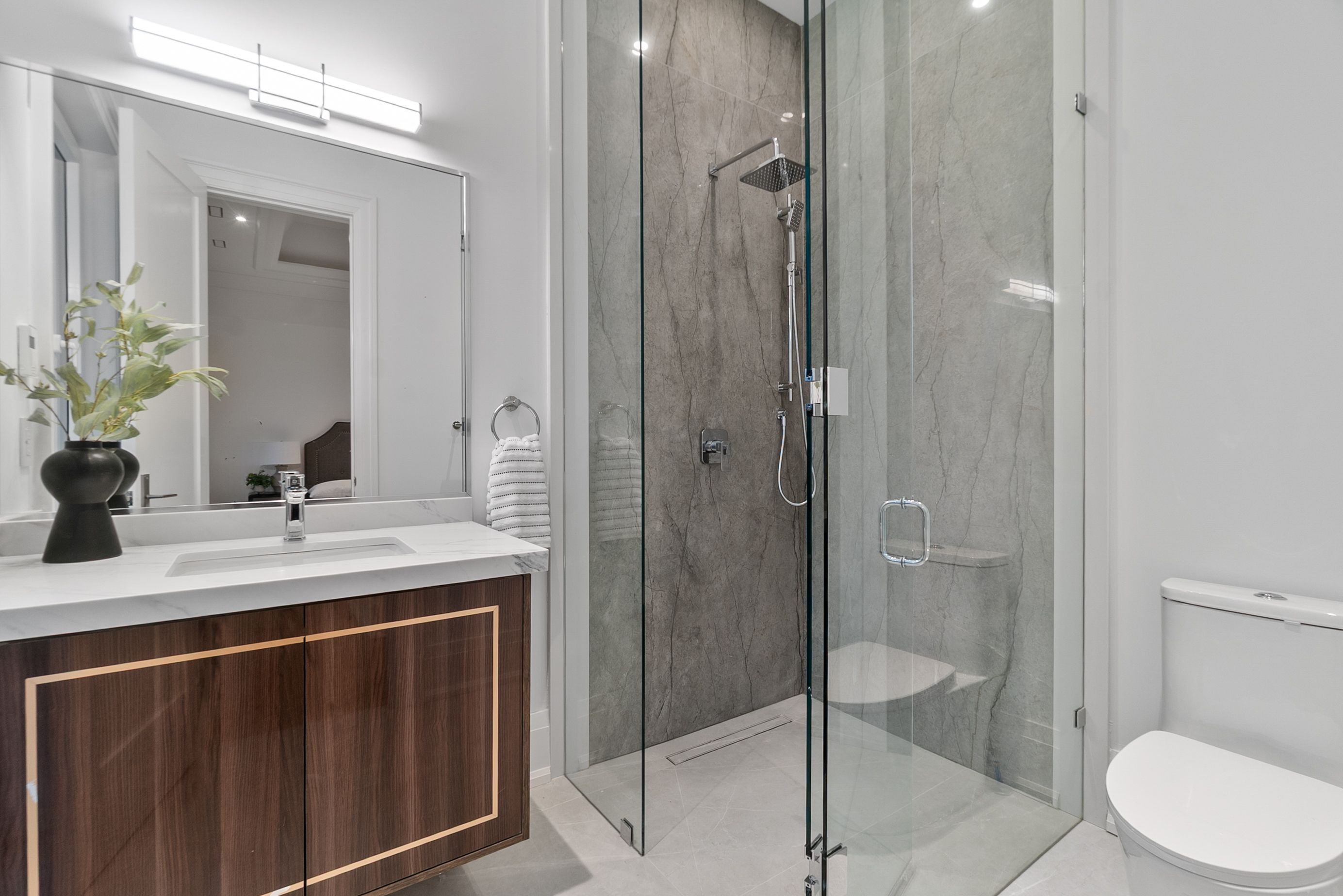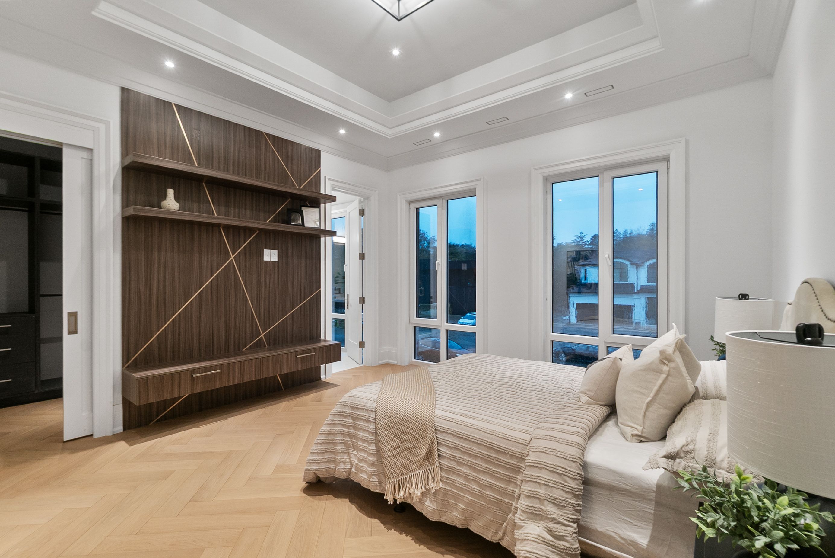 Set within one of Oakville's most distinguished enclaves, 84 Pebbleridge Place is a newly built modern estate that epitomizes architectural artistry and offers over 7,000 SF of refined living space. Poised on a private lot, this residence showcases a brick and limestone exterior, full-height glass walls a curated palette of luxurious finishes for the most discerning buyer. A grand double-height foyer introduces the home w/ polished marble-style porcelain and bespoke detailing. Beyond, herringbone hardwood floors flow through expansive principal rooms to a family room defined by a sleek wood feature wall, gas fireplace, and integrated Control4 automation for effortless entertaining. The designer kitchen is both statement and function, featuring an oversized island, full-height custom cabinetry, and Calacatta-style quartz counters w/ a custom backsplash. It opens directly to a covered deck w/ a gas fireplace, perfect for al fresco dining and evenings. An elevator and striking skylit staircase lead to the upper level, where four bedrooms each feature walk-in closets, tray ceilings, and private ensuites finished to spa-like standards. The primary suite is a serene retreat w/ a boutique-style dressing room and five-piece ensuite boasting a freestanding tub, oversized glass shower, full-height stone surrounds, and heated flooring. The lower level continues the theme of luxury and versatility, offering a heated basement w/ large-format porcelain slab flooring throughout. Designed for both relaxation and entertainment, this level includes a secondary kitchen, dining area, expansive living space, fitness room w/ cushioned flooring, an acoustically designed theatre, and three additional ensuite bedrooms, all enhanced by full-size windows and a separate entrance. Additional highlights incld: a rough-in sauna, built-in speakers, and recessed lighting elevate comfort and ambiance, while upper-level laundry & a tandem garage w/ epoxy flooring complete this modern masterpiece.