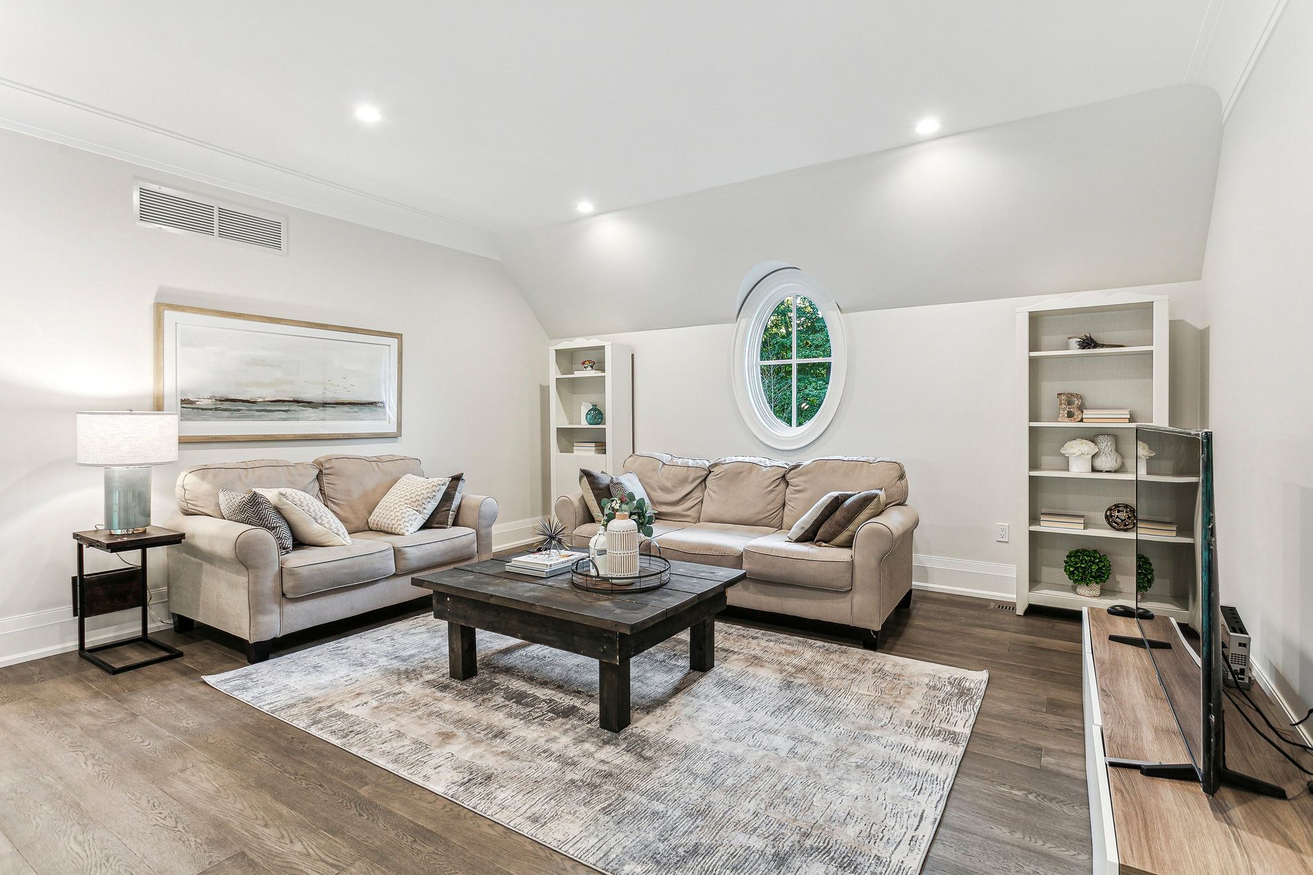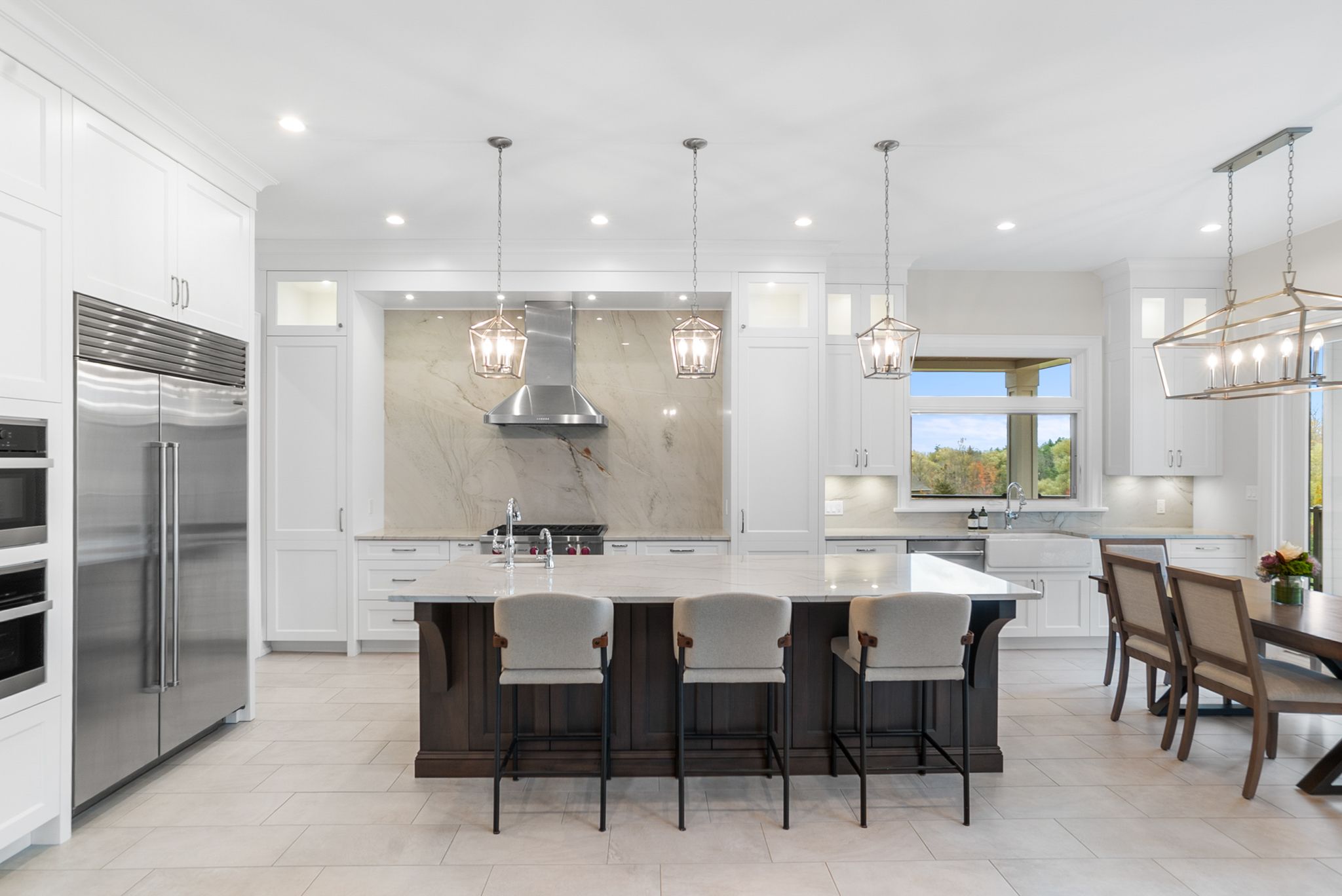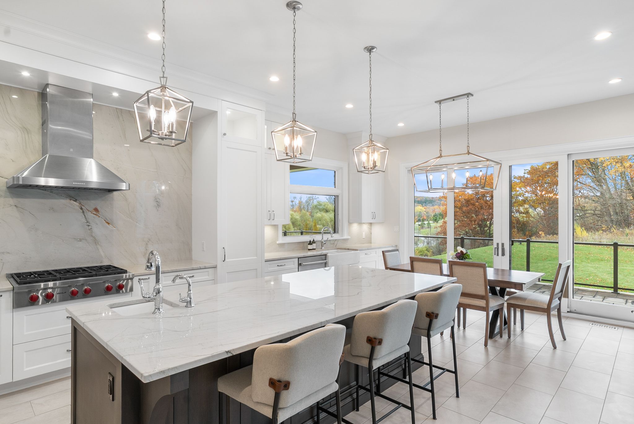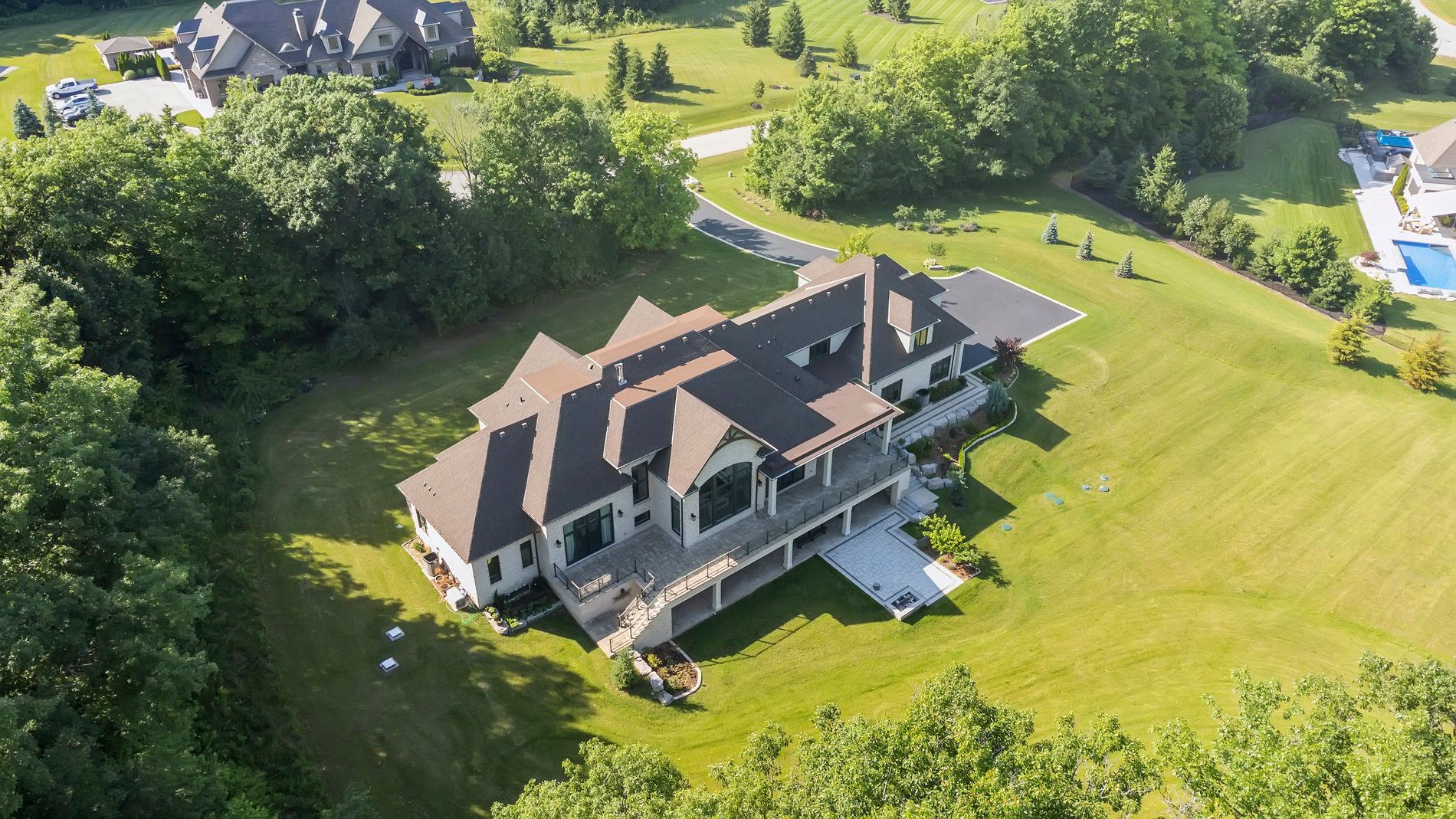 Set against the breathtaking backdrop of Mt. Nemo, this custom-built estate showcases the ultimate balance of luxury, privacy, and natural beauty. Perfectly situated at the end of a quiet cul-de-sac, this home offers exceptional privacy on over 2 private acres. This 6,400 sq.ft home, built in 2019, features 5 spacious bedrooms & 5 elegant bathrooms. A bright 3,400sqft walk-out lower level expands the home's footprint, offering incredible potential for customized living or entertaining space! A grand centre-hall entrance opens to a cathedral-height great room w/ 22ft ceilings, a porcelain-slab fireplace wall, wood beams, and floor-to-ceiling windows that fill the space with natural light. The main kitchen is a chef's dream, complete w/ a large island, granite counters, and high-end appliances, complemented by a secondary kitchen with a 6-burner Wolf gas range and walk-in pantry- ideal for entertaining. The formal dining room connects through a butler's servery with pocket doors, while hardwood floors flow throughout and radiant-heated flooring warms all tiled areas. A 3-car garage offers interior access to both levels. Smart-home lighting, climate control, and an 8-camera security system extend throughout the home for ultimate comfort and safety. The main-level primary suite, with soaring 14ft ceilings, opens to the rear porch and treeline views & includes 2 walk-in closets w/ a built-in vanity & a luxurious 5-pc ensuite. 2 staircases then lead to spacious bedrooms and a loft with glass railing overlooking the great room & forest views. A convenient storage room is also flexibly roughed in for an additional bathroom. Outdoors, venue-style entertaining is effortless with a covered porch and uninterrupted treetop views.Steps from Lowville Golf Course and major highways 407,QEW & 403 just mins away, this property blends peaceful country living with city convenience for a perfect mix of luxury, privacy, and accessibility in one of Burlington's most prestigious enclaves.