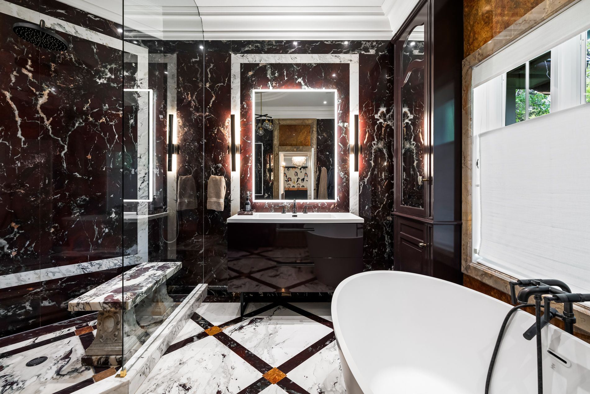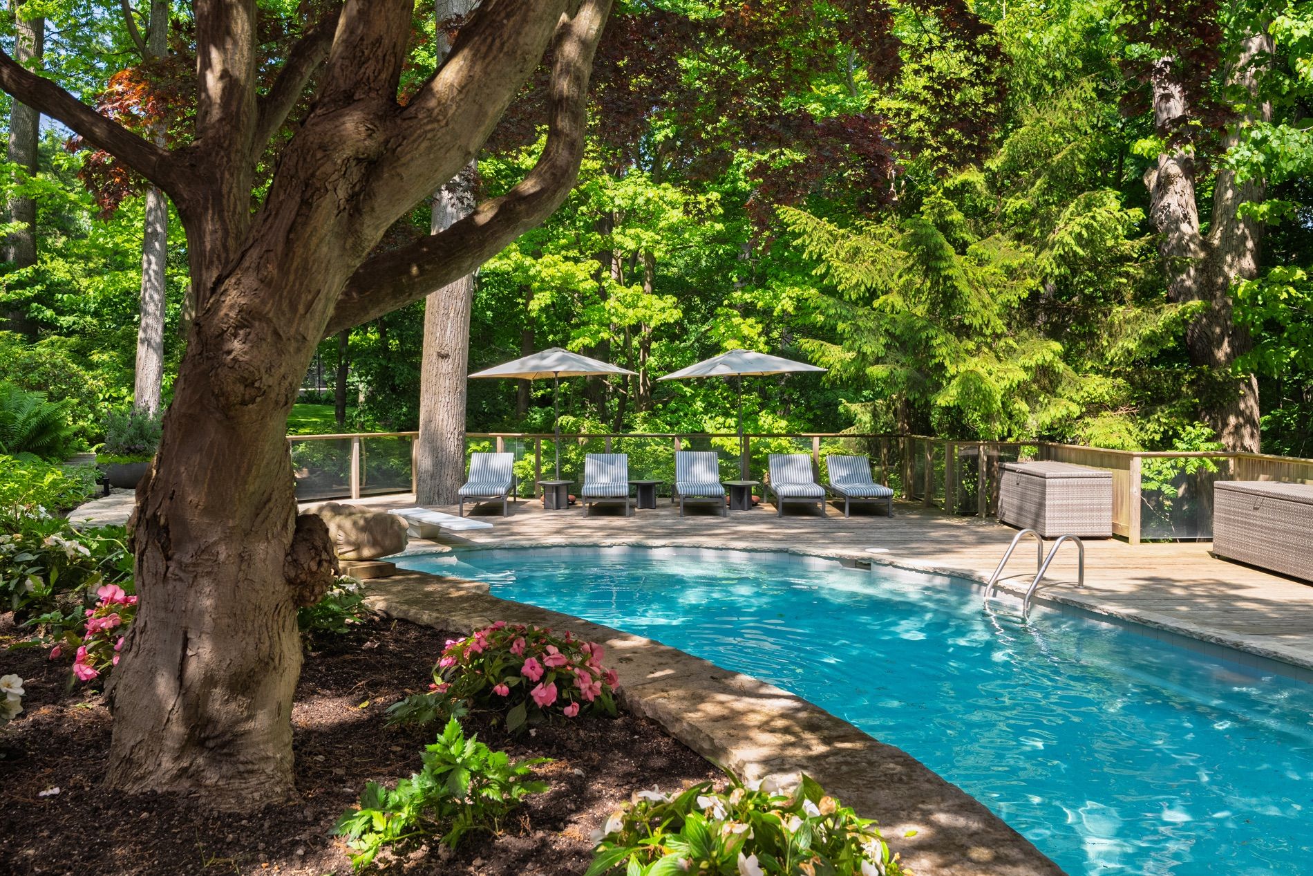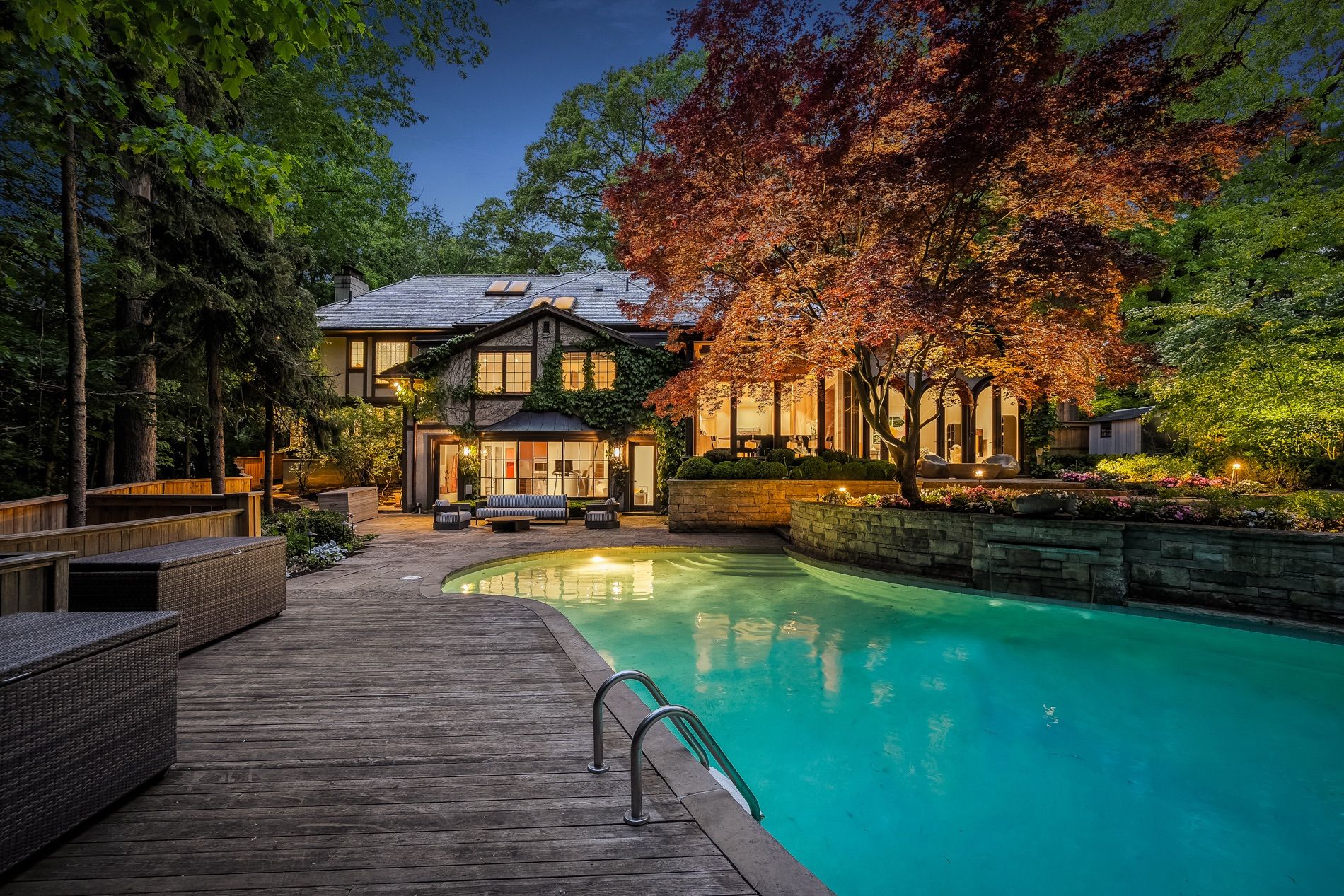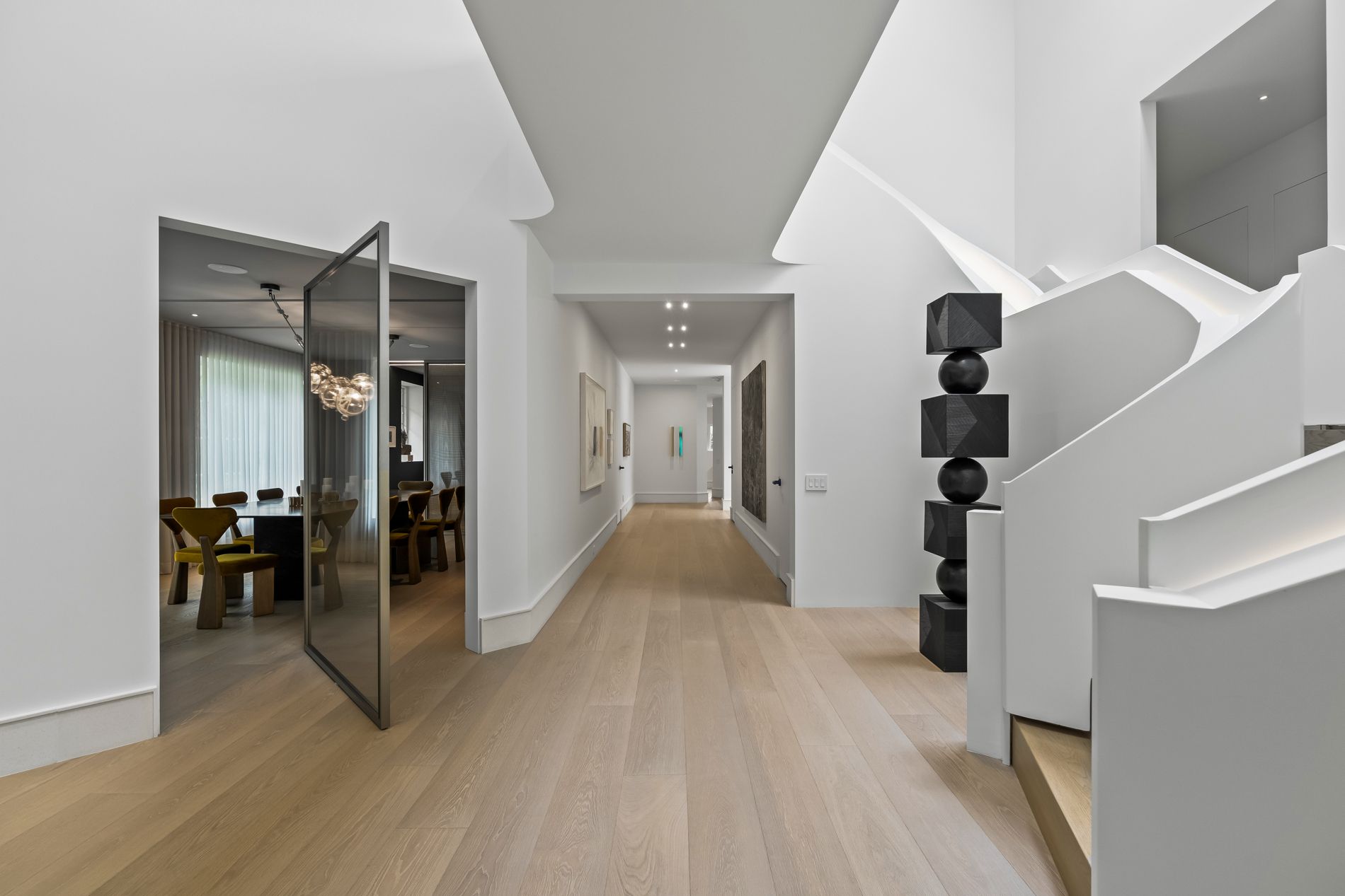 Leave the city in the city. This serene estate invites you to do just that. Nestled behind the gates on one of Toronto's most exclusive streets, 25 North Drive is a rare architectural offering: a quiet, confident statement where design, art, and nature coexist in harmony. Thoughtfully reimagined through an internationally acclaimed renovation by Reflect Architecture and featured in leading architectural and design publications. Executed with masterful precision, the transformation celebrates both innovation and restraint, elevating everyday living to an art form. At the heart of the home lies a truly exceptional Obumex kitchen, handcrafted in Belgium. This kitchen thoughtfully integrates artful sensibilities, natural inspirations and family-oriented functionality. With minimalist lines and bespoke finishes, this space is more than a kitchen, it is a sculpture in daily use. Expansive windows frame ravine views and infuse the interiors with natural light. The main floor is tailored for elegant living, featuring sun-filled rooms, with an inviting family room, and that stunning kitchen which opens seamlessly to the lush backyard. The upper levels include an expansive primary wing with dual dressing rooms, a spa-inspired ensuite, and treetop views. Four additional bedrooms offer ensuite baths, providing privacy and independence for family or guests. The lower level features a gym, recreation room, kitchenette, and full bath, making it ideal for wellness and entertaining. Manicured gardens, mature trees, a ravine backdrop, a sparkling pool, and a private tennis court elevate the everyday. With architectural pedigree, natural beauty, and a legacy of care, 25 North Drive is more than a home. It is a lifestyle defined by privacy, presence, and permanence. Some homes are built for living, this one was crafted for a life well lived.