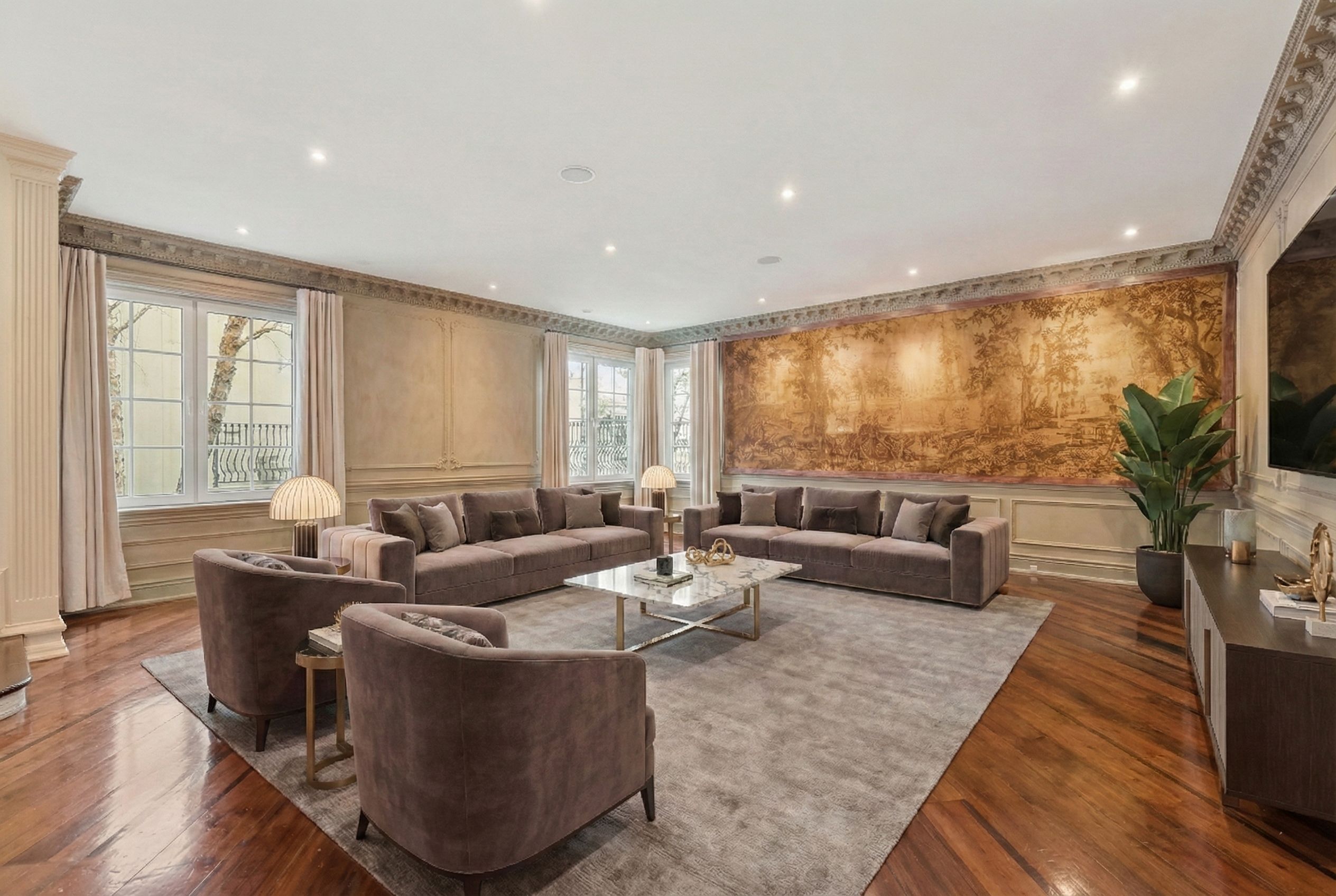 Experience the pinnacle of privacy and prestige in this 14,000 sq.ft. limestone clad estate, situated on a wooded 1-acre lot directly across from Heartlake Conservation Area. With a replacement value of $12.8M, this masterpiece underwent a 4 year rebuild that radiates luxury, and was completed in 2008. Featuring a 4-car garage with wash bay and a chef's kitchen with double islands, galley kitchen, and servery. The residence hosts 5 ensuite bedrooms, including a jaw-dropping 3,300 sq.ft. primary retreat with a private library, wet bar, Onyx-clad bath, walk-out patio, and a 1,500 sq.ft. boutique-style closet lined with custom millwork. The walk-out lower level redefines entertainment, offering a theatre, gym, nanny suite, playroom, and bar. The absolute showstopper is the indoor pool facility with a jacuzzi, changeroom with shower, and oversized glass doors that retract to create a seamless indoor/outdoor oasis unlike anything you've seen in the GTA. Outside, enjoy a stone courtyard and putting green surrounded by tranquil nature. Located near top-tier estates and Hwy 410, this home truly does have it all.