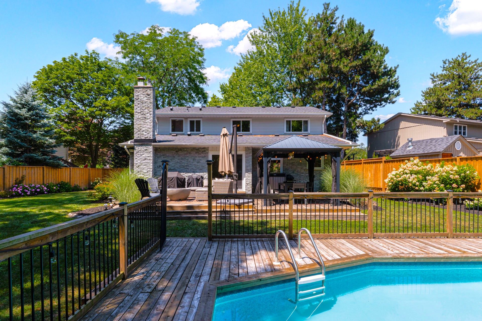 Set in one of Burlington's most desirable communities...among rolling hills, mature trees, and a golf course setting, this beautifully upgraded 4+1 bedroom, 2.5 bath home offers a true retreat right in the city. The home offers a double car garage, a wide premium pie-shaped lot and it all backs directly onto a ravine-providing rare privacy and a serene, "cottage-like" setting. The lot provides more than 100ft of treed beauty stretching across the back, it's a backyard you'll never want to leave. Inside you'll find the fully renovated main floor with spacious dining room, and the show-stopping kitchen featuring quartz countertops, a 10-foot island, gas stove, farmhouse sink, and endless storage. The kitchen flows seamlessly into a warm and inviting living room with agas fireplace, plus a walkout to the backyard. Step outside to find a two-tier deck, landscaped gardens, a generous green space, and a sparkling pool-all framed by mature trees. The main floor includes a convenient laundry and mudroom. Upstairs you'll find 4 generous bedrooms, 2full bathrooms, including a stylish primary ensuite bath. The newly finished basement adds even more space with a 5th bedroom, large rec room, and ample storage. All of this is set in a neighbourhood known for its natural beauty, quick highway and shopping access. It has close proximity to hiking, and biking trails, and Tyandaga Golf Course. If you've been searching for the perfect family home...your wait is over!