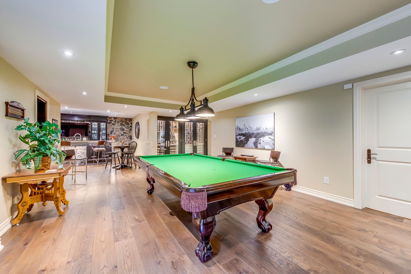 Nestled in the prestigious Whiteoaks of Jalna, Lorne Park, this custom-built home offers over7,400 sq ft of meticulously designed living space with exquisite solid wood finishes throughout. Warm and inviting, this stunning residence is perfect for a busy family, offering five spacious bedrooms on the second floor, each with walk-in closets. The master suite features a cozy fireplace, a walk-out to a private deck, his-and-her closets, and a 5pc spa ensuite. The gourmet kitchen boasts top-of-the-line appliances, breakfast area and a massive pantry. A large, functional mudroom and laundry room provide ample storage and convenience for everyday living. The home also includes a three-car tandem garage offers plenty of space for vehicles and additional storage. The backyard is a private oasis with a beautifully treed lot, an inground saltwater pool with waterfall, cabana with 2pc, screened patio area, hot tub, and fire pit. The fully finished basement is designed for entertainment and functionality. It features a pub-style bar, a billiards area with a pool table, a theater room, a gym, a nanny suite, walkout to patio and a built in climate-controlled wine fridge capable of storing 900bottles. House includes a built in speaker system throughout and other upgrades, this exceptional home seamlessly blends luxury, comfort , and practicality, making it the perfect place for your family to create lasting memories.