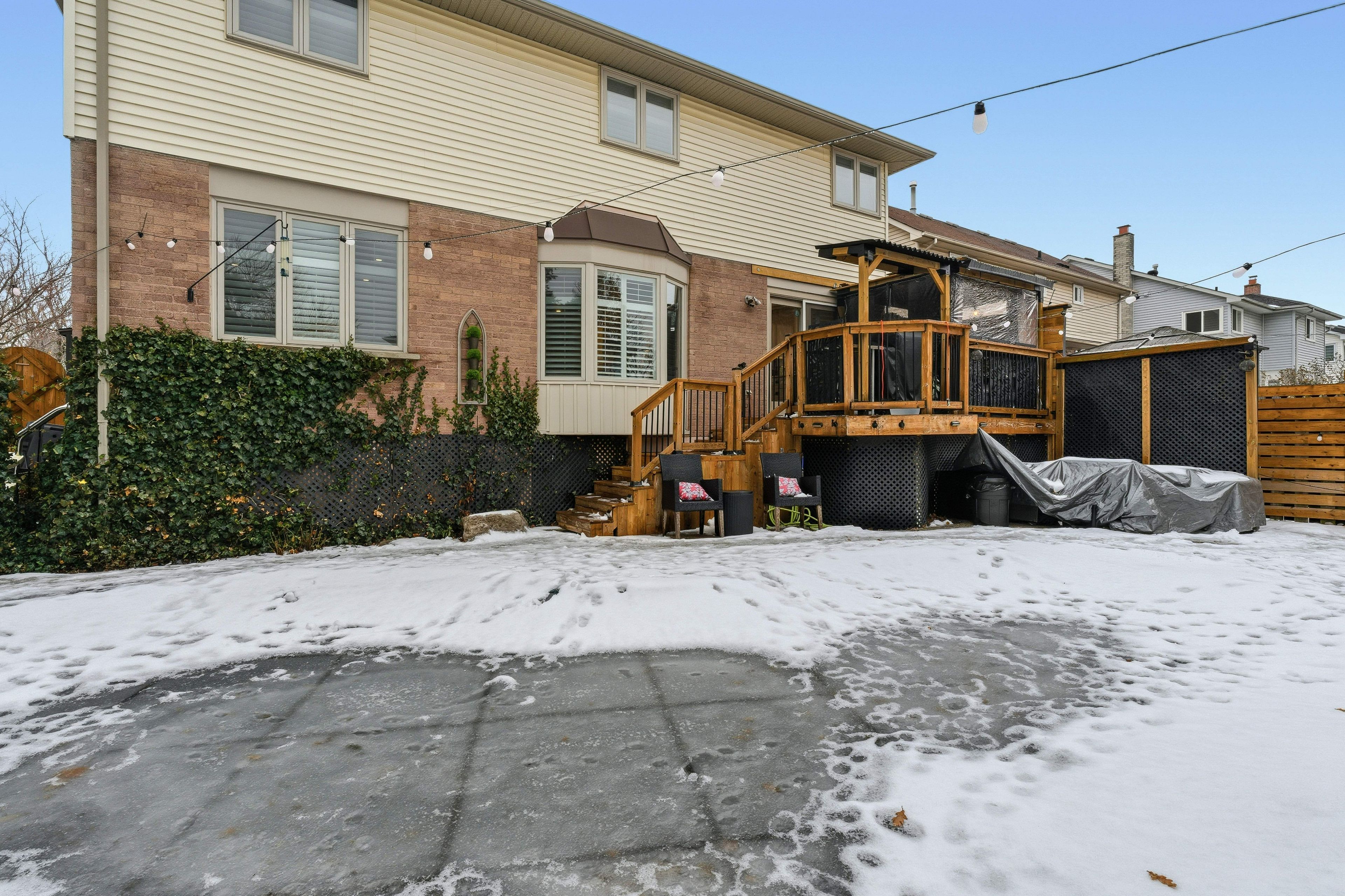 Welcome to your dream home in the highly sought after Headon Forest neighbourhood! This beautifully updated 3161 total sq ft residence with beautiful salt water pool boasts a grand foyer with soaring ceilings that welcome you into an open concept space filled with elegance & comfort. Step onto the new hardwood floors that flow seamlessly throughout, leading you to a stunning new kitchen equipped with modern appliances & a spacious island, perfect for culinary adventures & large family gatherings. The open-concept main floor features a dining area that is ideal for hosting dinner parties, a cozy family room and a private living room for relaxation. Convenience is key with a main floor laundry room that offers direct access to the garage, along with a stylish powder room for guests. Retreat to the primary bedroom, which is a true sanctuary with its updated five-piece spa-like ensuite. Three additional spacious bedrooms, each adorned with new hardwood, share a beautifully renovated four-piece main bath. The fully finished lower level is a versatile space featuring a large extra bedroom with its own ensuite, a kitchen area, large recreational room perfect for movie nights, a dedicated workout area, & a separate office perfect for those who work from home. Step outside to your fully fenced yard, where the sparkling saltwater pool awaits-perfect for summer entertaining & relaxation. With schools, parks, trails, & shopping just moments away, this property offers both tranquility & convenience. Updates include - Front Door, Front Porch Stone, Driveway, Deck, Pergola, Painting, Backyard and Front yard Landscaping, Gas BBQ line. Don't miss the chance to call this incredible house your home.