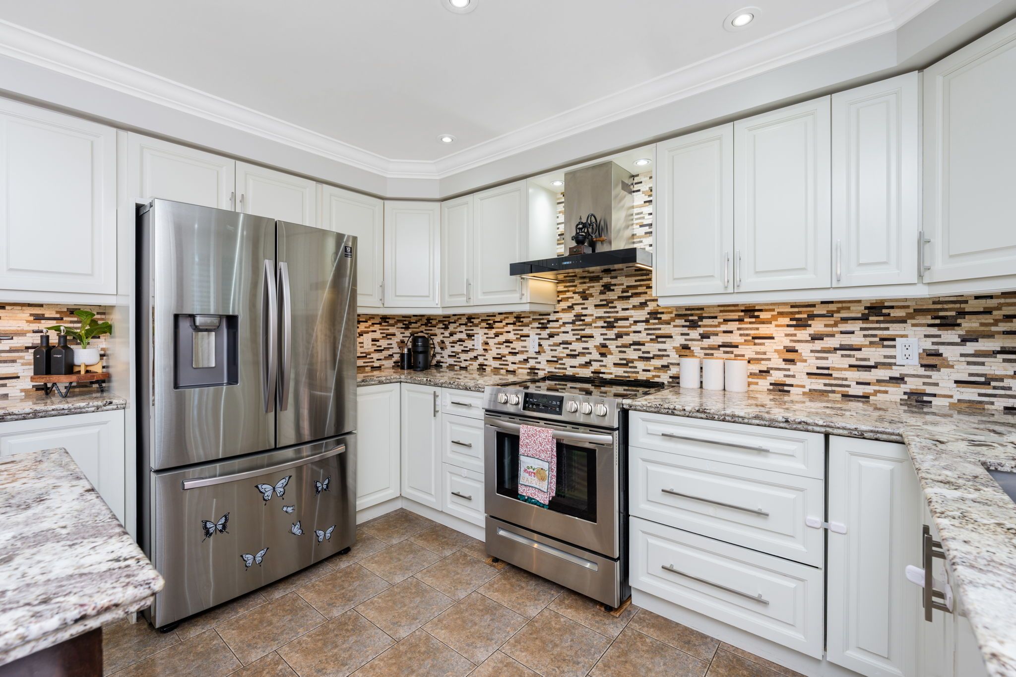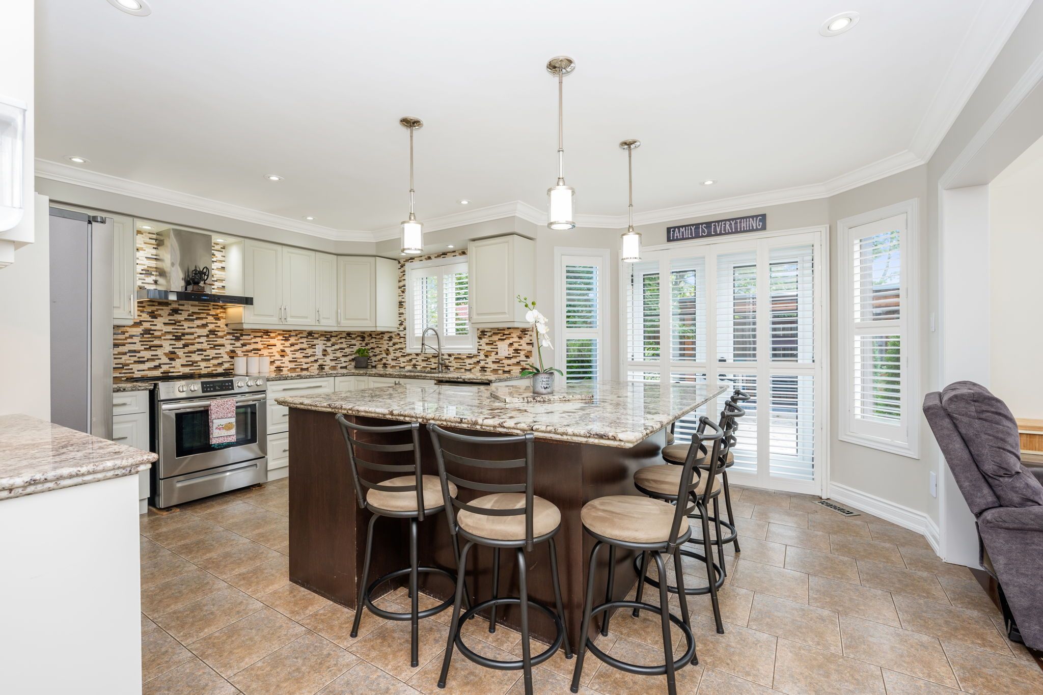 Bring the family! Multi-generational living with 2 primary bedrooms and basement in-law suite with rough-in for kitchen & laundry! A stone walkway, lovely gardens/landscaping, armor stone, covered stone porch and gorgeous entry system welcome you into this impeccable multi-generational home offering stylish hardwood and ceramic flooring, crown molding, California shutters and tasteful décor throughout. A spacious foyer sets the stage for this exceptional home featuring an airy open concept design with formal living and dining rooms for entertaining and spacious family room and kitchen, the heart of the home, located across the back with views over the amazing yard. The kitchen features classy 2-tone cabinetry, large island with seating, granite counter, glass tile backsplash, stainless steel appliances, pot lights and garden door walkout to a tiered patio and yard. The stunning family room features soaring windows and ceiling and is open to the upper-level balcony - talk about Wow factor! Wrapping up the main level is the well-equipped mudroom designed with family in mind, enviable laundry room, powder room and garage access. A sweeping wood staircase takes you to the tastefully finished upper level where you will find a spacious upper hall with views over the family room, 4 spacious bedrooms (2 primary) and 3 full bathrooms. The primary bedrooms enjoy walk-in closets and full ensuites, while the 3rd and 4th bedrooms share the main 4-piece (one with semi-ensuite access). A beautifully finished basement adds to the living space with a rec/living room (rough-in for kitchenette), 2 large bedrooms, 3-piece bathroom (rough-in for laundry), large cold cellar and plenty of storage/utility space. An amazing yard offers a party-sized patio, gazebo, covered barbeque area and lovely landscaping. A double garage and large driveway (parking for 7 cars in total) complete the package. Great location. Close to schools, parks, rec center, trails and main roads for commuters.