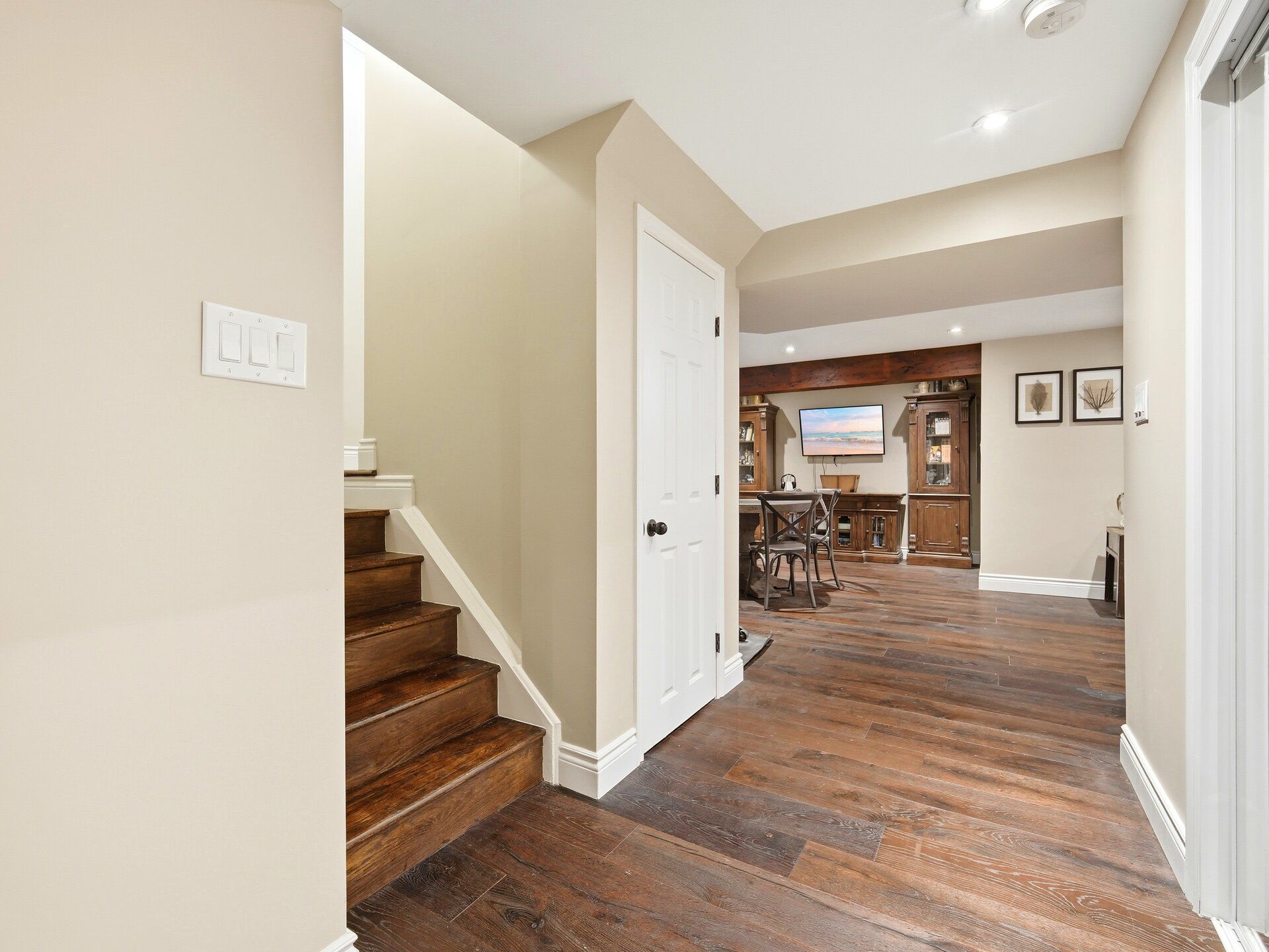 Discover spacious family Home in Milton's sought-after Beaty Neighbourhood built in 2002. This detached Home features 3 well appointed Bedrooms and 4 Bathrooms offering ample space for everyone. The main floor impresses with a separate Dining Room with hardwood floors and a decorative coffered ceiling, separate Family Room also finished with hardwood floors, pot lights and crown moulding. The heart of the Home is the beautifully upgraded Kitchen (2017), boasting high-quality designer Thomas-Ville cabinets, quartz counters, built-in Stainless Steel Appliances, 36 inch Franke Fireclay Apron double sink, custom hardware and a walk out to deck overlooking a fully landscaped yard perfect for entertaining. The finished Basement (2017) extends your living space, highlighted by elegant hardwood floors and a cozy stone Gas Fireplace, creating an ideal retreat or entertainment zone. Also plenty of storage closets in the Basement and a 3-Pc Bathroom. Move right into this Turn Key property where modern upgrades meet classic comfort in prime location with 4 parking spots.