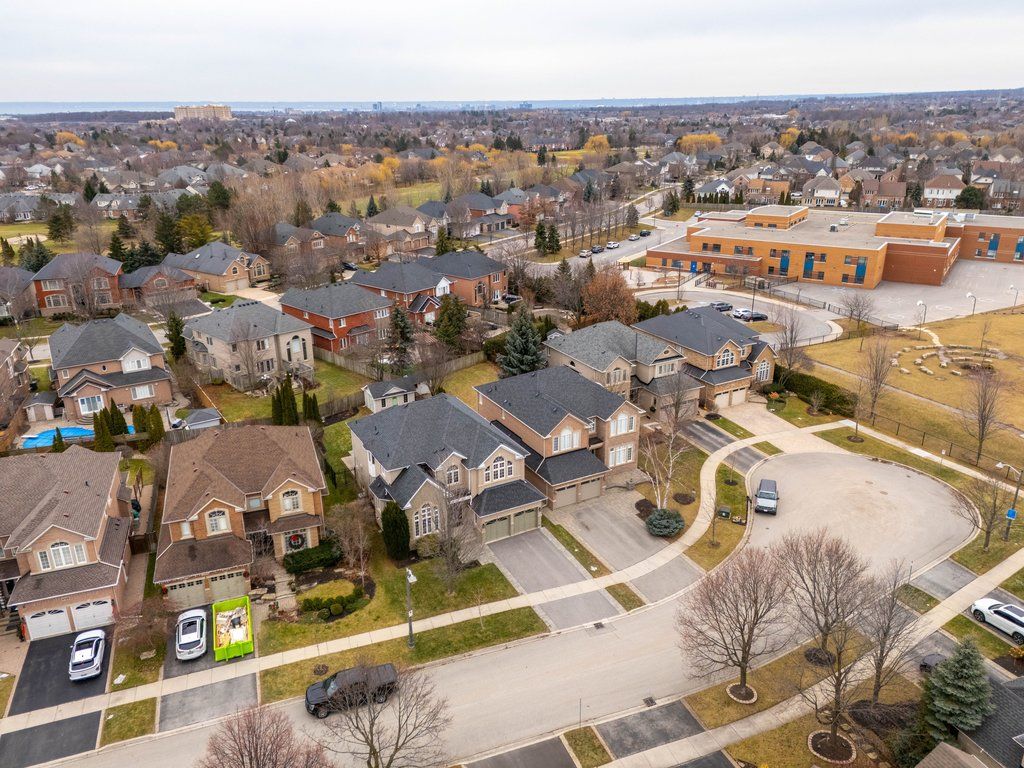 Welcome home to this exceptional Millcroft 2-storey, 4-bedroom, 3-bath family residence, perfectly positioned on a premium lot in a quiet court. The main level offers an incredible, functional layout highlighted by beautiful warm hardwood floors throughout. A stunning family room features floor-to-ceiling windows, a cozy fireplace, and seamless flow into the custom white kitchen complete with quartz countertops, a large working island with seating, gas stove, and premium finishes. A sun-filled breakfast area provides easy access to the backyard, ideal for everyday living and entertaining. Formal living and dining rooms enhance the home's versatility, while a convenient main-floor home office is perfect for work-from-home days. Upstairs, the oversized primary retreat includes a sitting area and a luxurious 5-piece ensuite. Three additional generously sized bedrooms and a 5-piece family bath complete the upper level. The finished lower-level recreation room boasts extended ceiling height and oversized windows, creating an inviting space for movie nights, games, or an additional living area for extended family. Situated on a fabulous premium lot in the heart of Millcroft, this home offers a dedicated path right off the court leading directly to Taywood Park and Charles R. Beaudoin Public School...an unbeatable location for families.