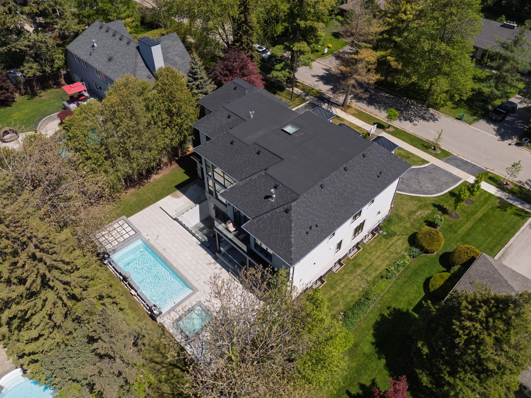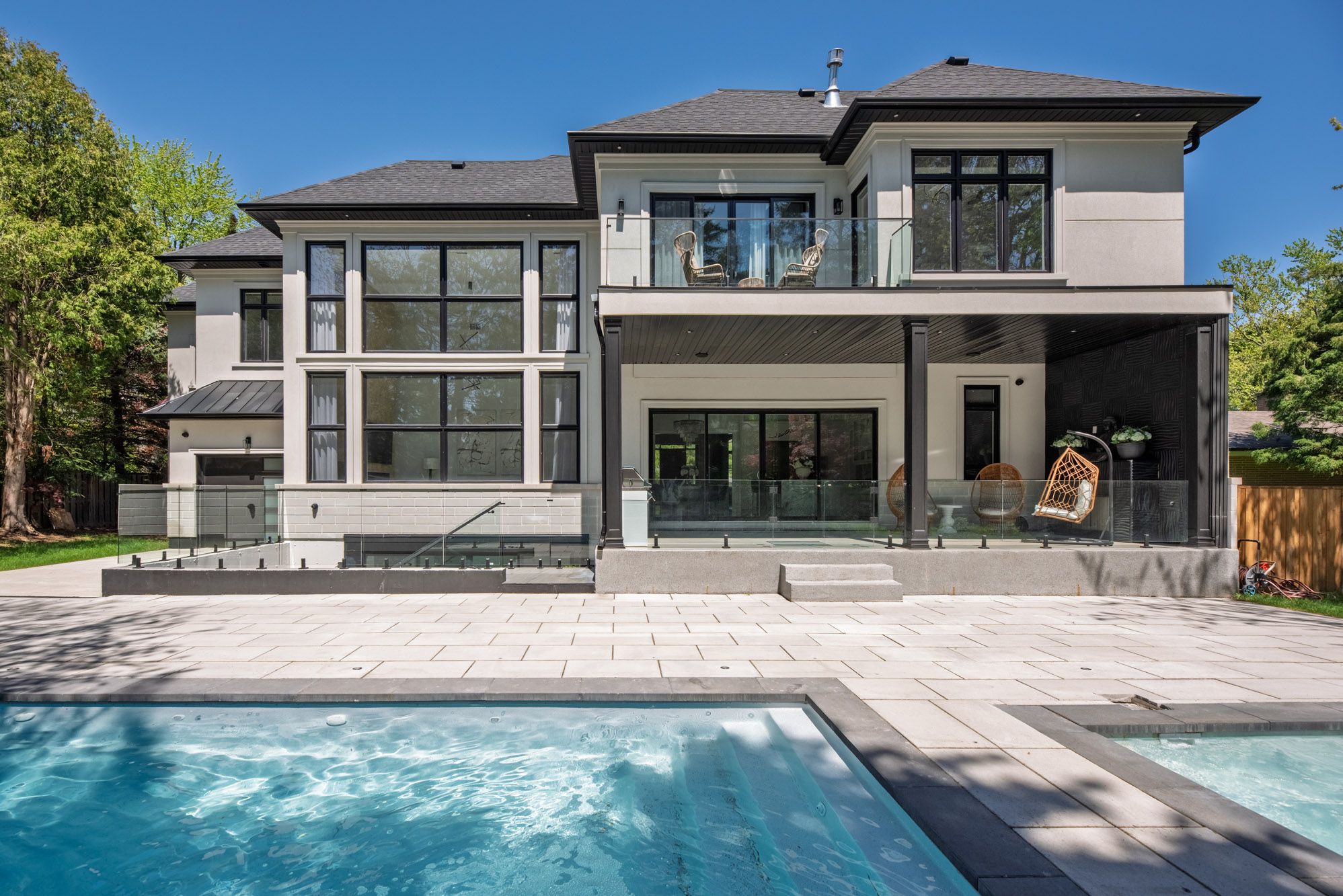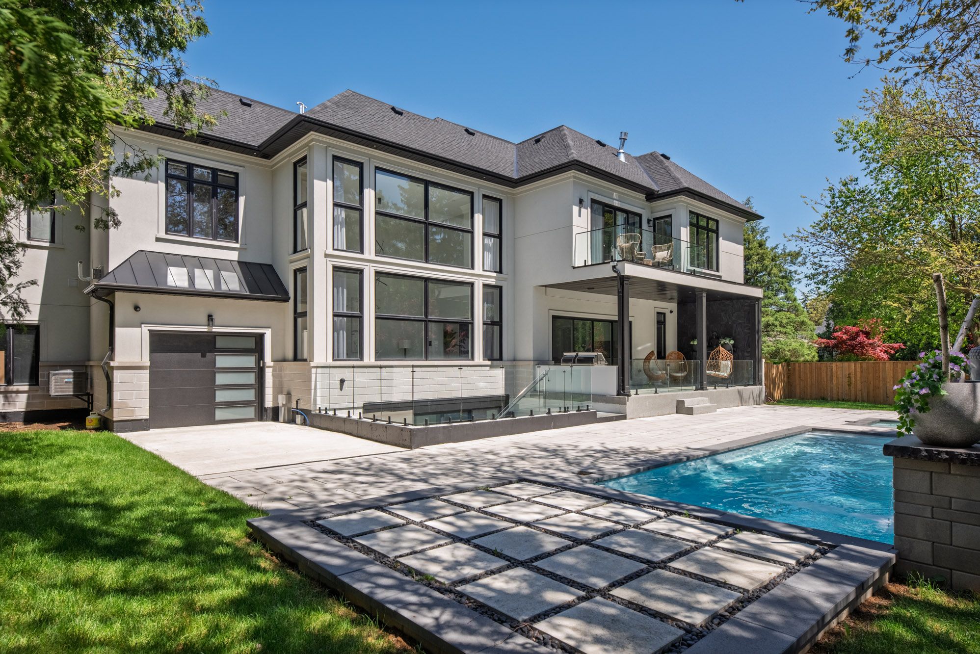This exquisite custom-built estate in Mississauga's Sheridan neighbourhood offers over 8,000 sq. ft. of refined living space, combining elegance, comfort, and modern convenience. With 6+1 bedrooms and 7 bathrooms, this home is designed for upscale family living and grand entertaining. A dramatic foyer with 22-foot ceilings sets a striking first impression. The great room also features soaring ceilings and expansive windows that flood the space with natural light. The chef-inspired kitchen is equipped with high-end appliances, quartz countertops, a marble backsplash, and a stunning waterfall island opening to a breakfast area with walkout access to the landscaped backyard. Outdoor features include a saltwater in-ground pool, a hot tub, a natural stone patio, and built-in Napoleon BBQs perfect for summer entertaining. The primary suite is a luxurious retreat with a gas fireplace, a balcony overlooking the backyard, and a spa-like six-piece ensuite. The finished lower level offers a home gym, a sauna, a wet bar, and a theatre with seating for ten. Additional highlights include a three-car garage, smart thermostat, integrated elevator, and professionally maintained landscaping. Ideally located near top schools, parks, and major highways, this Luxury Certified home is a rare offering in Sheridan.