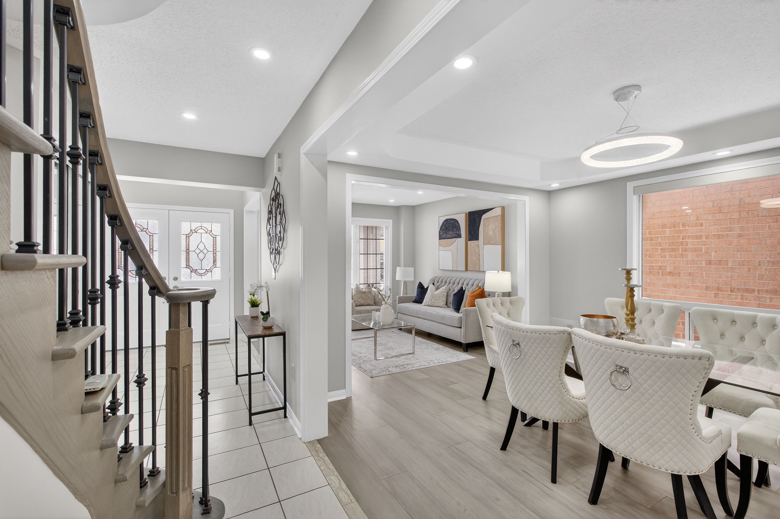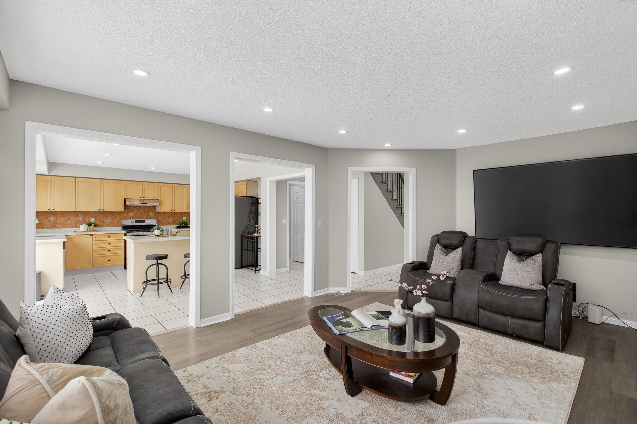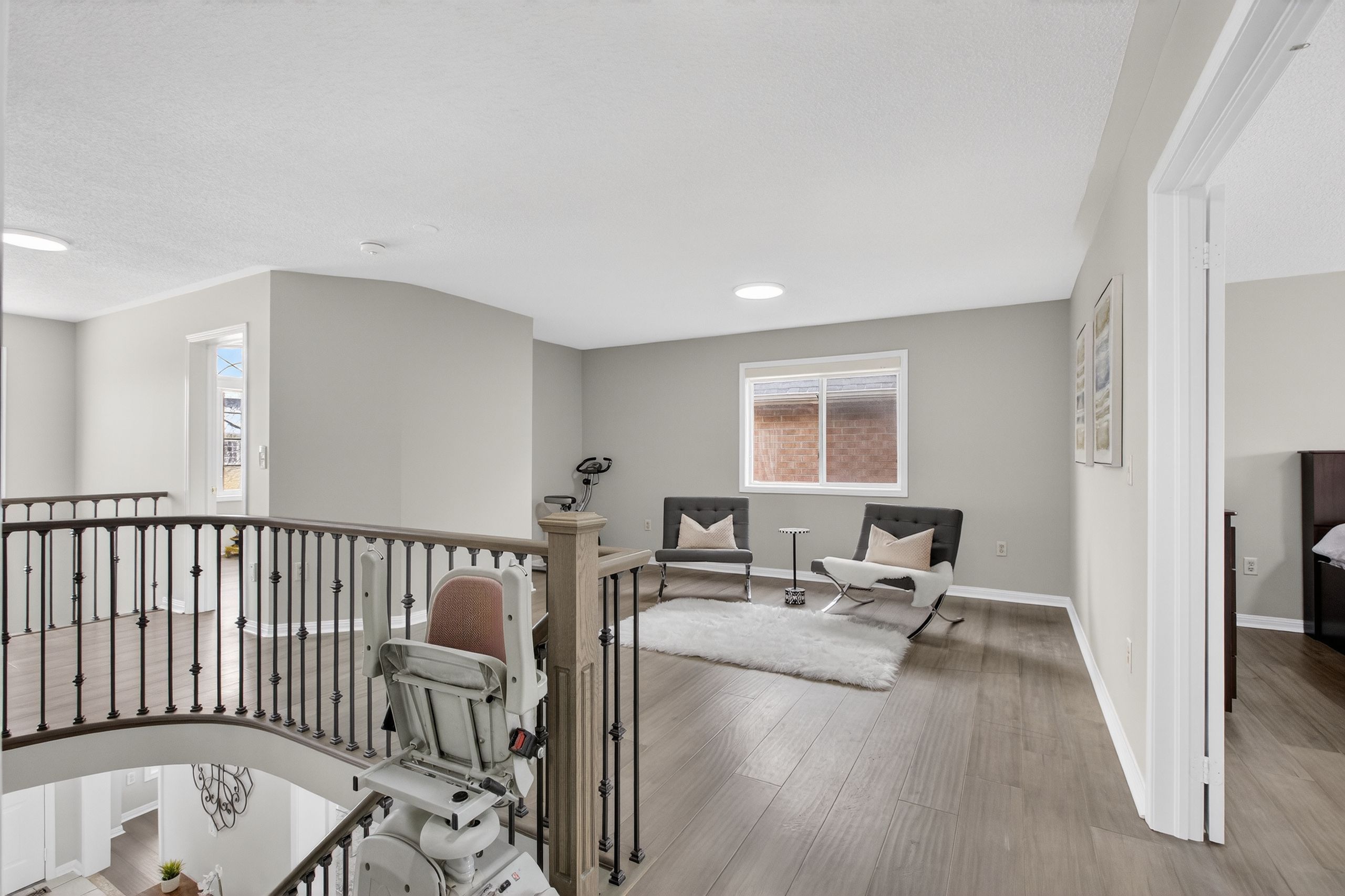 Welcome to this exceptional Mattamy-built 45-ft frontage brick detached house, offering abundant space, natural light, and timeless elegance in the prestigious Vales of Castlemore community. Ideally located on a T-intersection and not facing any homes, it provides an open, airy feel with ample parking-perfect for entertaining. This 4+2 bedroom, 3+2 bathroom home offers nearly 4,000 Sq. ft. of living space, including a 2-bed, 2-bath legal basement apartment, providing income potential from day one. Situated in a peaceful, family-friendly neighborhood surrounded by green ravines, this home blends comfort, functionality, and luxury. A grand double-door entry opens to a spacious foyer leading into separate living, dining, and family rooms, ideal for large families or gatherings. The main family room features a gas fireplace, while a dedicated mudroom adds convenience. The home is carpet-free with engineered hardwood floors, oversized windows, and abundant natural light. The open-concept kitchen features quartz countertops, SS appliances, breakfast bar, high cabinetry, and generous storage, ideal for daily living and entertaining. Upstairs, the primary suite includes a walk-in closet and a spa-inspired ensuite with soaker tub, double vanity, and separate shower. Three additional spacious bedrooms offer excellent closet space. A second upper-level family room adds flexibility as a media room or potential fifth bedroom. Extensive upgrades include water softener, RO system, epoxy-finished garage with slat walls, lawn sprinkler system, pot lights, Acorn stair lift, premium blinds, stamped concrete, CVAC, garage opener, WiFi-enabled surveillance cameras, video doorbell, and decorative lighting. Roof (2015), Furnace & AC (2017 under warranty), Asphalt driveway (2024). Enjoy a custom-built deck with integrated seating for low-maintenance outdoor living. 2-car garage with parking for up to 5 vehicles. Walking distance to schools, parks, plaza, and transit. CHECK 3D VIRTUAL TOUR.