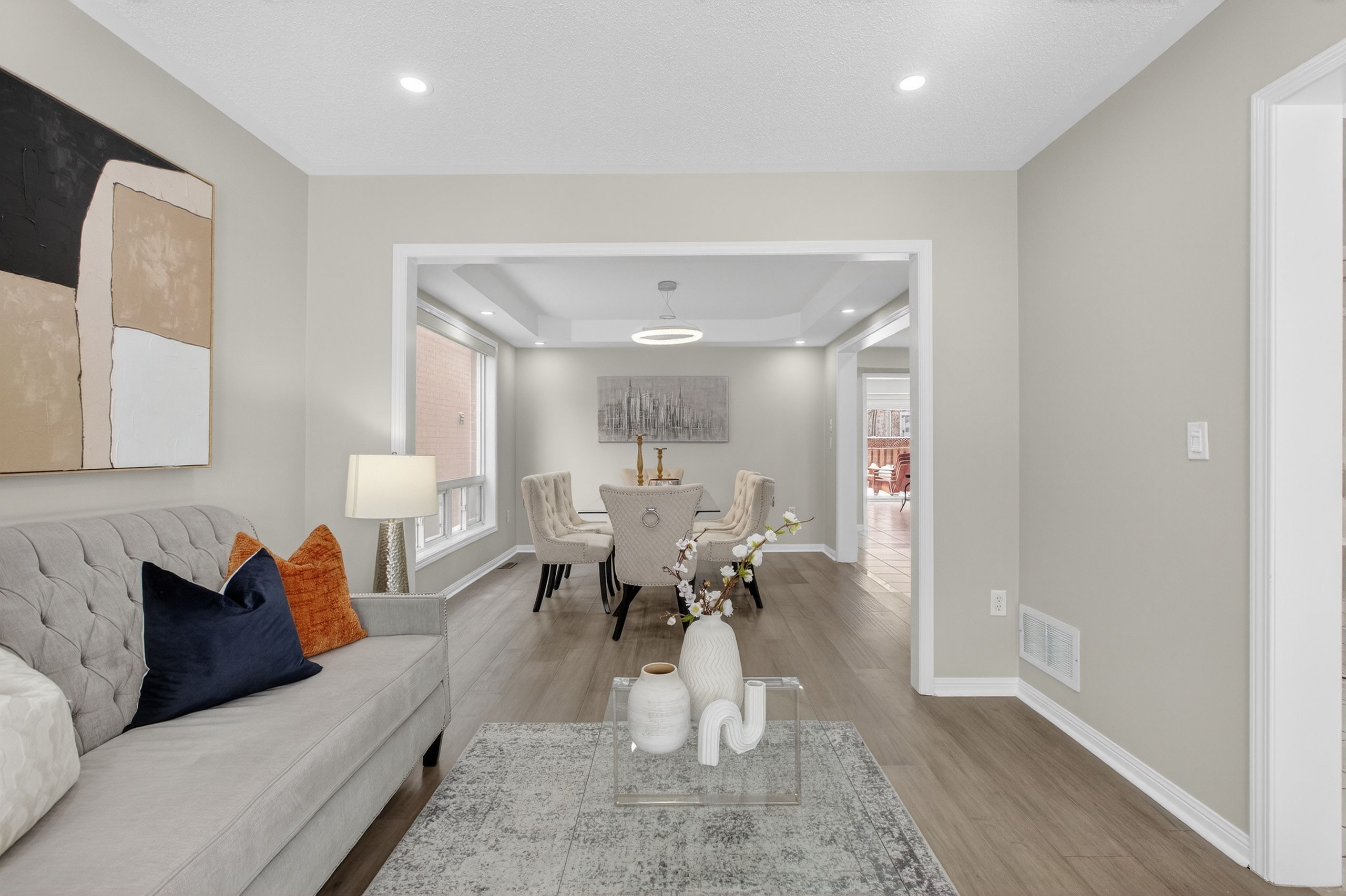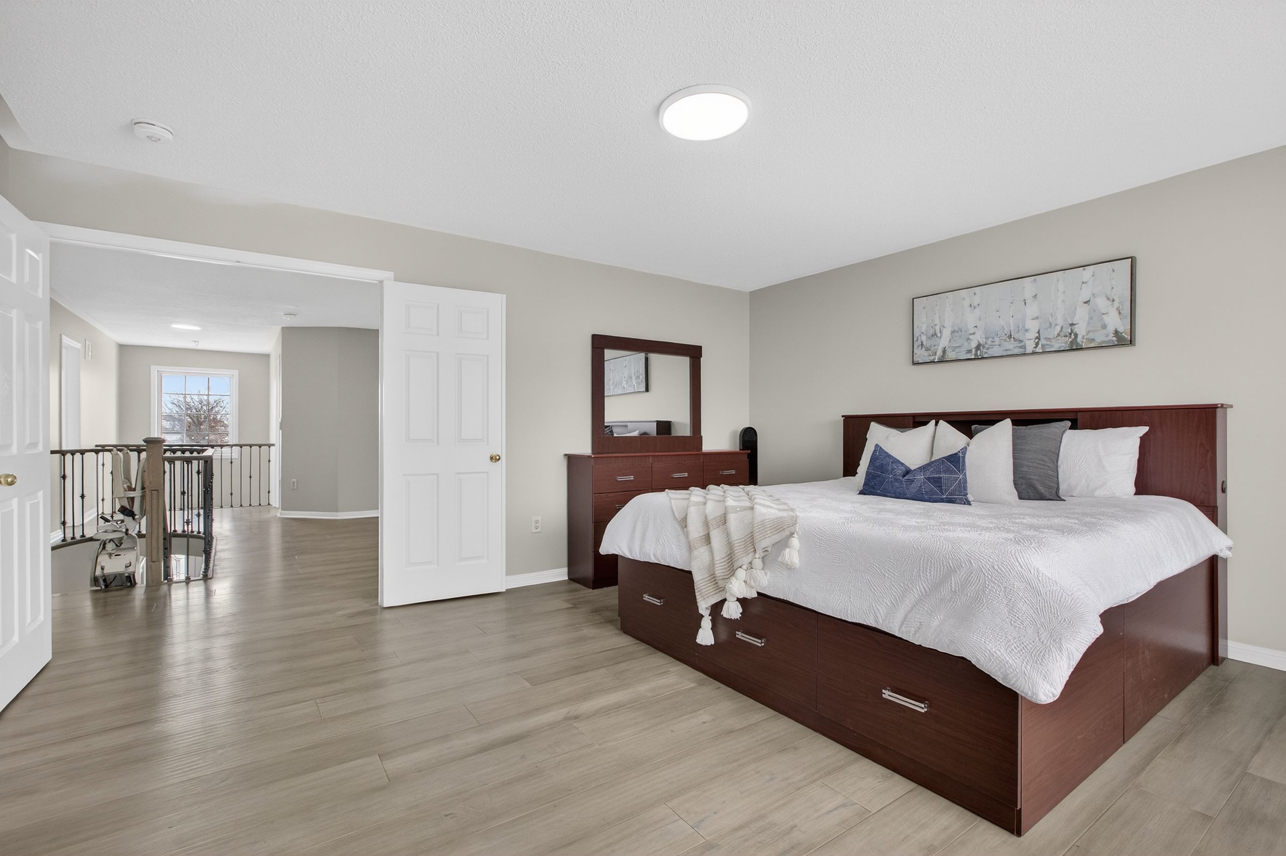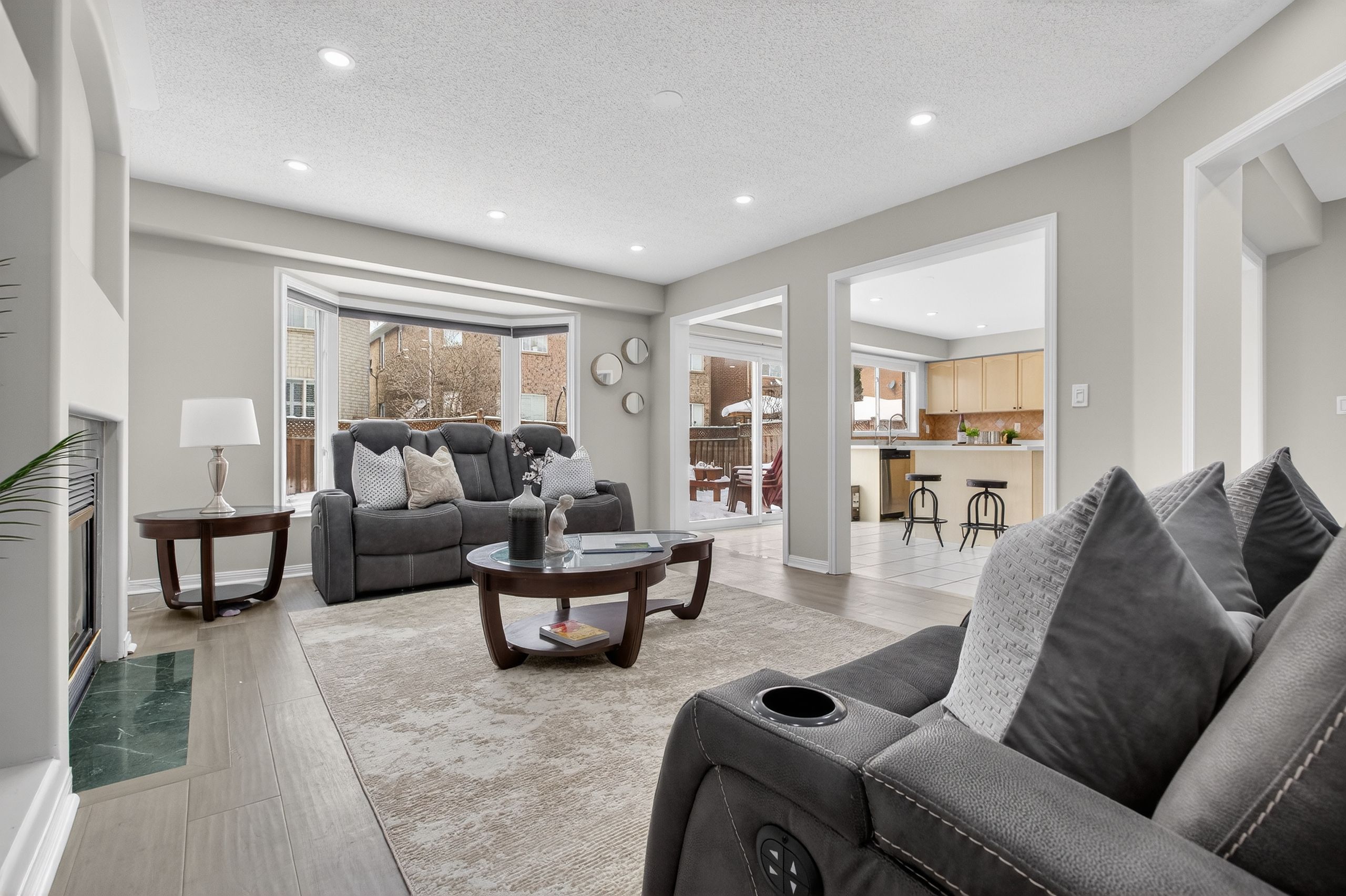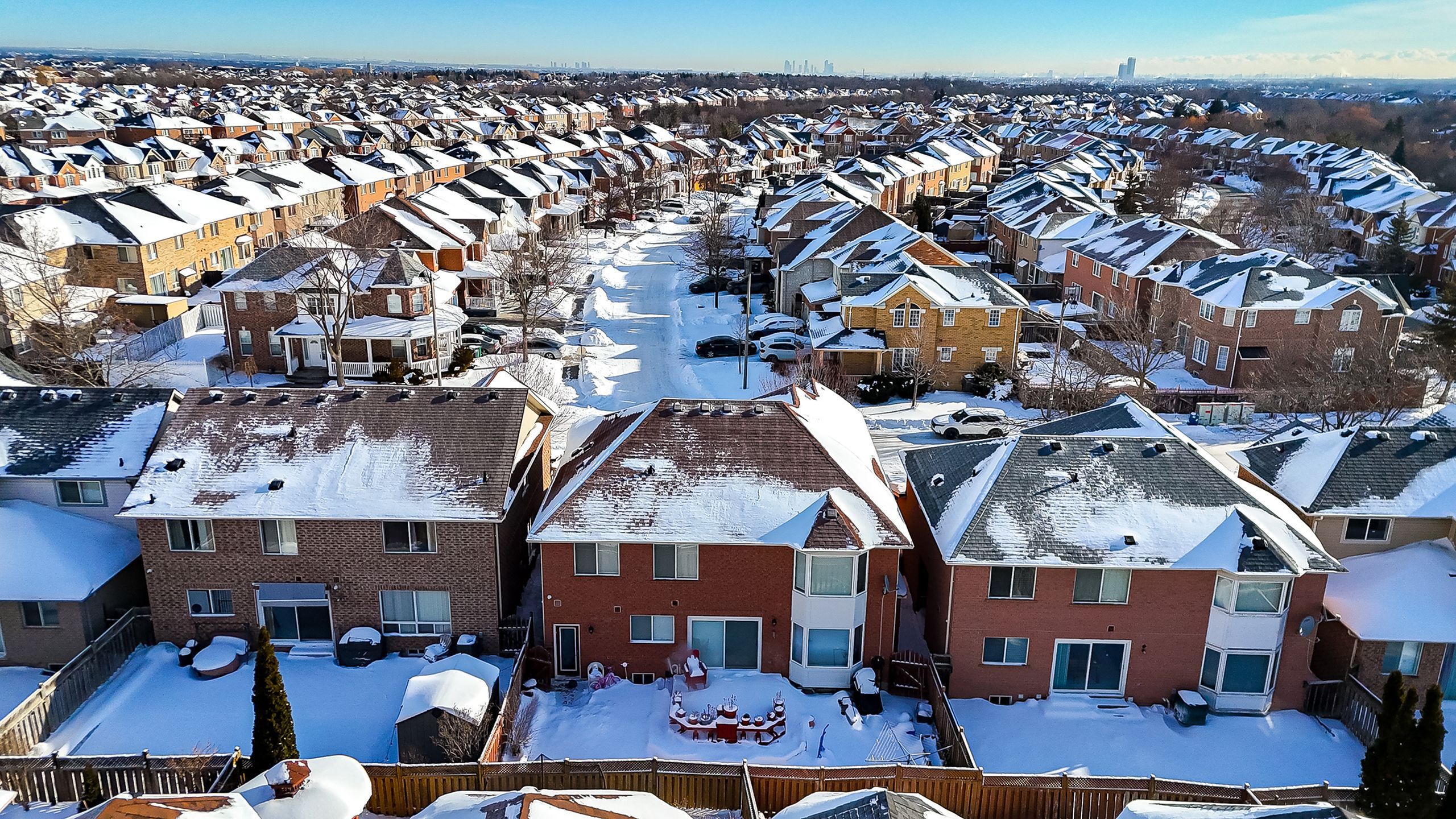 Welcome to this exceptional Mattamy-built 45-ft frontage brick detached house, offering abundant space, natural light, and timeless elegance in the prestigious Vales of Castlemore community. Ideally located on a T-intersection and not facing any homes, it provides an open, airy feel with ample parking-perfect for entertaining. This 4+2 bedroom, 3+2 bathroom home offers nearly 4,000 Sq. ft. of living space, including a 2-bed, 2-bath legal basement apartment, providing income potential from day one. Situated in a peaceful, family-friendly neighborhood surrounded by green ravines, this home blends comfort, functionality, and luxury. A grand double-door entry opens to a spacious foyer leading into separate living, dining, and family rooms, ideal for large families or gatherings. The main family room features a gas fireplace, while a dedicated mudroom adds convenience. The home is carpet-free with engineered hardwood floors, oversized windows, and abundant natural light. The open-concept kitchen features quartz countertops, SS appliances, breakfast bar, high cabinetry, and generous storage, ideal for daily living and entertaining. Upstairs, the primary suite includes a walk-in closet and a spa-inspired ensuite with soaker tub, double vanity, and separate shower. Three additional spacious bedrooms offer excellent closet space. A second upper-level family room adds flexibility as a media room or potential fifth bedroom. Extensive upgrades include water softener, RO system, epoxy-finished garage with slat walls, lawn sprinkler system, pot lights, Acorn stair lift, premium blinds, stamped concrete, CVAC, garage opener, WiFi-enabled surveillance cameras, video doorbell, and decorative lighting. Roof (2015), Furnace & AC (2017 under warranty), Asphalt driveway (2024). Enjoy a custom-built deck with integrated seating for low-maintenance outdoor living. 2-car garage with parking for up to 5 vehicles. Walking distance to schools, parks, plaza, and transit. CHECK 3D VIRTUAL TOUR.