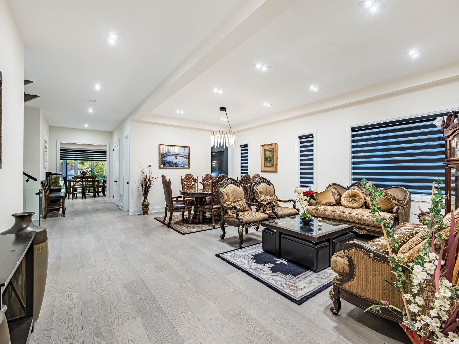 Stunning custom-built estate offering approximately 8,000 sq ft of luxurious living space with a rare 8 bedrooms and 8 washrooms. Featuring soaring 10 ft ceilings on the main floor and 9 ft ceilings on the second floor and basement, this home is loaded with premium upgrades throughout. The main floor boasts a private office, elegant combined living and dining area, spacious family room, and a main-floor primary bedroom with ensuite-ideal for seniors or guests. The chef-inspired kitchen features a massive central island, overlooks the family room, and walks out to a large covered deck-perfect for entertaining. The second floor offers generously sized bedrooms, including three master bedrooms with ensuites. The primary suite features a spa-like ensuite and walk-out to a huge porch. One additional master includes a private balcony. Bedrooms 4 and 5 share a Jack & Jill washroom. Heated washrooms on both the main and second floors add extra comfort. The huge walk-up basement is truly one of a kind, featuring 2 bedrooms, 2 washrooms, an expansive recreation room with wet bar, a rare home theatre under the garage, and an exercise room beneath the covered deck-this is one of the largest basements you'll ever see. The oversized backyard offers potential for a garden suite, recently permitted by the City of Mississauga. Finished with an interlock driveway, this exceptional home delivers space, luxury, and versatility rarely found.