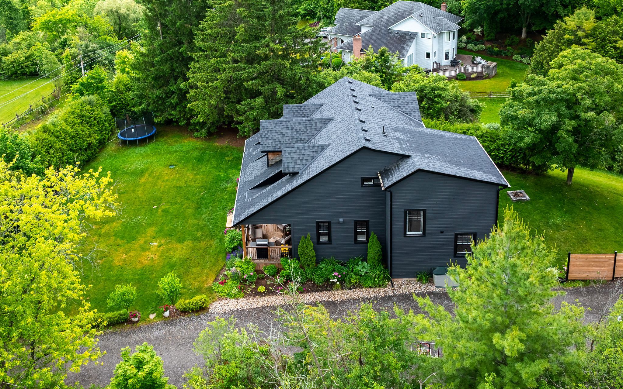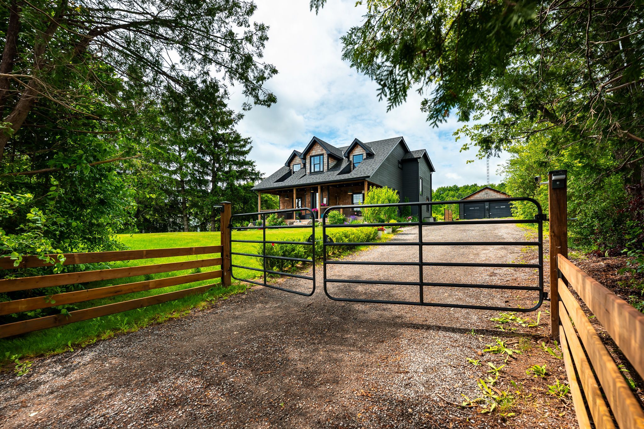 Custom-Built Modern Farmhouse on Nearly 2 Acres Backing Conservation! Custom built in 2019 by the current owner, this modern farmhouse offers approx. 3,300 sq ft of finished living space, featuring 5 bedrooms, 2 kitchens, and a layout designed for family living and entertaining. Ideally located between Silver Creek and Terra Cotta Conservation Areas, just minutes to the Credit River, Glen Williams Arts District, and only 10 minutes to Georgetown, Erin, and Brampton with easy highway access. Set on just under 2 private acres abutting conservation land, the home blends contemporary style with timeless country charm. The chef's kitchen showcases a full-size side-by-side fridge and freezer, dual-fuel five-burner gas range, and extensive custom cabinetry. The primary suite includes a spa-like ensuite with oversized soaker tub and Niagara Escarpment views, plus a dressing room with balcony (easily converted back to a bedroom). The finished lower level offers a private one-bedroom suite with separate entrance, ideal for guests or multigenerational living, plus a home gym. Enjoy a long gated driveway, covered front and rear porches, landscaped grounds, and an oversized two-car garage with rear yard access and EV charging.Well 5 gpm. GenerLink transfer switch. Septic, furnace, windows, shingles, plumbing & 200-amp electrical (2019). AC 2025. Garage electrical upgrade 2024. Home drawings attached.