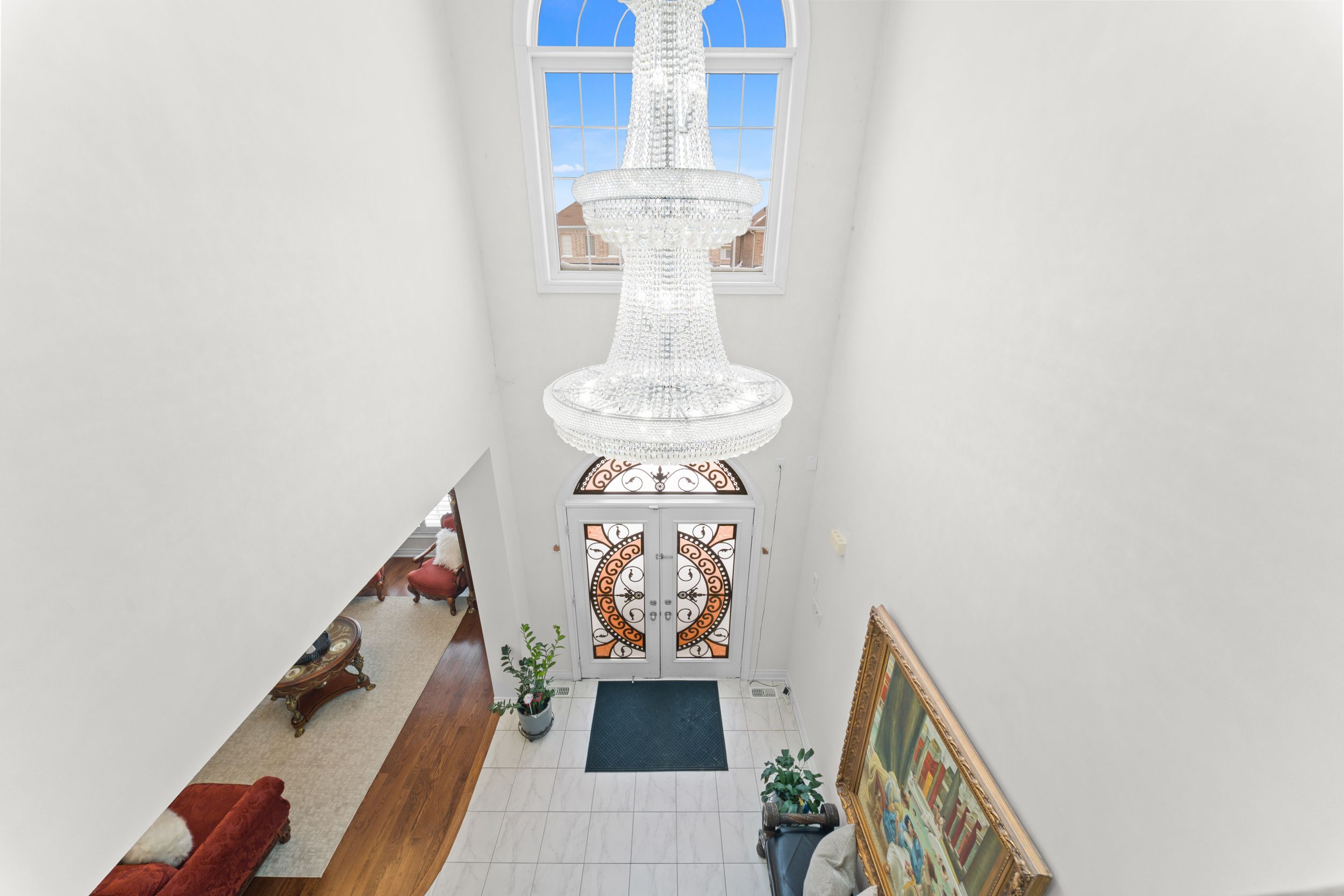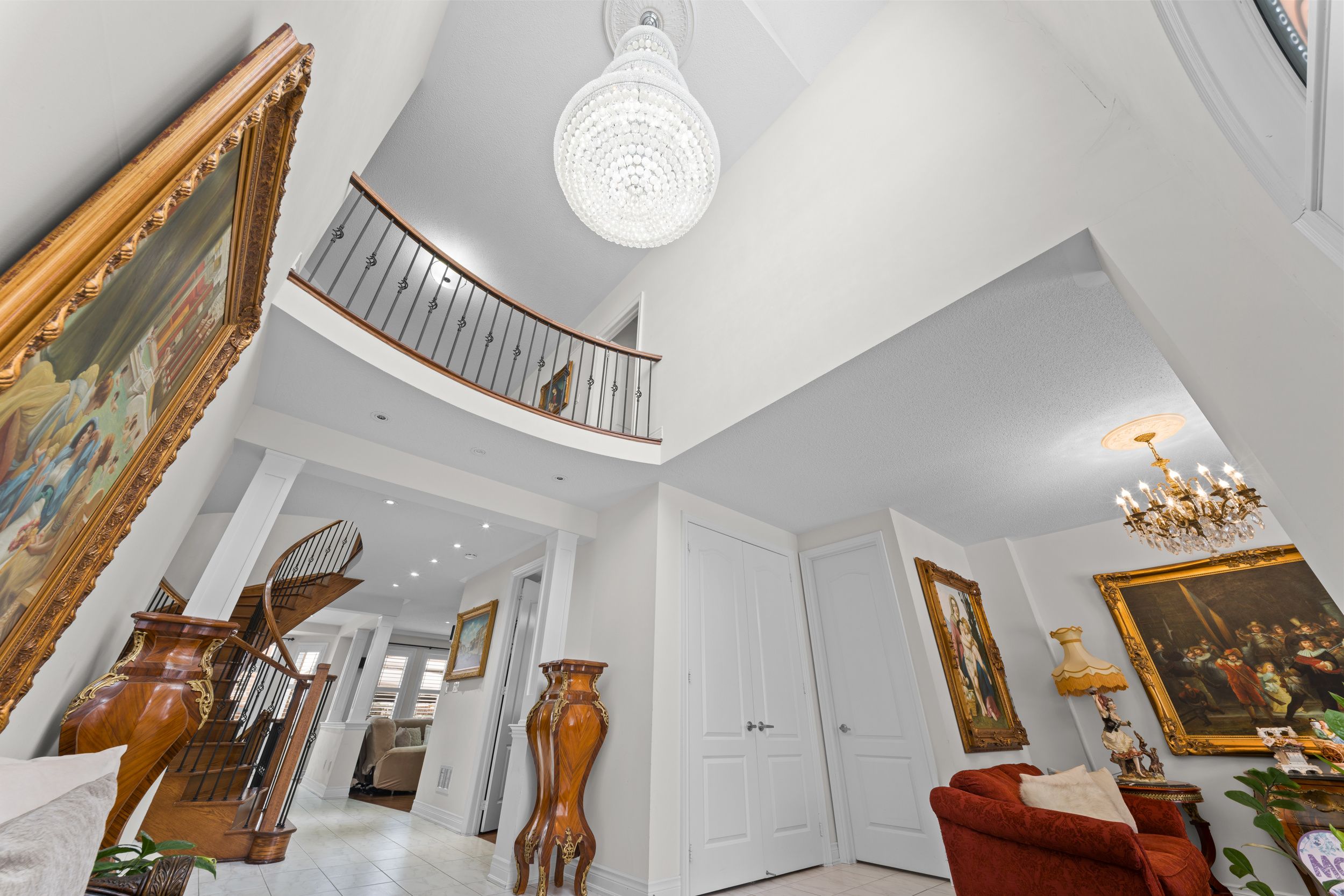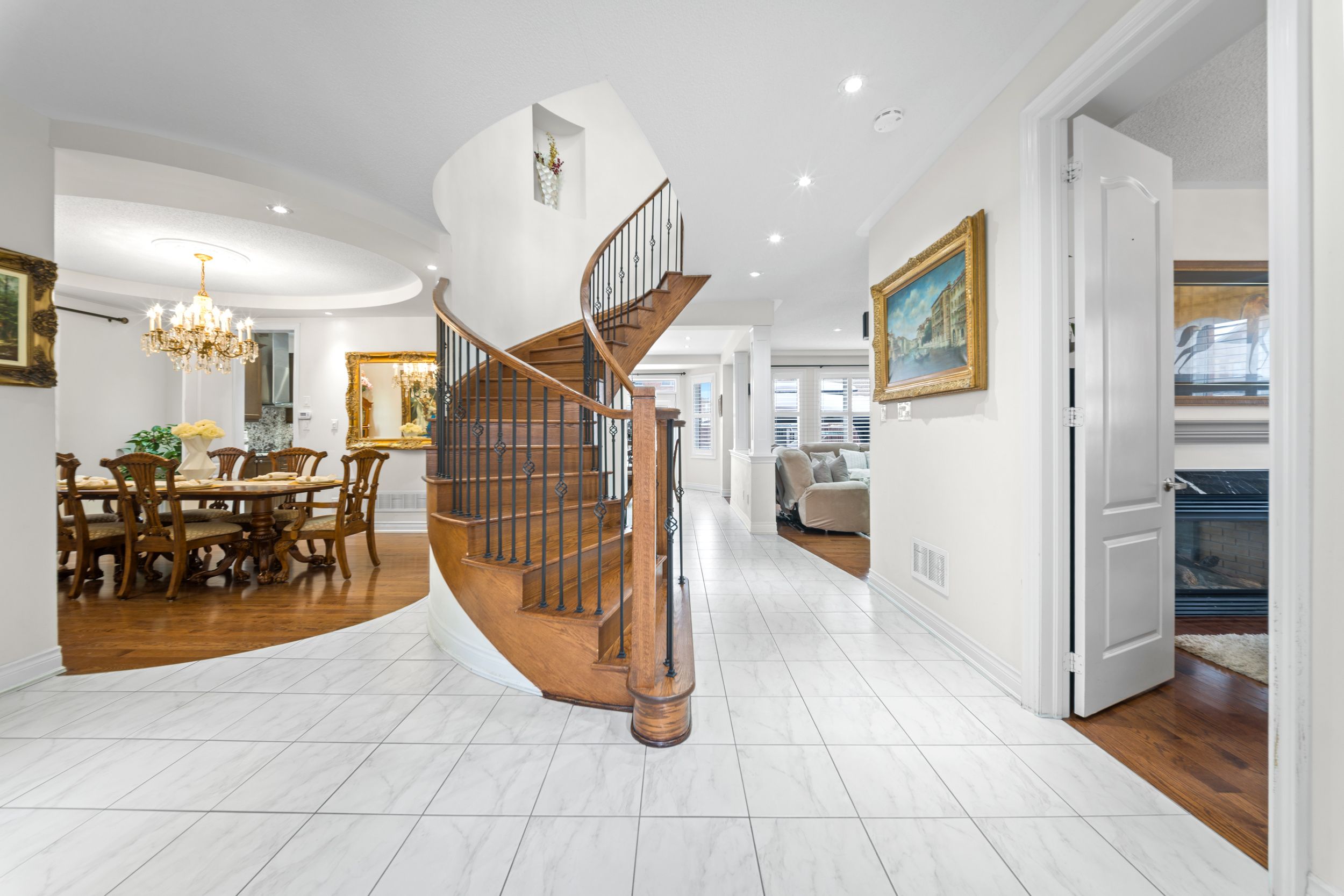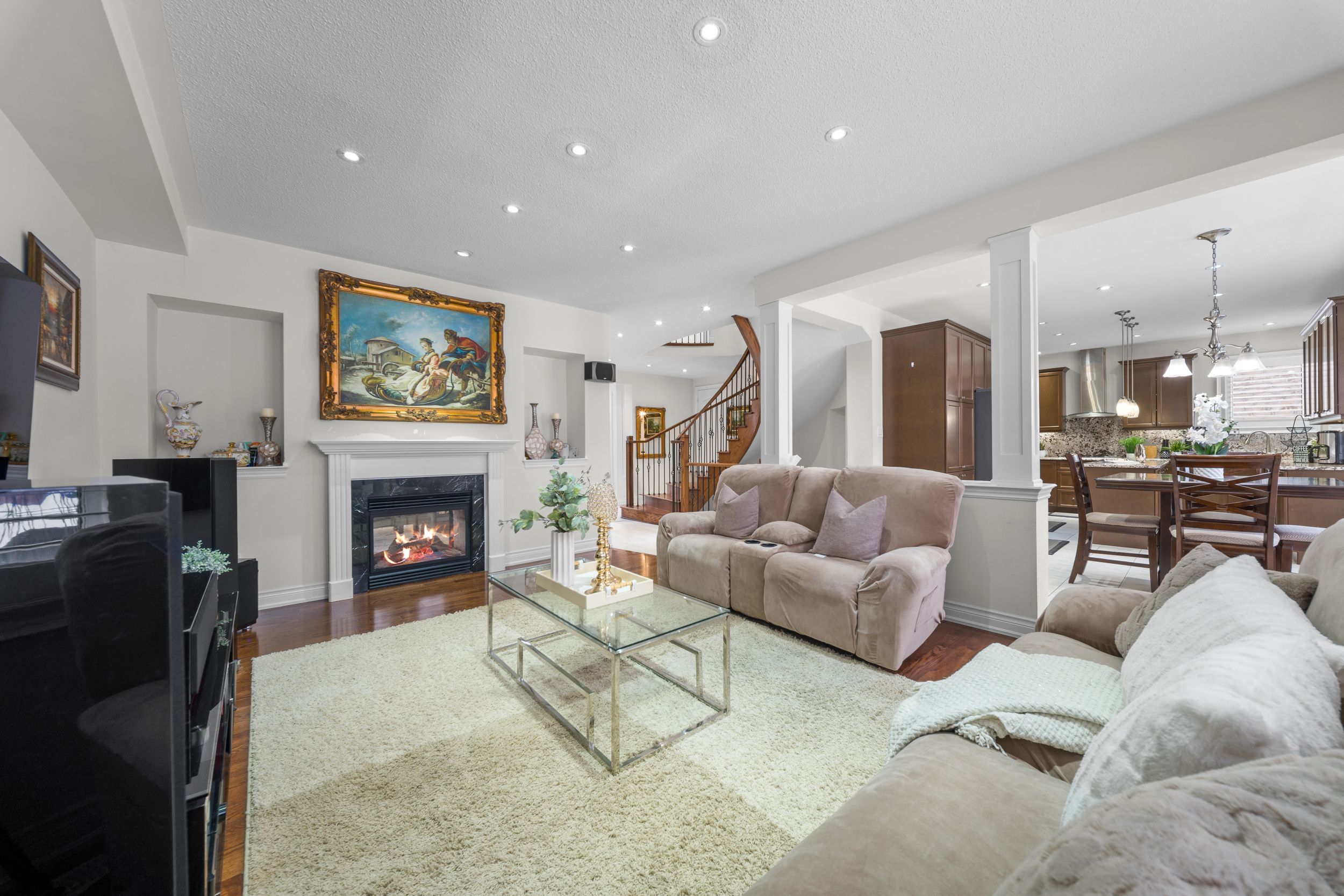 Exquisite Home offering approx. 3,700 sq. ft. of refined living space, featuring 9-ft ceilings on both floors and rich hardwood throughout. A grand double-door entry opens to a breathtaking open-to-above foyer with an elegant chandelier. The gourmet kitchen is beautifully appointed with granite countertops, designer backsplash, premium maple cabinetry, a spacious center island, built-in cooktop and oven, and stainless steel appliances. Expansive principal rooms include gas fireplaces in both the living room and private office, ideal for elegant entertaining and everyday comfort. The luxurious primary suite offers a spacious walk-in closet and a spa-inspired ensuite bath, complemented by four generously sized bedrooms and the rare convenience of three full bathrooms on the upper level. California shutters throughout enhance sophistication and privacy. Additional highlights include pot lights on the main floor and exterior, a separate entrance, no sidewalk for maximum parking, an interlocked driveway and patio, and a beautifully landscaped backyard with shed-an exceptional blend of luxury, space, and functionality.