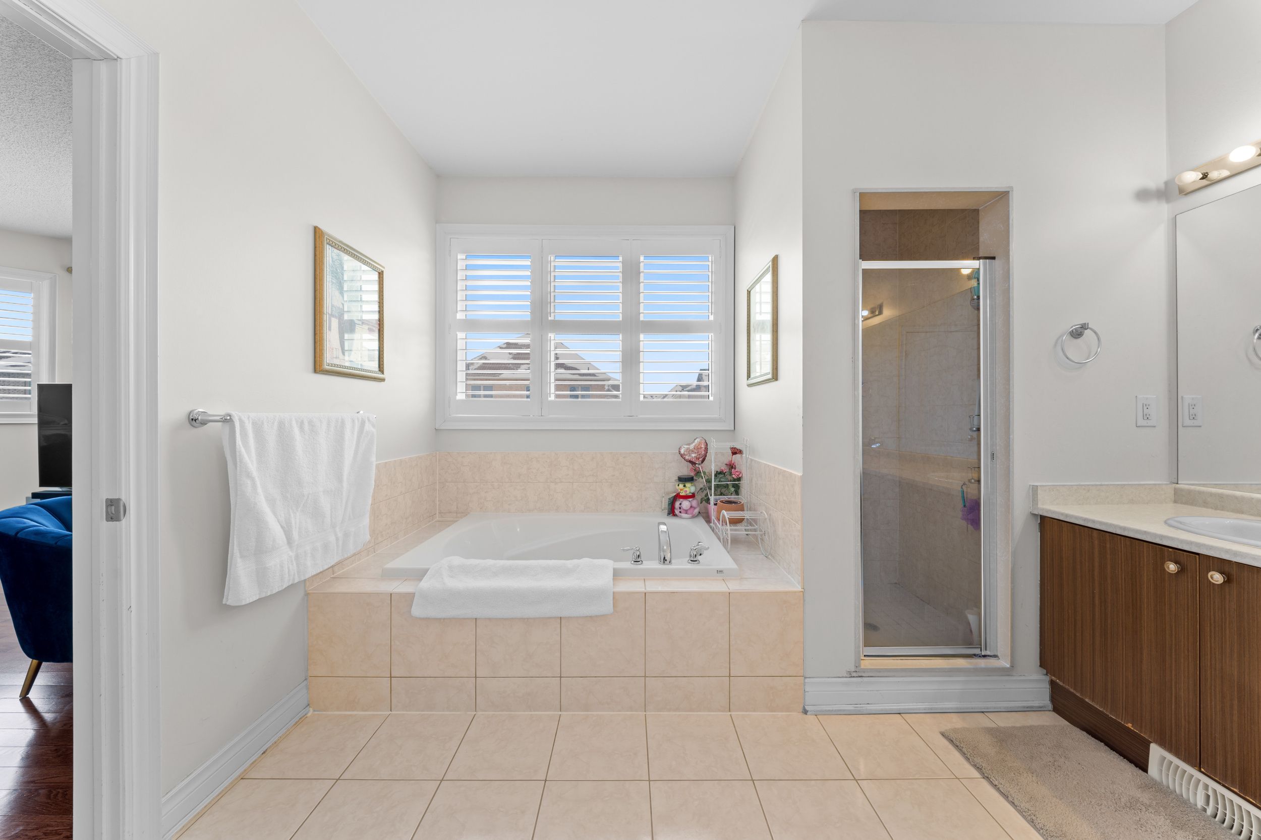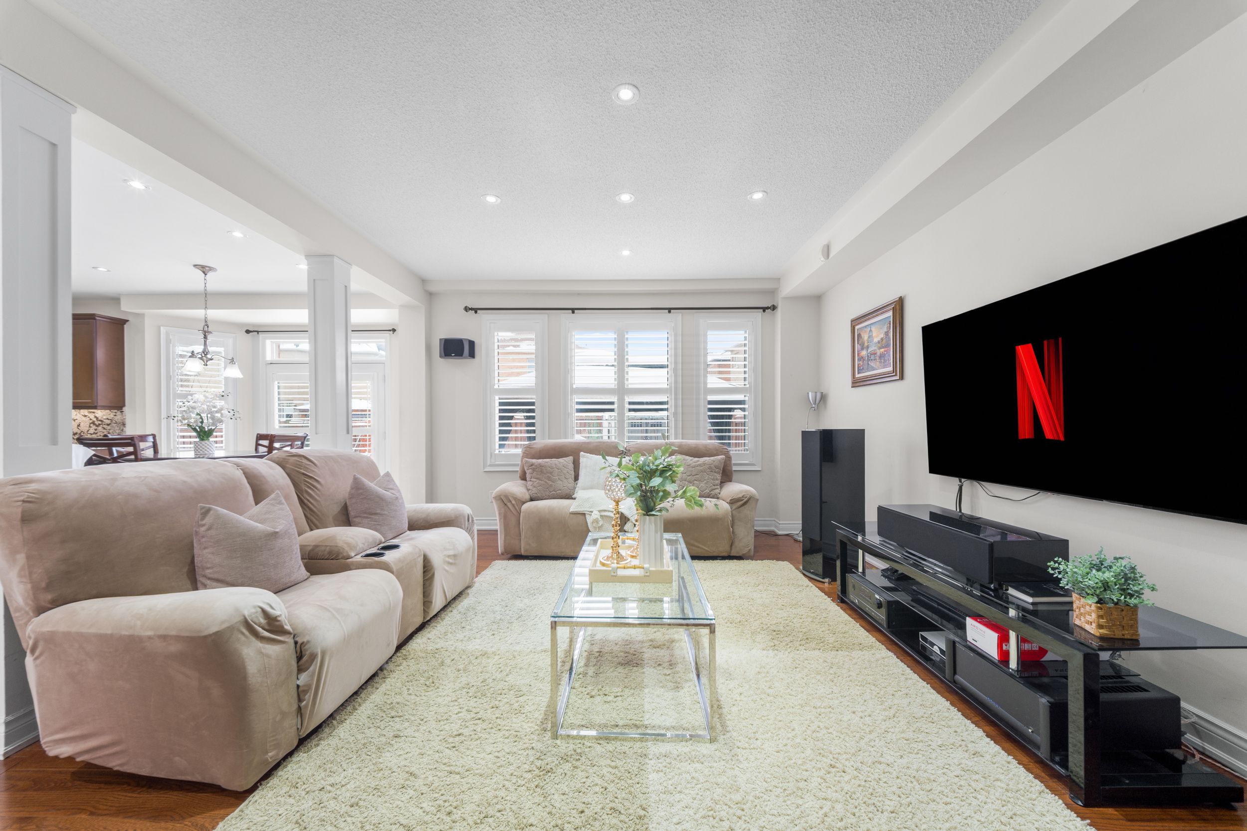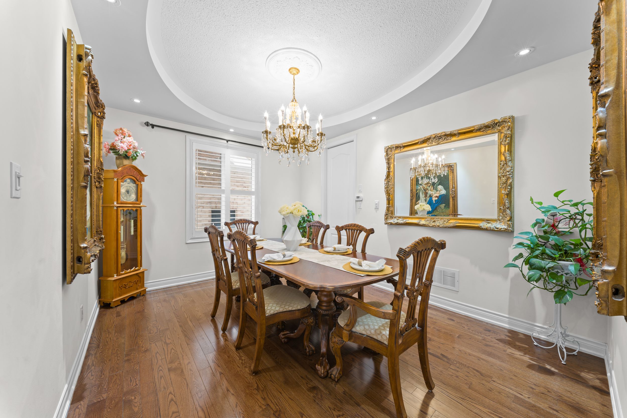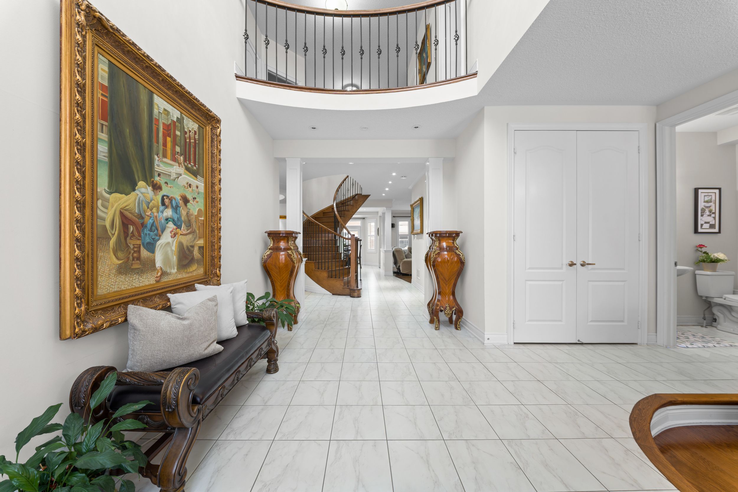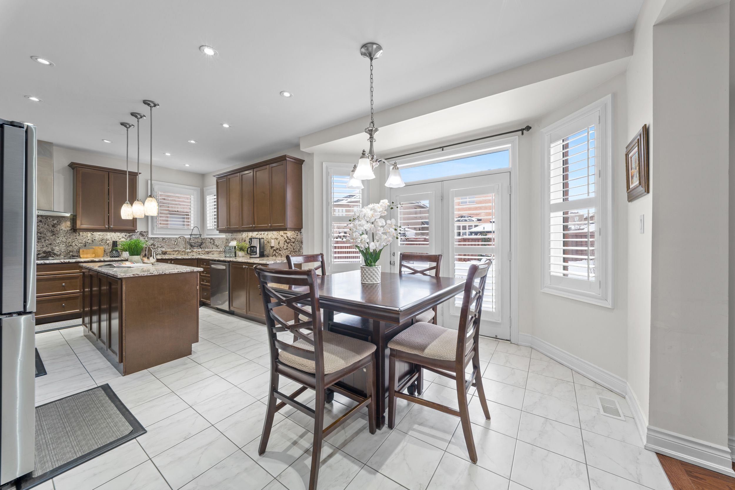 Exquisite Home offering approx. 3,700 sq. ft. of refined living space, featuring 9-ft ceilings on both floors and rich hardwood throughout. A grand double-door entry opens to a breathtaking open-to-above foyer with an elegant chandelier. The gourmet kitchen is beautifully appointed with granite countertops, designer backsplash, premium maple cabinetry, a spacious center island, built-in cooktop and oven, and stainless steel appliances. Expansive principal rooms include gas fireplaces in both the living room and private office, ideal for elegant entertaining and everyday comfort. The luxurious primary suite offers a spacious walk-in closet and a spa-inspired ensuite bath, complemented by four generously sized bedrooms and the rare convenience of three full bathrooms on the upper level. California shutters throughout enhance sophistication and privacy. Additional highlights include pot lights on the main floor and exterior, a separate entrance, no sidewalk for maximum parking, an interlocked driveway and patio, and a beautifully landscaped backyard with shed-an exceptional blend of luxury, space, and functionality.