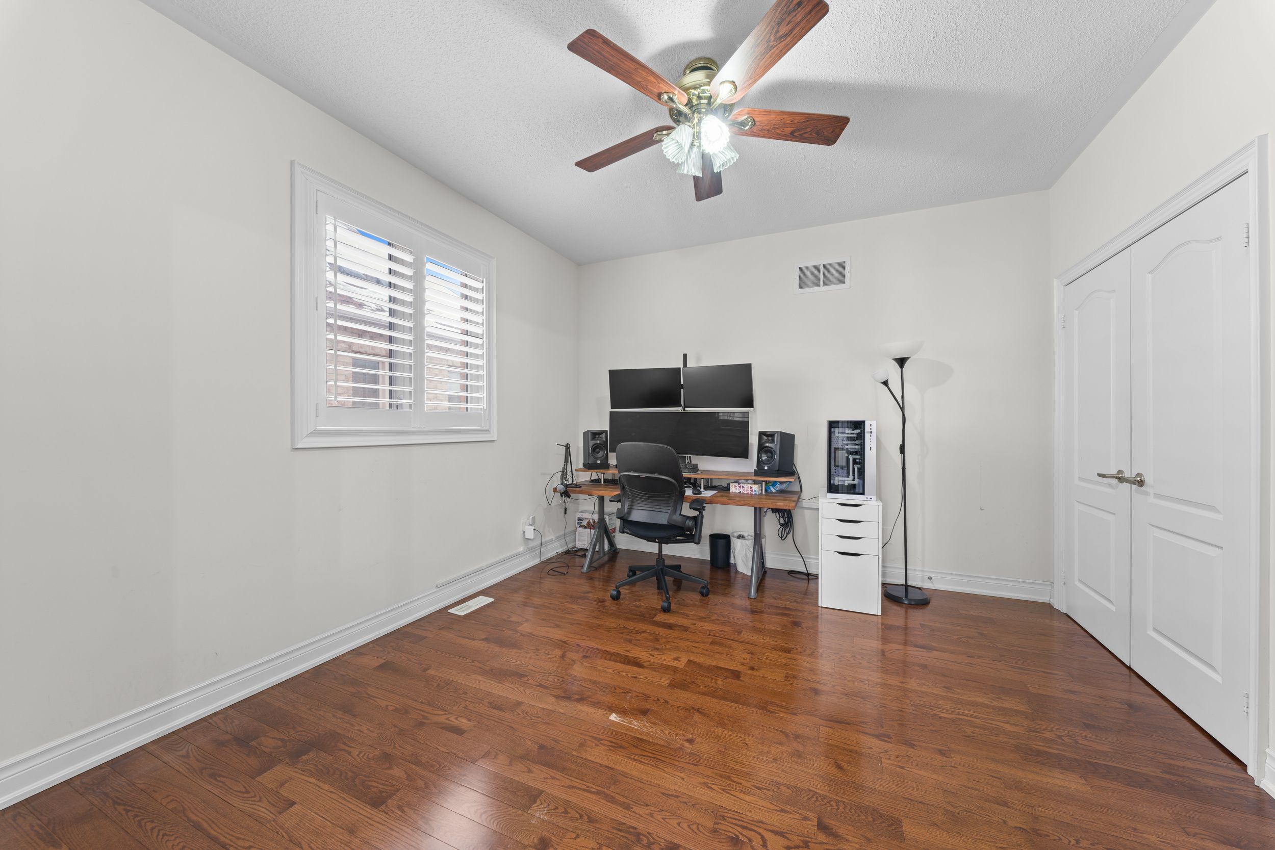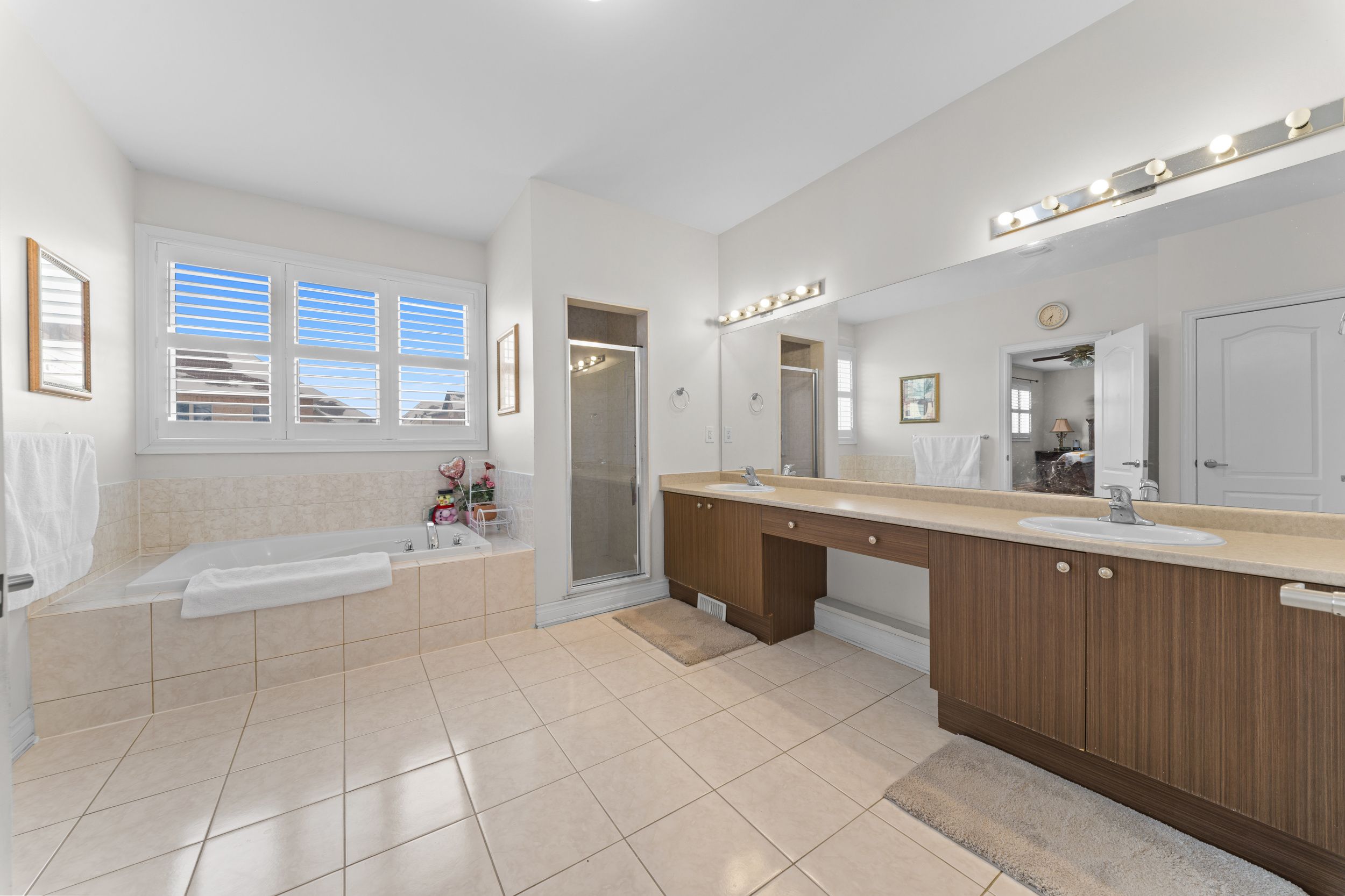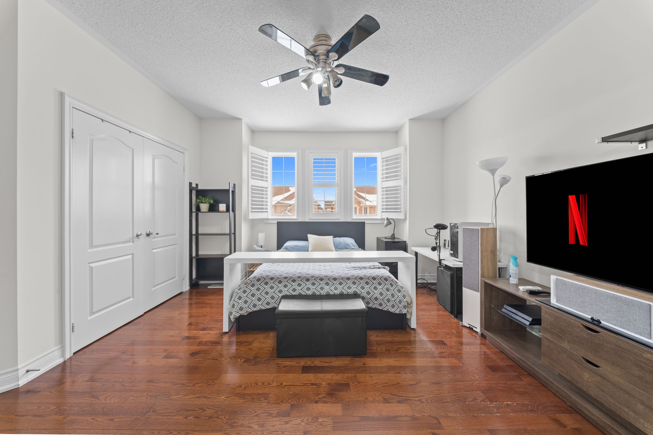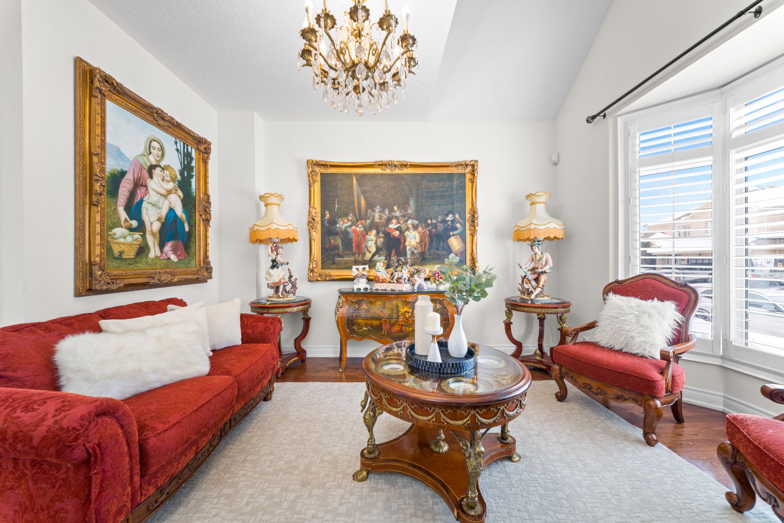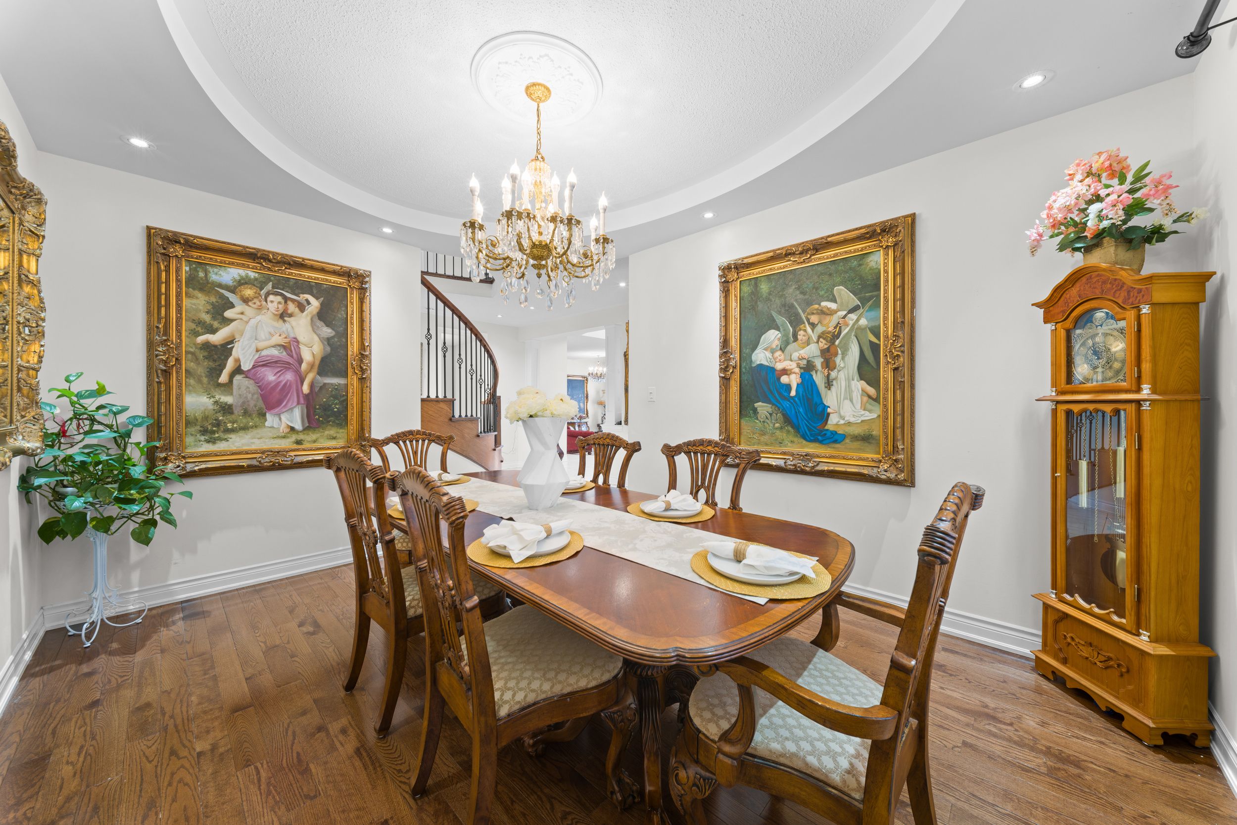 Exquisite Home offering approx. 3,700 sq. ft. of refined living space, featuring 9-ft ceilings on both floors and rich hardwood throughout. A grand double-door entry opens to a breathtaking open-to-above foyer with an elegant chandelier. The gourmet kitchen is beautifully appointed with granite countertops, designer backsplash, premium maple cabinetry, a spacious center island, built-in cooktop and oven, and stainless steel appliances. Expansive principal rooms include gas fireplaces in both the living room and private office, ideal for elegant entertaining and everyday comfort. The luxurious primary suite offers a spacious walk-in closet and a spa-inspired ensuite bath, complemented by four generously sized bedrooms and the rare convenience of three full bathrooms on the upper level. California shutters throughout enhance sophistication and privacy. Additional highlights include pot lights on the main floor and exterior, a separate entrance, no sidewalk for maximum parking, an interlocked driveway and patio, and a beautifully landscaped backyard with shed-an exceptional blend of luxury, space, and functionality.