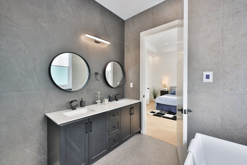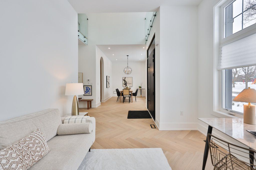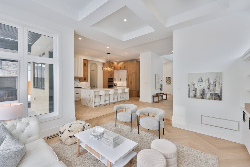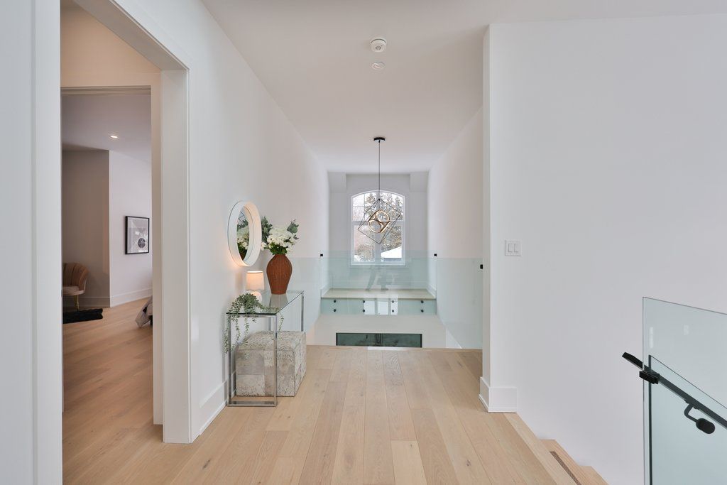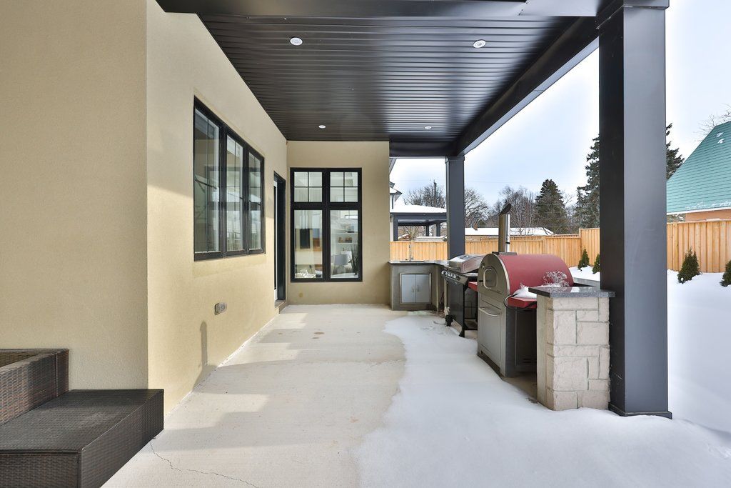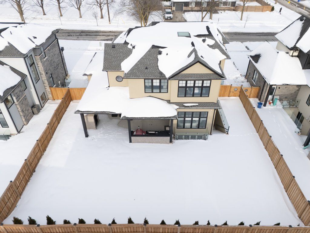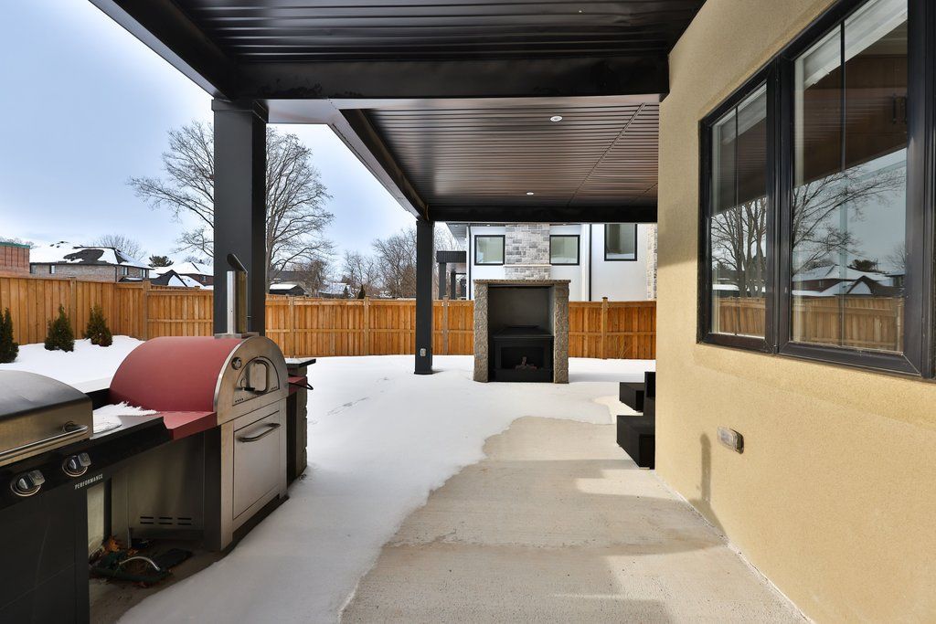 Welcome home. This exceptional custom-built residence offers approximately 5,000 sq ft of refined living space, where craftsmanship and comfort meet seamlessly. Located in a top-rated school district directly across from Breckon Park, an interlocked circular driveway leads to an interior featuring hardwood flooring throughout, custom built-in woodwork, solid core doors, oversized basement windows, and striking glass wall details. The gourmet chef's kitchen showcases waterfall quartz countertops, two-tone cabinetry, upgraded premium hardware, and a secondary bar area ideal for entertaining. Premium finishes continue with floating staircases accented by LED lighting, quartz countertops, and multiple bathrooms with double vanities, floor-to-ceiling tile, curbless showers, and upgraded fixtures. Upstairs, the luxurious primary suite offers a custom spa-inspired ensuite with heated floors. Three additional bedrooms upstairs include one with a private ensuite and two sharing a Jack-and-Jill style ensuite-perfect for family or guests. The finished basement features a bedroom and full bathroom, glass-enclosed gym, private sauna, home theatre, and a spacious recreation room with fireplace. The home is further enhanced by 11' ceilings on the main level and 10' ceilings in the basement. Outdoor living is designed for year-round enjoyment with a covered porch, outdoor fireplace, and a fully equipped entertainment area including a built-in BBQ and outdoor kitchen. A rare opportunity to own a truly custom luxury home in an unbeatable location.