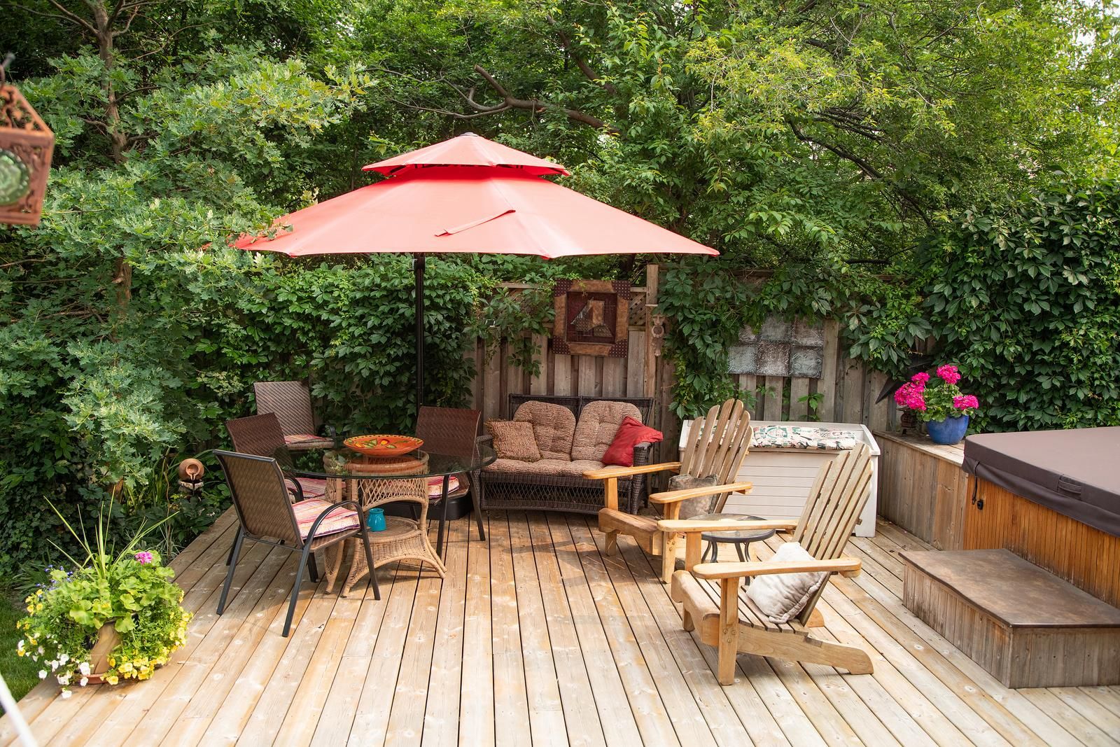 - Exterior Features: Deck, Hot Tub, Landscaped, Lawn Sprinkler System, Lighting, Patio, Privacy