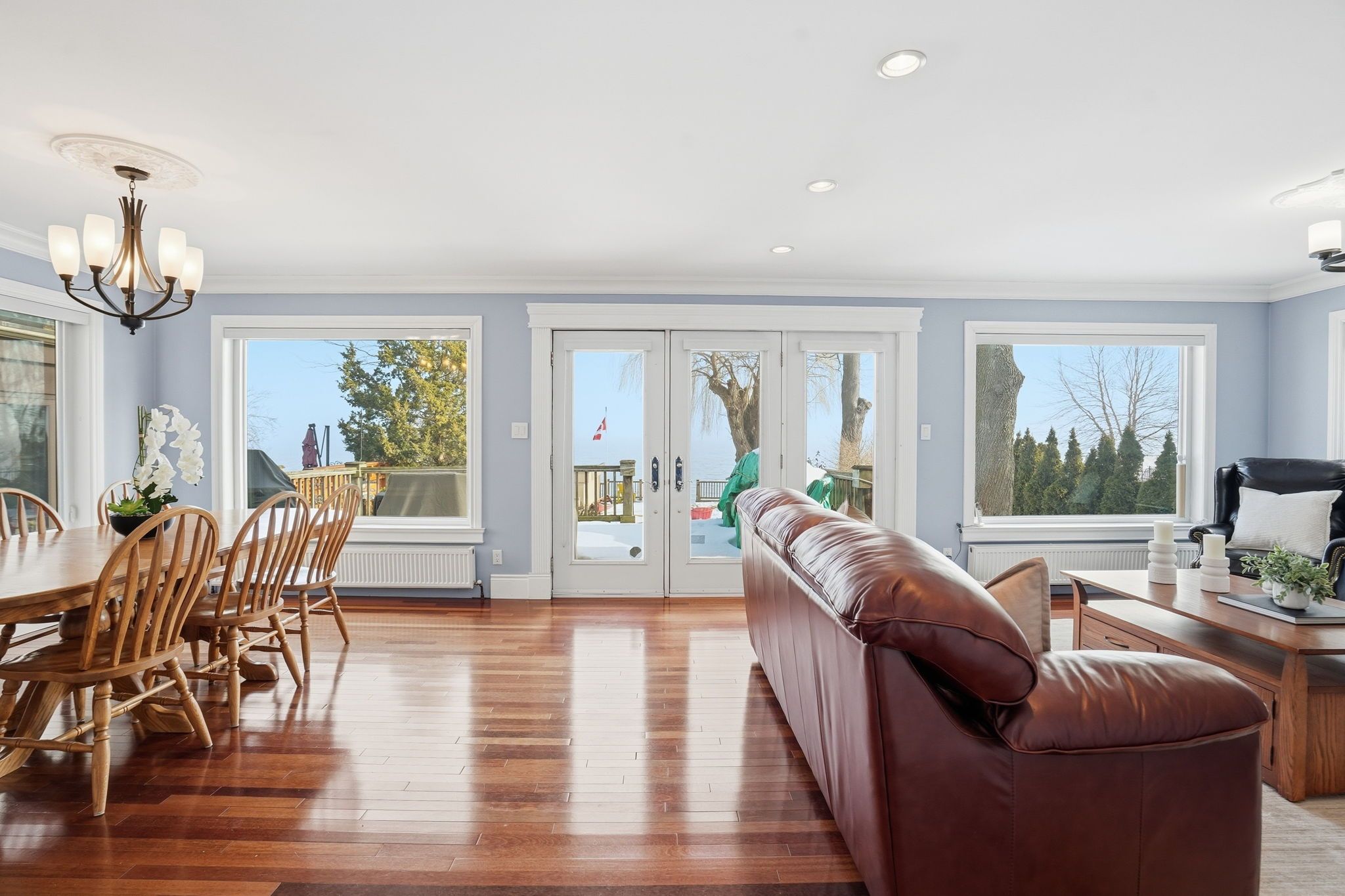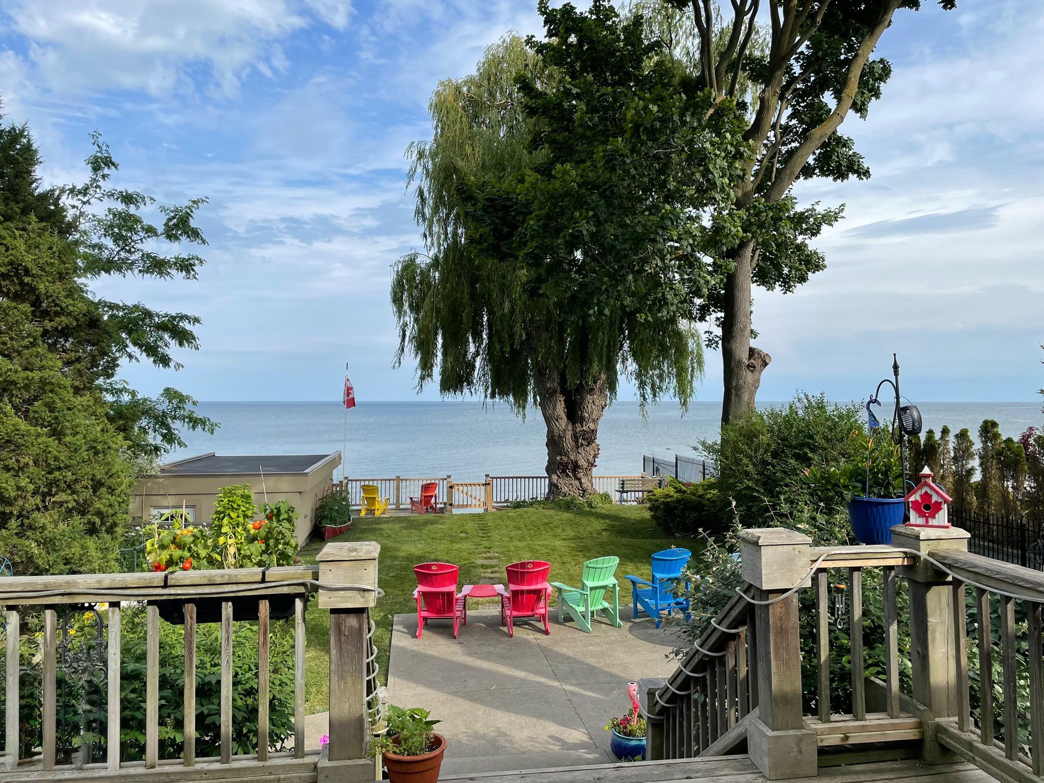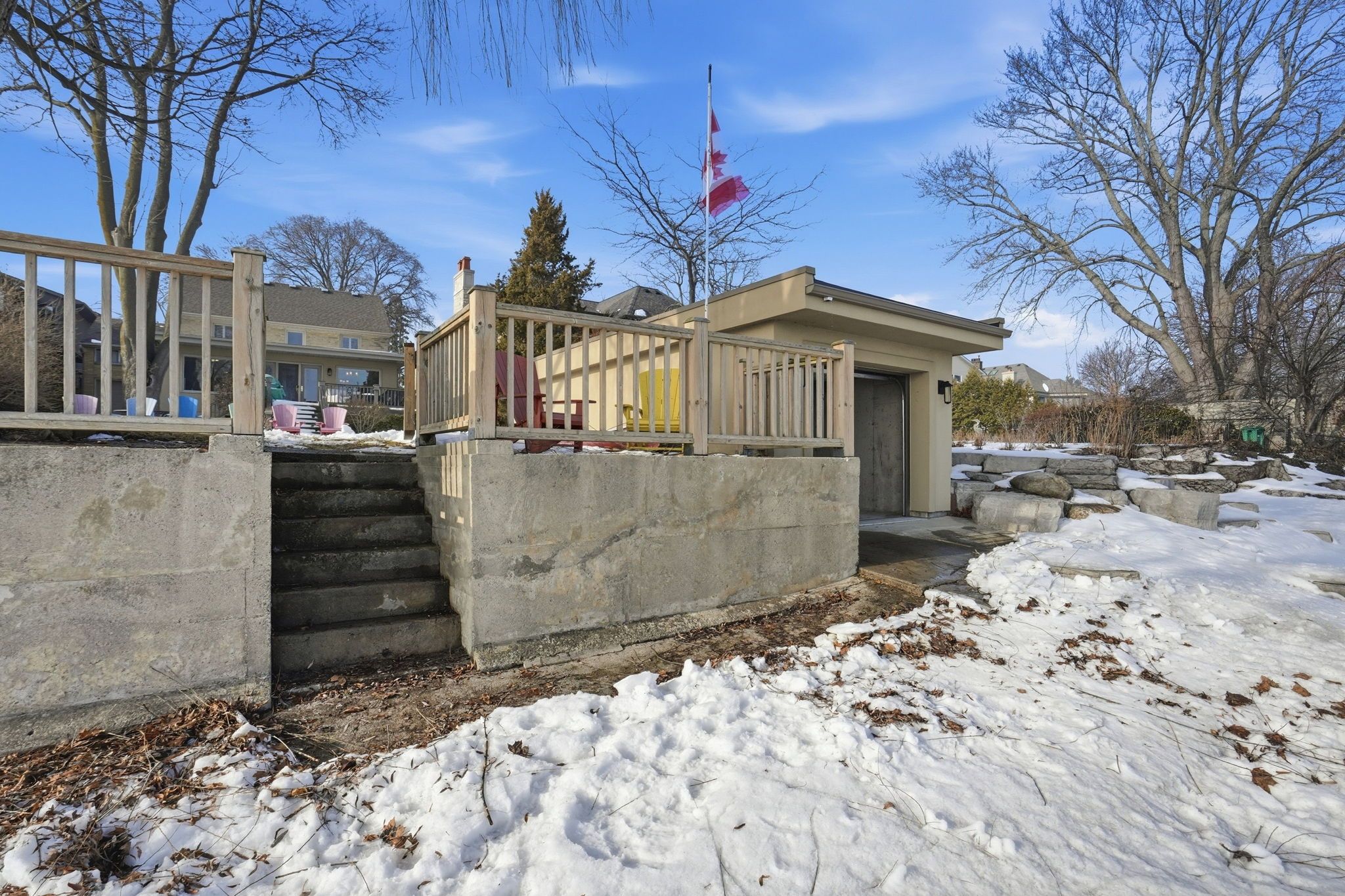 Exceptional waterfront living in the heart of Port Credit, offering outstanding long-term value for end-users, builders, or investors seeking immediate enjoyment, rental potential, or future redevelopment within one of South Mississauga's most established and supply-constrained lakefront communities with a lot depth from street to shoreline of 249 feet. Set directly along the water on a quiet residential street, this 3+2 bedroom home combines a rare lakefront setting with a truly walkable village lifestyle, just steps to shops, cafés, restaurants, marina, trails, transit, and everyday amenities. The stone exterior, patterned concrete walkway, and covered front entry create timeless curb appeal, while mature trees and established landscaping provide privacy and a natural setting. Inside, Brazilian cherry hardwood floors flow throughout the main and upper levels, complemented by crown moulding and custom trim detailing. The main floor features a private office, formal living room with gas fireplace, and a rear great room with expansive windows overlooking the water and walkout to the deck. The kitchen is well-appointed with granite countertops, tumbled marble backsplash, KitchenAid appliances, pantry, and breakfast buffet. Upstairs offers nearly 8-foot ceilings, three bedrooms including a primary suite with lake views, and a full bath. The finished basement adds two additional bedrooms, a recreation room, full washroom, and laundry. The private backyard opens directly to the water and includes a wood deck and charming boathouse for canoe and kayak storage-an authentic and increasingly rare Port Credit waterfront offering.