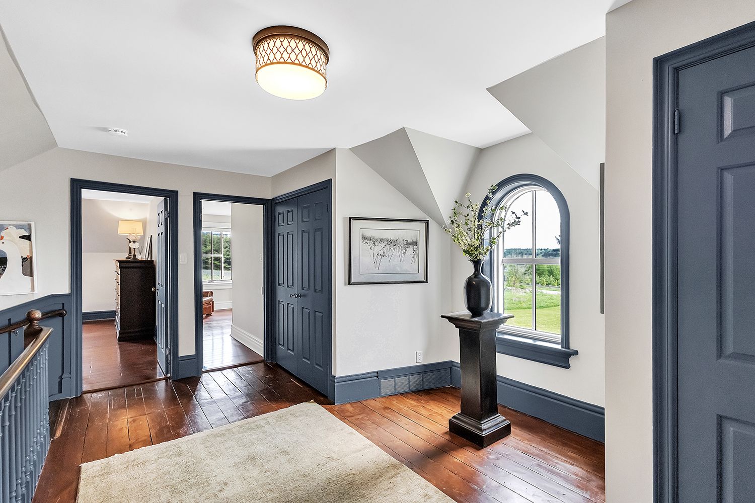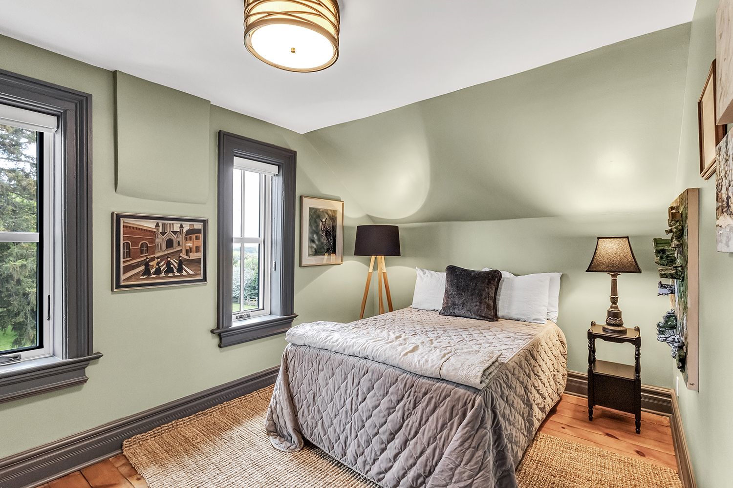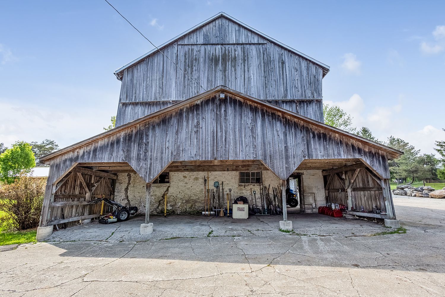 A prominent residence with all the latest luxuries and conveniences yet retaining all the charm of the original residence. 5 bedrooms with main floor guest suite, quartz island eat-in kitchen, comfortable eight seat dining room, large family room with wood burning fireplace. Front entrance of the house has a spacious foyer with elegant winding staircase with an office & a further living room. All bedrooms have pastoral country views with the primary ensuite bathed in natural light through its skylight, it has a soaker tube, separate shower and double sinks. Enclosed back yard has many features including a waterfall, jacuzzi, BBQ area & a newly installed saltwater swimming pool, ample entertaining space, 5-acre organic farm - grow your own produce and more! Newly established fruit trees and berries. Entire area is irrigated with frost free hydrants throughout. Additional heated greenhouse and separate farm entrance. Large restored bank barn. Covered parking for numerous vehicles. Brand new office building. Garage, workshop. 1/2 acre pond, fully enclosed, bonfire pit, 6-hole chipping green. 4km walking trails. Total 45.2 acres. Minutes to Orangeville, hospital, schooling across the street and golf as Osprey.