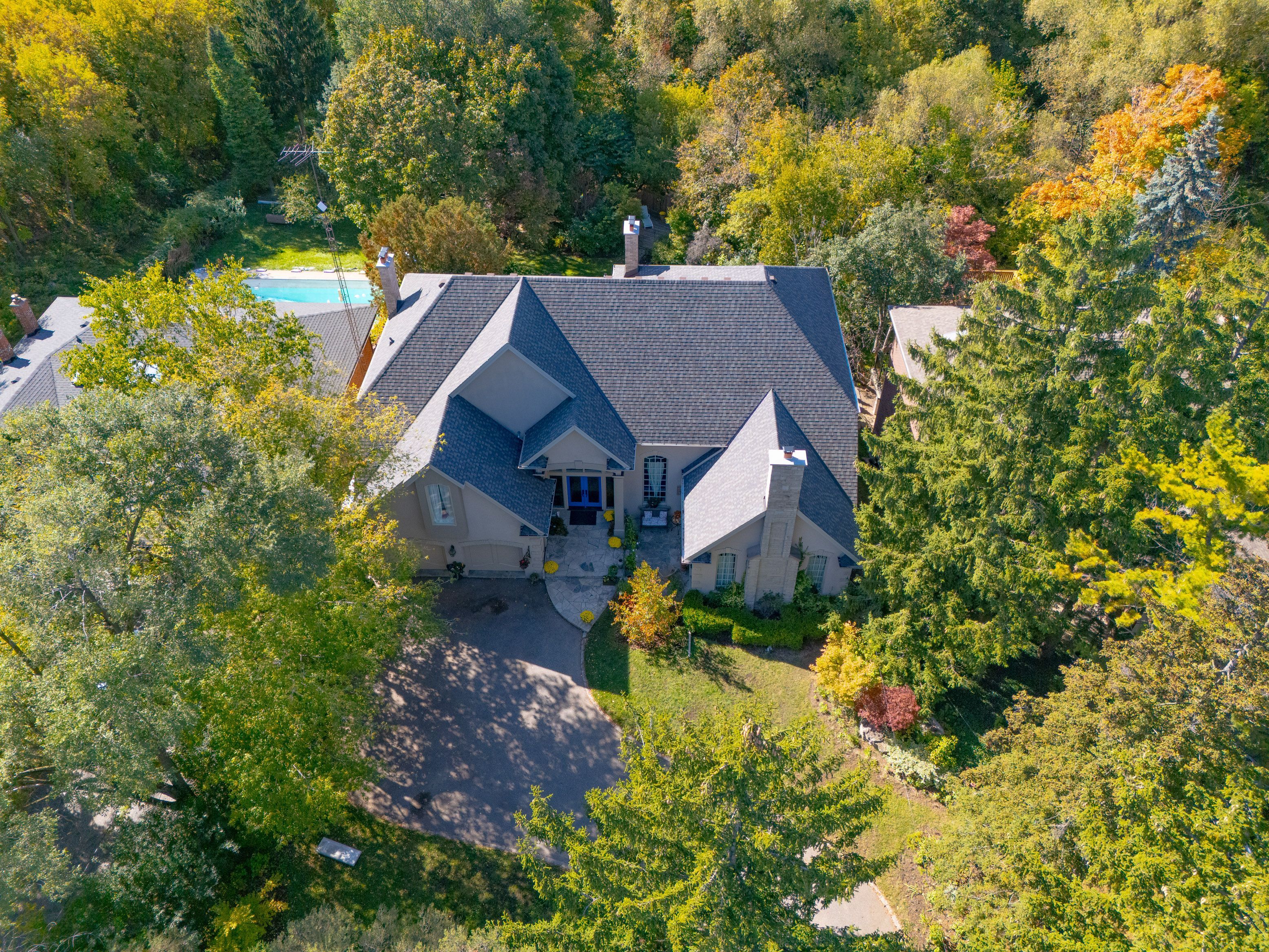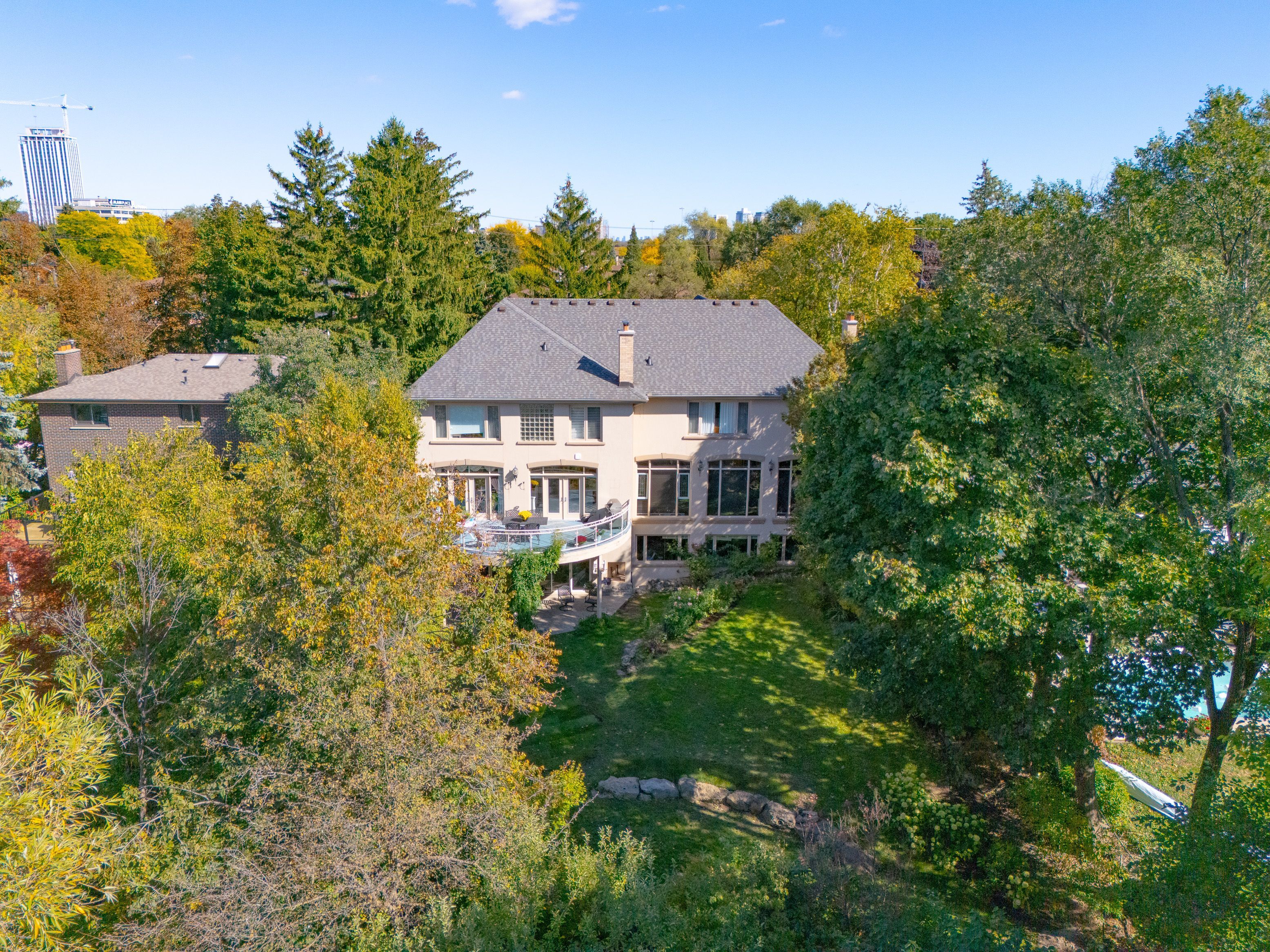 Welcome to your own private ravine escape in Markland Wood. Set on an incredible 80 x 252-foot lot backing onto Renforth Creek, this custom-built home offers over 5,000 sq ft of interior space to live, relax, and entertain in style! Soaring ceilings and sun-filled rooms create a bright, open feel, while the stunning great room brings natural light into your everyday life. With multiple fireplaces, there's no shortage of cozy spaces to unwind. Host memorable dinners with a kitchen and dining area that walks out to a huge deck overlooking the trees. The walk-out lower level with 9-10 ft ceilings opens directly to the back yard ravine-perfect for gatherings or creating your dream retreat. No need to go to the cottage anymore in a home like this! With four bedrooms, five bathrooms, and plenty of parking, this is the perfect home for growing families, multi-generational living, home offices or anyone who loves space, privacy, and a LOT of WOW!