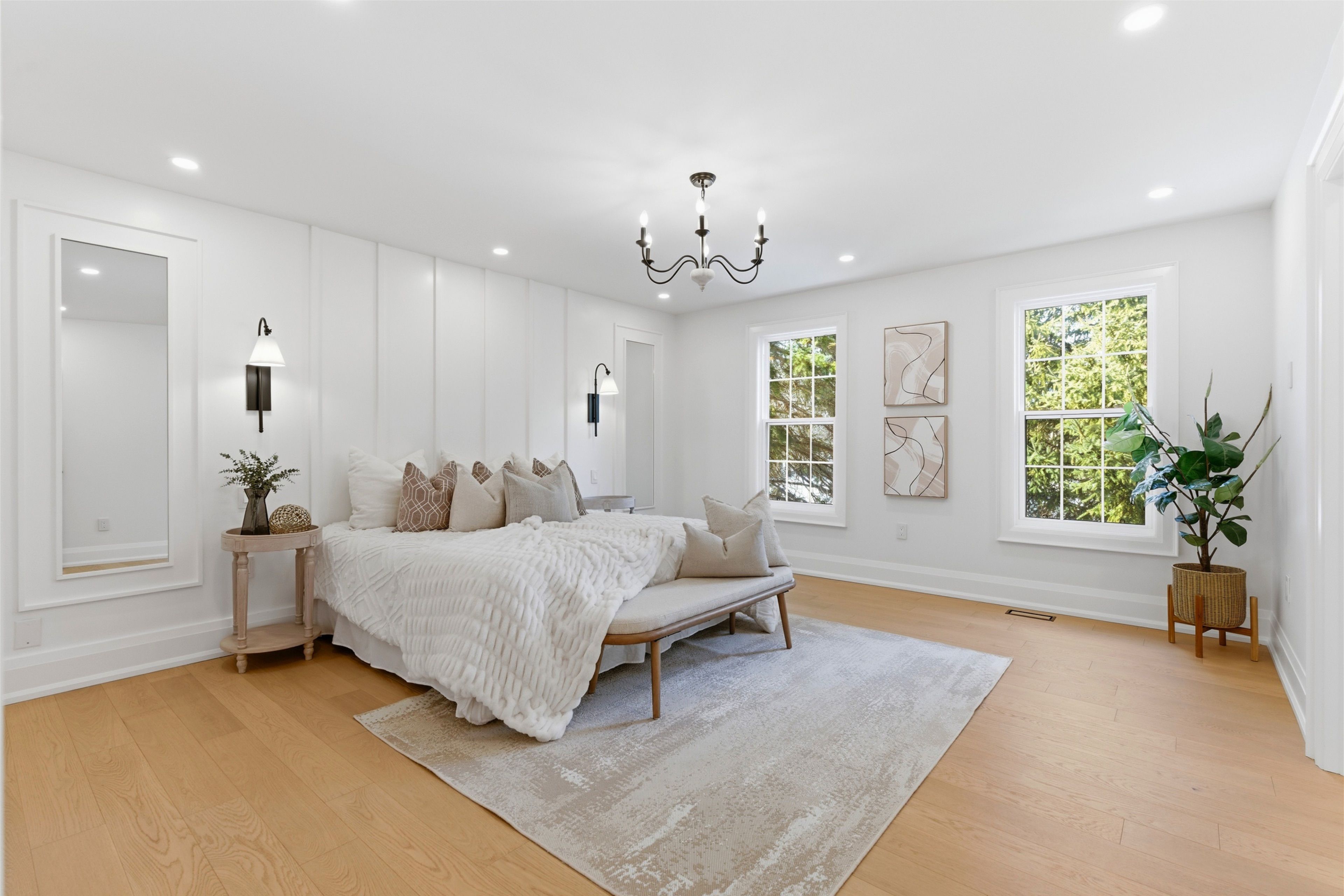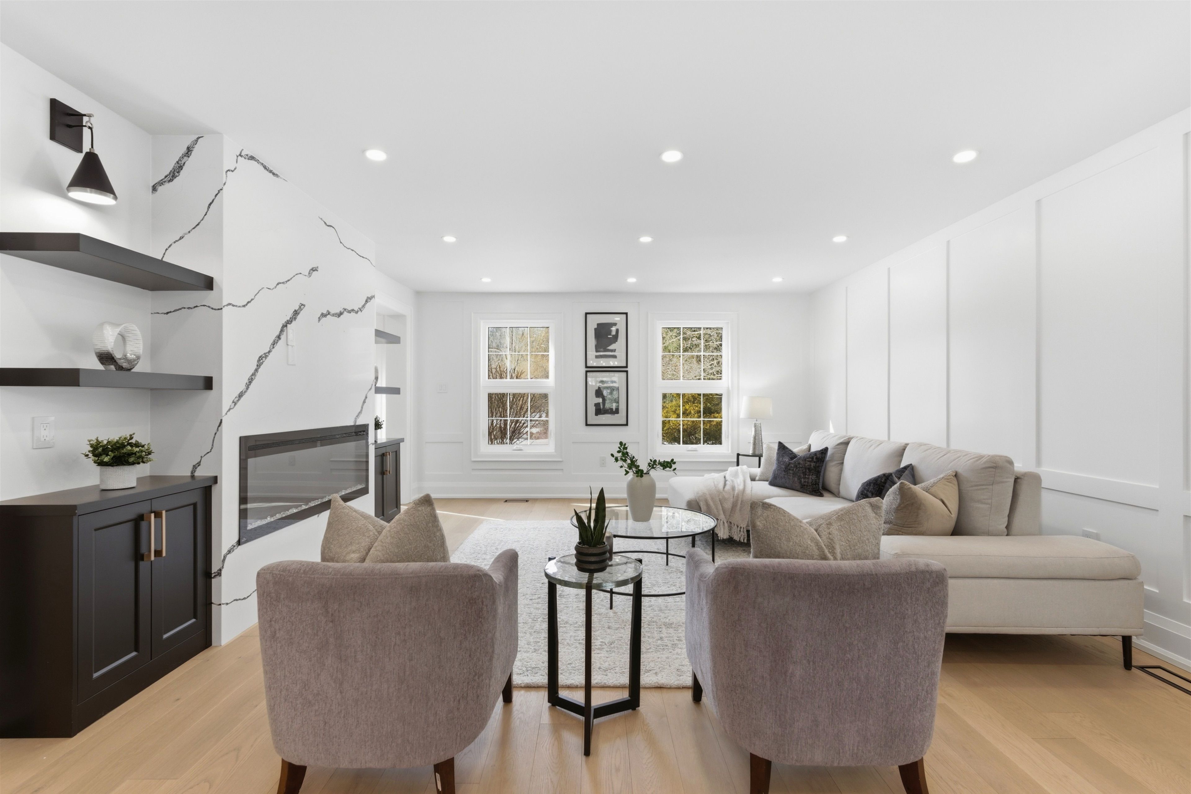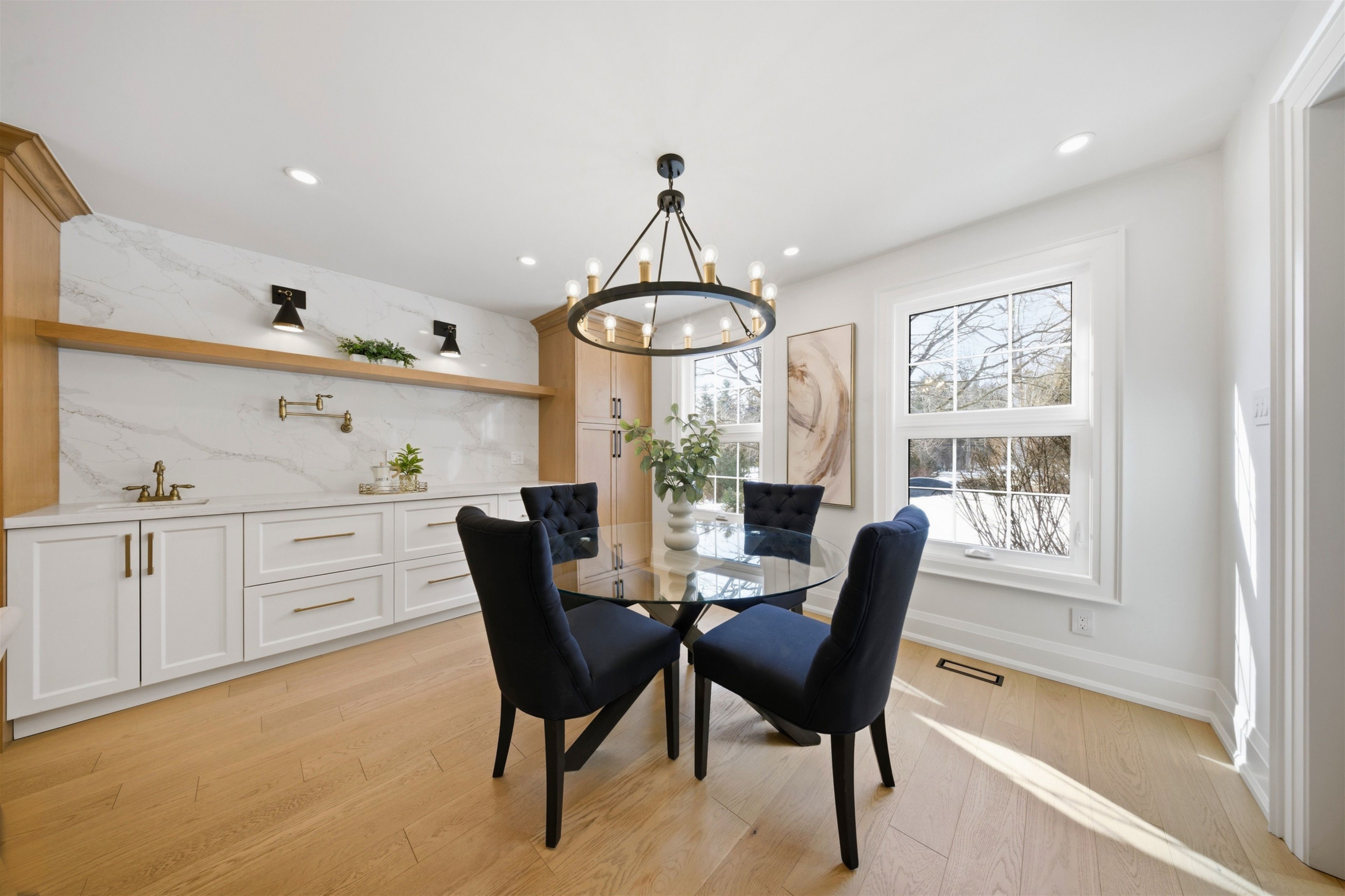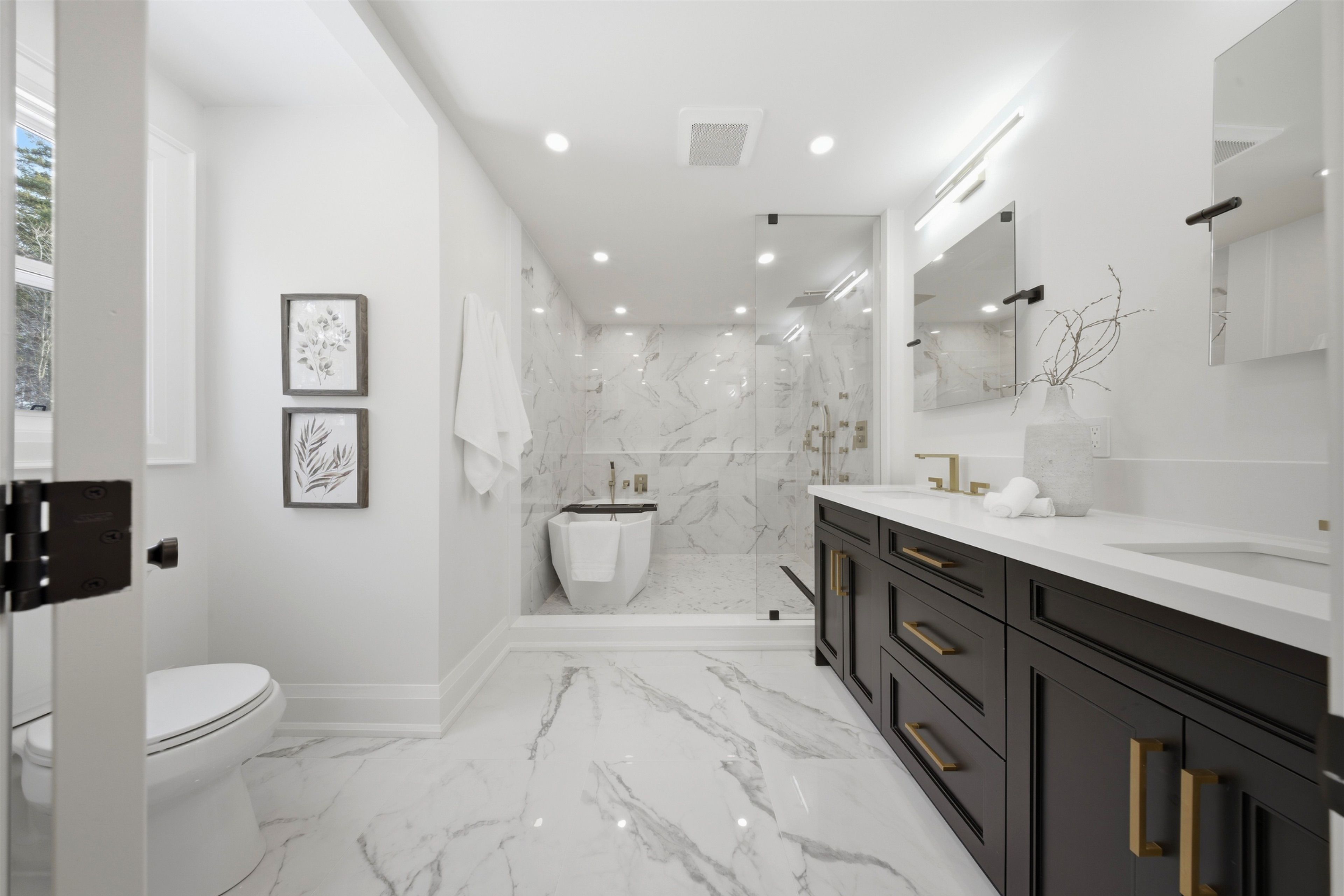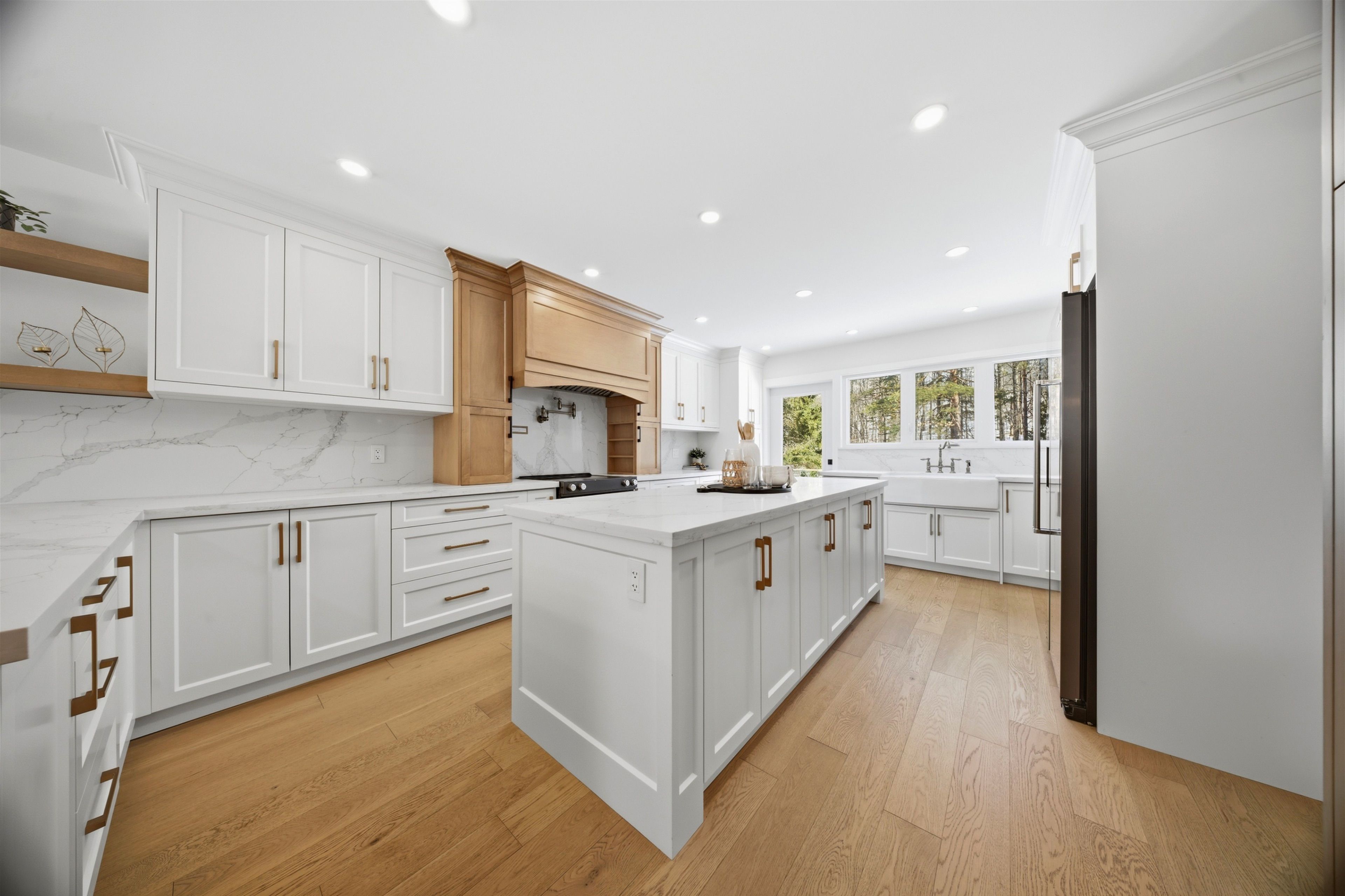 Welcome to this exceptional 5-bedroom estate offering over 6,000 sq. ft. of total refined living space, perfectly positioned on a breathtaking 3/4 acre property backing onto forest for ultimate privacy and serenity. Set well back from the road, this impressive residence delivers a true estate-like presence with a long approach and captivating natural surroundings. Inside, luxury and craftsmanship are showcased at every turn. The stunning chef's kitchen is a true showpiece, complete with quartz countertops, an oversized island, pot fillers, built-in refrigeration drawers, premium appliances, and custom cabinetry designed for both beauty and function. Ideal for entertaining, the expansive principal rooms flow seamlessly together, enhanced by elegant wall paneling, designer lighting, and an abundance of pot lights that create a warm yet sophisticated ambiance. The spacious bedrooms offer comfort and retreat, each featuring custom walk-in closets, while the primary suite elevates everyday living with spa-inspired finishes and elevated detailing. Every bathroom is appointed with heated floors, delivering everyday comfort and a true spa-like experience throughout the home. The exterior glass railings, and countless high-end upgrades throughout reflect thoughtful design and uncompromising quality. Adding to the home's charm and exclusivity, a picturesque creek with a tranquil pond runs across the front of the property, enhancing the natural beauty of the setting. Backing onto lush forest, this private oasis provides stunning views from every window. A seamless connection between indoor luxury and outdoor serenity. Cozy yet grand, elegant yet inviting, this is a rare opportunity to own a remarkable estate property where refined living meets breathtaking nature. Come and fall in love.