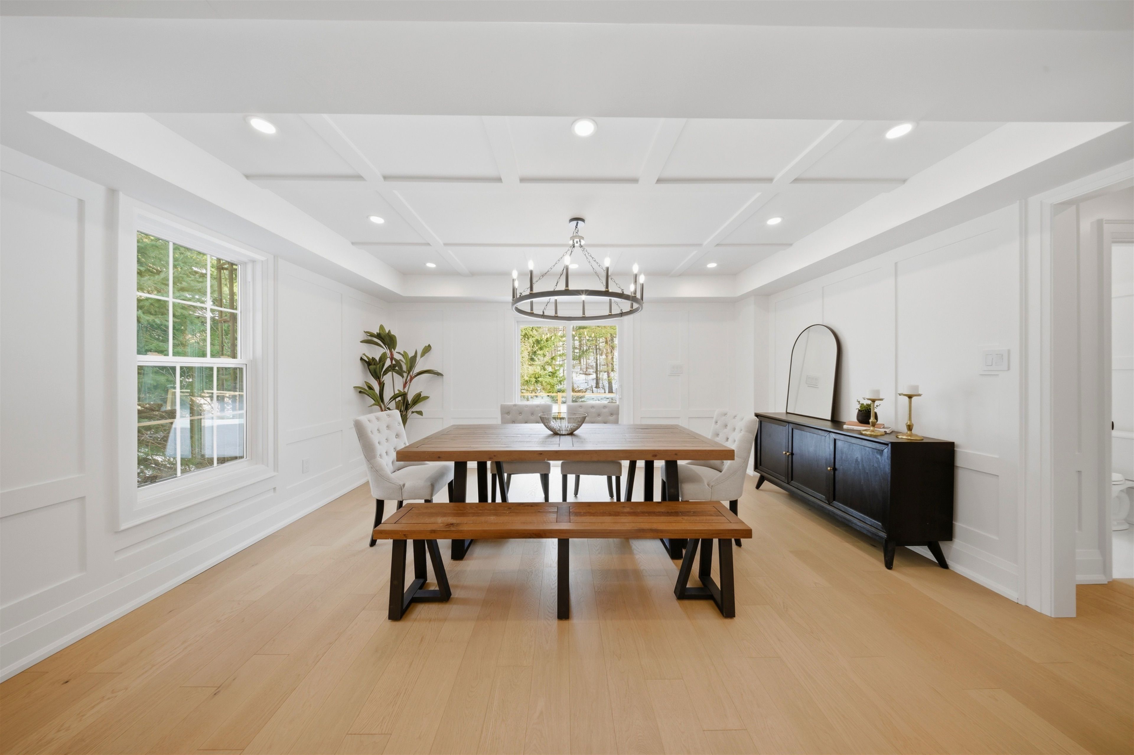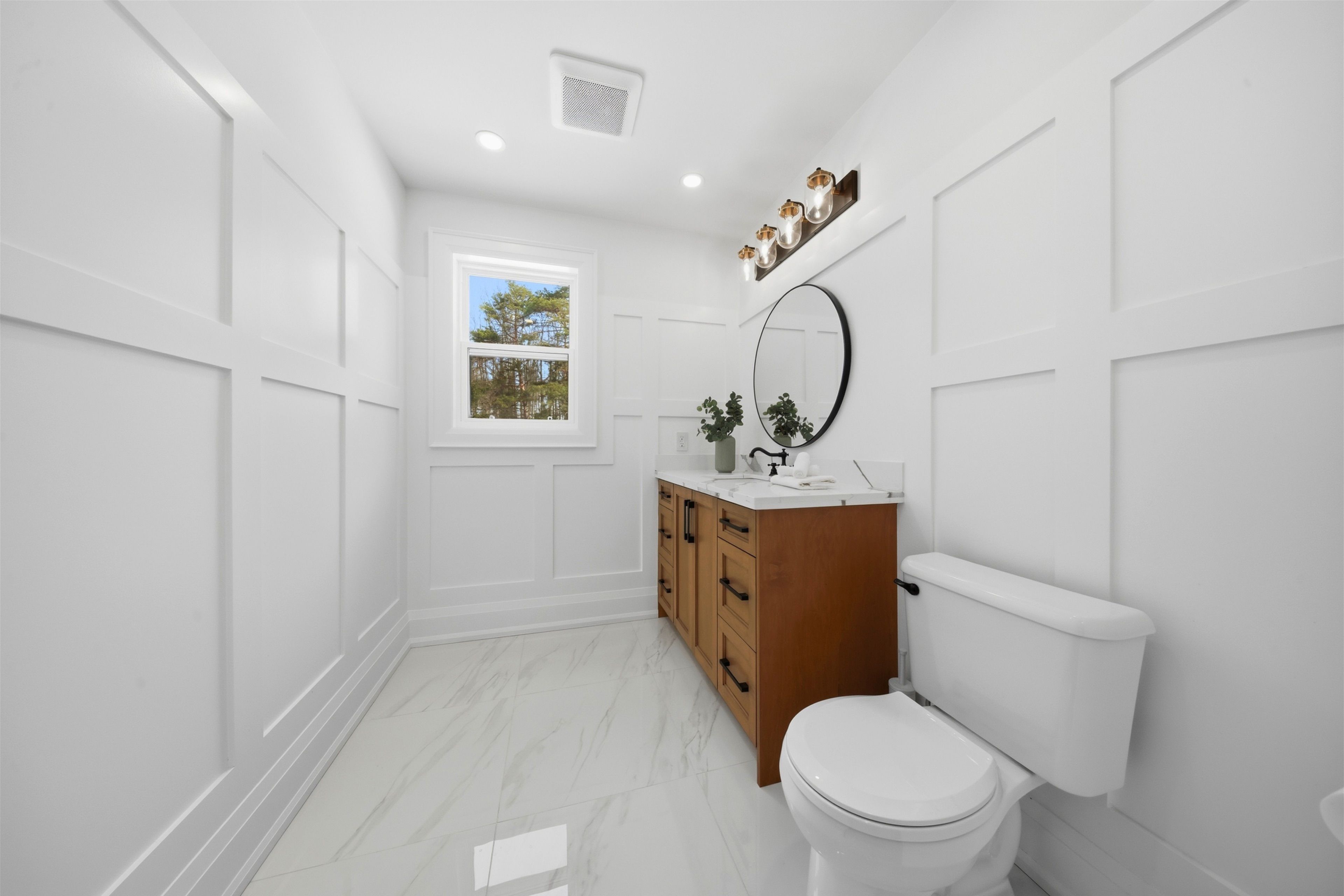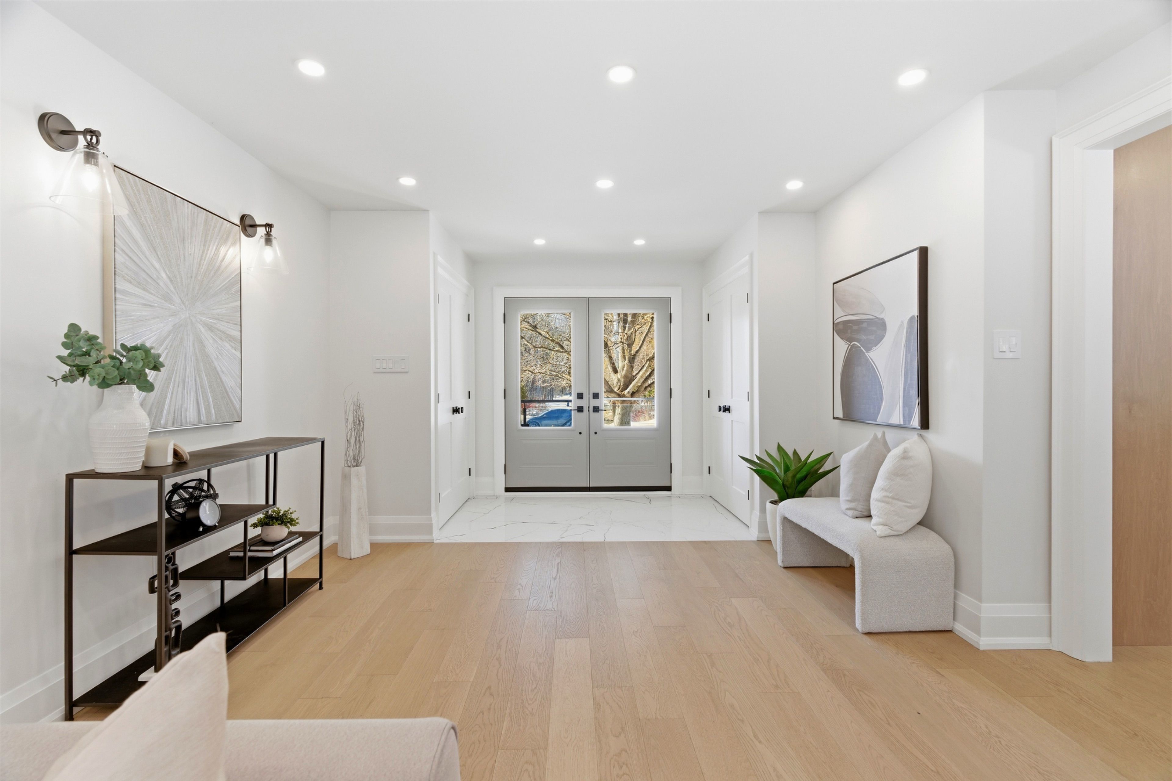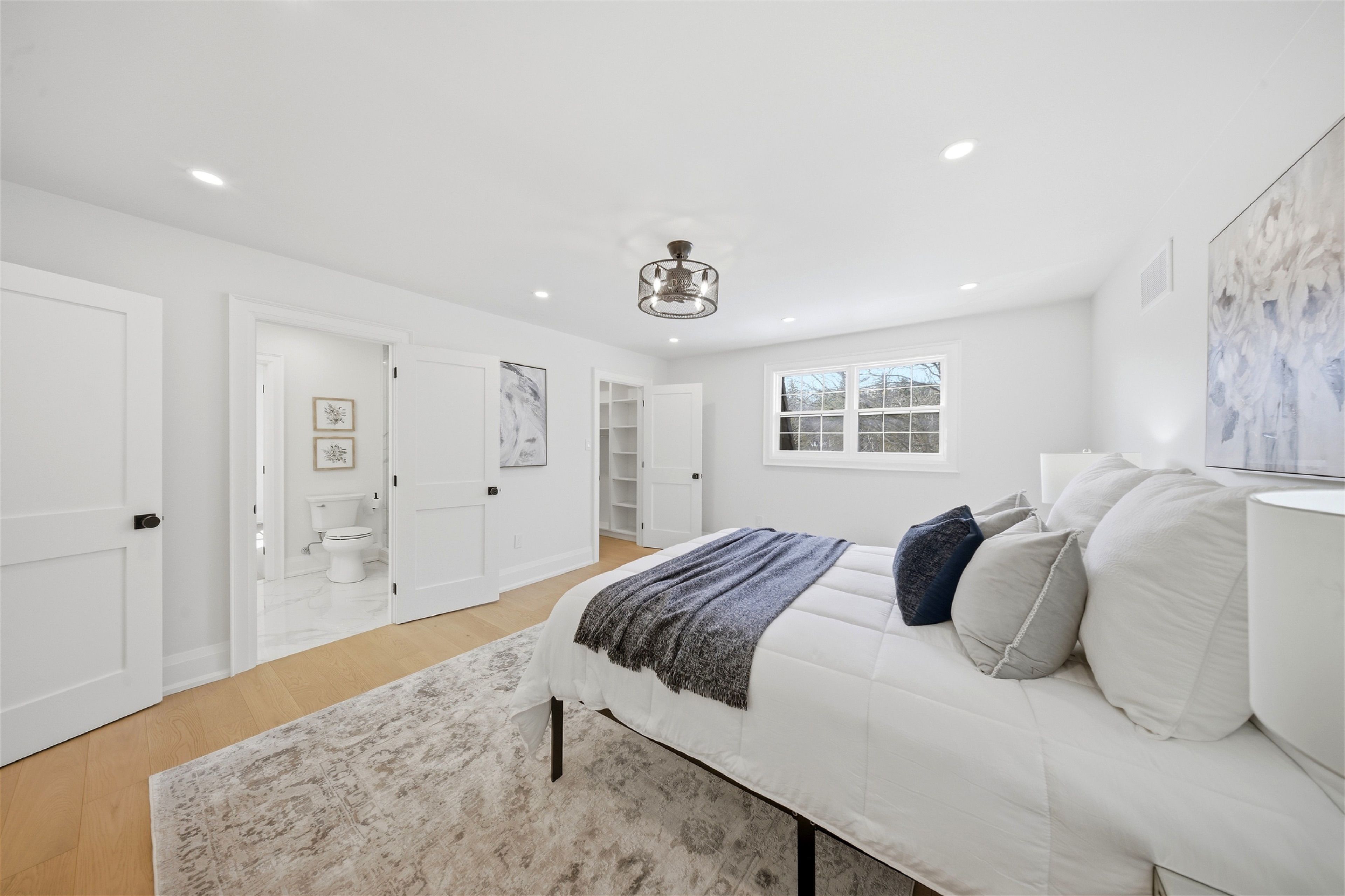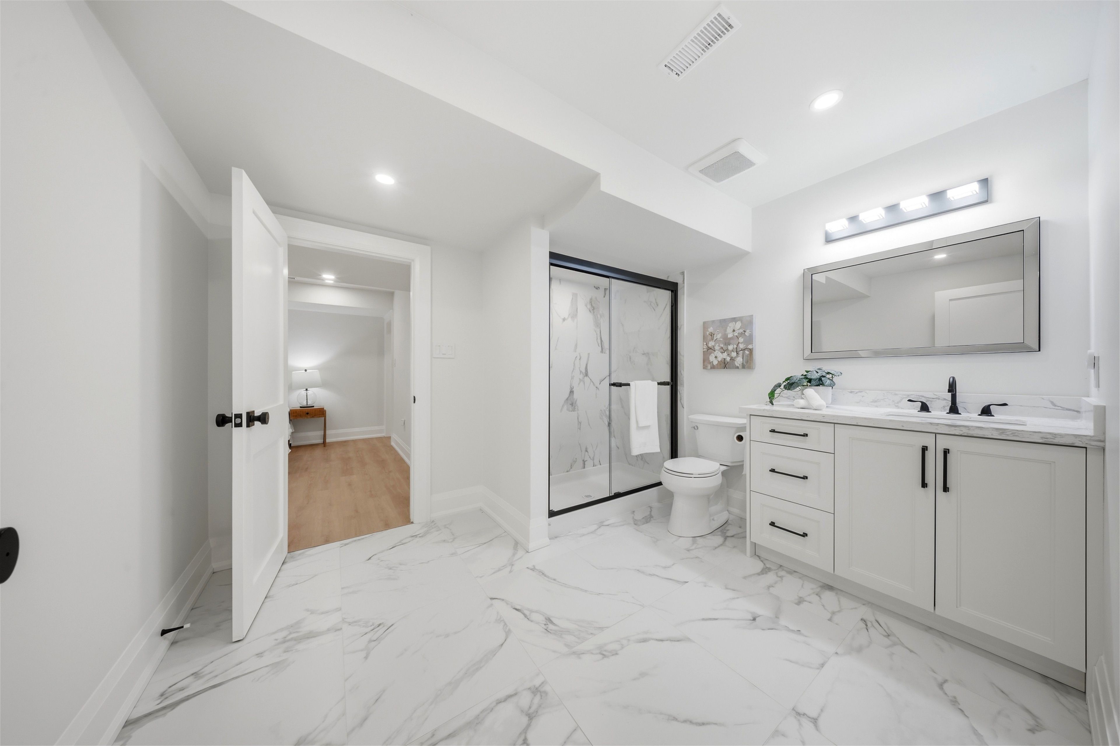 Welcome to this exceptional 5-bedroom estate offering over 6,000 sq. ft. of total refined living space, perfectly positioned on a breathtaking 3/4 acre property backing onto forest for ultimate privacy and serenity. Set well back from the road, this impressive residence delivers a true estate-like presence with a long approach and captivating natural surroundings. Inside, luxury and craftsmanship are showcased at every turn. The stunning chef's kitchen is a true showpiece, complete with quartz countertops, an oversized island, pot fillers, built-in refrigeration drawers, premium appliances, and custom cabinetry designed for both beauty and function. Ideal for entertaining, the expansive principal rooms flow seamlessly together, enhanced by elegant wall paneling, designer lighting, and an abundance of pot lights that create a warm yet sophisticated ambiance. The spacious bedrooms offer comfort and retreat, each featuring custom walk-in closets, while the primary suite elevates everyday living with spa-inspired finishes and elevated detailing. Every bathroom is appointed with heated floors, delivering everyday comfort and a true spa-like experience throughout the home. The exterior glass railings, and countless high-end upgrades throughout reflect thoughtful design and uncompromising quality. Adding to the home's charm and exclusivity, a picturesque creek with a tranquil pond runs across the front of the property, enhancing the natural beauty of the setting. Backing onto lush forest, this private oasis provides stunning views from every window. A seamless connection between indoor luxury and outdoor serenity. Cozy yet grand, elegant yet inviting, this is a rare opportunity to own a remarkable estate property where refined living meets breathtaking nature. Come and fall in love.