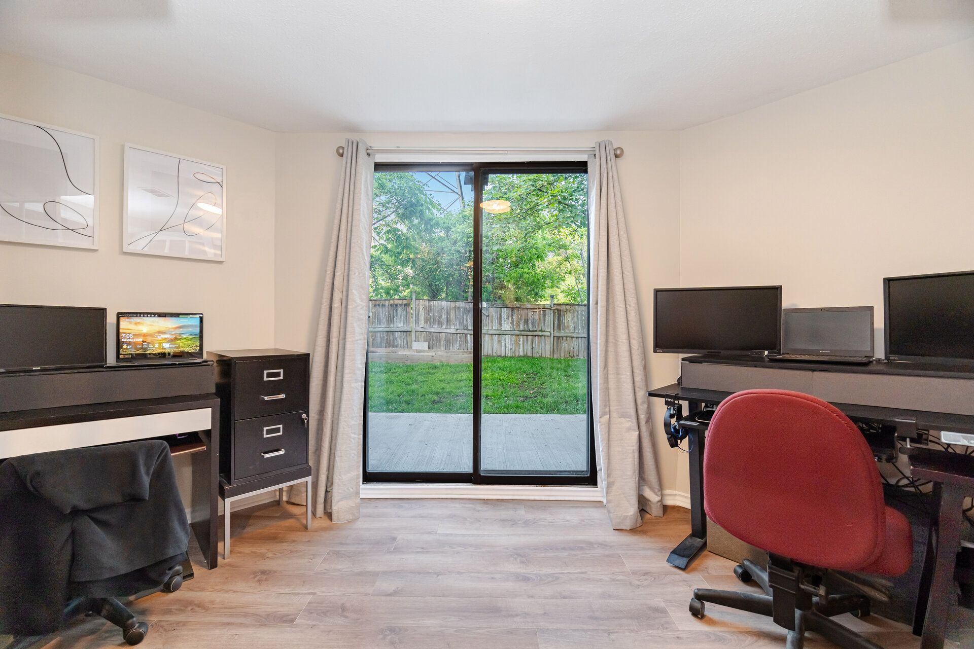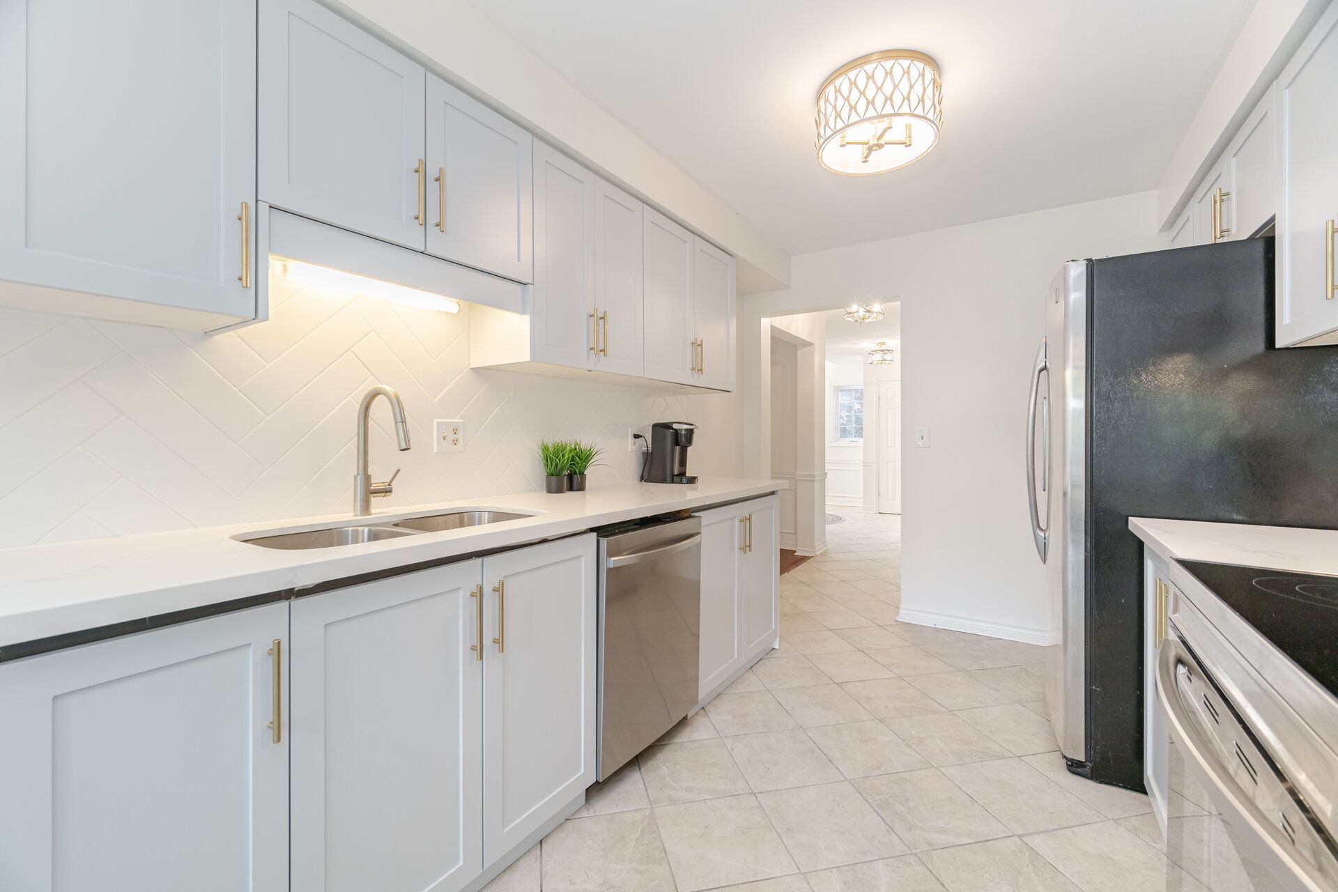 Beautiful renovated 4 Bedroom Home Ideally Located Within Walking Distance To The Lake, Spencer Smith Park & Mapleview Mall! 2025 Renovations include Freshly painted throughout, Kitchen cabinets, quartz countertops & backsplash! Newly renovated 2nd floor 4 piece bathroom. New carpet on stairs. Strip hardwood throughout living/dining rooms and family room and throughout 2nd floor. Large Master Bedroom With Walk-In Closet & 4 Piece En Suite! IN-LAW SUITE Finished Walk out basement with Separate Entrance With 2nd Kitchen, 4 Piece Bathroom, Living Area With Fireplace & 2 Large Bedrooms and separate laundry! Ideal for extended family or income potential!! Backing onto Greenspace for complete privacy!! Excellent value!!