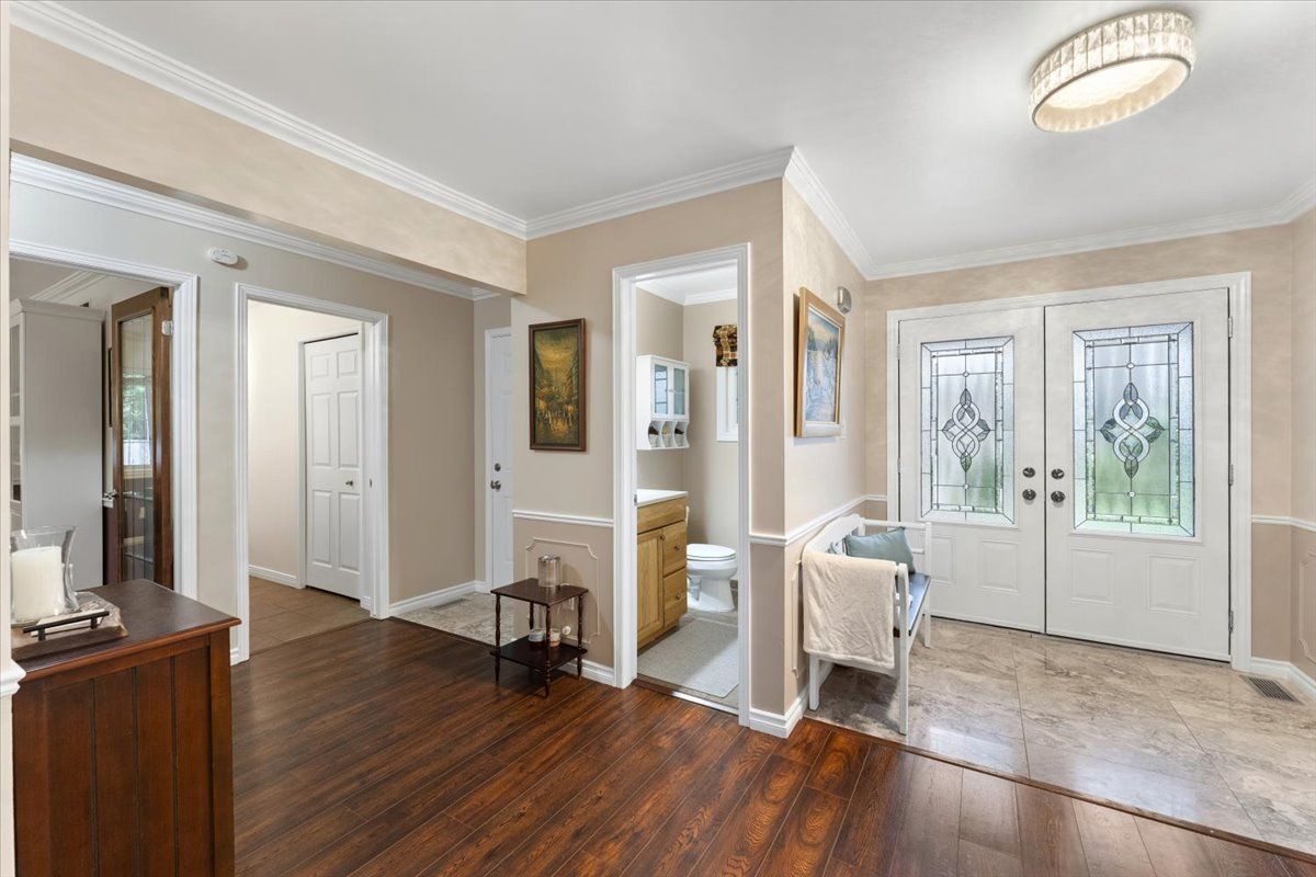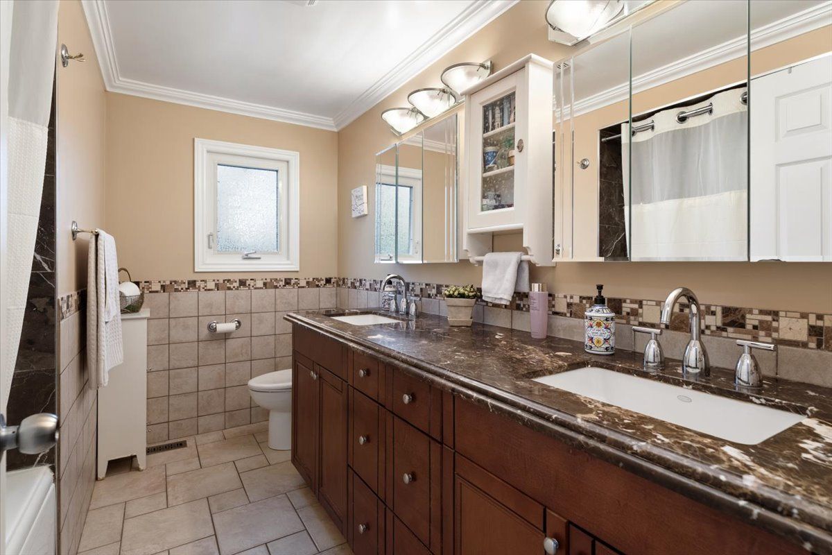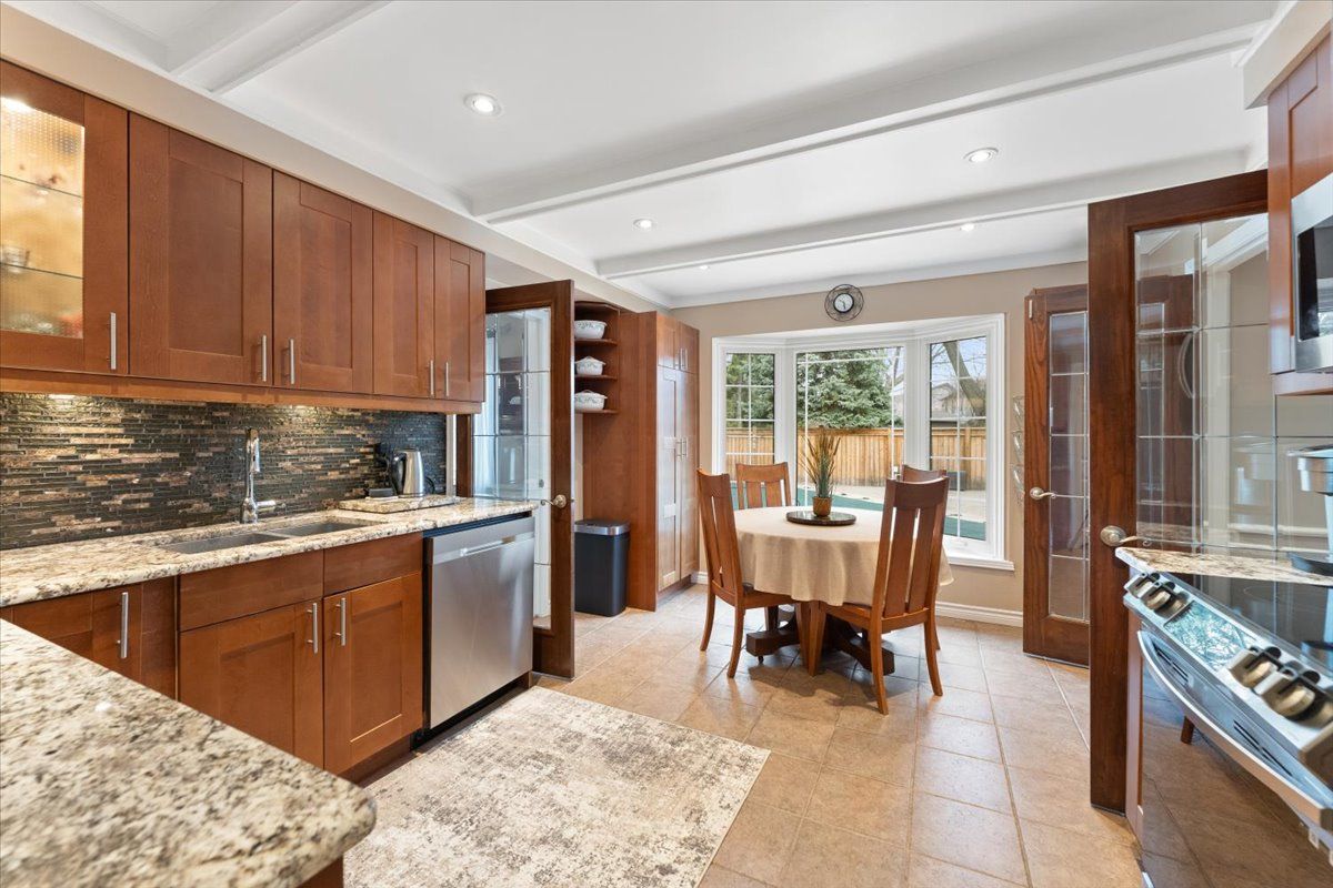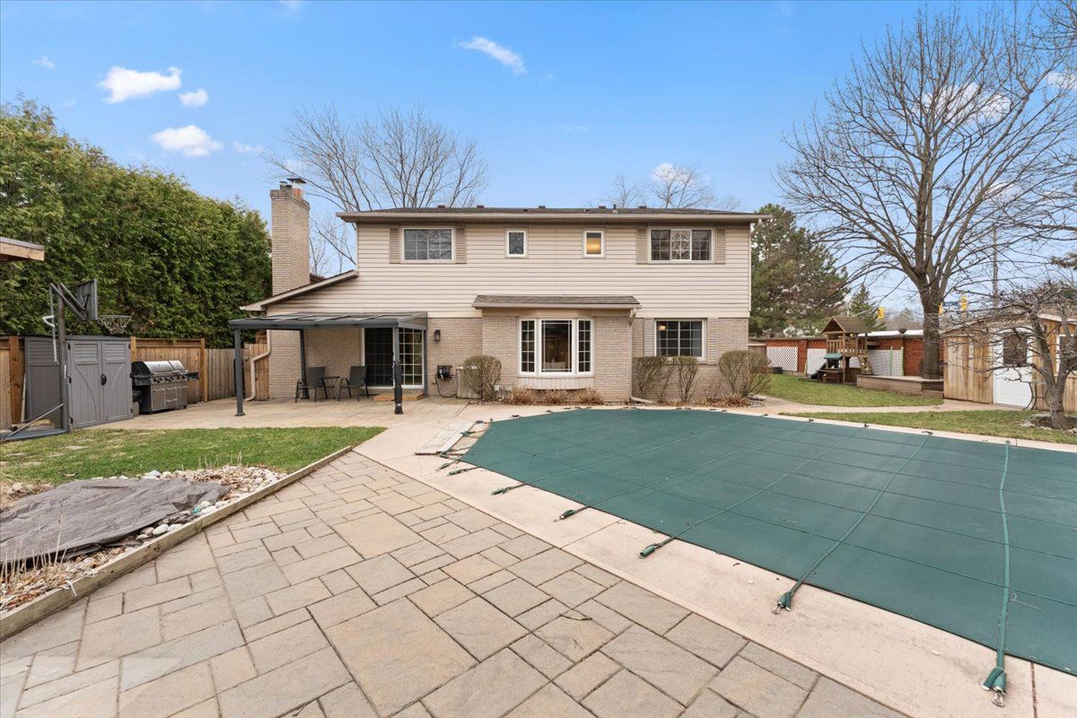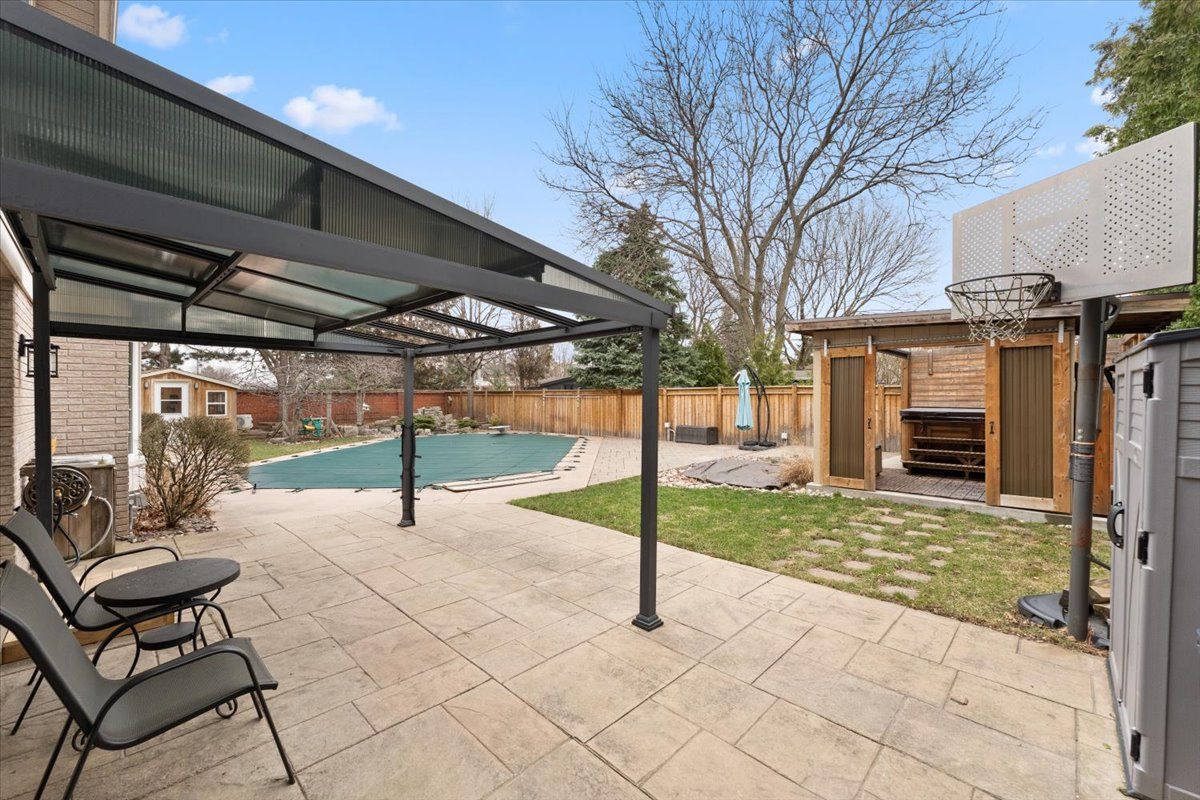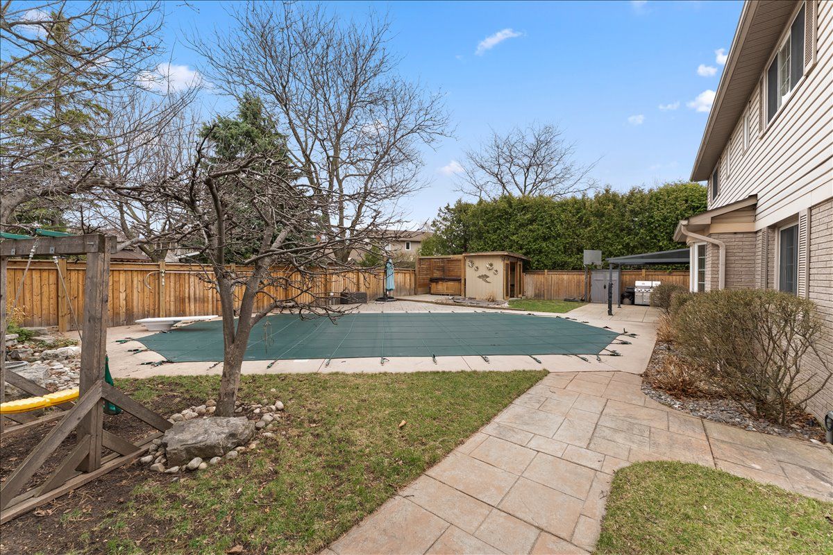 Set in sought-after Shoreacres, close to Nelson Park-perfect for morning walks and enjoying open green space-this spacious 5+1 bedroom home offers approx 4,000 sq ft of total living space (including a finished basement), providing plenty of room for a growing family. The main floor features bright, well-sized principal rooms, including a spacious living room, separate dining area, and a cozy family room with a wood-burning fireplace. The centrally located kitchen is ideal for everyday living, while a main floor bedroom (currently used as an office) adds flexibility for guests or working from home. A convenient side entrance leads to a functional mudroom with built-in storage. Upstairs offers a comfortable primary bedroom filled with natural light and overlooking the backyard-especially enjoyable in the summer-along with three additional bedrooms and a versatile upper hall space ideal for a sitting area, study, or kids' hangout. The 3-piece ensuite features a glass shower and granite countertop, while the main bathroom includes double sinks and an air jet soaker tub. The finished walk-up basement with separate entrance adds valuable additional living space, including a bedroom with fireplace, exercise room, and a recreation area with bar-great for entertaining or extended family use. The backyard is set up for summer enjoyment with an inground pool, updated hot tub with new cover, and a beautiful detached office with ductless heating and cooling-perfect for working from home or a quiet retreat. Conveniently located near schools, shopping, transit, and just minutes to the lake.