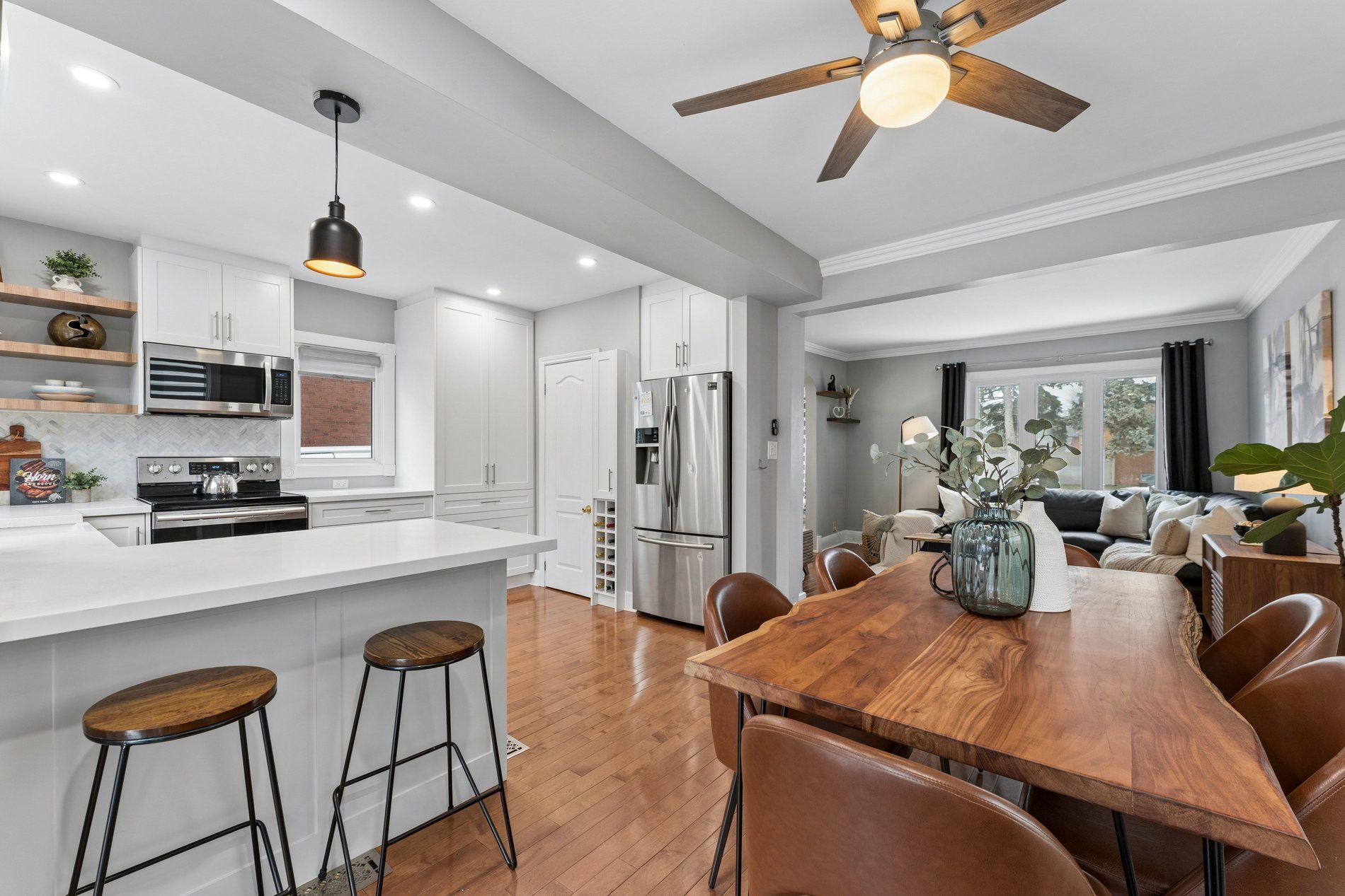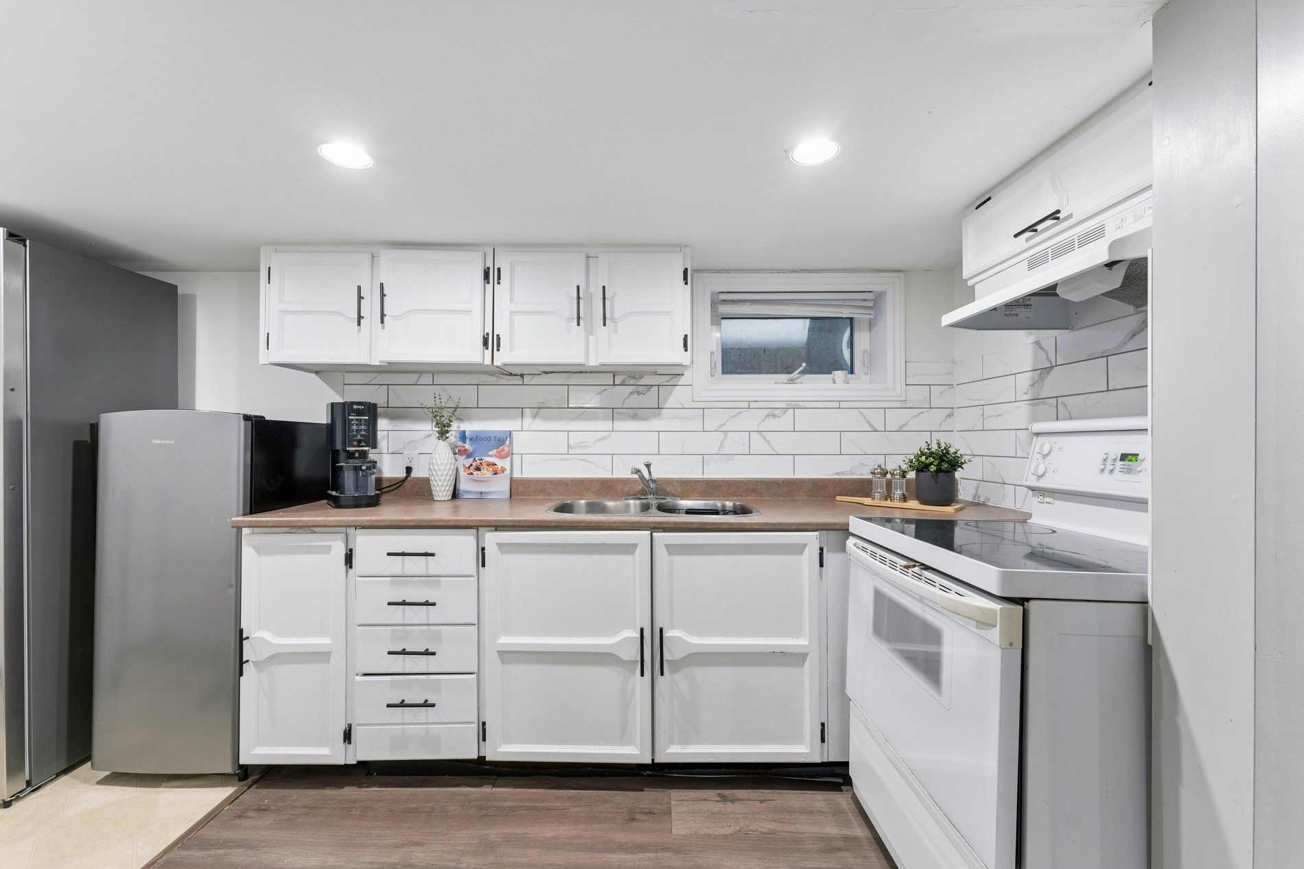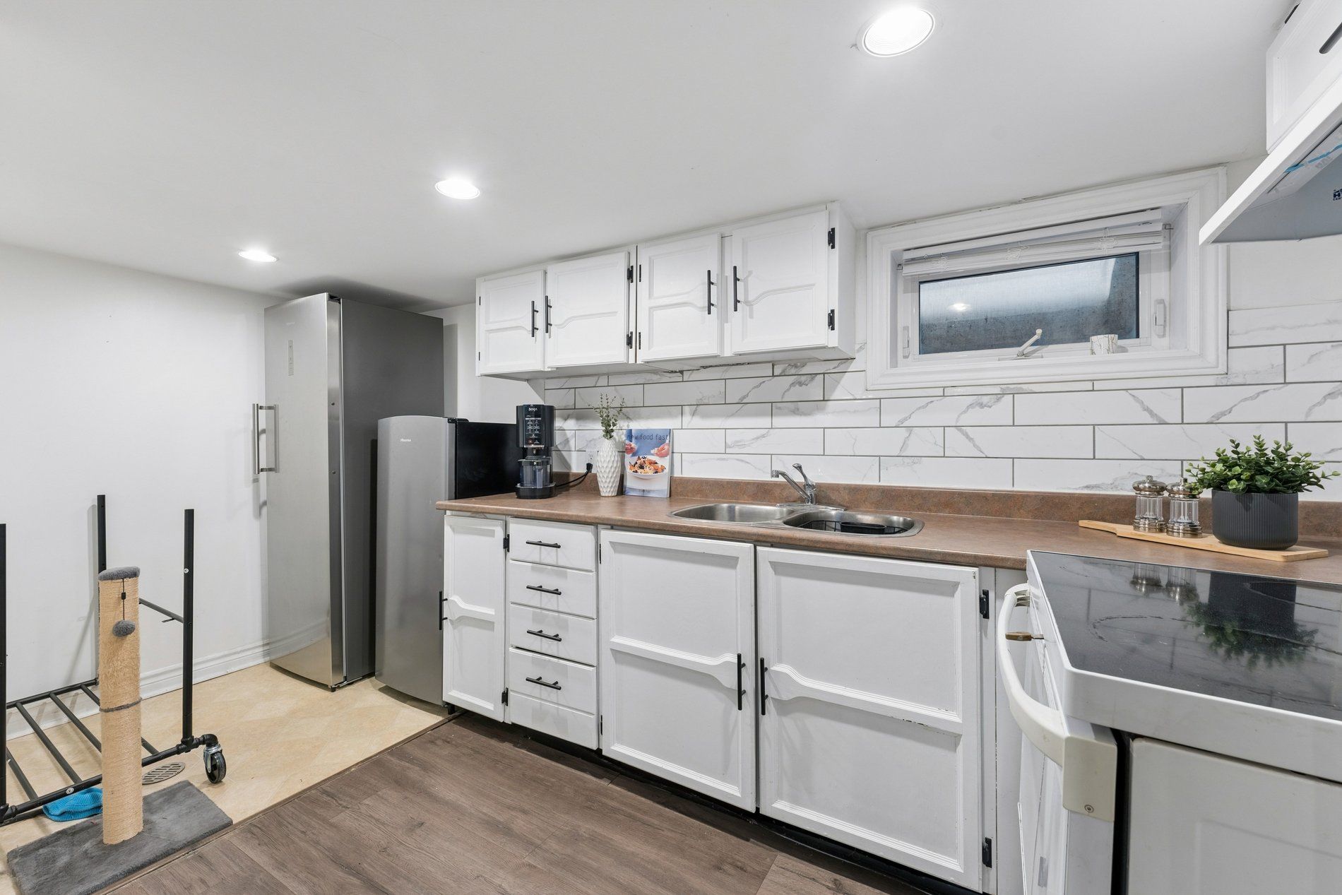 Charming and beautifully updated 2-storey 3+1 bedroom family home offering exceptional space and income potential. Featuring a separate entrance to a finished basement with its own kitchen and 4-piece bathroom - ideal for an in-law or nanny suite and ready to make legal for future rental potential. The main level offers bright open-concept living and dining with large windows and hardwood flooring, along with a modern kitchen featuring stainless steel appliances, custom cabinetry, quartz counters, backsplash and breakfast bar. The dining area provides convenient walk-out access to the private backyard, making it perfect for indoor-outdoor entertaining.Upstairs offers three generously sized bedrooms, updated laminate flooring, convenient upper-level laundry with stacked washer & dryer, and a bright 4-piece bathroom with window and plenty of natural light. Bedrooms also include custom wardrobe closets and additional storage space available in the attic with staircase access. Enjoy a private, fully fenced and landscaped backyard designed for entertaining with a spacious built-in deck, custom wood seating, privacy screening, outdoor TV area, fire pit and tranquil garden pond water feature. The property also includes an 8 x 16 backyard shed for additional storage. Located close to schools, parks, shopping, GO Transit and the new recreation trail (2023), this home offers the perfect combination of comfort, flexibility and convenience.