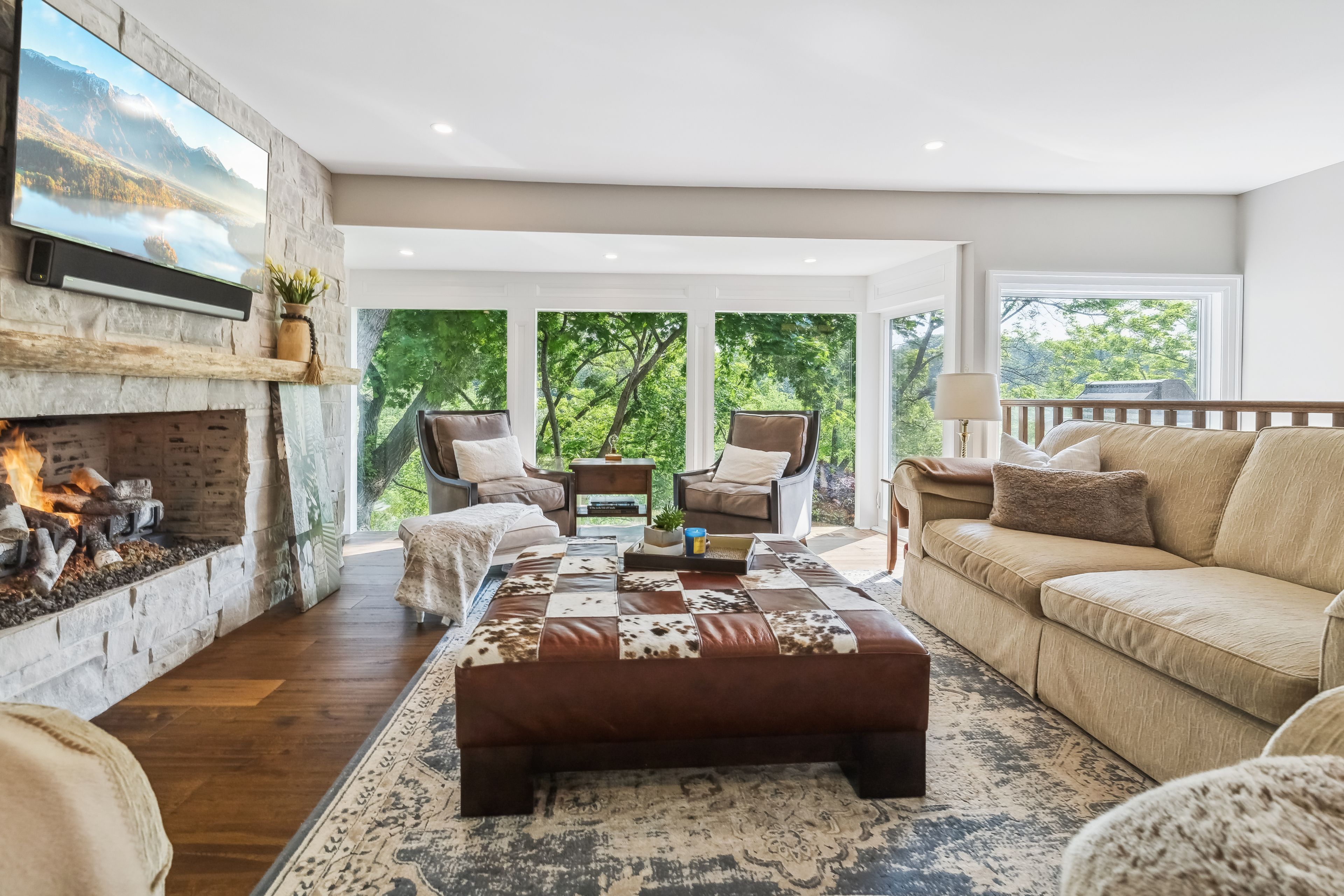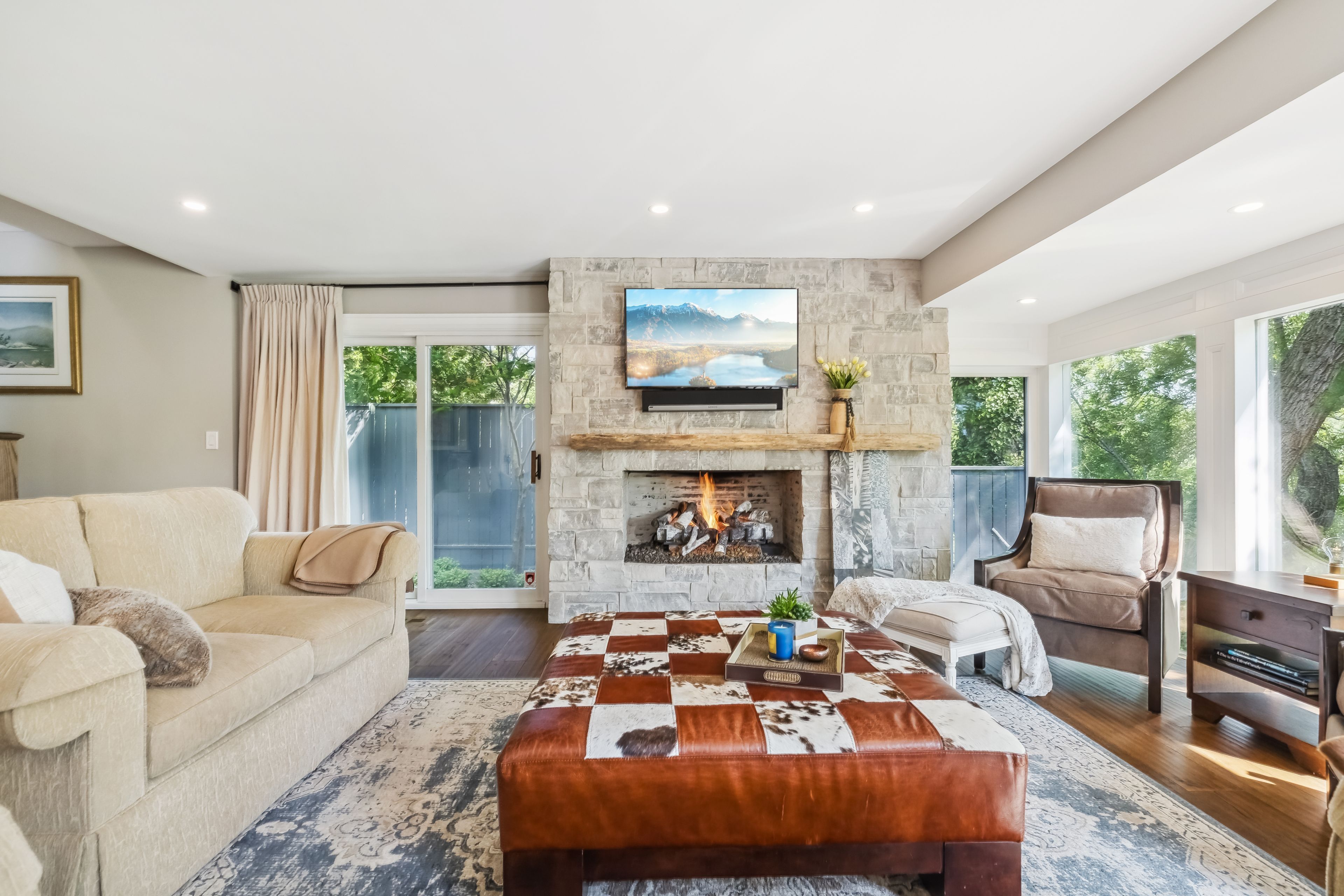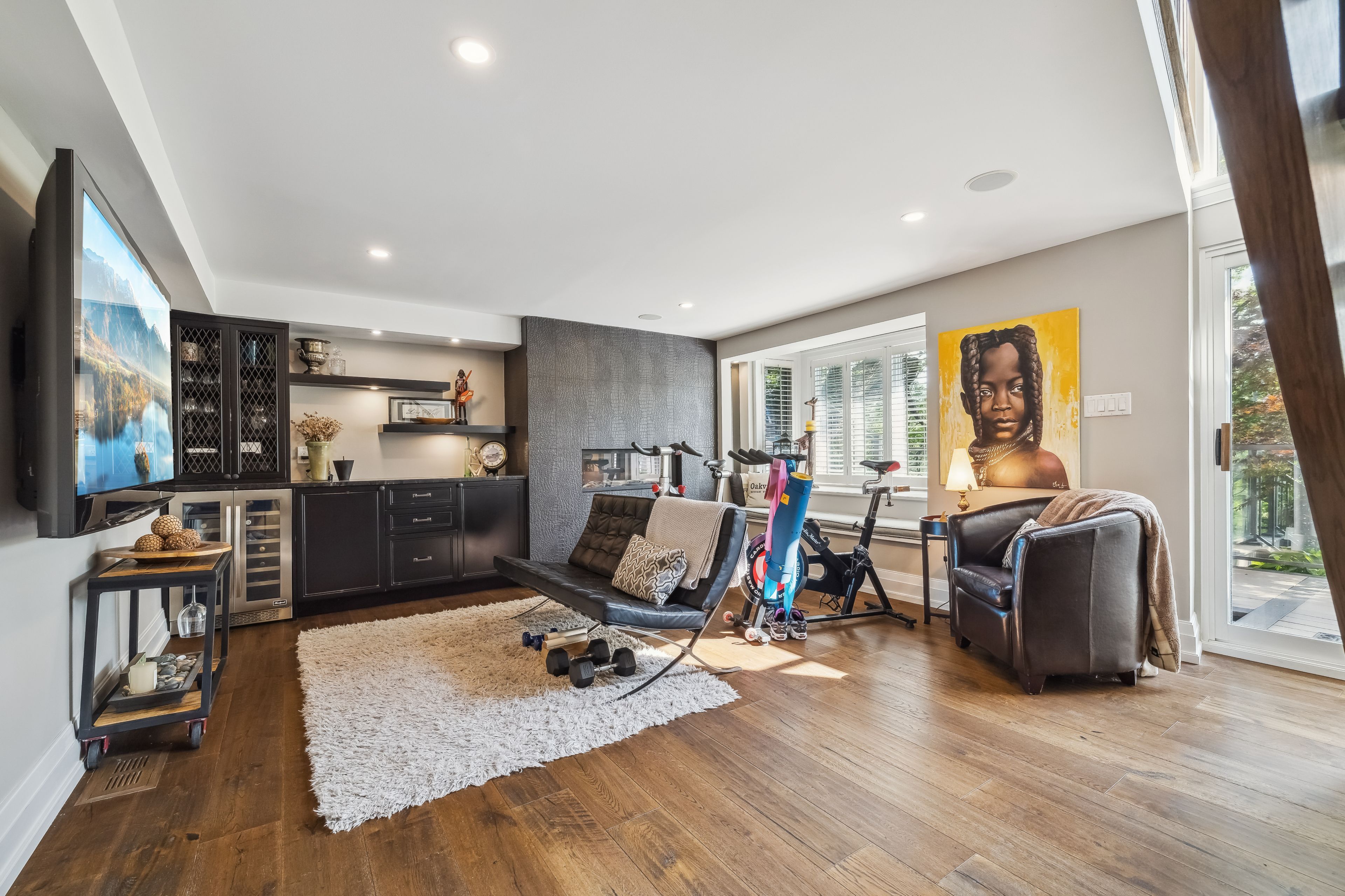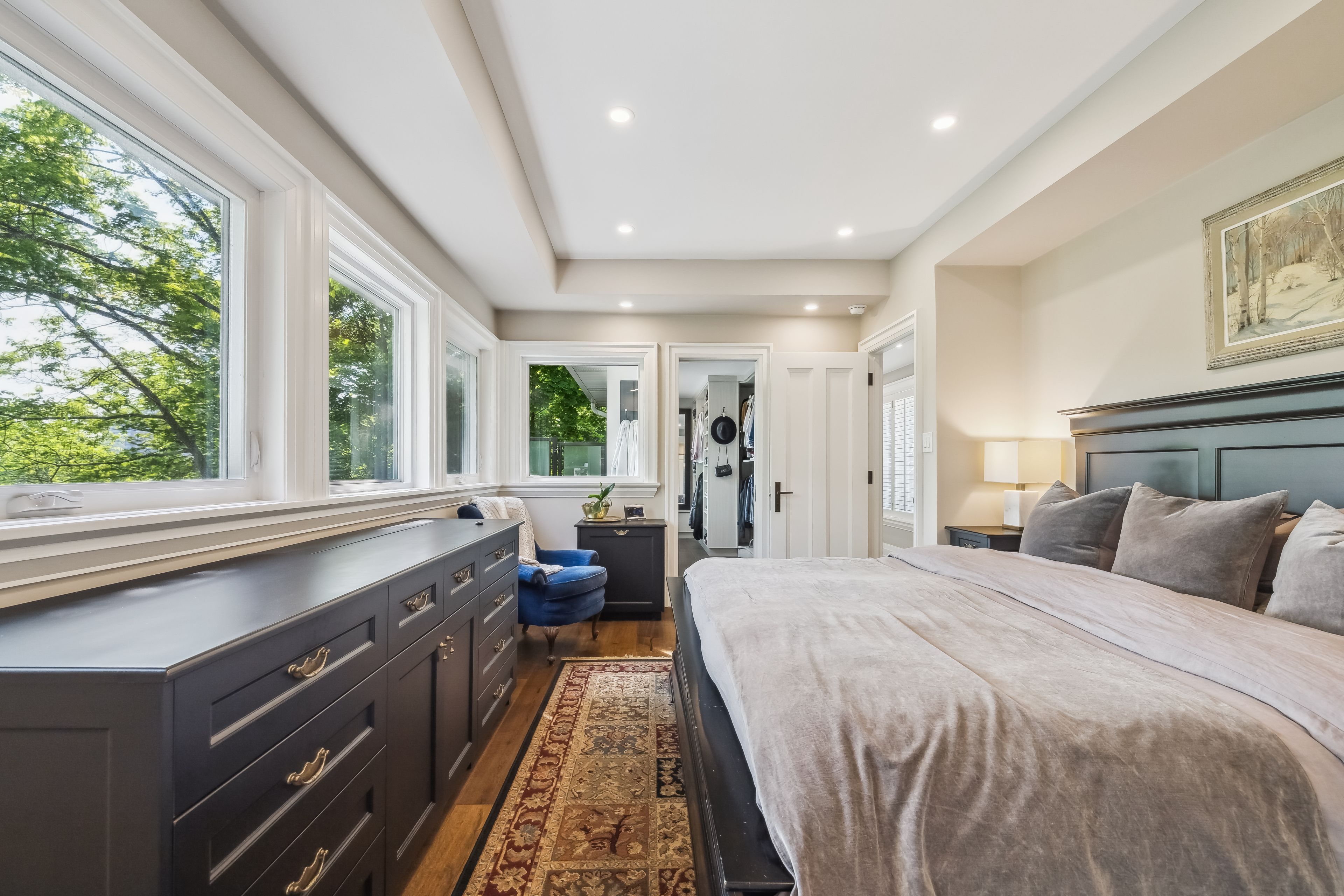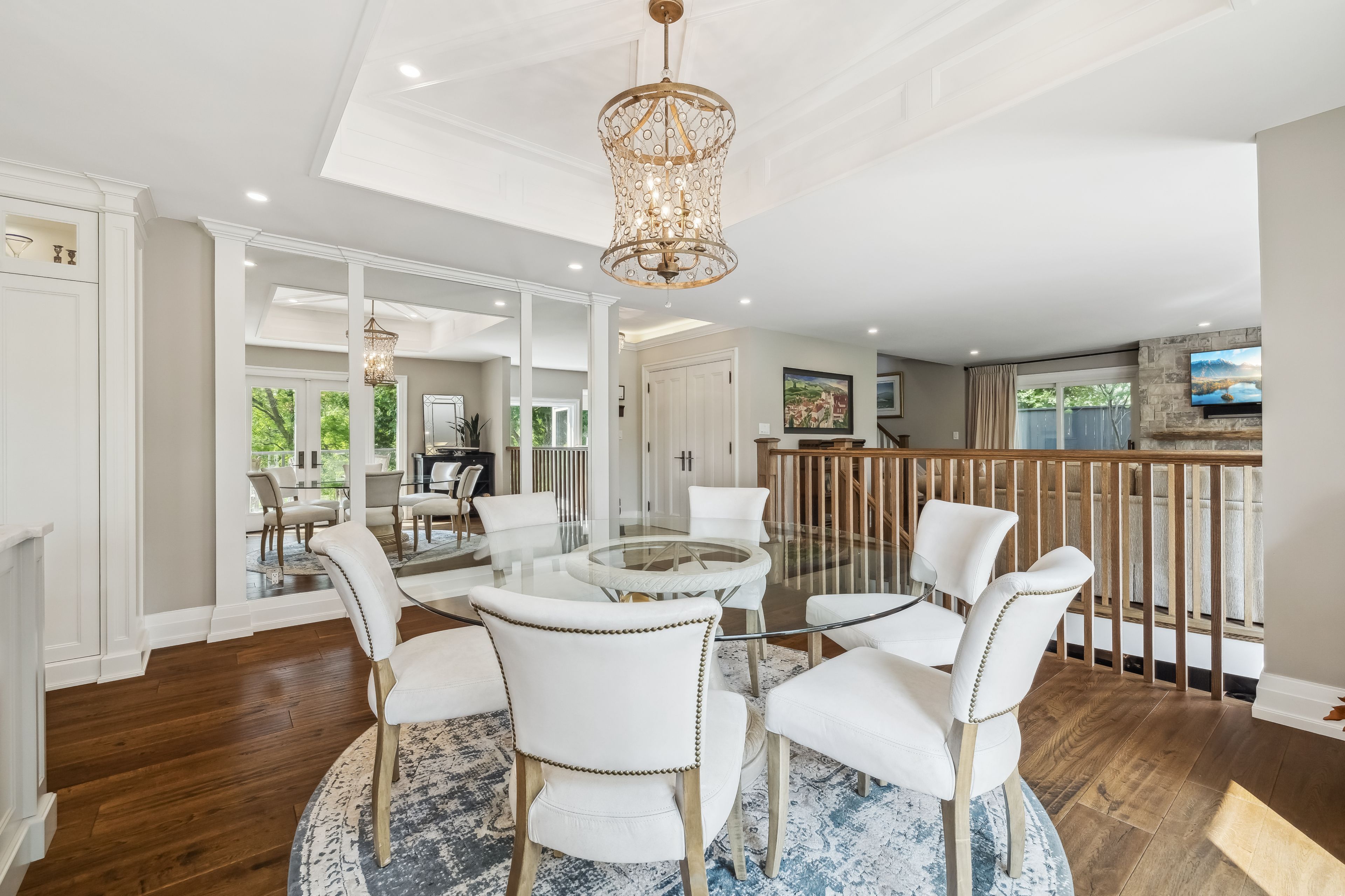 Private, elevated, and unlike anything else in Old Oakville - A true four-season outdoor retreat, your private playground for the outdoor enthusiast-where each day invites skating, paddling, kayaking, hiking, fishing, boating and cross-country skiing, alongside wildlife watching and refined al fresco dining, embracing nature in all its seasons. This lofted waterfront residence commands breathtaking views and unmatched privacy along the tranquil 16 Mile Creek. A testament to craftsmanship and design, this waterfront retreat boasts exclusive riparian rights and a private dock, inviting you to embrace the beauty of Oakville's scenic waterways year-round. .A meticulous 2016 renovation elevated this residence with rich hand-scraped oak floors, solid wood doors, custom millwork, and elegant tray ceilings. The sprawling 1,700 sq. ft. premium Wolf PVC deck includes a hot tub oasis, integrated fire table, and motorized awnings, leading to a dock with a kayak launch, swim ladder, and floating dock. Glass-encased staircases on helical piers deliver striking architectural presence and unbroken sight lines to the creek. Inside, sophistication defines every detail. Floor-to-ceiling windows in the living room frame stunning ravine views and dramatic sunsets, while a gas fireplace with a live-edge mantel adds warmth. The chef's kitchen impresses with a leathered Taj Mahal quartzite island, Wolf and Miele appliances, and an integrated Sub-Zero fridge. Heated floors run throughout, including in the spa-like primary ensuite with marble floors, a rain shower, and double vanity. The lower level offers a linear fireplace, built-in bar, and walkout to the deck. A concrete-lined storage room playfully known as the Bomb Shelter provides additional functionality. Blending natural beauty, refined design, and year-round outdoor living, this one-of-a-kind property is just steps to downtown Oakville and the GO Train offering luxury, serenity, and convenience in equal measure.