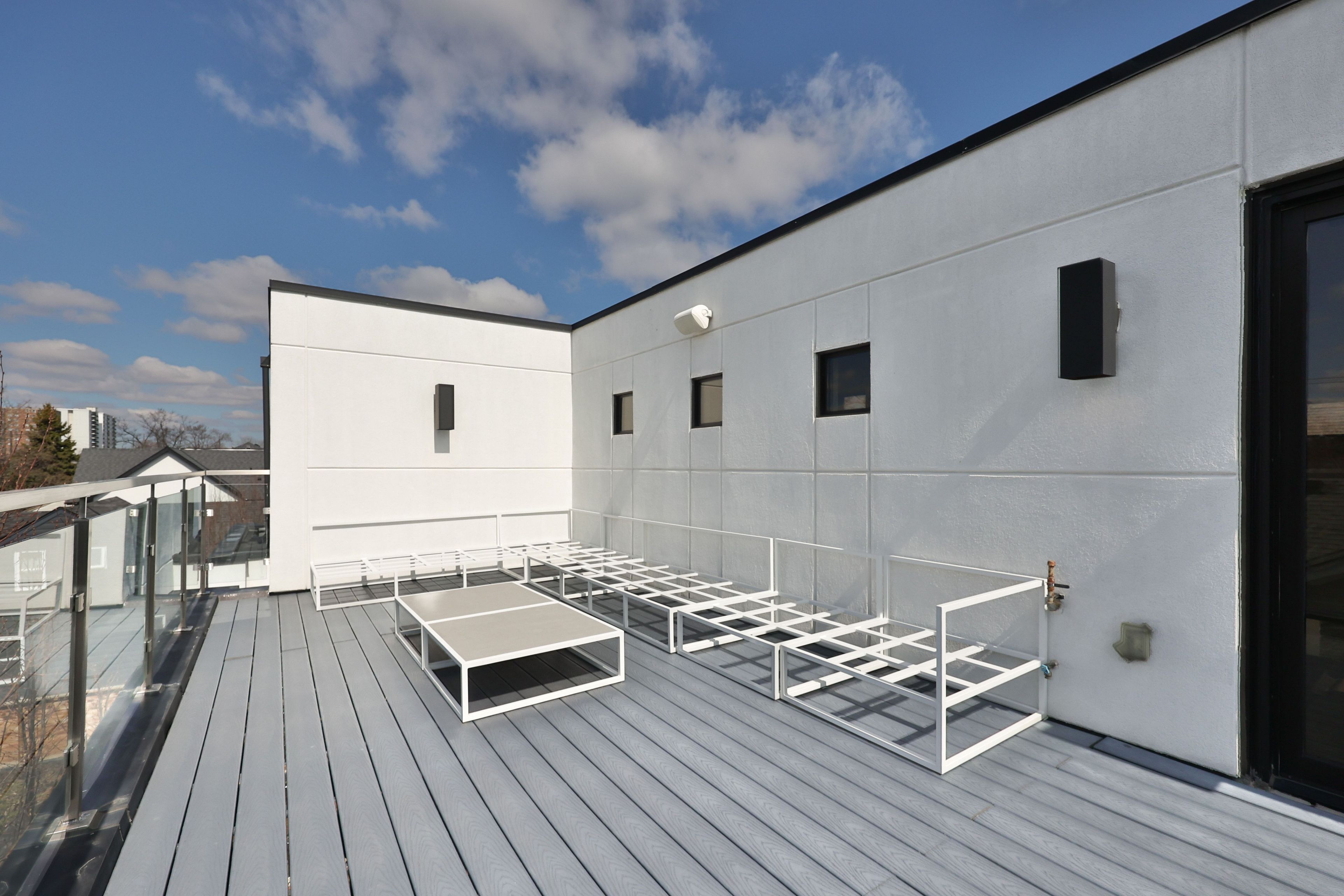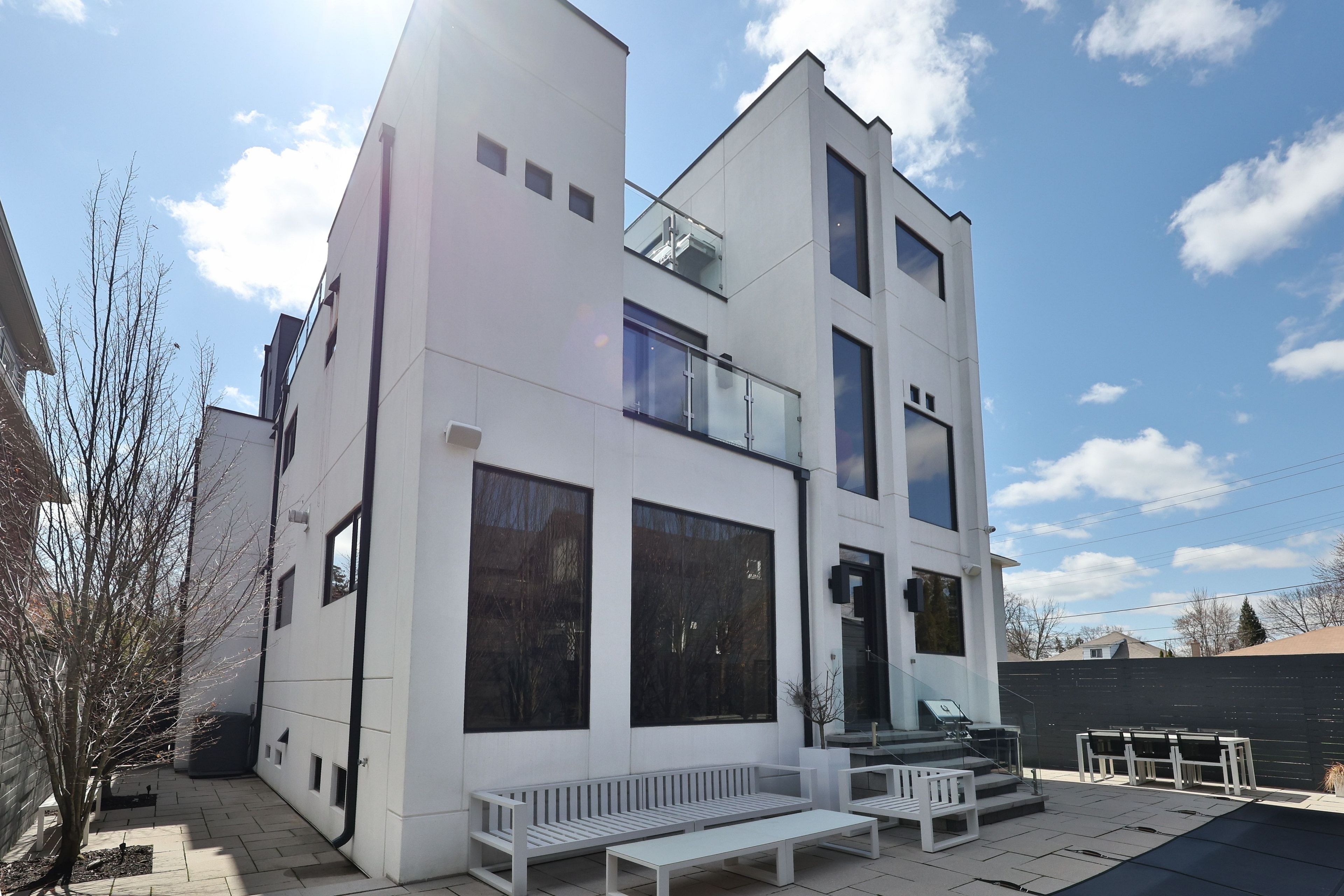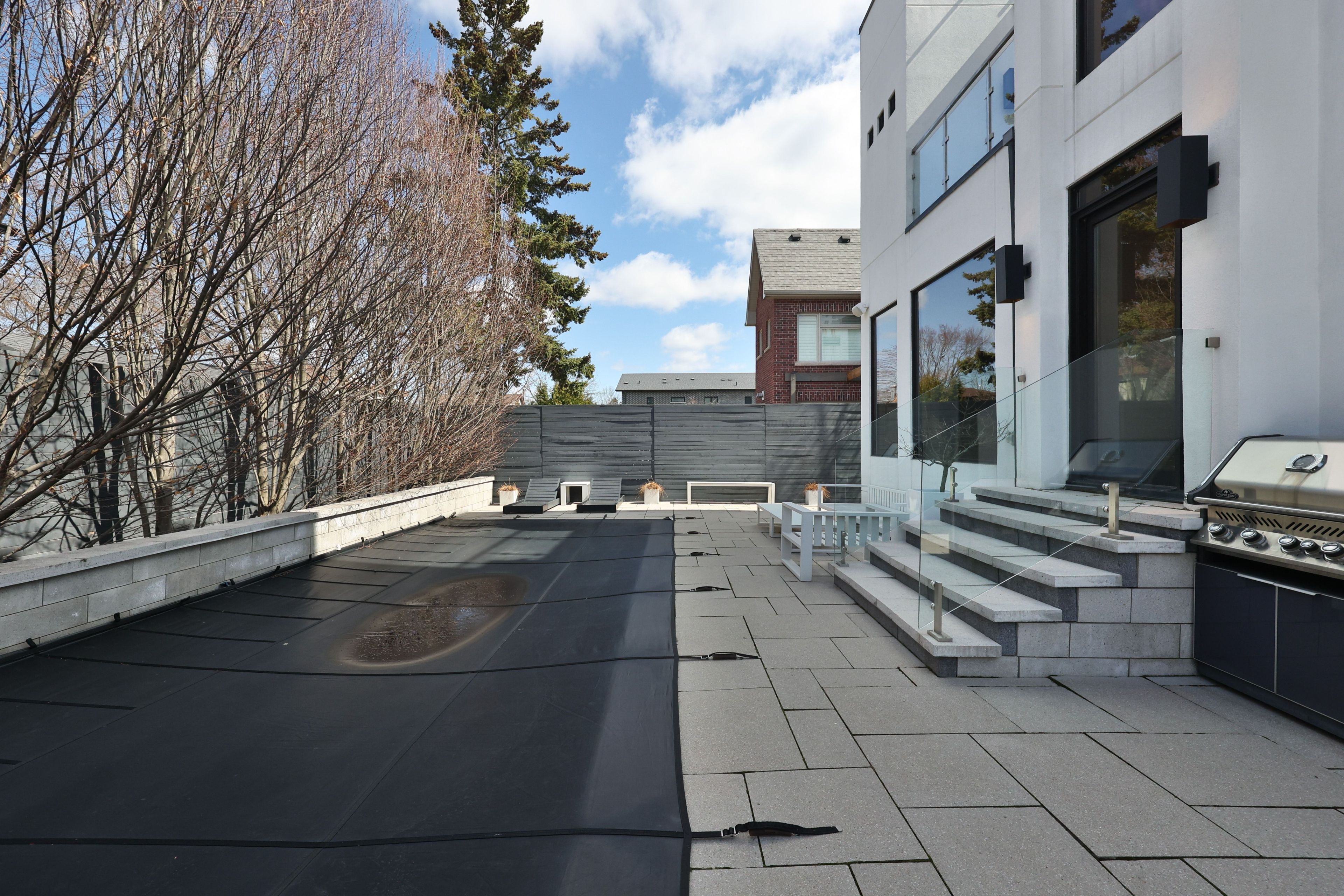 Sun-drenched and architecturally striking, this rare 3-storey contemporary home offers over6,100 sq ft of refined living space, blending modern elegance with exceptional functionality. Featuring 4+2 bedrooms and 6 bathrooms, the residence includes multiple outdoor retreats with 3walkouts to private decks and 2 to expansive rooftop terraces. The main level showcases a sophisticated layout with a private office, sunken living and dining rooms, and a stunning great room with a two-sided gas fireplace. The space flows into a high-end Scavolini kitchen with Miele integrated appliances, custom cabinetry, and a waterfall quartz island. A walkout leads to a resort-style backyard with a saltwater pool and waterfall. A custom mudroom with Scavolini cabinetry provides garage access. The upper levels are finished with wide plank flooring and oversized stone tiles, adding a cohesive and upscale design element throughout. Upstairs, four spacious bedrooms include a luxurious primary suite with a walk-in closet, private balcony, and spa-inspired 5-piece ensuite. The second bedroom has its own ensuite, while the third and fourth share a Jack & Jill bath, with the fourth offering a balcony walkout. A bright family room with a beverage centre and balcony adds flexible living space. A convenient laundry room with ample storage completes the 2 nd level. The bonus space on the third floor is ideal for entertaining, featuring a lounge, 2-piece bath, beverage centre, and access to two rooftop terraces. The finished basement offers a theatre room, gym, two additional bedrooms, and a 3-piece bath. The landscaped backyard is a private oasis with a saltwater pool, paver patio, and mature trees. Additional highlights include Control4 home automation. Located in sought-after Lakeview, close to waterfront trails, parks, schools, Port Credit, highways, and GO transit.