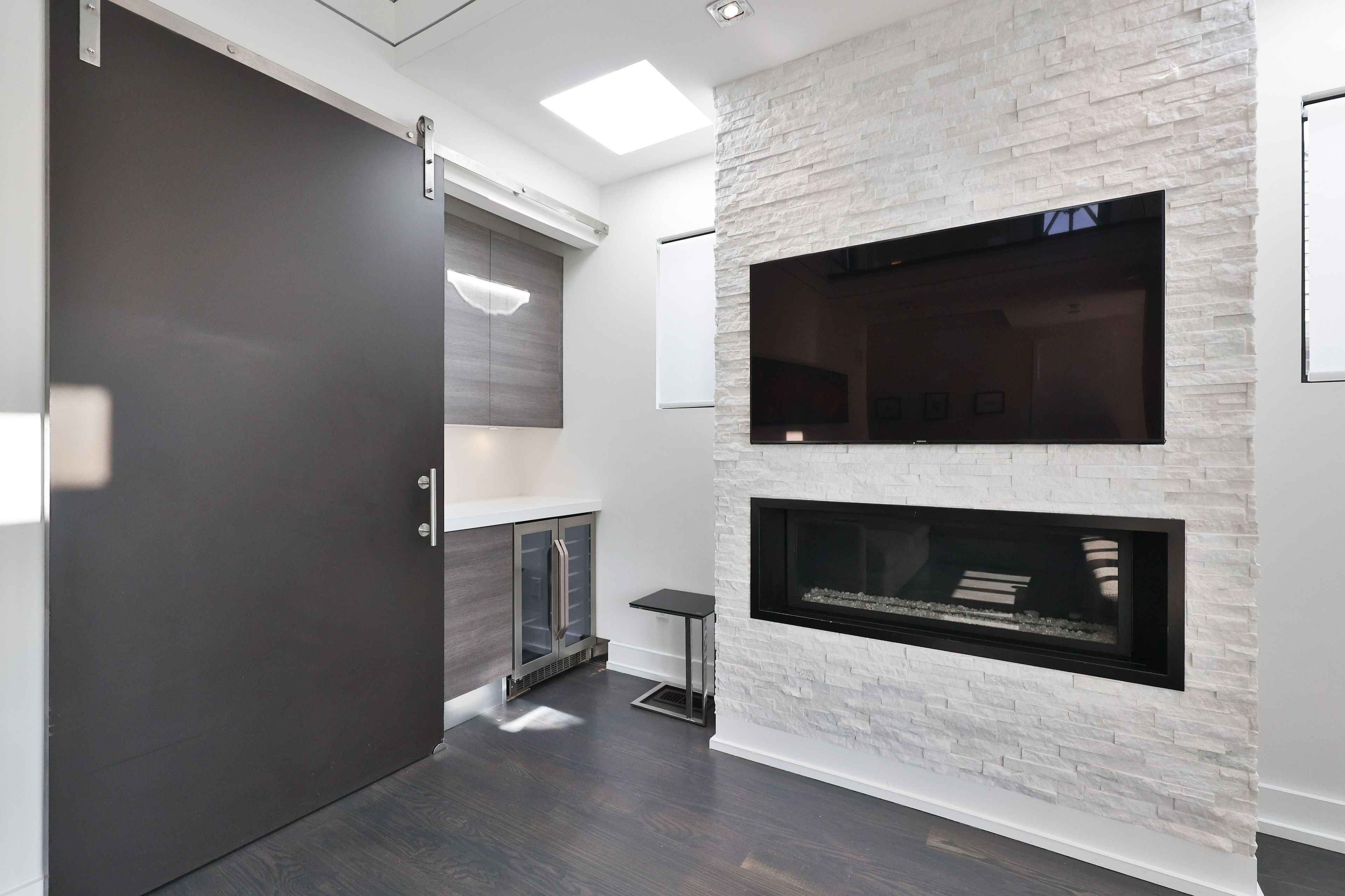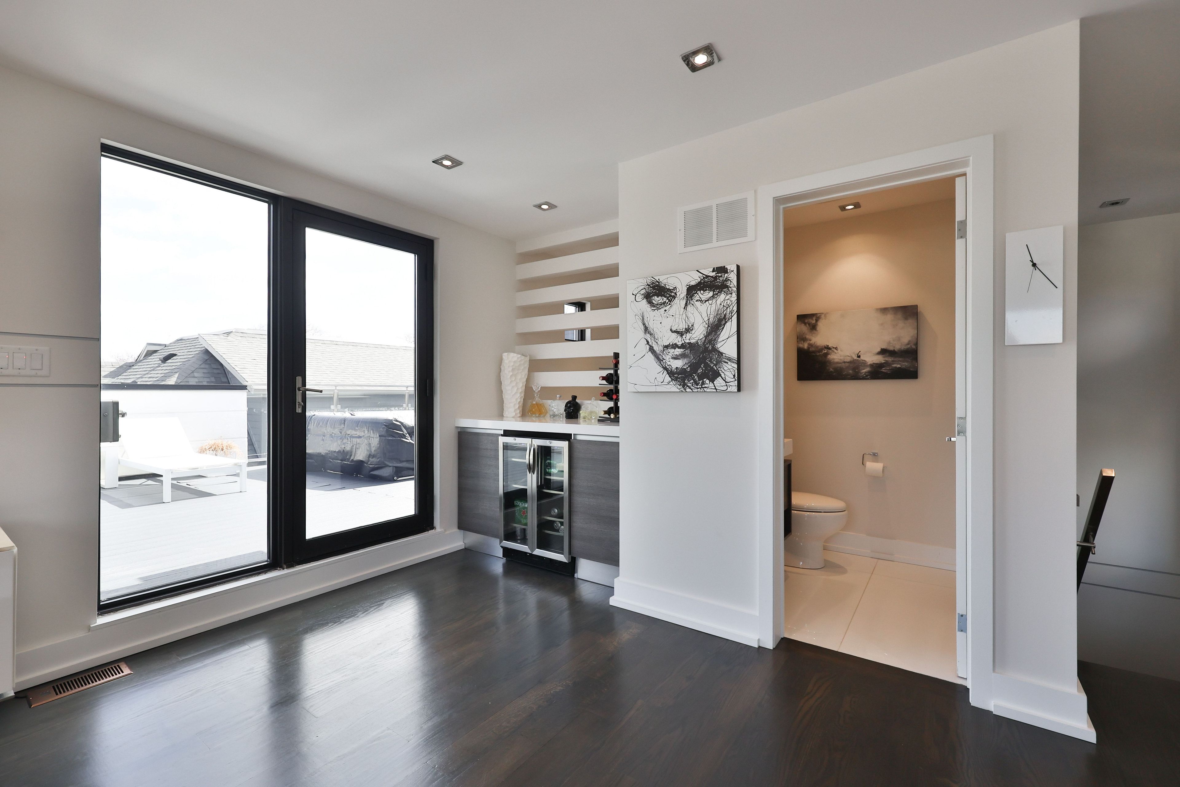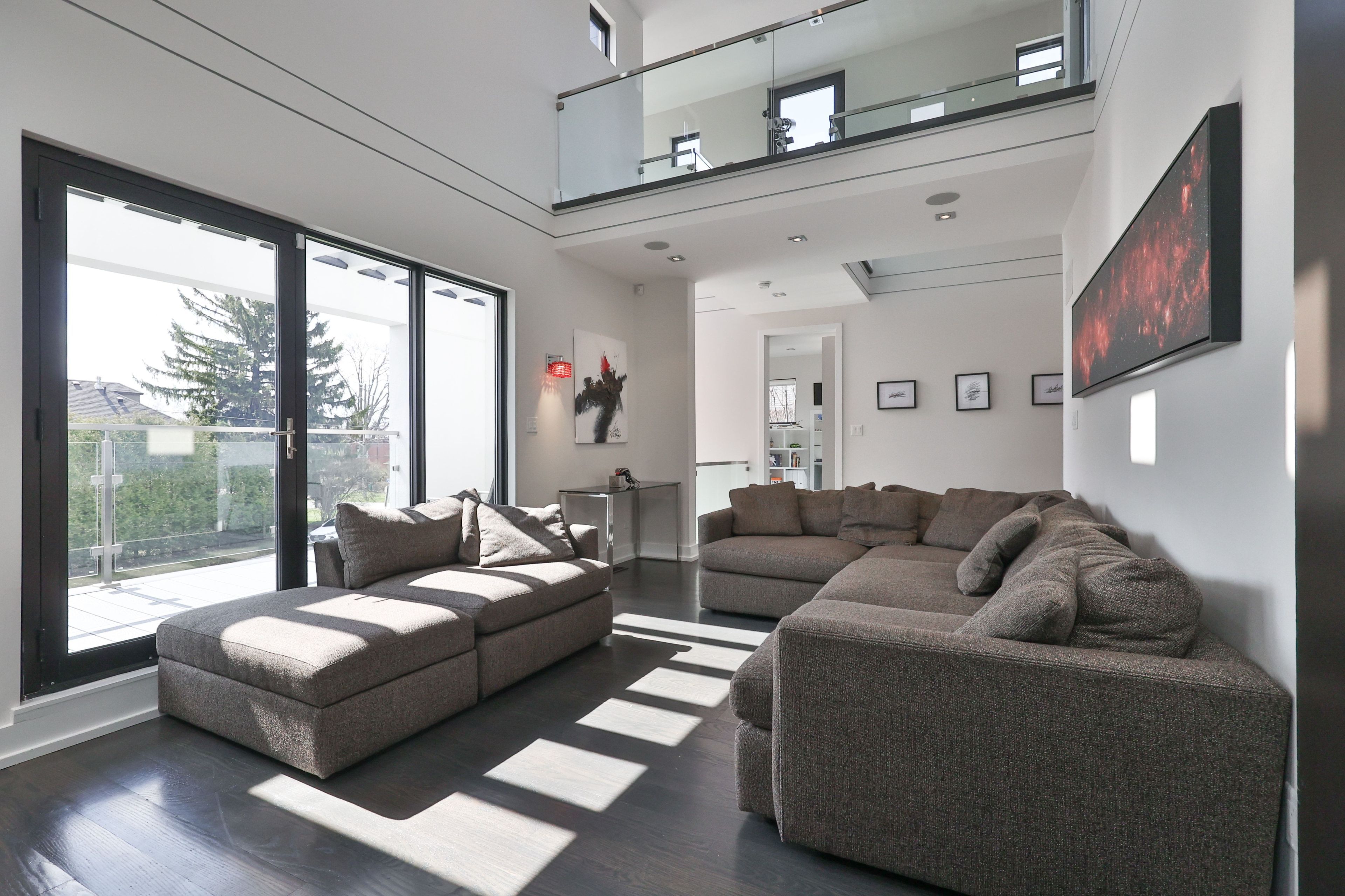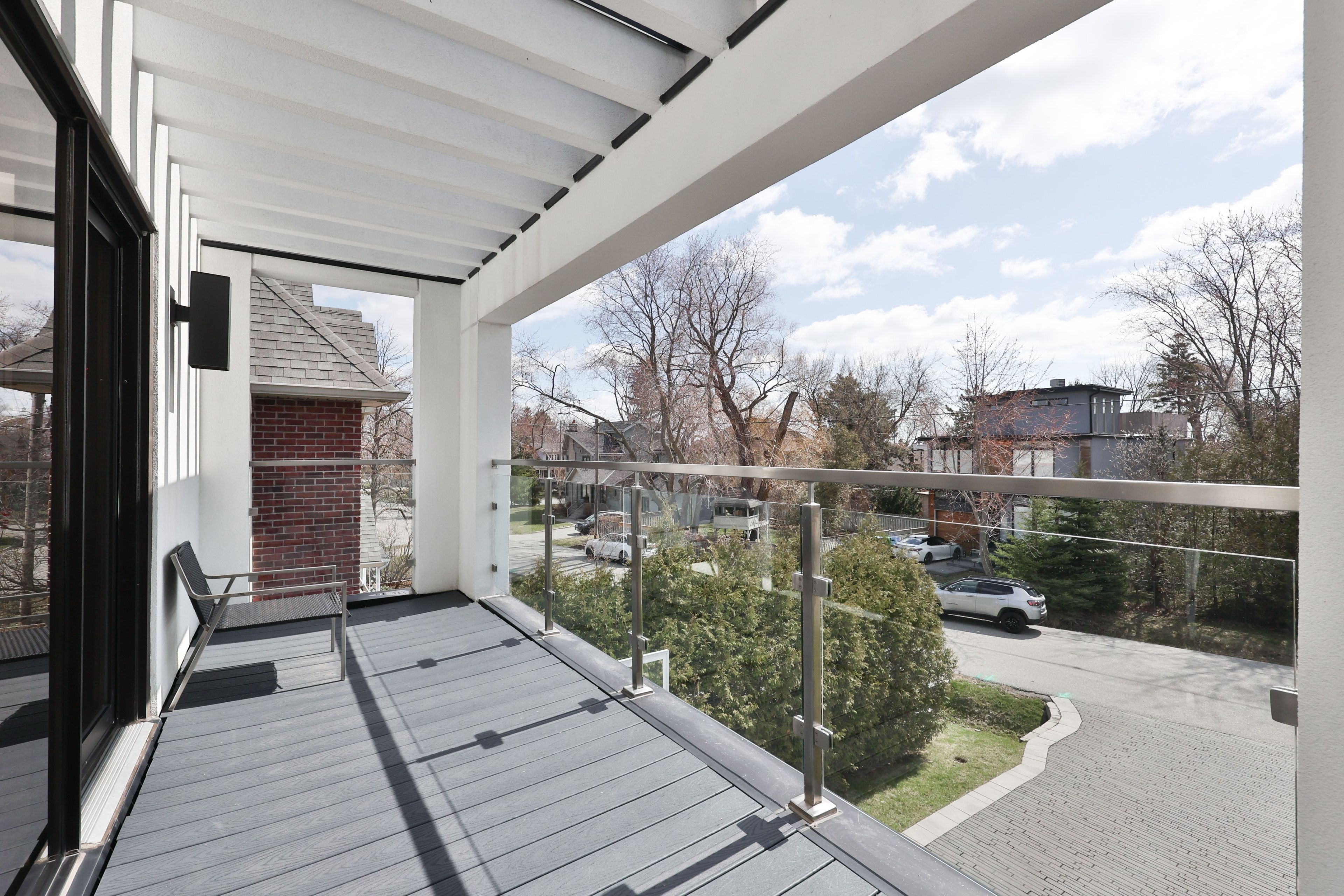 Sun-drenched and architecturally striking, this rare 3-storey contemporary home offers over6,100 sq ft of refined living space, blending modern elegance with exceptional functionality. Featuring 4+2 bedrooms and 6 bathrooms, the residence includes multiple outdoor retreats with 3walkouts to private decks and 2 to expansive rooftop terraces. The main level showcases a sophisticated layout with a private office, sunken living and dining rooms, and a stunning great room with a two-sided gas fireplace. The space flows into a high-end Scavolini kitchen with Miele integrated appliances, custom cabinetry, and a waterfall quartz island. A walkout leads to a resort-style backyard with a saltwater pool and waterfall. A custom mudroom with Scavolini cabinetry provides garage access. The upper levels are finished with wide plank flooring and oversized stone tiles, adding a cohesive and upscale design element throughout. Upstairs, four spacious bedrooms include a luxurious primary suite with a walk-in closet, private balcony, and spa-inspired 5-piece ensuite. The second bedroom has its own ensuite, while the third and fourth share a Jack & Jill bath, with the fourth offering a balcony walkout. A bright family room with a beverage centre and balcony adds flexible living space. A convenient laundry room with ample storage completes the 2 nd level. The bonus space on the third floor is ideal for entertaining, featuring a lounge, 2-piece bath, beverage centre, and access to two rooftop terraces. The finished basement offers a theatre room, gym, two additional bedrooms, and a 3-piece bath. The landscaped backyard is a private oasis with a saltwater pool, paver patio, and mature trees. Additional highlights include Control4 home automation. Located in sought-after Lakeview, close to waterfront trails, parks, schools, Port Credit, highways, and GO transit.