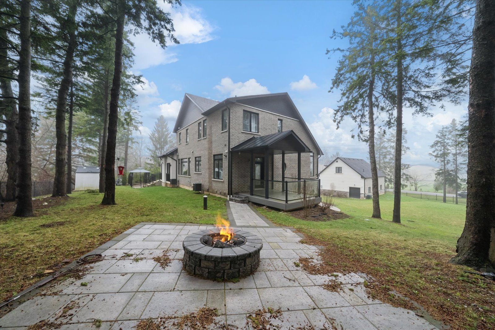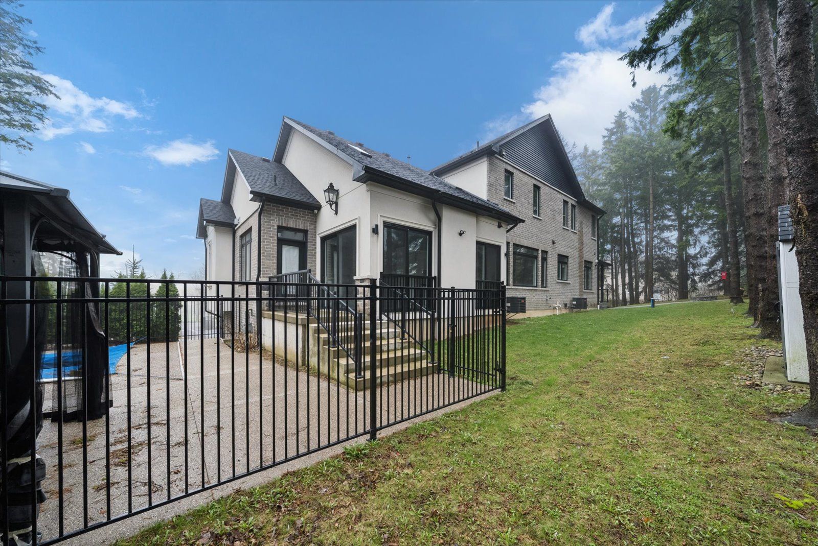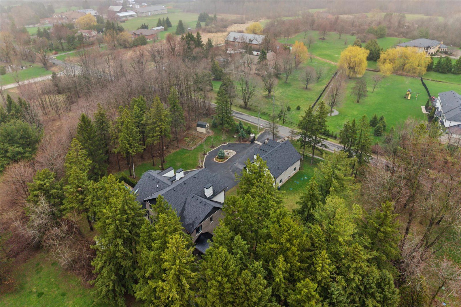 POWER OF SALE Opportunity - Luxury Estate Living in Prestigious Rural Burlington. An exceptional opportunity to acquire a grand custom-built estate set on over one acre of private, lushly landscaped grounds, surrounded by exclusive multi-million dollar residences in one of Burlington's most coveted rural settings. Positioned behind modern security gates, this striking stone and stucco mansion offers approximately 6,000 square feet of luxurious living space, defined by expansive windows, soaring ceiling heights, and impeccable craftsmanship. A private elevator services all three levels, enhancing convenience. Designed for seamless living and entertaining, the main level showcases an elegant open-concept layout with principal rooms, coffered ceilings, designer lighting, and integrated built-in speakers. The gourmet kitchen is a true showpiece, featuring a dramatic waterfall quartz island, premium Dacor built-in appliances, and extensive custom cabinetry. The main floor primary suite delivers a private retreat experience, complete with a gas fireplace, spacious walk-in closet, direct access to the backyard terrace, and a spa-like 5-piece ensuite. The upper level offers three generously sized bedrooms, each appointed with walk-in closets and private ensuites, along with a hidden bonus space-ideal as a media lounge, playroom, or additional living area. The fully finished lower level extends the home's luxury appeal with a dedicated theatre room, executive office, and expansive recreation area. Outdoors, the property transforms into a resort-style oasis featuring a saltwater pool, professionally landscaped grounds, and entertaining areas designed for relaxation. Additional highlights include a heated detached three-car garage with 12-foot ceilings, a sophisticated Control4 smart home system, and the rare convenience of three separate kitchens.Offered under Power of Sale