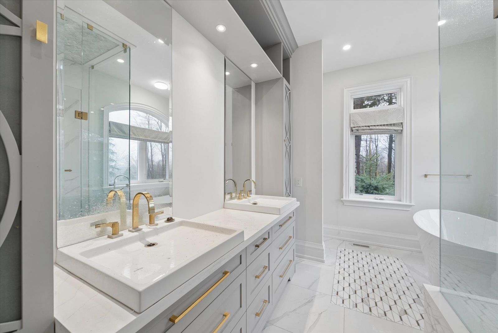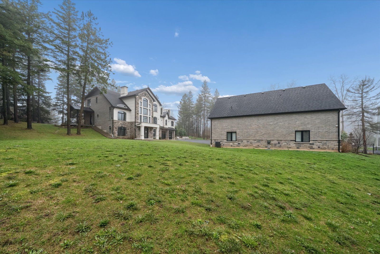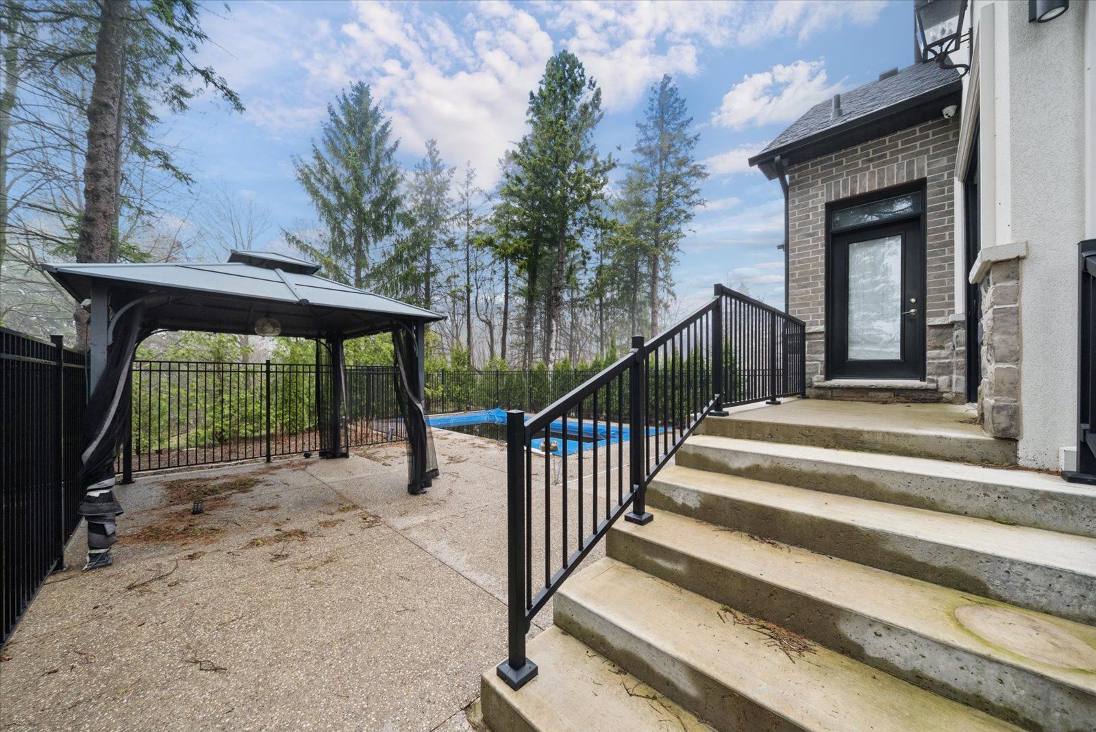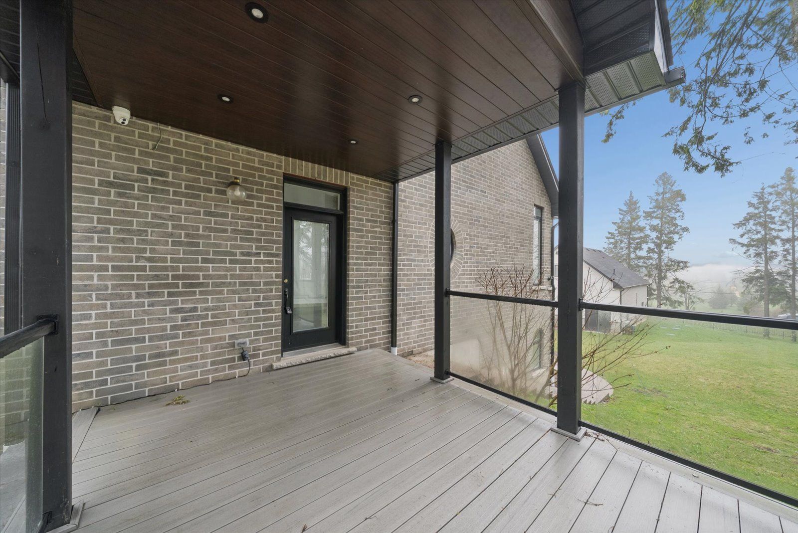 POWER OF SALE Opportunity - Luxury Estate Living in Prestigious Rural Burlington. An exceptional opportunity to acquire a grand custom-built estate set on over one acre of private, lushly landscaped grounds, surrounded by exclusive multi-million dollar residences in one of Burlington's most coveted rural settings. Positioned behind modern security gates, this striking stone and stucco mansion offers approximately 6,000 square feet of luxurious living space, defined by expansive windows, soaring ceiling heights, and impeccable craftsmanship. A private elevator services all three levels, enhancing convenience. Designed for seamless living and entertaining, the main level showcases an elegant open-concept layout with principal rooms, coffered ceilings, designer lighting, and integrated built-in speakers. The gourmet kitchen is a true showpiece, featuring a dramatic waterfall quartz island, premium Dacor built-in appliances, and extensive custom cabinetry. The main floor primary suite delivers a private retreat experience, complete with a gas fireplace, spacious walk-in closet, direct access to the backyard terrace, and a spa-like 5-piece ensuite. The upper level offers three generously sized bedrooms, each appointed with walk-in closets and private ensuites, along with a hidden bonus space-ideal as a media lounge, playroom, or additional living area. The fully finished lower level extends the home's luxury appeal with a dedicated theatre room, executive office, and expansive recreation area. Outdoors, the property transforms into a resort-style oasis featuring a saltwater pool, professionally landscaped grounds, and entertaining areas designed for relaxation. Additional highlights include a heated detached three-car garage with 12-foot ceilings, a sophisticated Control4 smart home system, and the rare convenience of three separate kitchens.Offered under Power of Sale