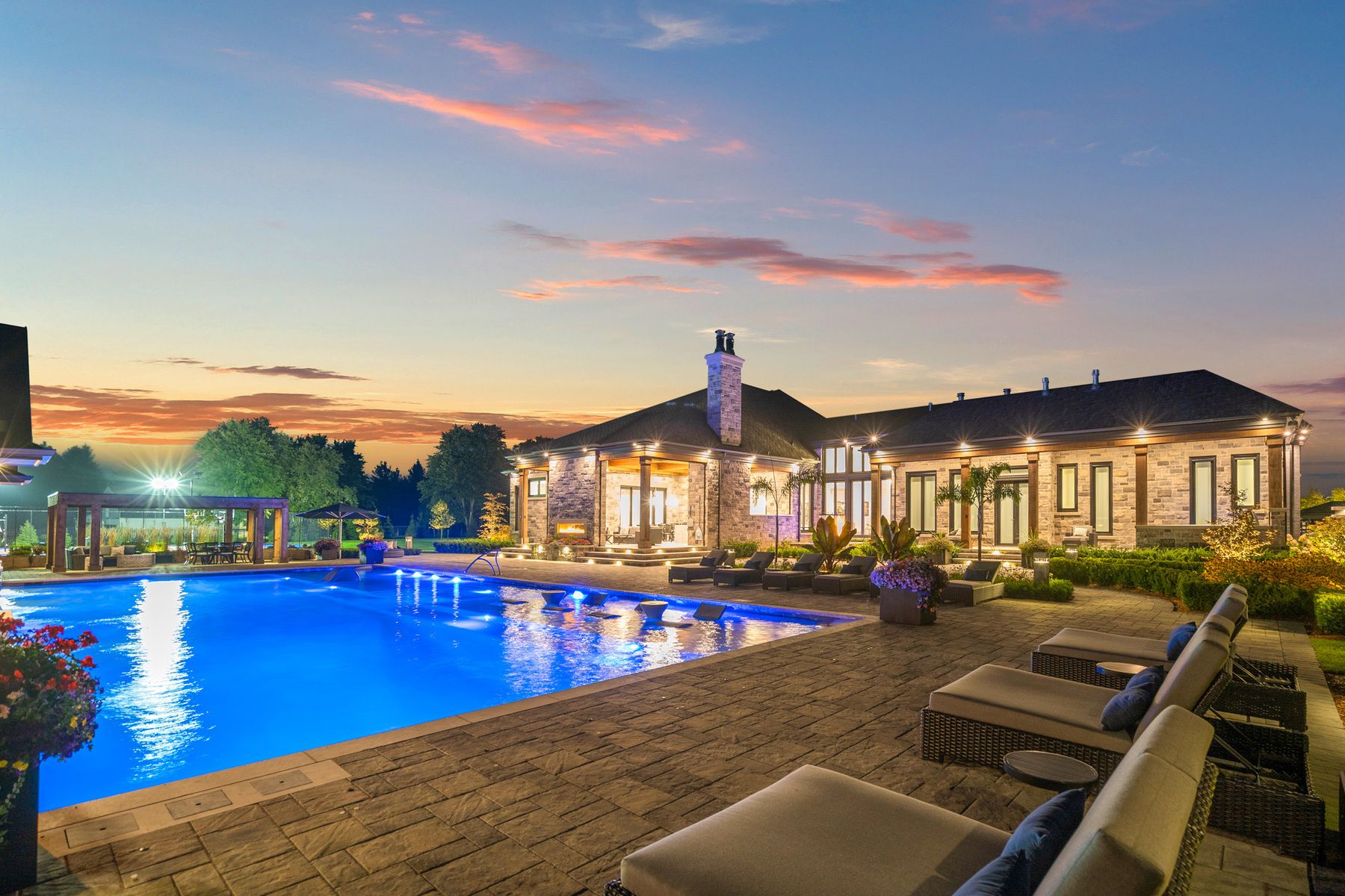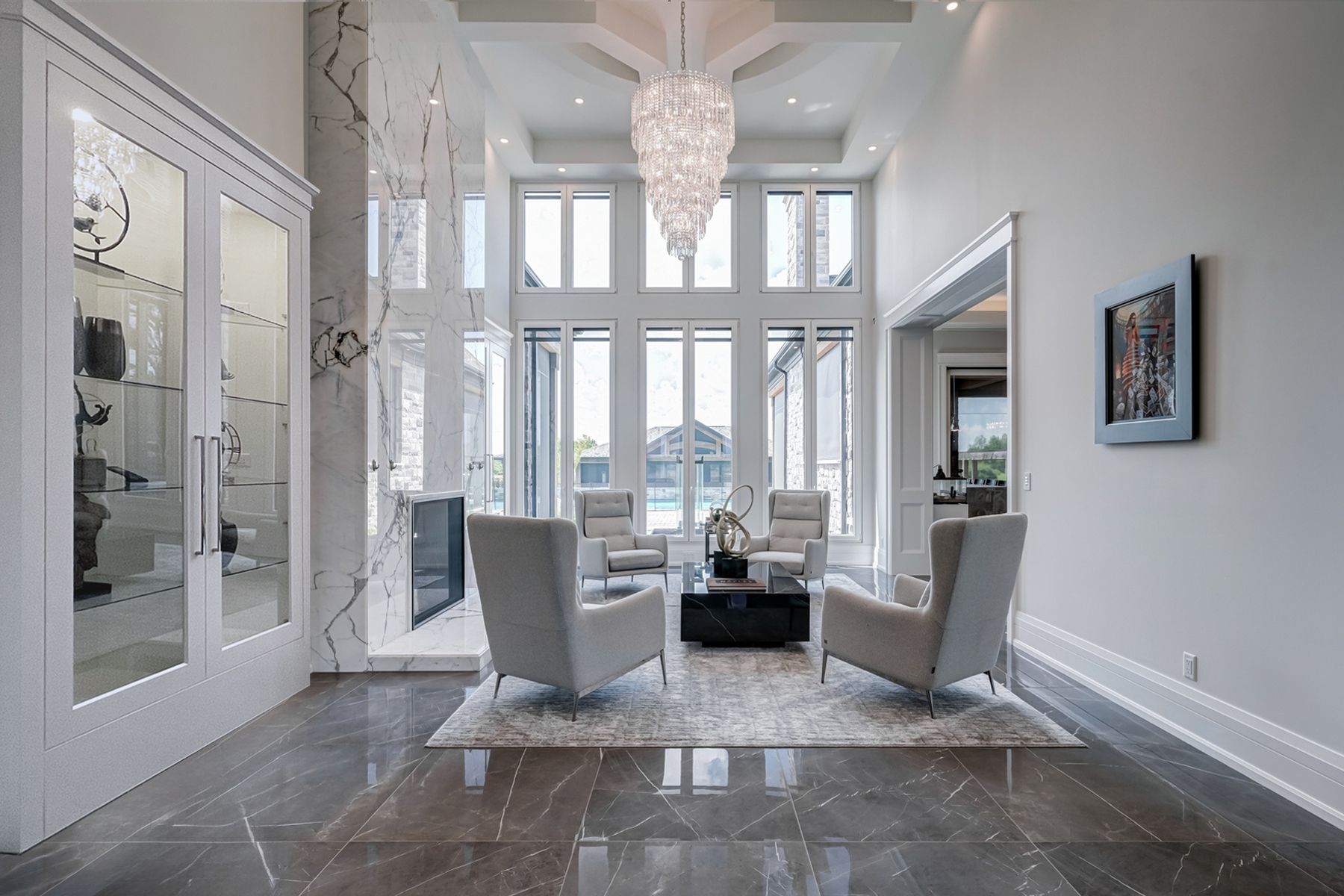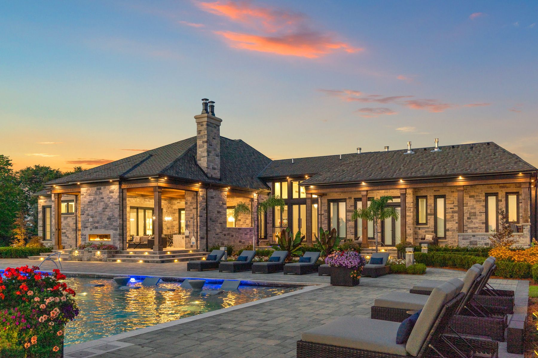 Set amidst a 5.2-acre estate, this extraordinary 32,000+ sq ft mansion offers unparalleled luxury and privacy. The gated and secured property features a stunning 1/3-acre aerated pond leading to a sprawling contemporary bungalow with lofted in-law quarters and a 5,210 sq ft detached garage with lounge, wash bay, and private gas pumpideal for car enthusiasts.Surrounded by serene countryside, yet minutes from the heart of Ancaster, the renowned Hamilton Golf & Country Club, and Highway 403, offering both seclusion and convenience. Inside, every room showcases soaring 14 to 18-foot custom moulded ceilings, 32-inch porcelain flooring, and the highest quality materials and craftsmanship. The state-of-the-art home features whole-home automation by Control4. Spacious living areas feature custom granite walls with Town & Country fireplaces. A gourmet kitchen is equipped with top-tier appliances, including Sub-Zero, Thermador, and Miele. The luxurious lanai is perfect for entertaining, with heated Eramosa flagstone, a full outdoor kitchen, 72 Woods gas fireplace, and phantom screens. The opulent primary suite includes a private patio with hot tub and an expansive dressing room. The ensuite features heated herringbone floors, a soaker tub with fireplace, towel warmer drawers and a digital rain shower. The opposite wing offers three additional bedroom suites, each with walk-in closets and ensuites. A Cambridge elevator provides access to the entertainers dream basement, with a party room, full bar, professional gym with sauna and steam shower, games room, and a state-of-the-art home theatre. This 24-seat Dolby Atmos theatre features a 254-inch screen, 24-foot ceiling height, and a Kaleidoscope movie server for the ultimate cinematic experience. Outdoor amenities include a 35 x 75 heated pool, a 14-person hot tub, and an entertainment cabana with a media area and hosting bar. A regulation-size sports court and a childrens playground complete this family-friendly estate.