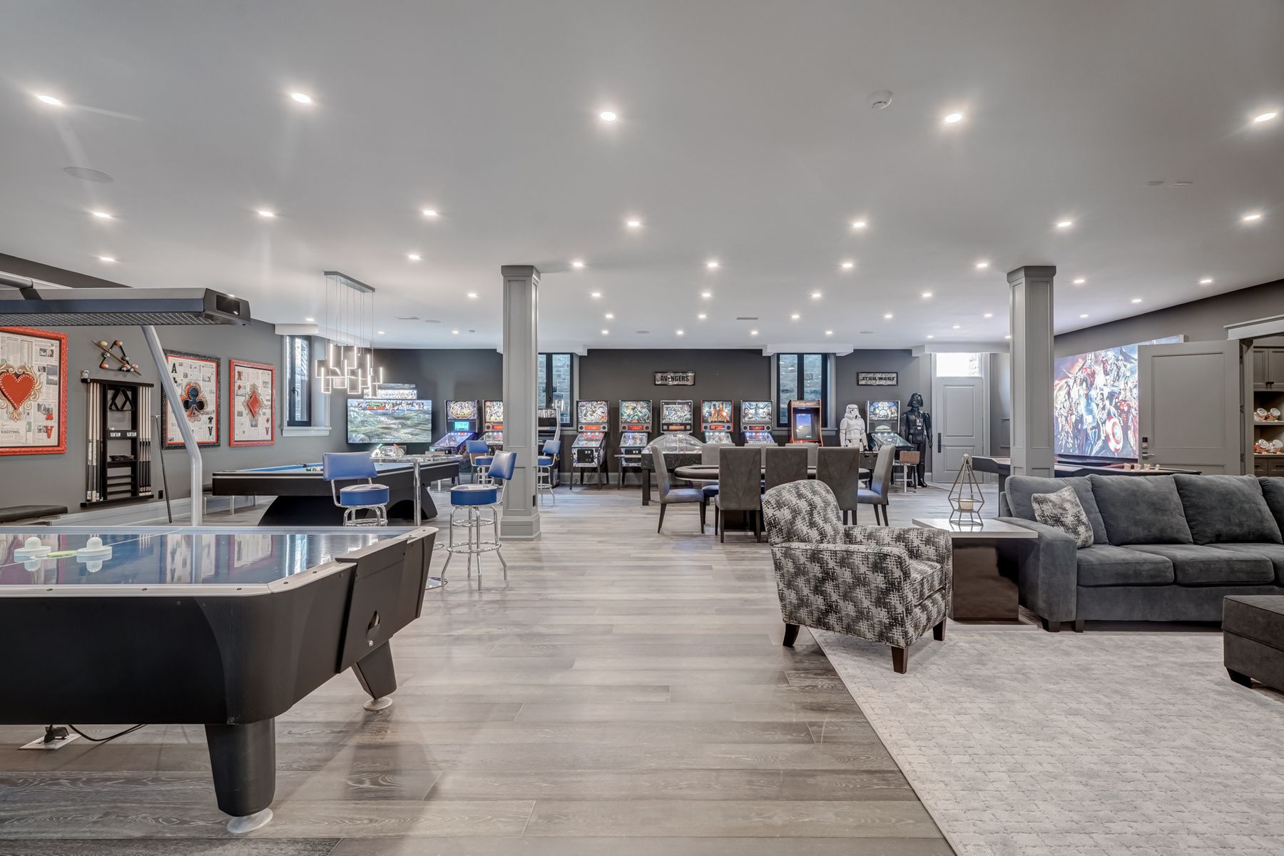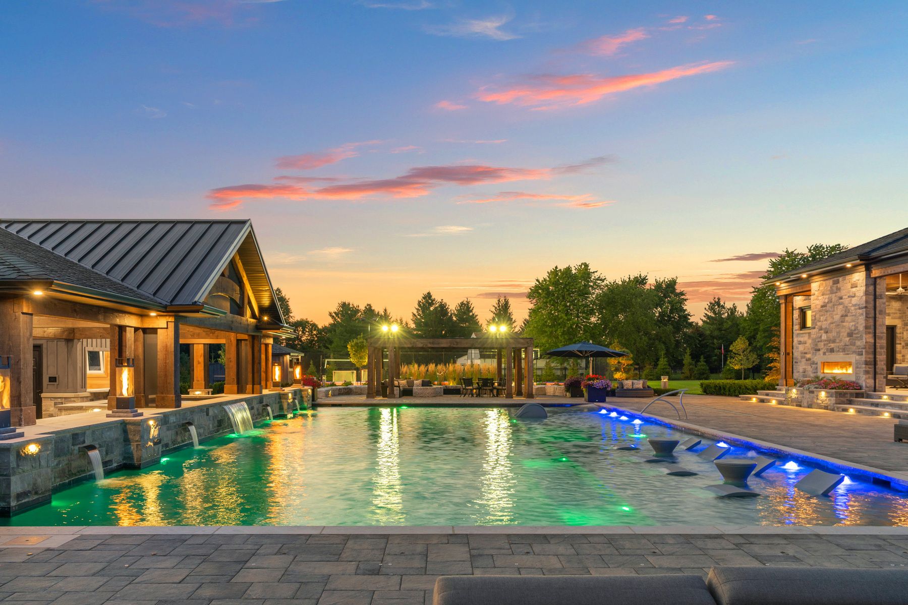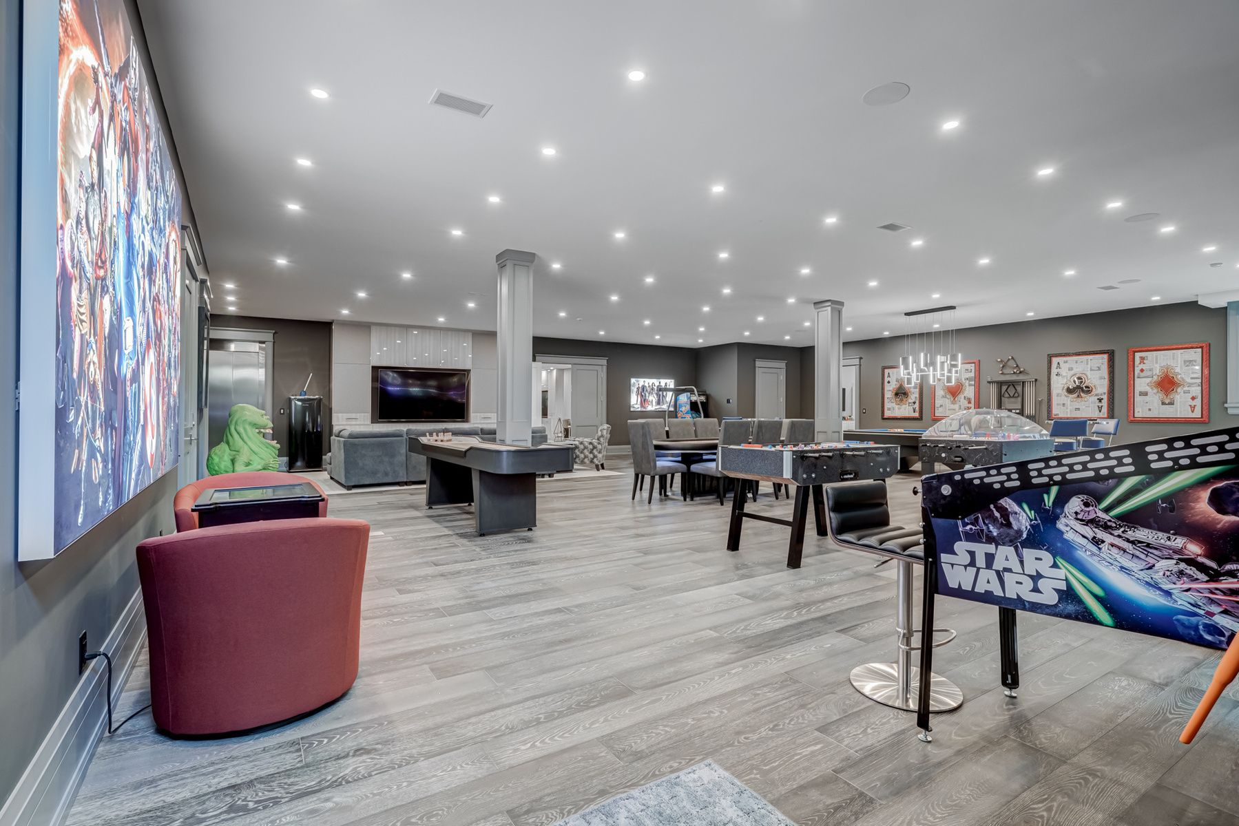 Set amidst a 5.2-acre estate, this extraordinary 32,000+ sq ft mansion offers unparalleled luxury and privacy. The gated and secured property features a stunning 1/3-acre aerated pond leading to a sprawling contemporary bungalow with lofted in-law quarters and a 5,210 sq ft detached garage with lounge, wash bay, and private gas pumpideal for car enthusiasts.Surrounded by serene countryside, yet minutes from the heart of Ancaster, the renowned Hamilton Golf & Country Club, and Highway 403, offering both seclusion and convenience. Inside, every room showcases soaring 14 to 18-foot custom moulded ceilings, 32-inch porcelain flooring, and the highest quality materials and craftsmanship. The state-of-the-art home features whole-home automation by Control4. Spacious living areas feature custom granite walls with Town & Country fireplaces. A gourmet kitchen is equipped with top-tier appliances, including Sub-Zero, Thermador, and Miele. The luxurious lanai is perfect for entertaining, with heated Eramosa flagstone, a full outdoor kitchen, 72 Woods gas fireplace, and phantom screens. The opulent primary suite includes a private patio with hot tub and an expansive dressing room. The ensuite features heated herringbone floors, a soaker tub with fireplace, towel warmer drawers and a digital rain shower. The opposite wing offers three additional bedroom suites, each with walk-in closets and ensuites. A Cambridge elevator provides access to the entertainers dream basement, with a party room, full bar, professional gym with sauna and steam shower, games room, and a state-of-the-art home theatre. This 24-seat Dolby Atmos theatre features a 254-inch screen, 24-foot ceiling height, and a Kaleidoscope movie server for the ultimate cinematic experience. Outdoor amenities include a 35 x 75 heated pool, a 14-person hot tub, and an entertainment cabana with a media area and hosting bar. A regulation-size sports court and a childrens playground complete this family-friendly estate.