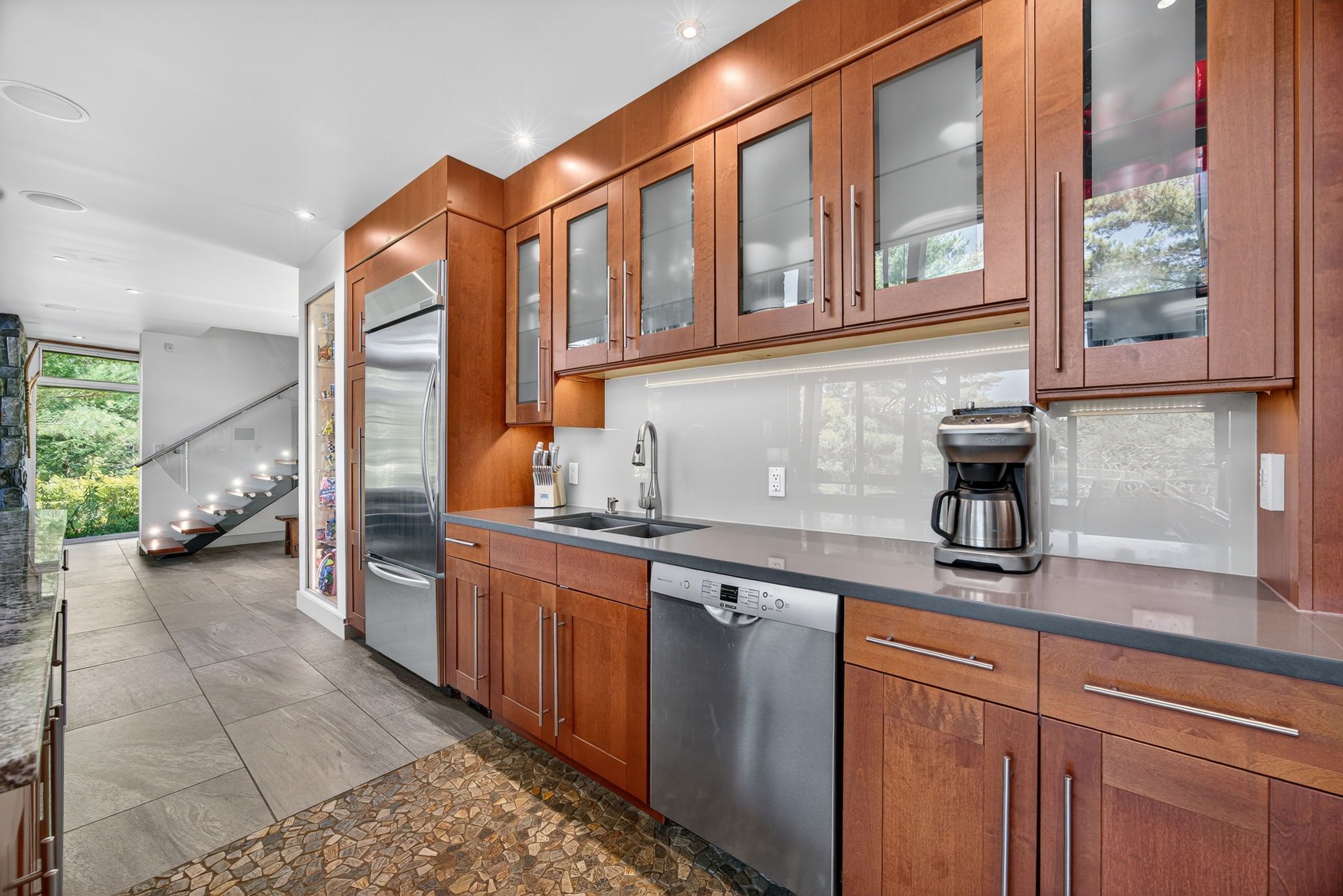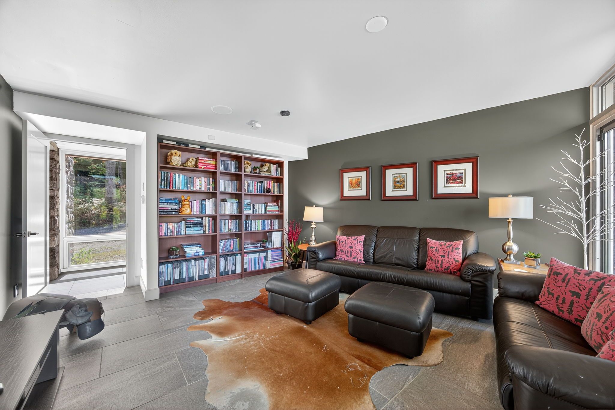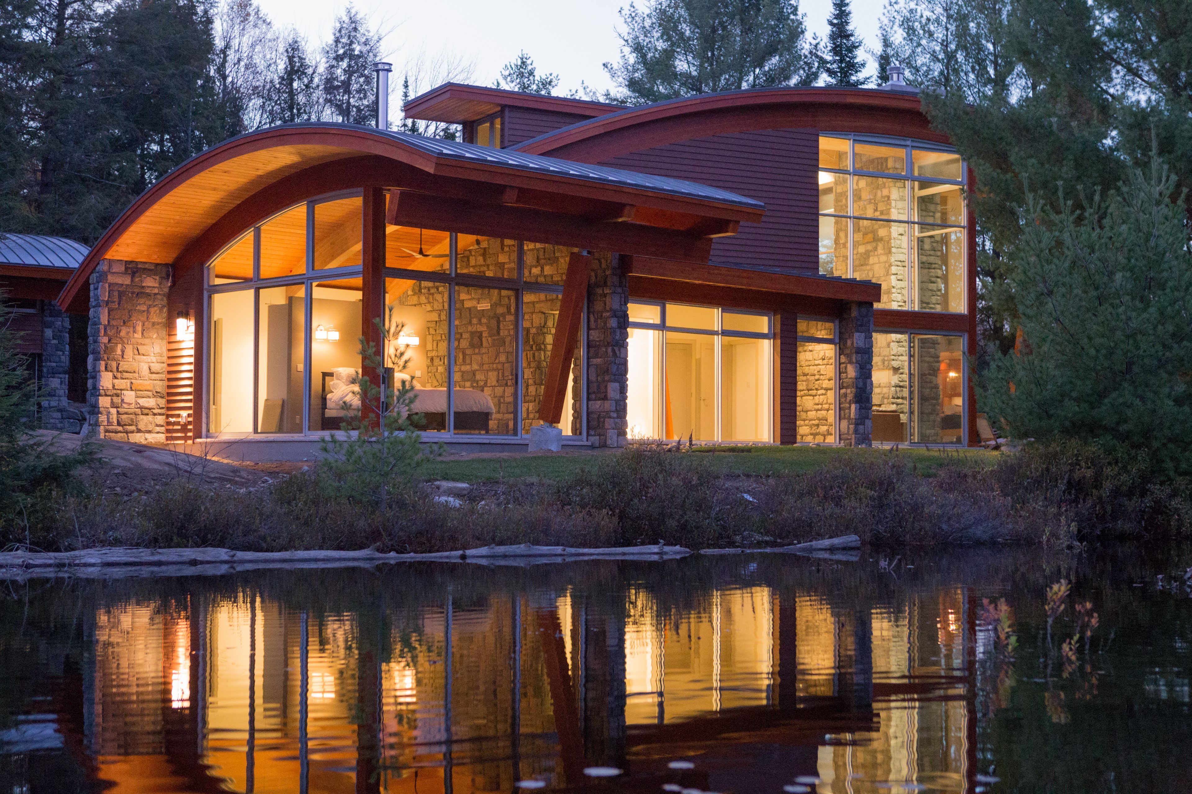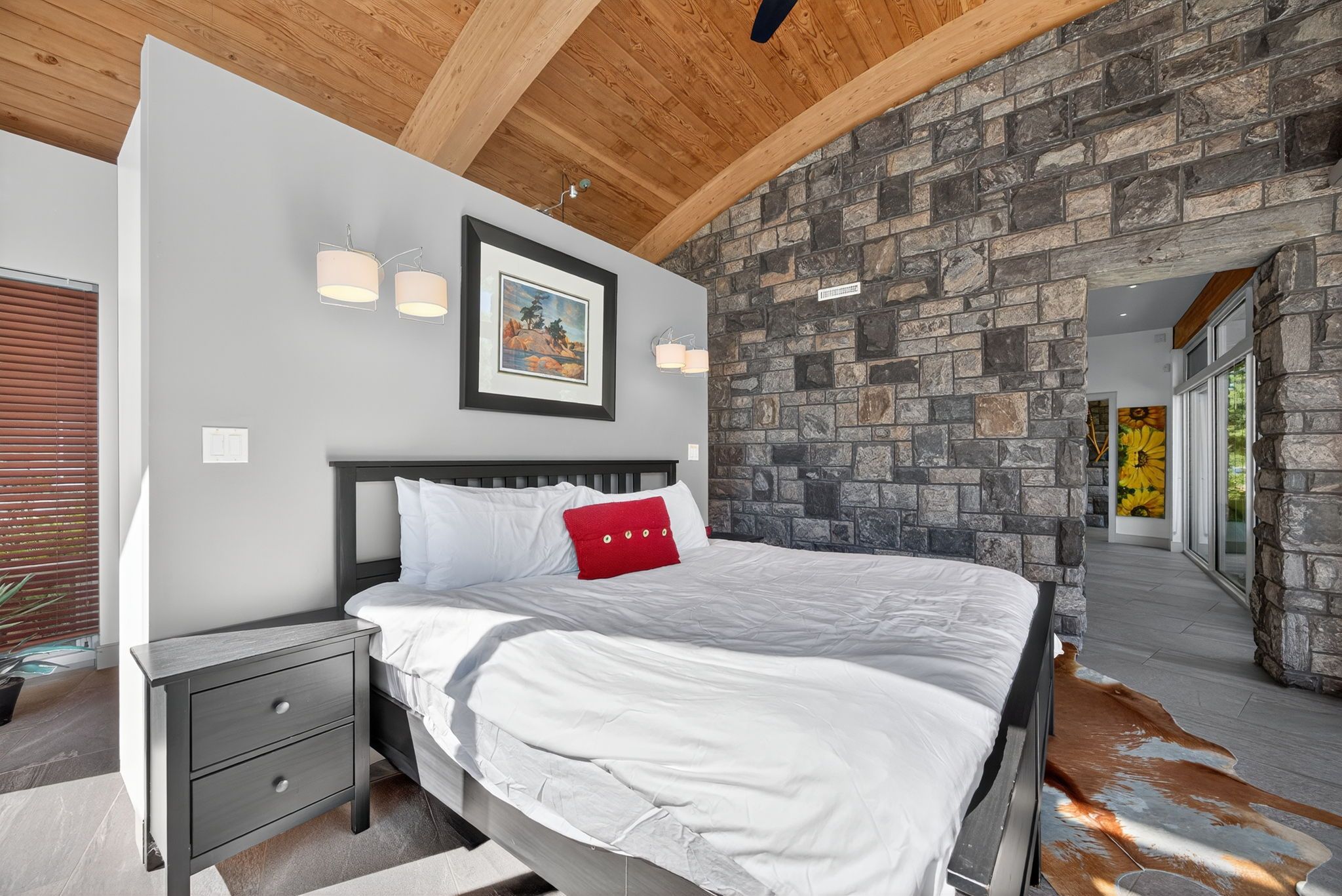 Welcome to "Serenity," an architect-designed, turn-key, four-season retreat on the crystal waters of Otter Lake. This extraordinary property rests on an 11.93-acre point with 1,771 ft of natural shoreline, offering unmatched privacy, breathtaking views, & a deep connection to Muskoka's rugged beauty, all just 10 mins from Huntsville's amenities. Approach via a winding granite lane that opens to the entrance courtyard, where the home's sweeping rooflines, hand-cut granite, & walls of glass reveal glimpses of the lake & Serenity Bay. Inside, the soaring 25-ft great room makes a dramatic impression with floor-to-ceiling windows, a granite Rumford fireplace, & a wall of glass that opens to the lakeside terrace. The open-concept chef's kitchen, dining room, & great room are designed for effortless entertaining. The kitchen showcases a 12-ft Brazilian granite island, gas cooktop, & stainless steel appliances. Host unforgettable dinners surrounded by nature, with sliding doors that extend the living space to a covered terrace, perfect for lakeside dining, sunrise coffee, or fireside evenings under the stars. A separate family room provides a cozy retreat, ideal for games, TV, or curling up with a book, with sliding doors that invite the outdoors in year-round. The primary wing is a private sanctuary featuring a Scandinavian wood stove, walk-through closet, motorized blinds, & a spa-like ensuite with pebble wall & rain shower. Two additional lake-view bedrooms & a stylish 4-pc bath complete the west wing. Upstairs, a loft offers a fourth bedroom with an ensuite, overlooks the great room with sweeping lake views, & includes space for ping-pong or yoga. A cedar path leads to the shoreline, offering multiple seating areas, a steel fire pit set on the rock, a dock for swimming, diving, or tranquil paddles. Hear the call of the loon as it drifts across mirror-like waters, capturing the essence of a true Muskoka escape on this motor-free lake.