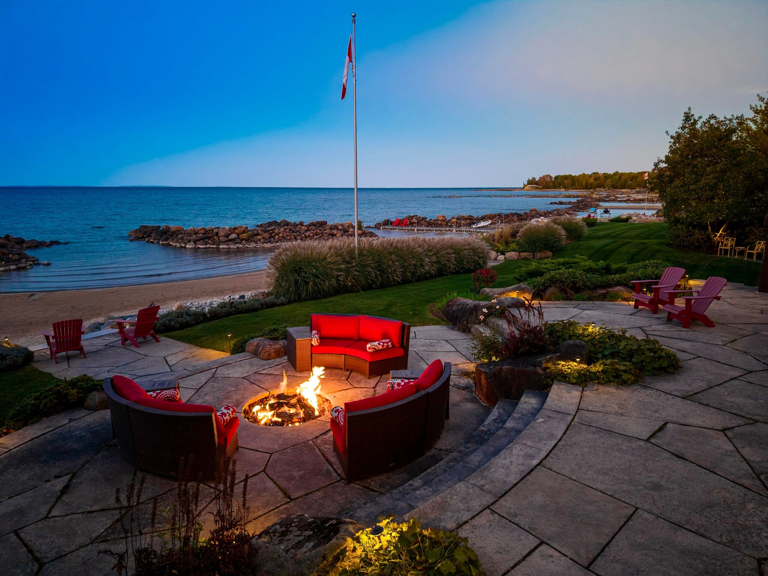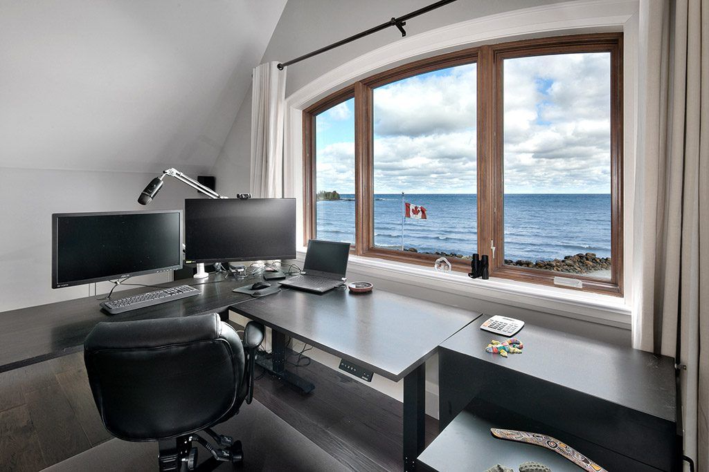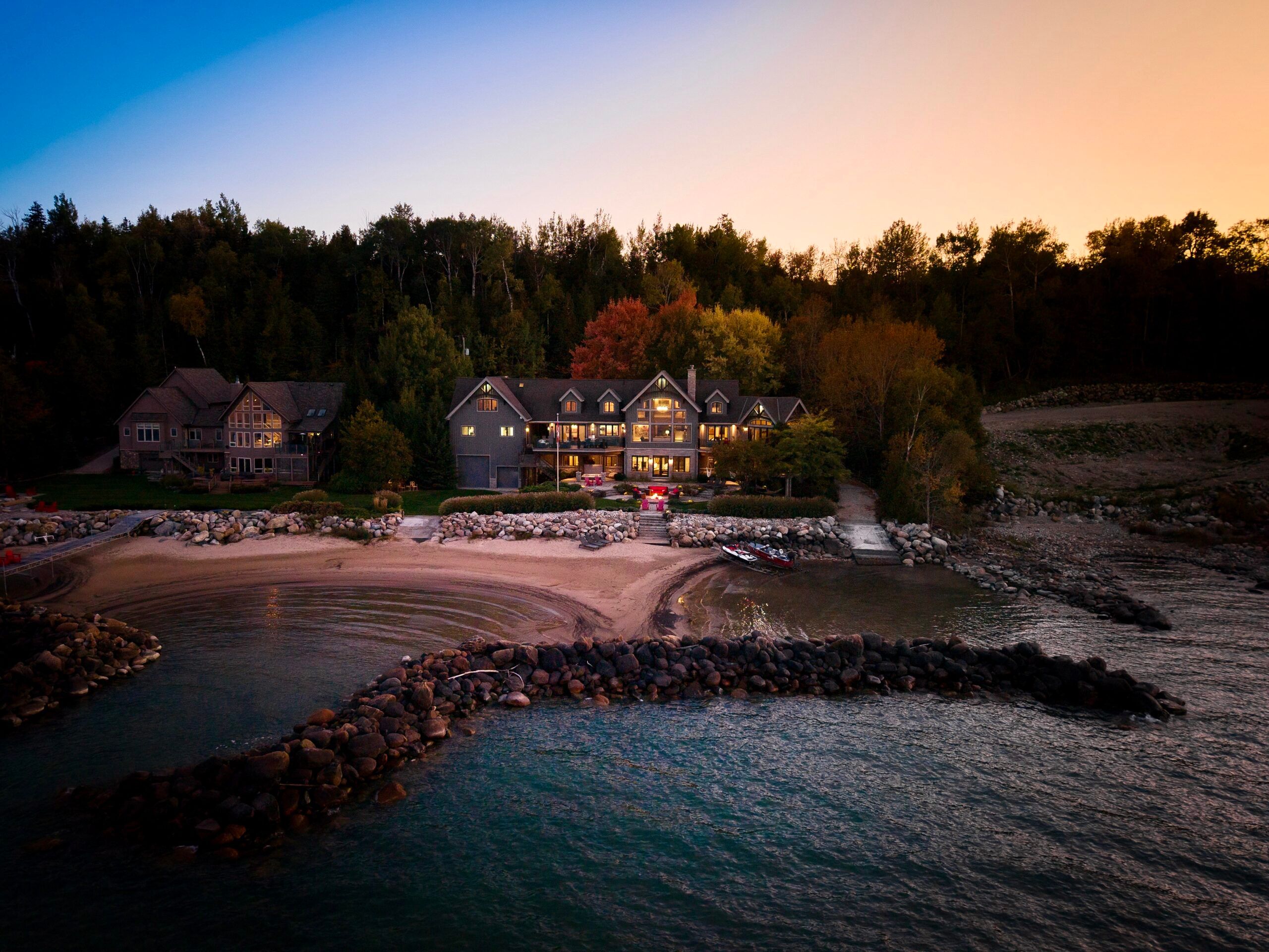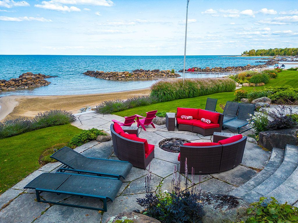 An Exclusive 200ft Sandy Shoreline Retreat on Lake Drive, Thornbury. Discover the ultimate waterfront sanctuary, where 200ft of rare sandy beach meets the sparkling blue of Georgian Bay. In a region known for its rocky shoreline, this remarkable stretch of sand offers an unmatched setting for swimming, paddle boarding, and boating all just minutes from downtown Thornbury and nearby private ski and golf clubs.Spanning over 7,500 sq. ft., this exceptional custom home is designed for gathering family and friends in comfort and style. The vaulted 26ft ceilings in the great room with exposed beams, floor-to-ceiling windows, and a grand Rumford fireplace captures the essence of relaxed luxury, framing breathtaking bay views at every turn.The chefs kitchen blends elegance and function with soapstone countertops, high-end appliances, a coffee bar, and a large island for effortless entertaining. It flows seamlessly into the dining area and out to a balcony with glass railings the perfect spot for morning coffee or sunset dinners overlooking the water.The primary suite offers a private wing of serenity with a cozy sitting room and gas fireplace, water-view deck, walk-in closet, and a spa-inspired ensuite with marble finishes and steam shower. Functional touches include a laundry and mudroom with dog wash, and direct access to the 3 level garage with mezzanine storage. Upstairs features two guest bedrooms, two 3-pc baths, a flex space, and a home office with inspiring views.The walk-out lower level extends the living space with heated floors, a recreation room, four bedrooms, and two full baths, opening directly to the patio and beach. Step outside to 200ft of pristine sand, a hot tub overlooking the bay, and total privacy to unwind after a day of golf or skiing.From sunrise paddles to starlit nights by the water, this extraordinary Thornbury residence is more than a home its a legacy on the shores of Georgian Bay.