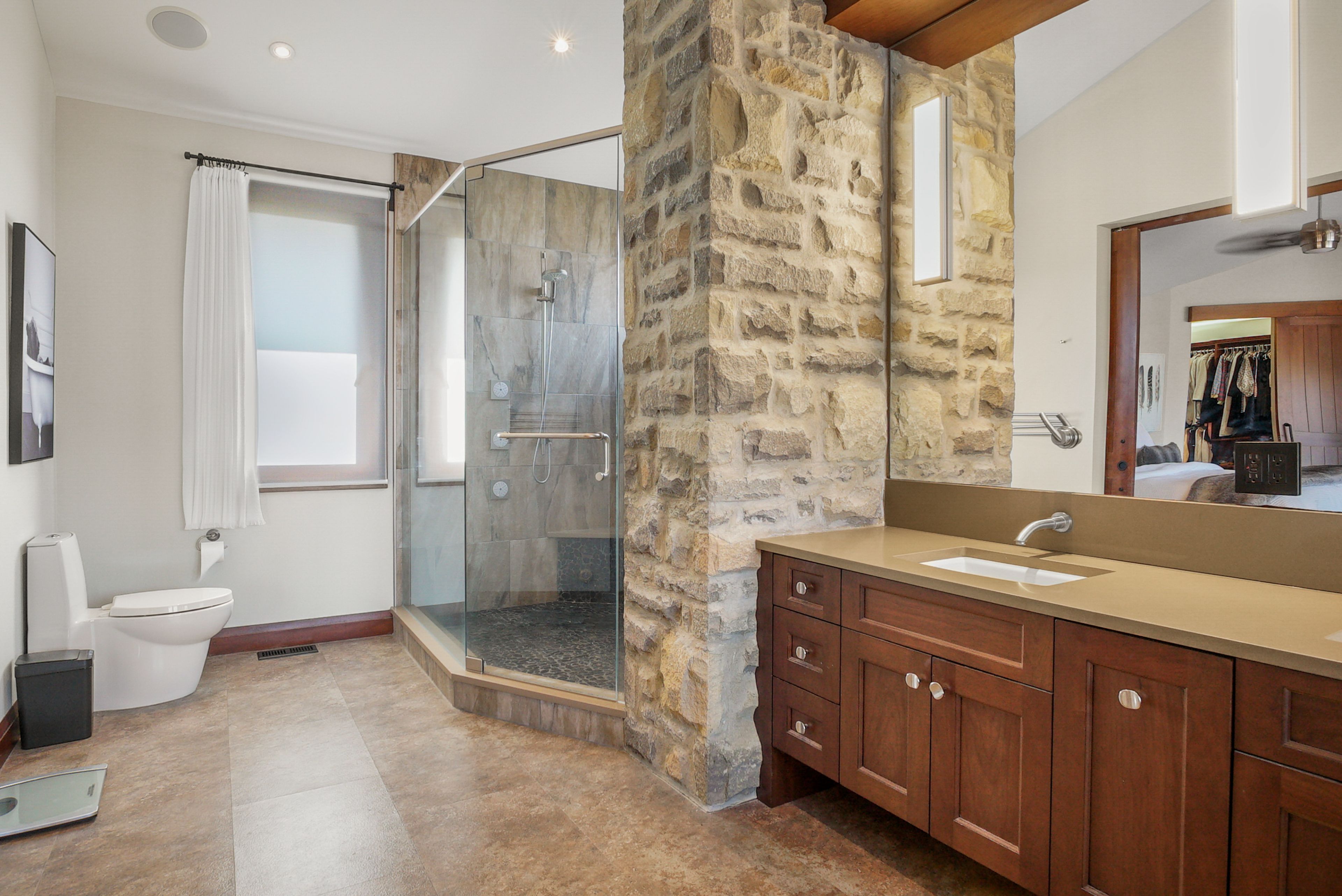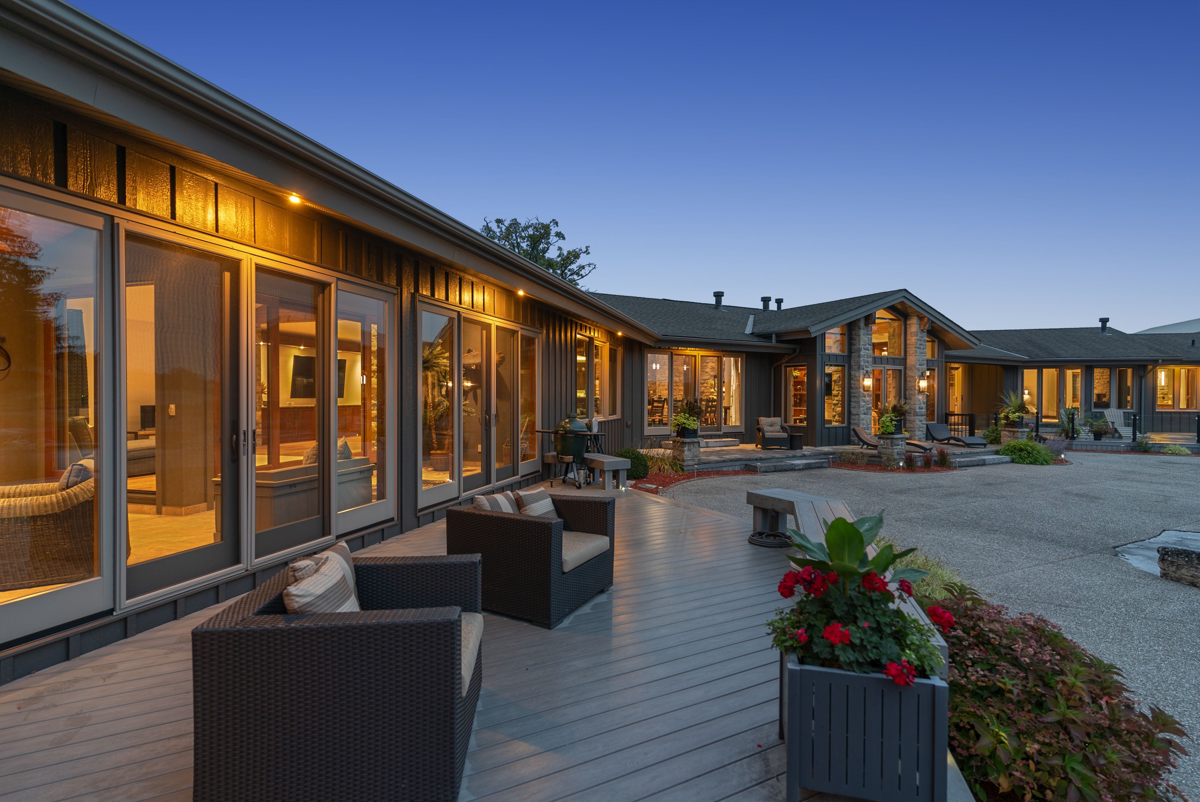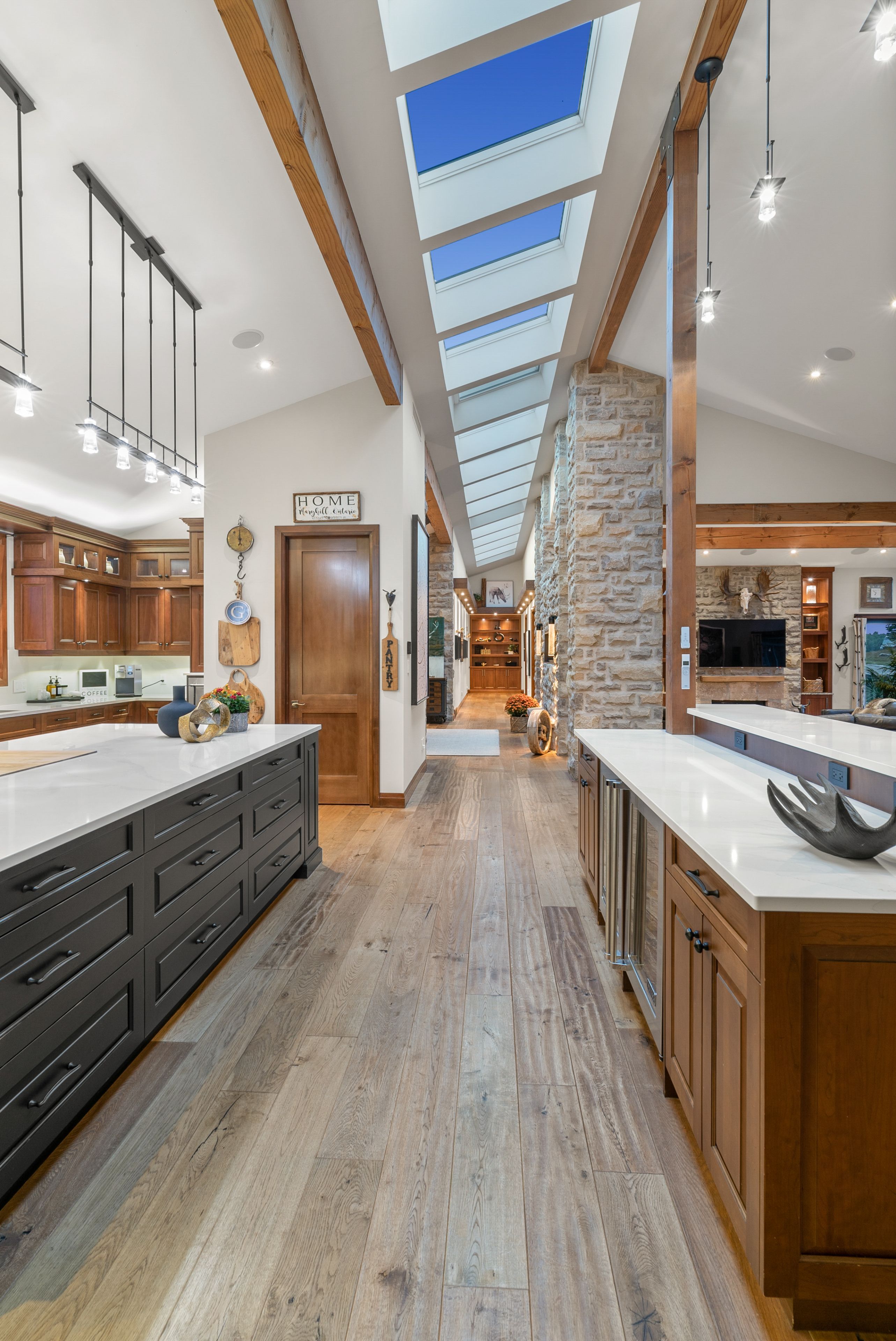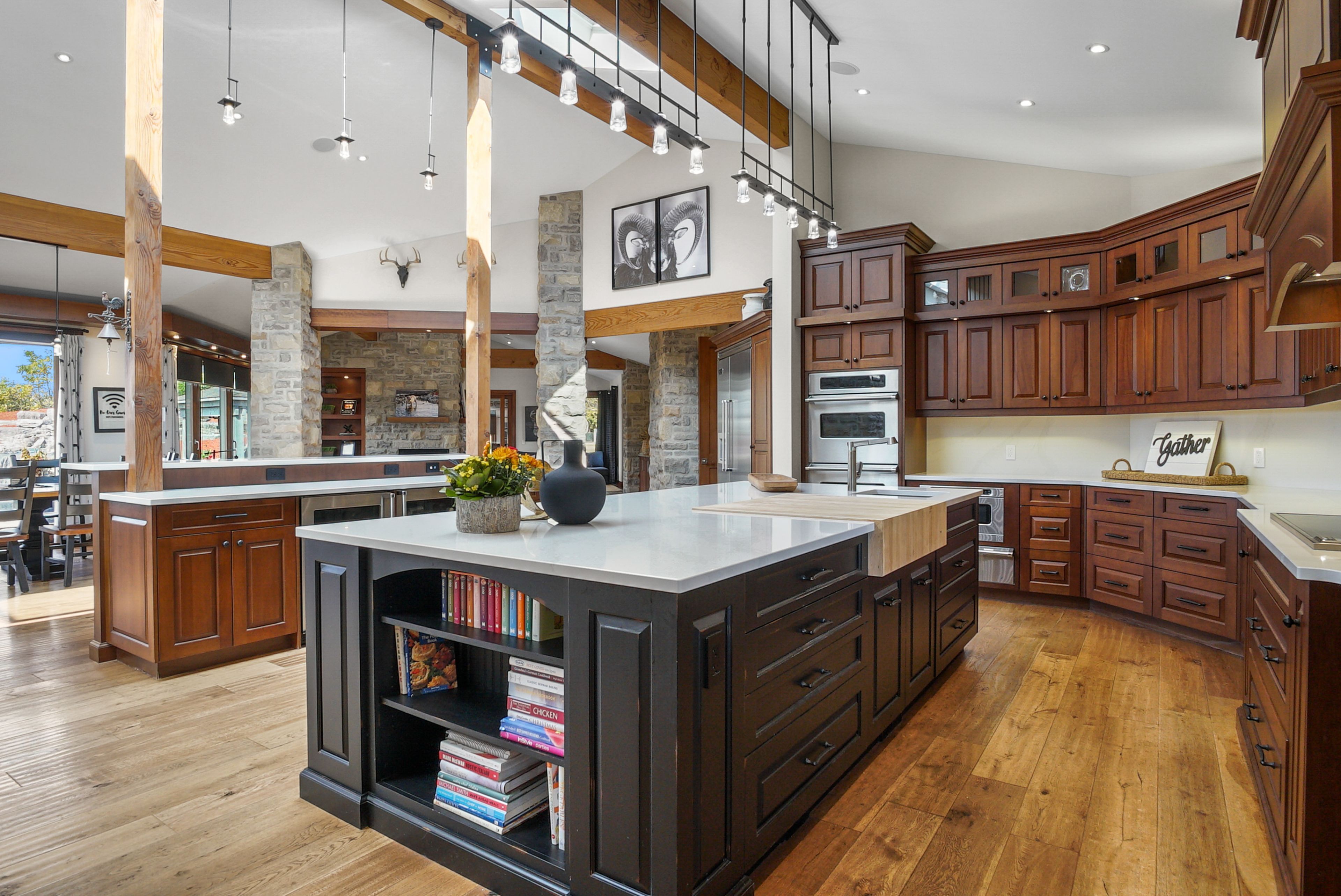 Experience an extraordinary retreat set on over 120 acres of natural beauty. This custom stone bungalow, spanning 10,454.23 sq. ft., showcases high-quality finishes and thoughtful design. Step into the gourmet kitchen, equipped with Viking Professional appliances, Silestone Quartz surfaces, and striking Douglas fir beams. The dual islands invite gatherings, while the dining area offers seating for 14, overlooking a scenic ponds. High ceilings throughout the home create an open, inviting space, while the use of stone and wood details adds a warm, cozy atmosphere. Hand-chipped stone accents and skylights flood the interior with natural light, enhancing the home's connection to its surroundings. The primary suite opens directly to the swim ponds, offering indoor-outdoor living and a spa-like ensuite with a jacuzzi tub beside a gas fireplace. An indoor grilling area with heated floors offers year-round enjoyment, making it an ideal space for entertaining. The lower level is designed for fun and relaxation, featuring a full bar, billiards area, wine cellar, and a private cinema for movie nights. Outdoors, you'll find two ponds: one with a sandy beach and waterfall, and the other stocked for fishing. A heated, 4,000 sq. ft. exterior building with in-floor heating adds both function and flexibility to this expansive property. Explore the trails, unwind in the sitting areas, and enjoy this ultimate private getaway!