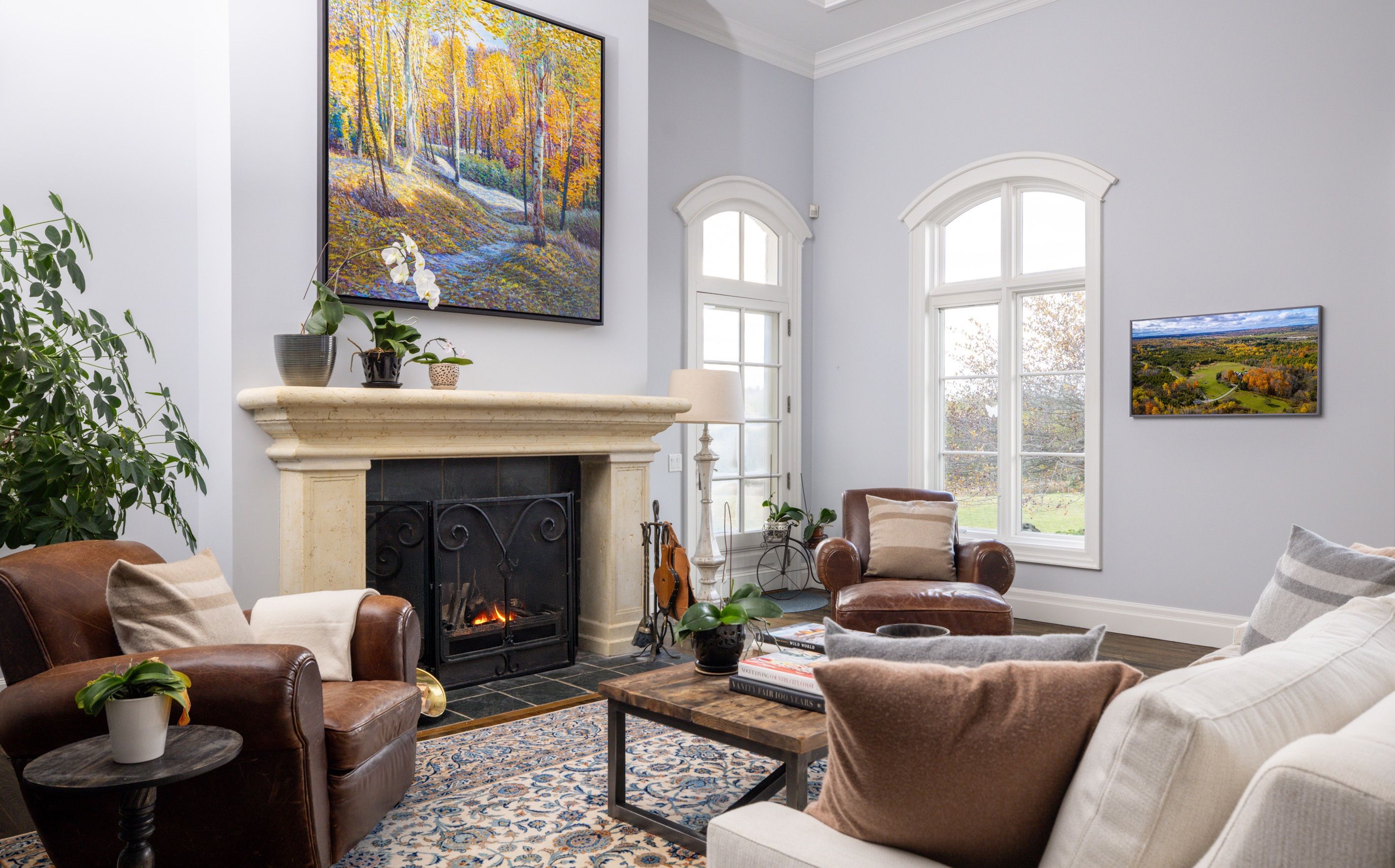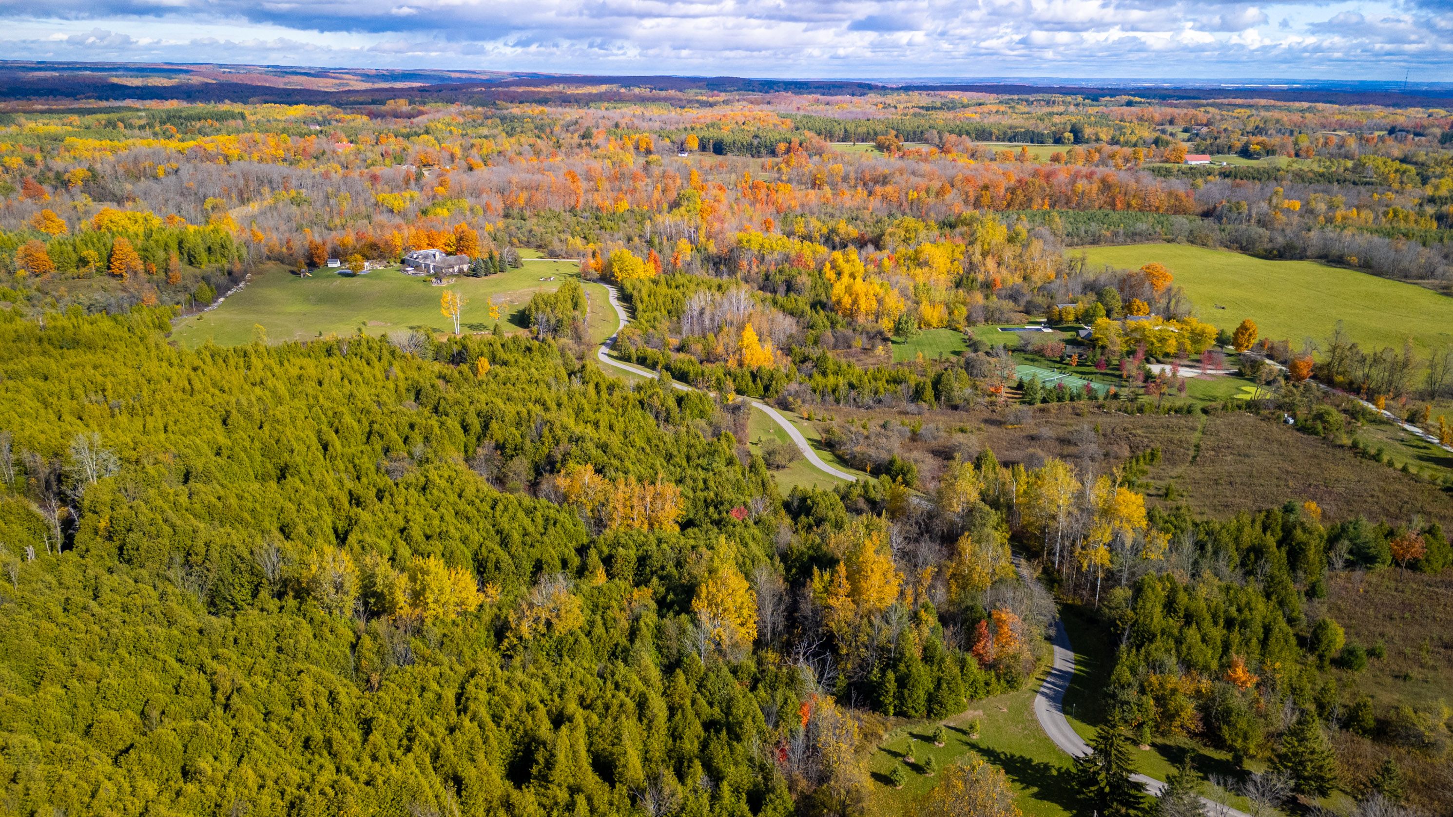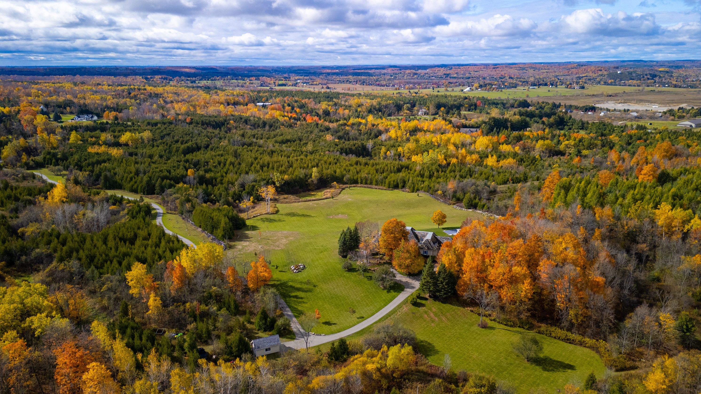 Nestled on 90.33 private acres along one of Erin's most coveted roads, Badger Hall represents the pinnacle of country estate living. This exceptional property combines rolling topography, manicured trails wide enough for utility vehicles, & multiple ponds perfect for summer fishing & winter skating. Beautiful fieldstone walls wind through the landscape, while the gated entry & long private drive ensure complete peace & privacy. Designed by renowned architect Stephan McCasey, the home is a masterpiece of craftsmanship beneath a stunning cedar shake roof. Light pours through every window, framing spectacular countryside views. The main level's great room, anchored by a limestone wood-burning fireplace, flows seamlessly into the dining room & opens to multiple patio walkouts. The kitchen impresses w/ its massive centre island, exceptional layout, & abundant storage. A cozy den off the kitchen provides the perfect retreat for quiet evenings, while a distinctive office w/ wood-burning fireplace & custom built-ins offers an inspiring workspace. The main-floor primary suite is a true sanctuary, bathed in natural light w/ beautiful countryside views. The spa-like ensuite features a soaker tub, walk-in shower, & double vanity, and has a generous walk-in closet. Upstairs, 3 beds & 2 baths provide comfortable family accommodation. The finished lower level includes a hot yoga studio & flexible space ideal for a gym/media room. Outside, the landscape captivates at every turn. The showpiece is undoubtedly the new pool area, artfully set into the natural landscape w/ sweeping views over the rolling fields. Long western views allow for stunning sunsets. Natural stone sitting areas throughout the grounds create intimate gathering spots, while the pristine trails (5km+) beckon equestrian enthusiasts. A 3-car garage & detached workshop complete the practical amenities. Located mins from Belfountain, Erin, Caledon Ski Club, The Pulpit, & TPC Osprey Valley. Less than 1 hr from TO.