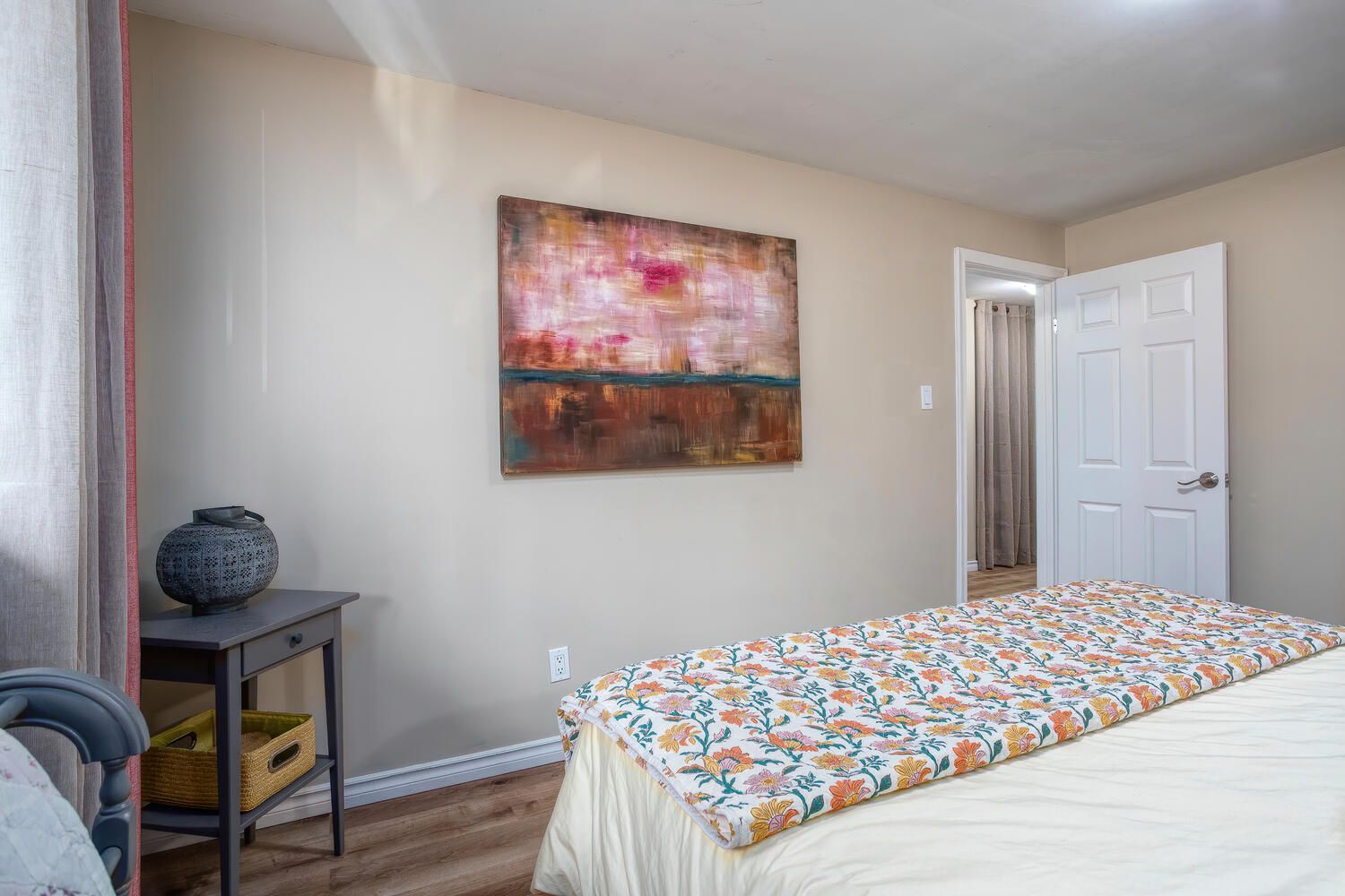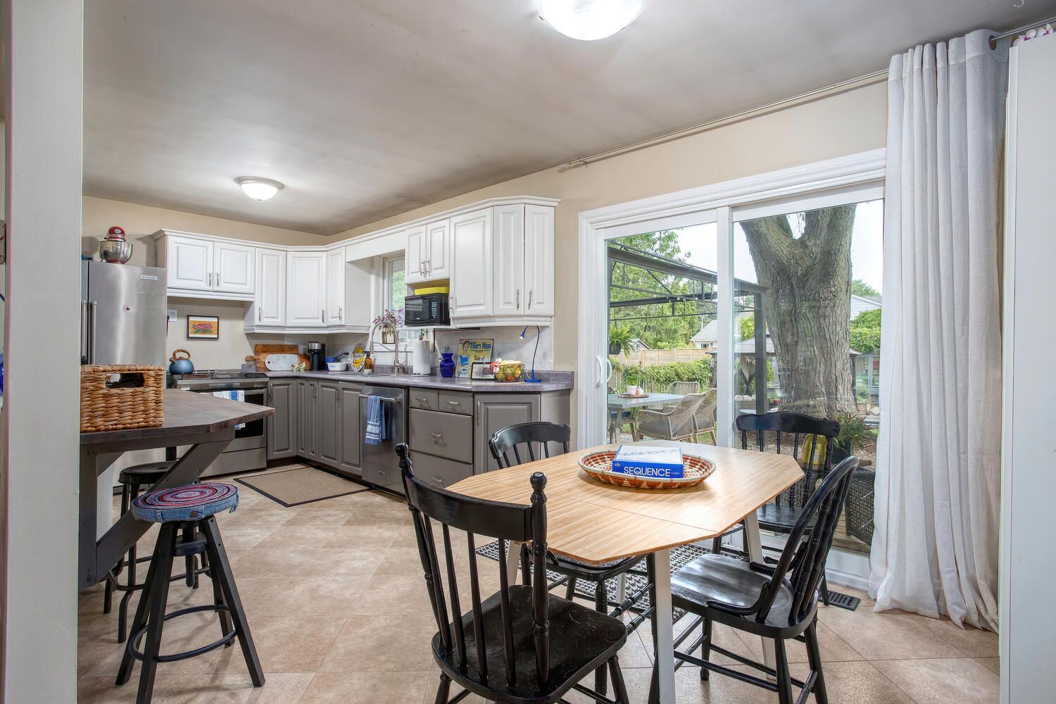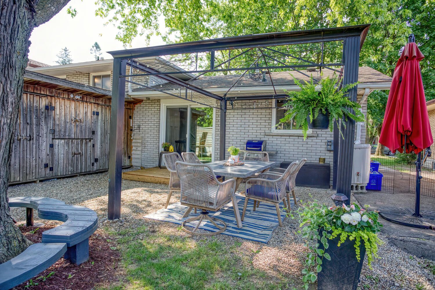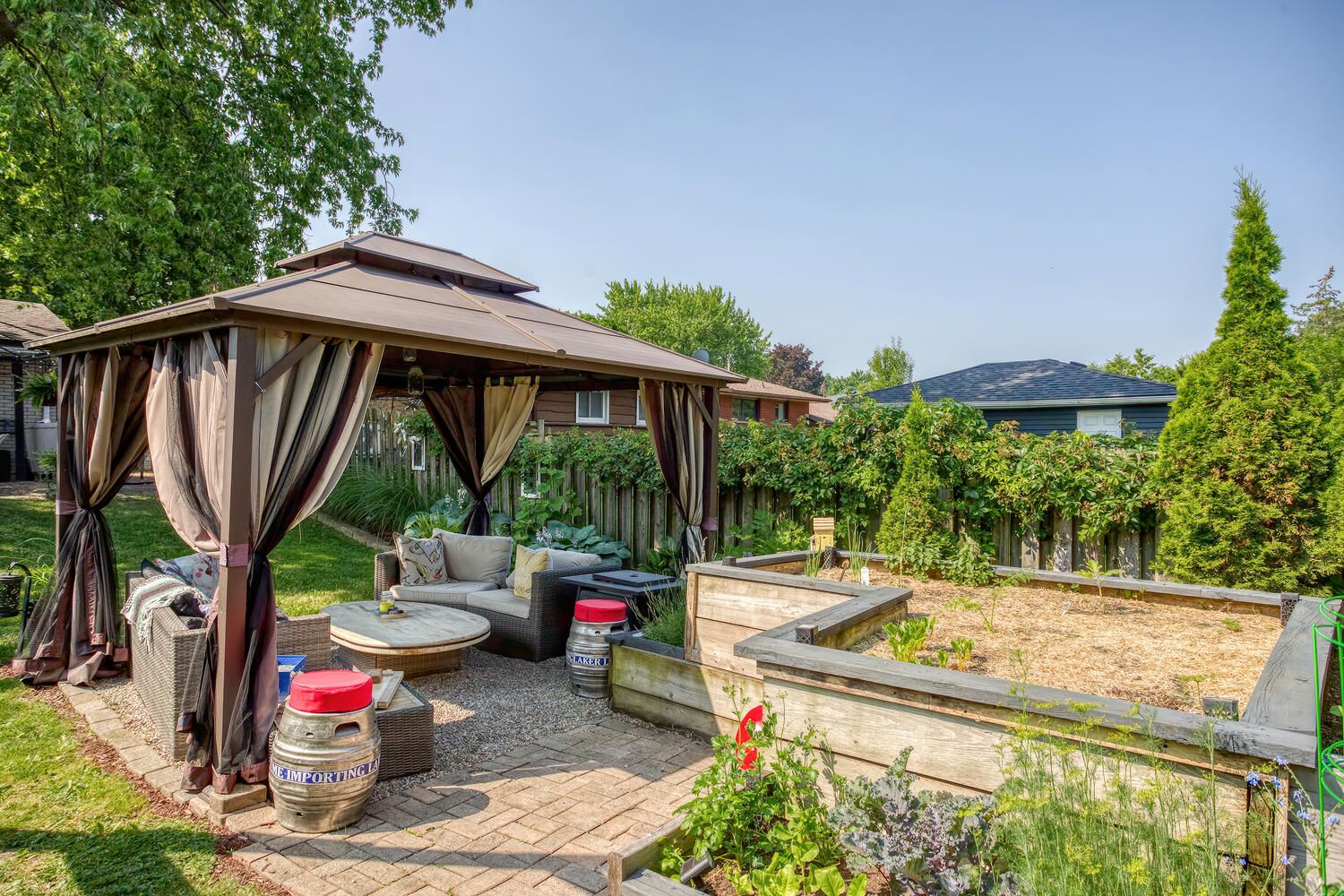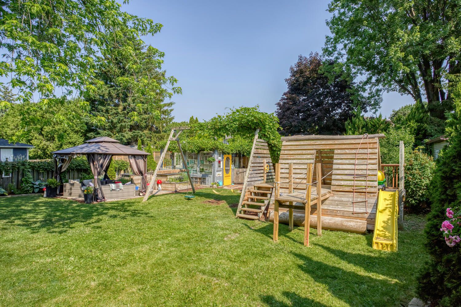 Updated 3 Bedroom SideSplit in Stanley Park with backyard oasis! Perfectly located in the leafy, friendly Stanley Park neighborhood, walk to schools, parks, shopping and conservation area. This updated 3 bedroom sidesplit has a bright, open main floor layout, a huge eat in kitchen with new sliding glass doors, 3 generous bedrooms (the principle bedroom fits a king size bed!), an updated bathroom, and ample closet and storage spaces. The basement is nice and bright thanks to two big windows and has a large finished rec room big enough to also be an office, gym or guest bedroom. The unfinished portion has great storage ( a fabulous crawl storage space under the kitchen) and a huge built in work bench. This home boasts a glorious 56x134 ft lot, fully fenced with delightful play structure, greenhouse, chicken coop and sheds surrounded by mature perennial gardens. Many places to sit and enjoy your privacy or host friends and family for a bbq, picnic or garden party. You may never want to leave your backyard! Furnace and AC 2018, sliding glass doors 2025, luxury vinyl plank flooring 2025, freshly painted throughout. Come and see it today!