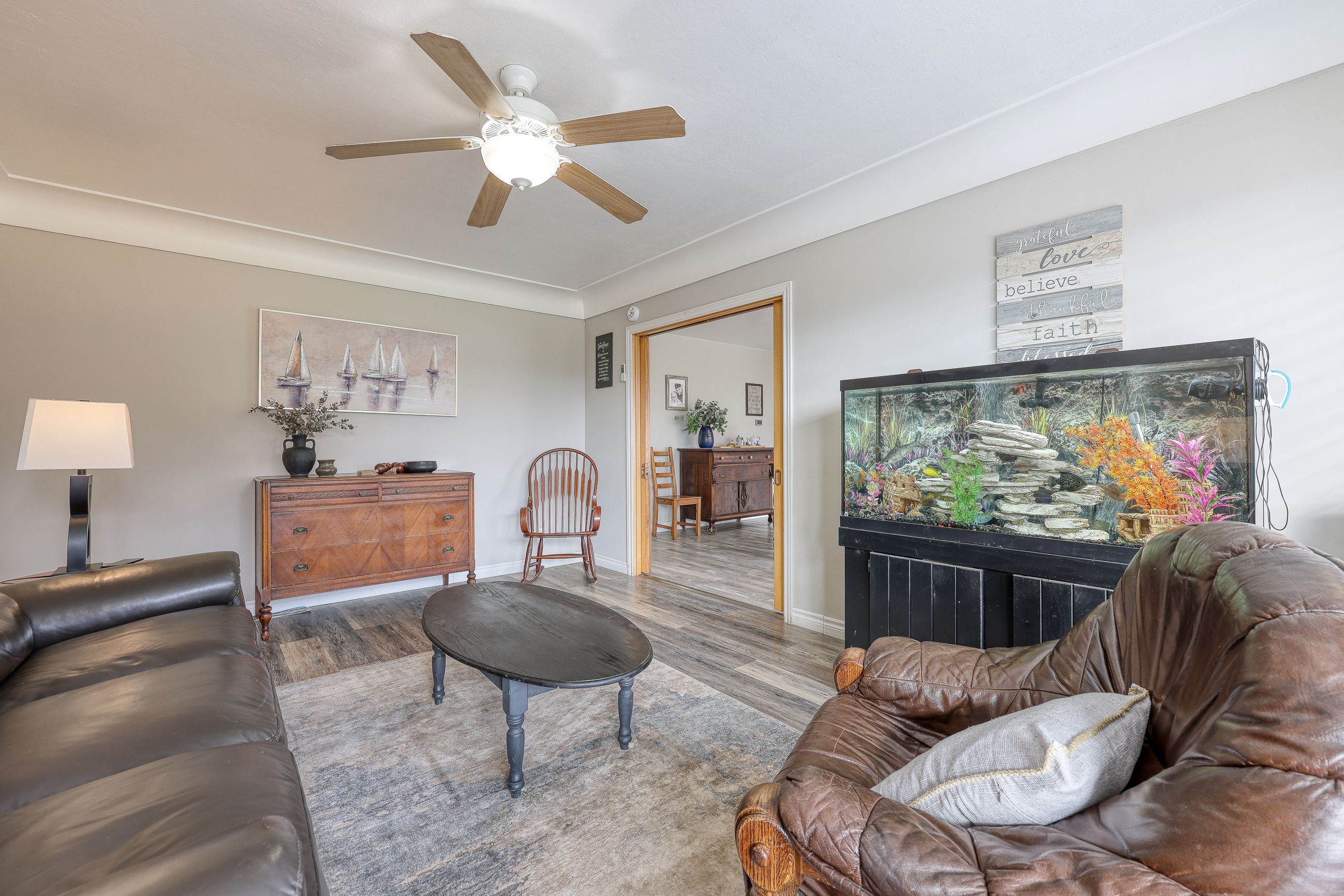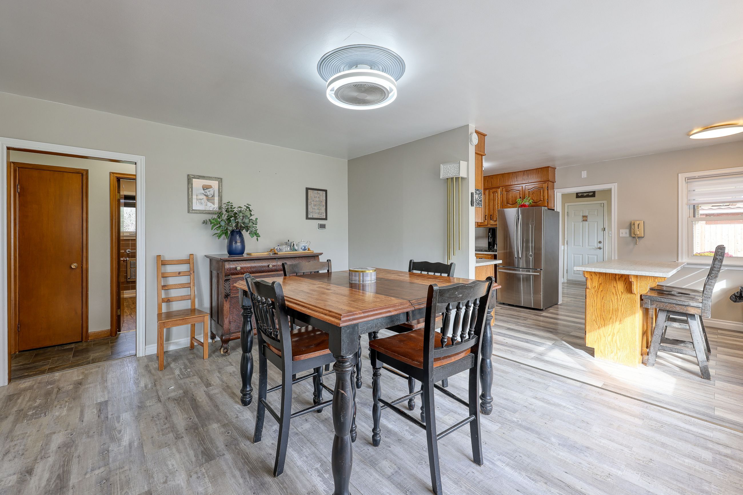 Welcome home to this cozy, updated 2 bedroom 2 bathroom place to call your own. With the many improvements this home is waiting for you to move in and start making memories. The kitchen has new countertops, sink and hardware as well as a new stove and dishwasher. All new windows were put in in 2022 along with the new high efficiency wood burning fireplace that is fully WETT certified in the lower level, new electrical panel along a roughed in connection spot for anyone wanting to insert a Generac generator. Receptacles were also replaced in 2022. An R-50 insulation spared in the attic and steel doors in 2022. New floors were put in and a new sump pump in 2025. To add to the list of improvements is eaves trough painted with Rustoleum in 2024, new shingle roof in 2024, new furnace in 2022, gas hook up for stove, dryer and BBQ in 2022, new surround shower in 2025 and the list goes on. Don't waste time, come see this beautiful property before it's too late!