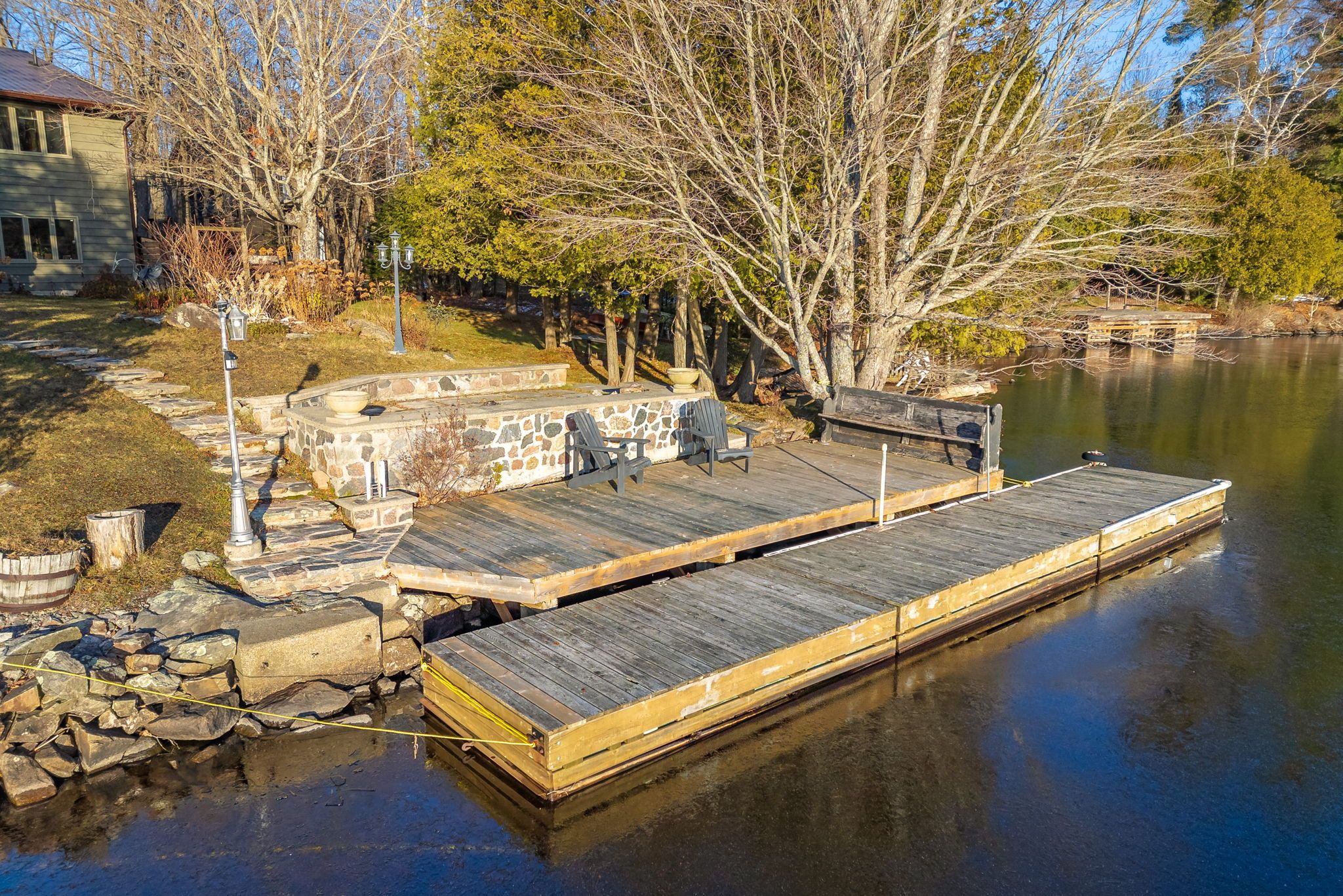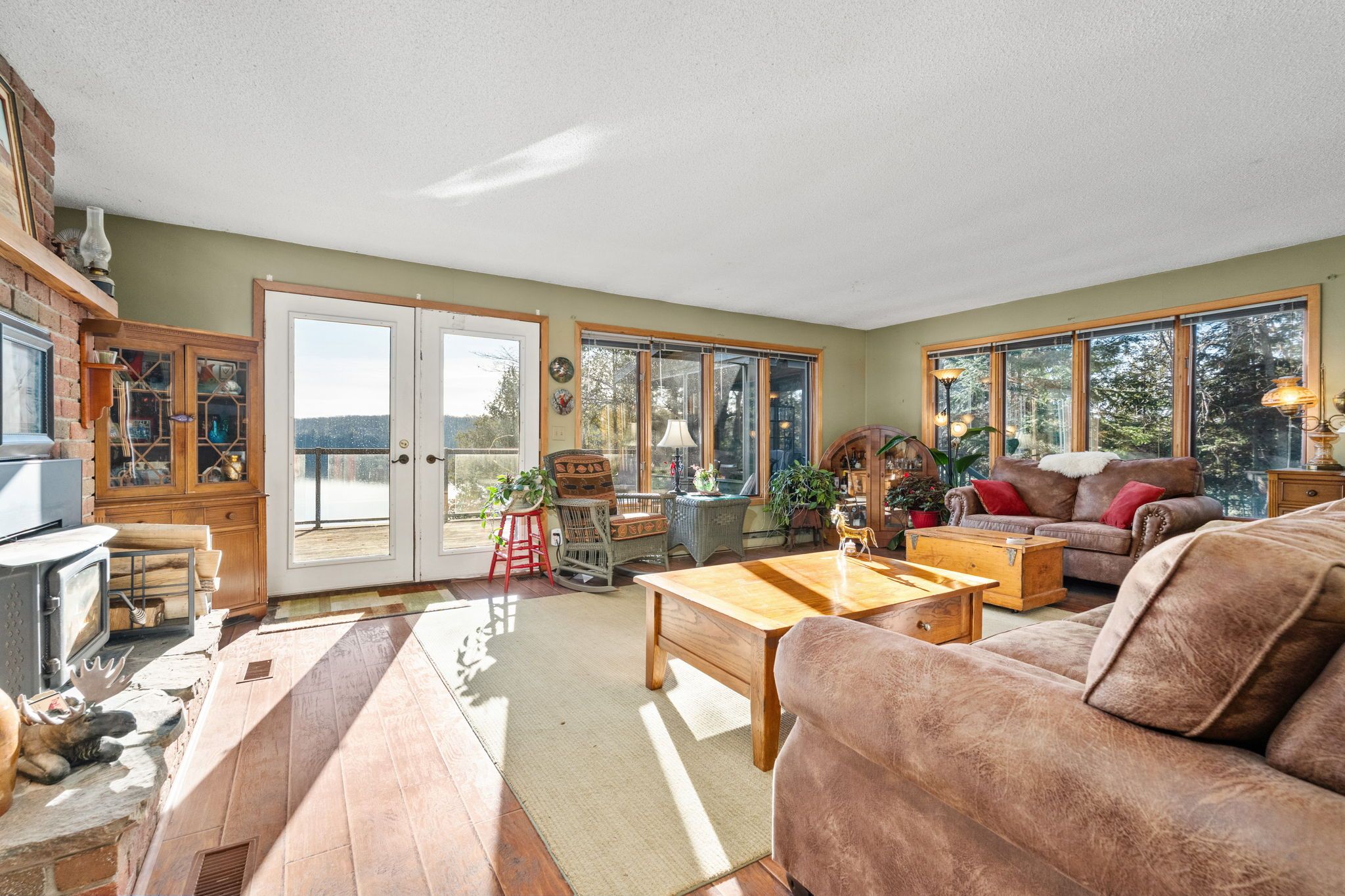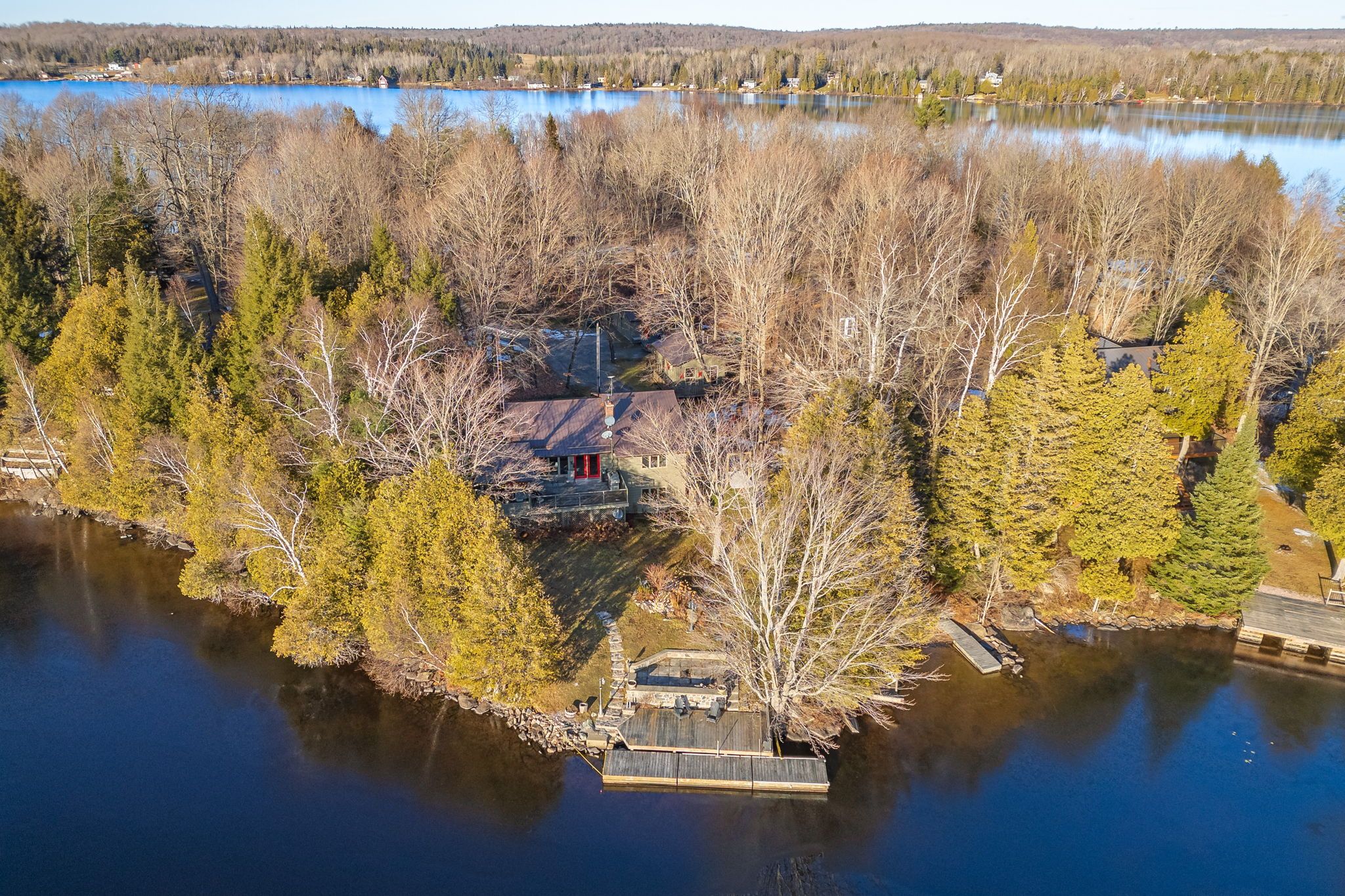 Welcome to your new waterfront home on stunning Lake Cecebe. Nestled among century-old Maple trees, this spacious 2+1 bedroom bungalow offers breathtaking lake views. A perfect blend of country charm and modern comfort. Step inside to an expansive, updated kitchen with centre island and an eat-in area ideal for large gatherings. The bright and inviting living room features picture windows that frame the serene waterscape. Walk-out to a large deck with glass panels, and just off to the side enjoy a beautiful screened-in Muskoka room-perfect for cozy fall evenings. The main level features two generous bedrooms, including a primary 3P ensuite. The 4P bath boasts a luxurious soaker tub. Main-floor laundry, gleaming hardwood floors, Impressive brick & stone Woodstove and incredible natural light complete this level. The lower level offers excellent in-law potential with a spacious 3rd bedroom, large rec room, oversized utility room, abundant storage, a convenient 3P bath, and a walkout to cobblestone area of the driveway. Just steps away is a full secondary auxiliary dwelling with its own kitchen, heat source, hydro, insulation, deck, two bedrooms, and 2P bath-ideal for overflow guests, rental income, or multi-generational living. An oversized & drywalled two-car garage adds even more value. All three buildings + muskoka room feature durable industrial metal roof (10yrs old) . Head down to the waterfront where you'll find two dock options: a sandy, gradual-entry beach perfect for children, and a deeper dock for boating and kayaking. Lake Cecebe offers 40 miles of pristine boating and excellent fishing, offering endless waterway adventures. Year-round municipal-road & ideal for snowmobiling, ice fishing, ATVing, and more. With breathtaking southwest views, incredible convenience, ample storage, and exceptional recreational possibilities, this coveted location provides the perfect setting for relaxation, entertainment, and family fun. This Compound wont last!