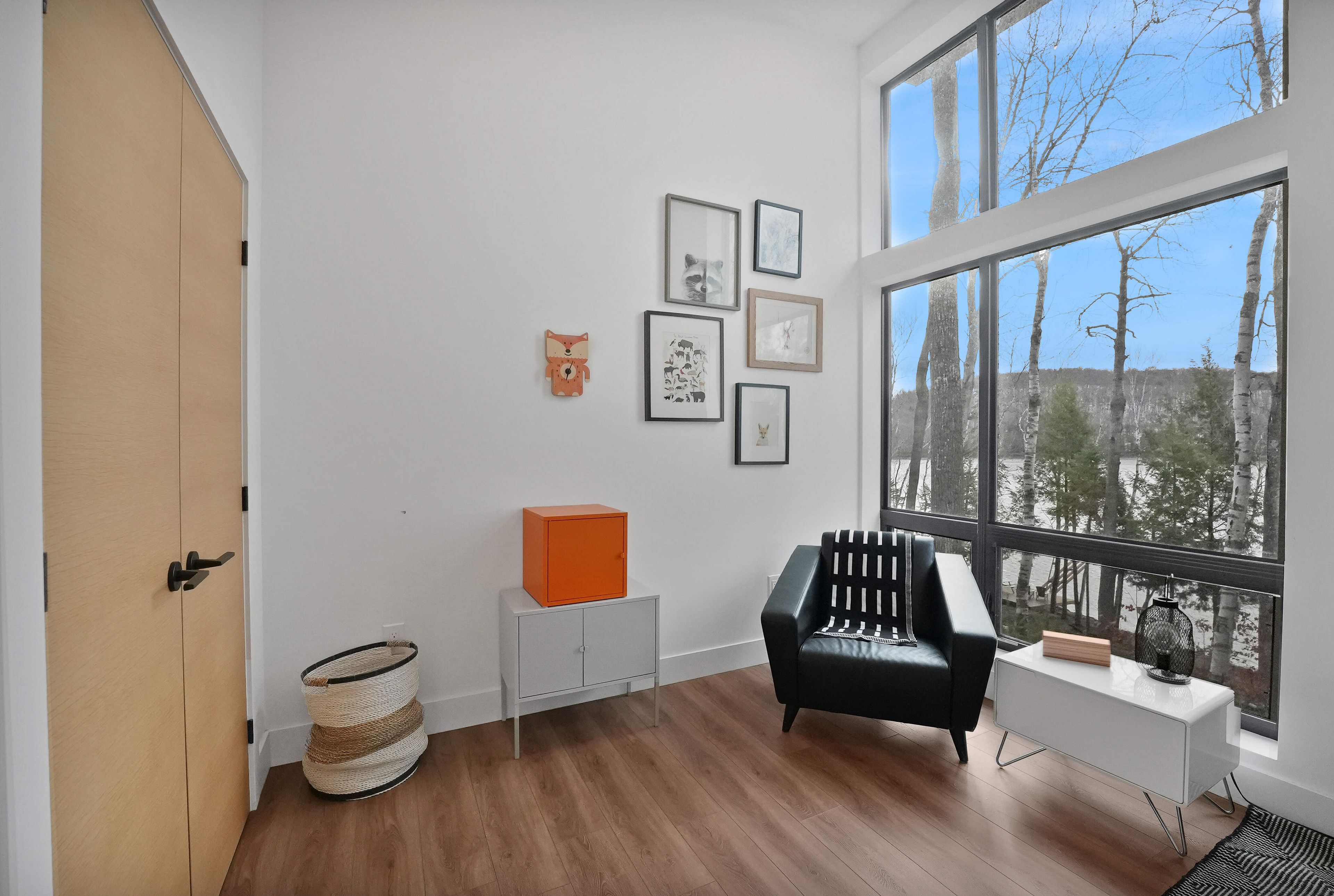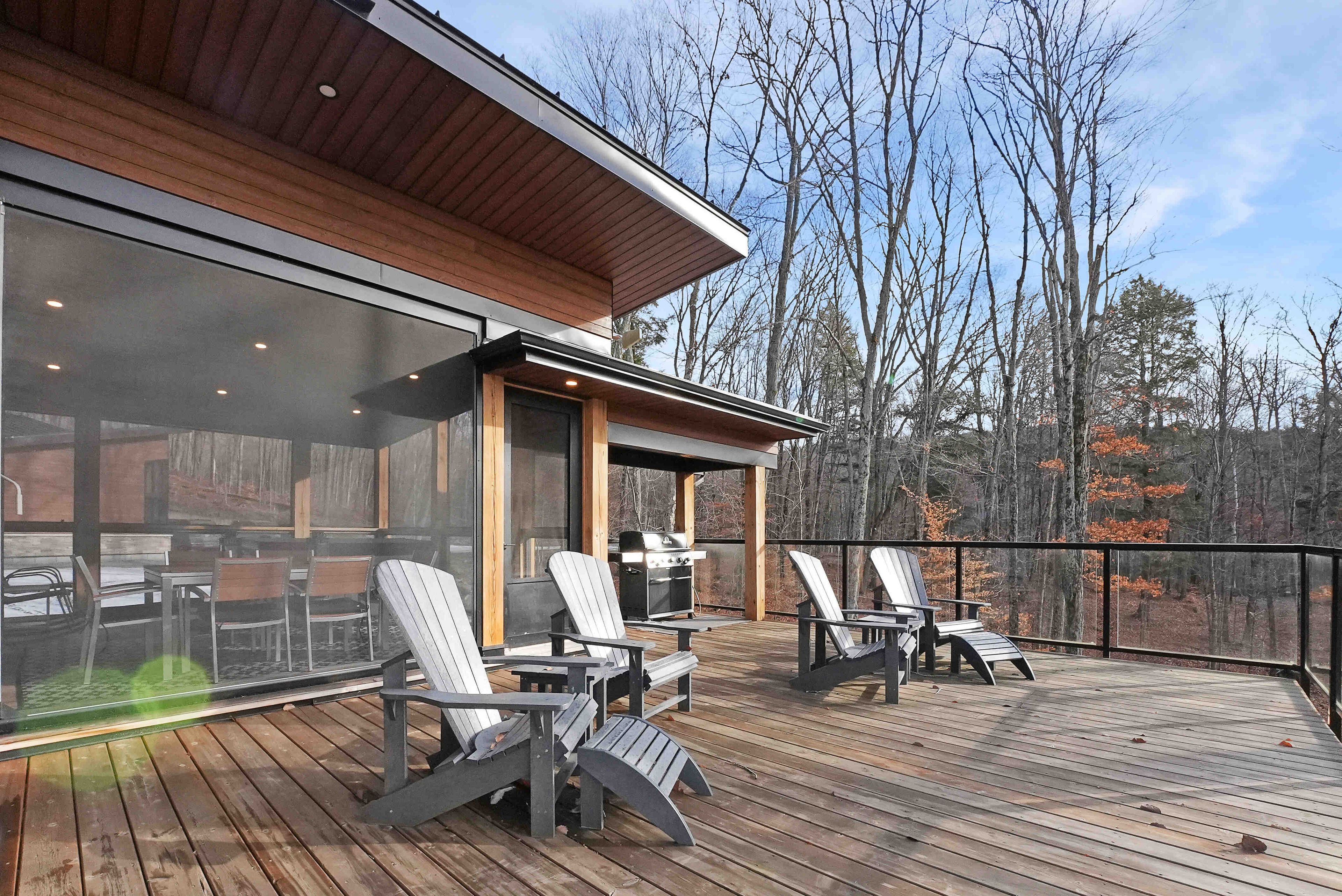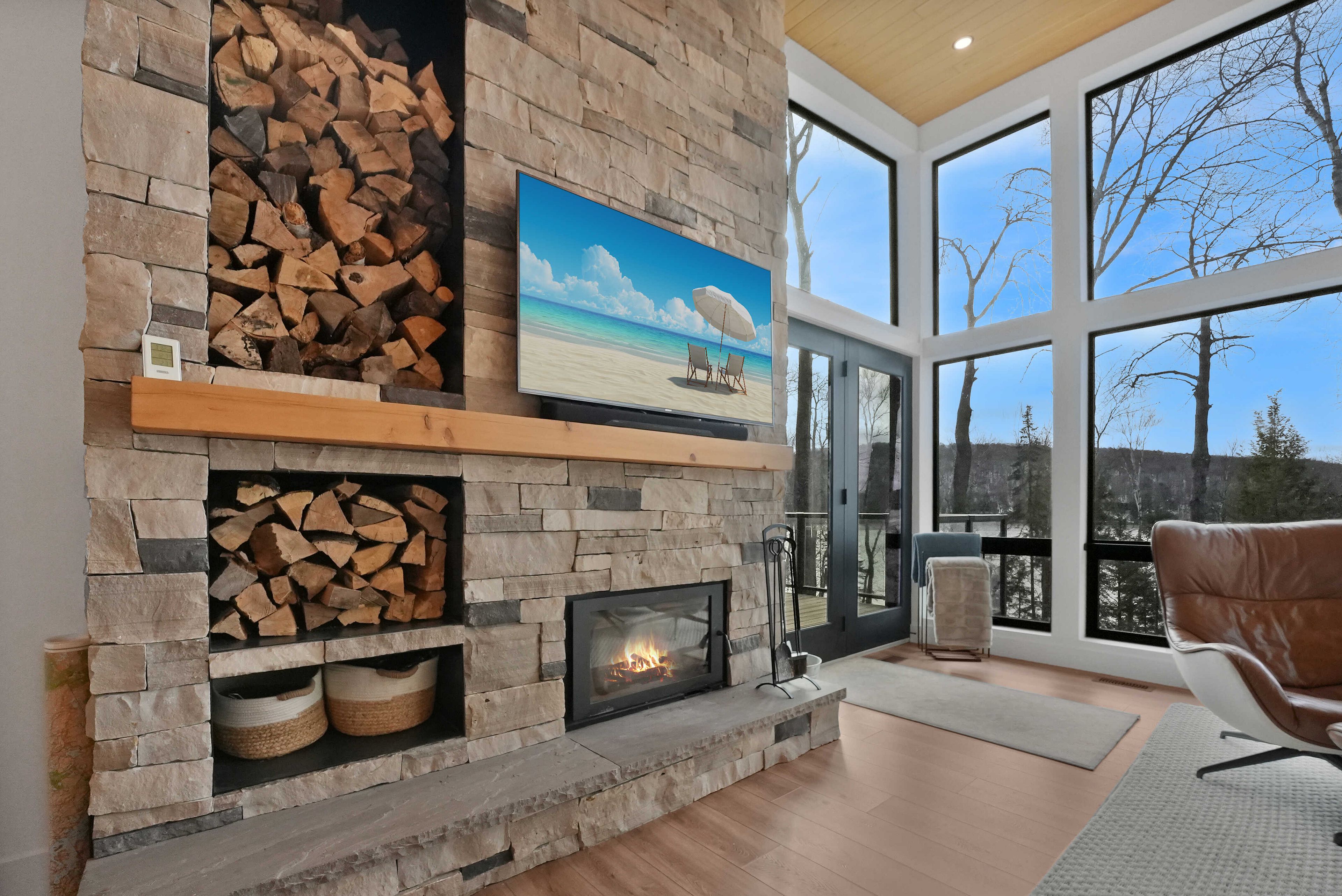 Discover luxury and meticulous craftsmanship in this spacious turn-key 5 bedroom, 3 bathroom home located on nearly 10 acres of Haliburton Lake waterfront. The heart of the main living area features a stunning wood-burning fireplace that creates an inviting focal point, perfect for cozy evenings after a day on the lake. The expansive windows flood the space with natural light and frames those spectacular western sunset views, while the open concept layout flows seamlessly for both intimate family gatherings and larger entertaining. A generous screened-in room extends your living space outdoors, offering a bug-free retreat where you can enjoy morning coffee, al fresco dining, or simply relax with a book while listening to the gentle sounds of the lake. Premium vinyl plank flooring flows throughout the bedrooms and main living areas, while all 3 bathrooms feature heated floors that add a touch of everyday luxury. The exterior of this property is equally as impressive, featuring landscaped steps that gently guide you to the waterfront where an oversized dock sits on a pristine rocky shoreline. The clear, weed-free water provides ideals swimming with big lake views. A fire pit creates the perfect gathering spot for family evenings. Engineered for superior comfort and year-round efficiency, this residence showcases comprehensive spray foam insulation, an advanced membrane wrap system around the foundation for absolute waterproofing, and thoughtfully designed roof overhangs that maximize passive solar gains-welcoming winter warmth while providing summer shade. The fully insulated 1500 sq. ft garage features over R15 under-slab insulation with R30 above grade walls and radiant electric floor heating, creating a comfortable workspace or storage area in any season. Access 1200 acres of shared land, complete with trails for endless opportunites to explore untouched nature. Experience 1237 Burlywood Trail on one of Haliburton's most sought after lakes.