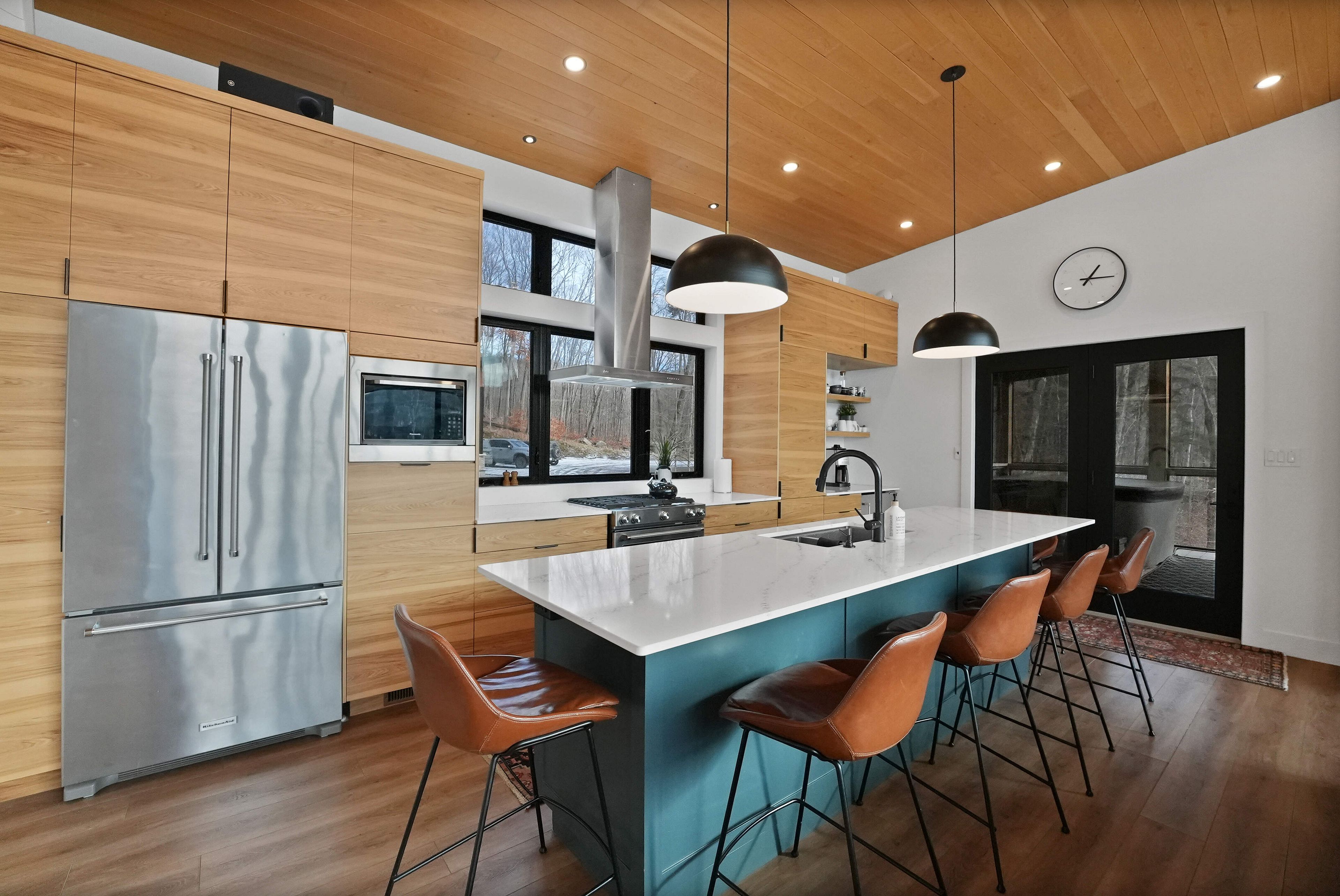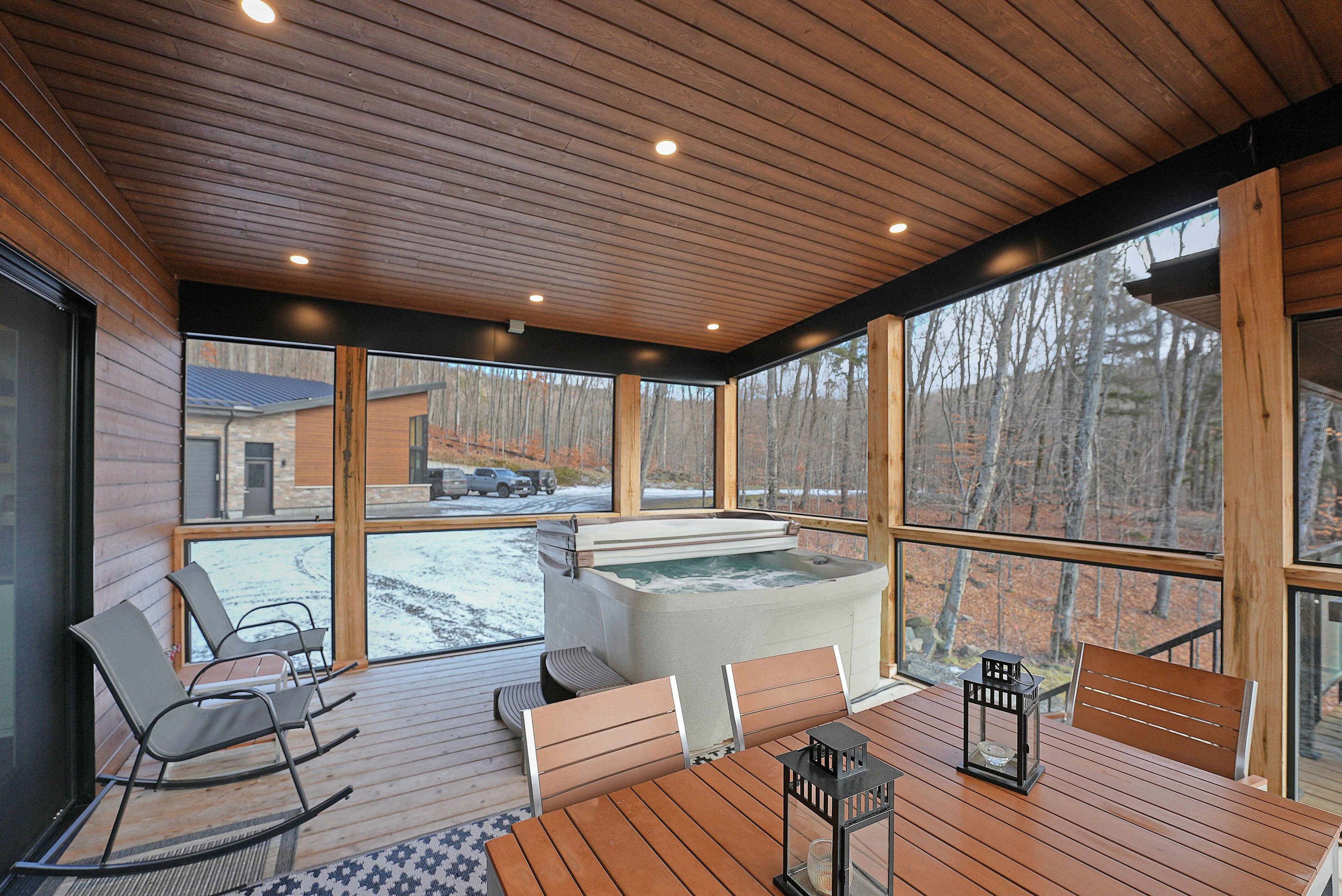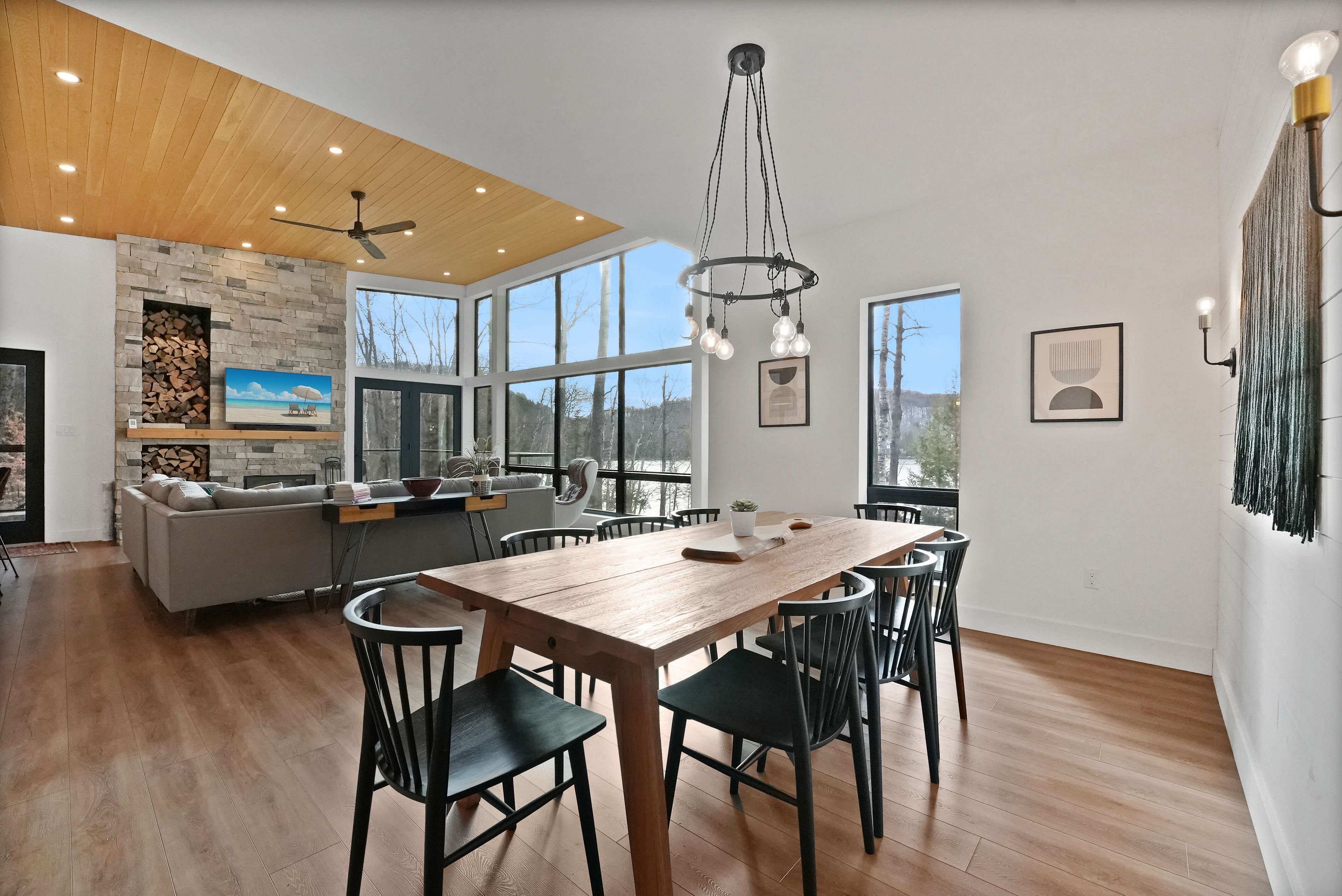 Discover luxury and meticulous craftsmanship in this spacious turn-key 5 bedroom, 3 bathroom home located on nearly 10 acres of Haliburton Lake waterfront. The heart of the main living area features a stunning wood-burning fireplace that creates an inviting focal point, perfect for cozy evenings after a day on the lake. The expansive windows flood the space with natural light and frames those spectacular western sunset views, while the open concept layout flows seamlessly for both intimate family gatherings and larger entertaining. A generous screened-in room extends your living space outdoors, offering a bug-free retreat where you can enjoy morning coffee, al fresco dining, or simply relax with a book while listening to the gentle sounds of the lake. Premium vinyl plank flooring flows throughout the bedrooms and main living areas, while all 3 bathrooms feature heated floors that add a touch of everyday luxury. The exterior of this property is equally as impressive, featuring landscaped steps that gently guide you to the waterfront where an oversized dock sits on a pristine rocky shoreline. The clear, weed-free water provides ideals swimming with big lake views. A fire pit creates the perfect gathering spot for family evenings. Engineered for superior comfort and year-round efficiency, this residence showcases comprehensive spray foam insulation, an advanced membrane wrap system around the foundation for absolute waterproofing, and thoughtfully designed roof overhangs that maximize passive solar gains-welcoming winter warmth while providing summer shade. The fully insulated 1500 sq. ft garage features over R15 under-slab insulation with R30 above grade walls and radiant electric floor heating, creating a comfortable workspace or storage area in any season. Access 1200 acres of shared land, complete with trails for endless opportunites to explore untouched nature. Experience 1237 Burlywood Trail on one of Haliburton's most sought after lakes.