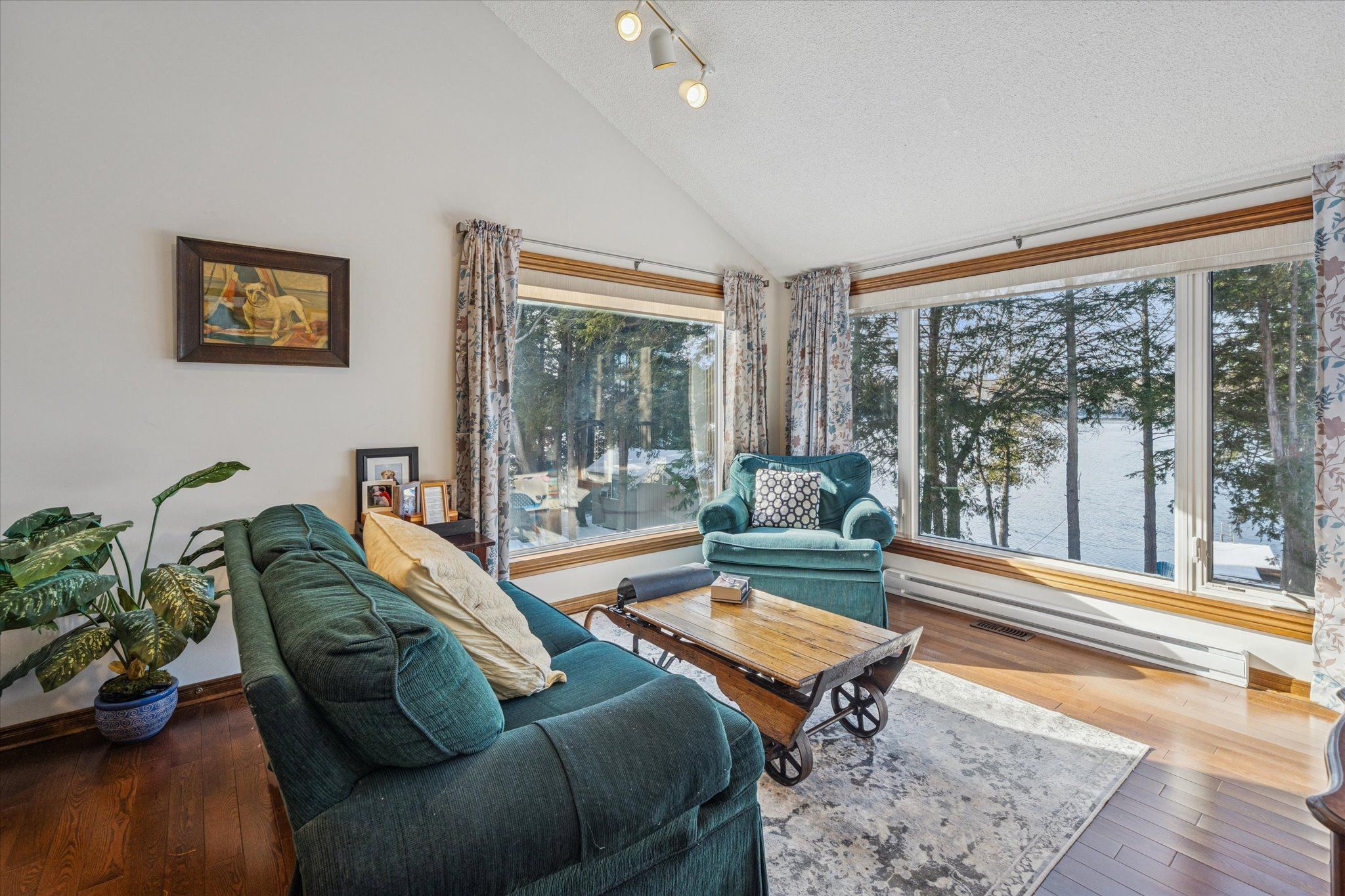 Welcome to your dream four-season home or cottage at 1581 B Lake Joseph Rd in Seguin. This year-round waterfront home on beautiful Silver Lake, offers 3600sq. ft on 2 levels and the living area offers a 21' cathedral ceiling and floor to ceiling windows that provide an abundance of natural light with a well treed 1.45 acre lot. This level property is west facing which allows you to experience all day sun with breathtaking sunsets every evening, right from your dock or living room. The cozy yet spacious interior features an open-concept living area with a fireplace, a fully-equipped custom kitchen, and large windows that fill the space with natural light. The walk out basement offers a 9 seat movie theater, games room, bedroom and large bonus room that is currently a large gym. Enjoy your morning coffee on the expansive deck while taking in the tranquil surroundings. The property also boasts a beautiful guest cottage at waters edge that is one bedroom and one bath with a kitchenette that allows for additional accommodations. The detached 2 car garage is perfect for extra storage. This exceptional private property offers 245 feet of frontage with direct access to the lake; you'll enjoy deep water for swimming, fishing, and boating just steps from your door. With its convenient location, having easy access to highway 400 and within 2 hours from Toronto, this retreat has endless possibilities. Located close to many amenities such as restaurants, golf courses, marinas, hiking trails, snowmobile trails, grocery stores and much more. Surrounded by mature trees and lush landscaping, this property offers the perfect blend of privacy and natural beauty. There has been plenty of recent updates such as water treatment system, furnace, 200 amp panel, AC and much more.